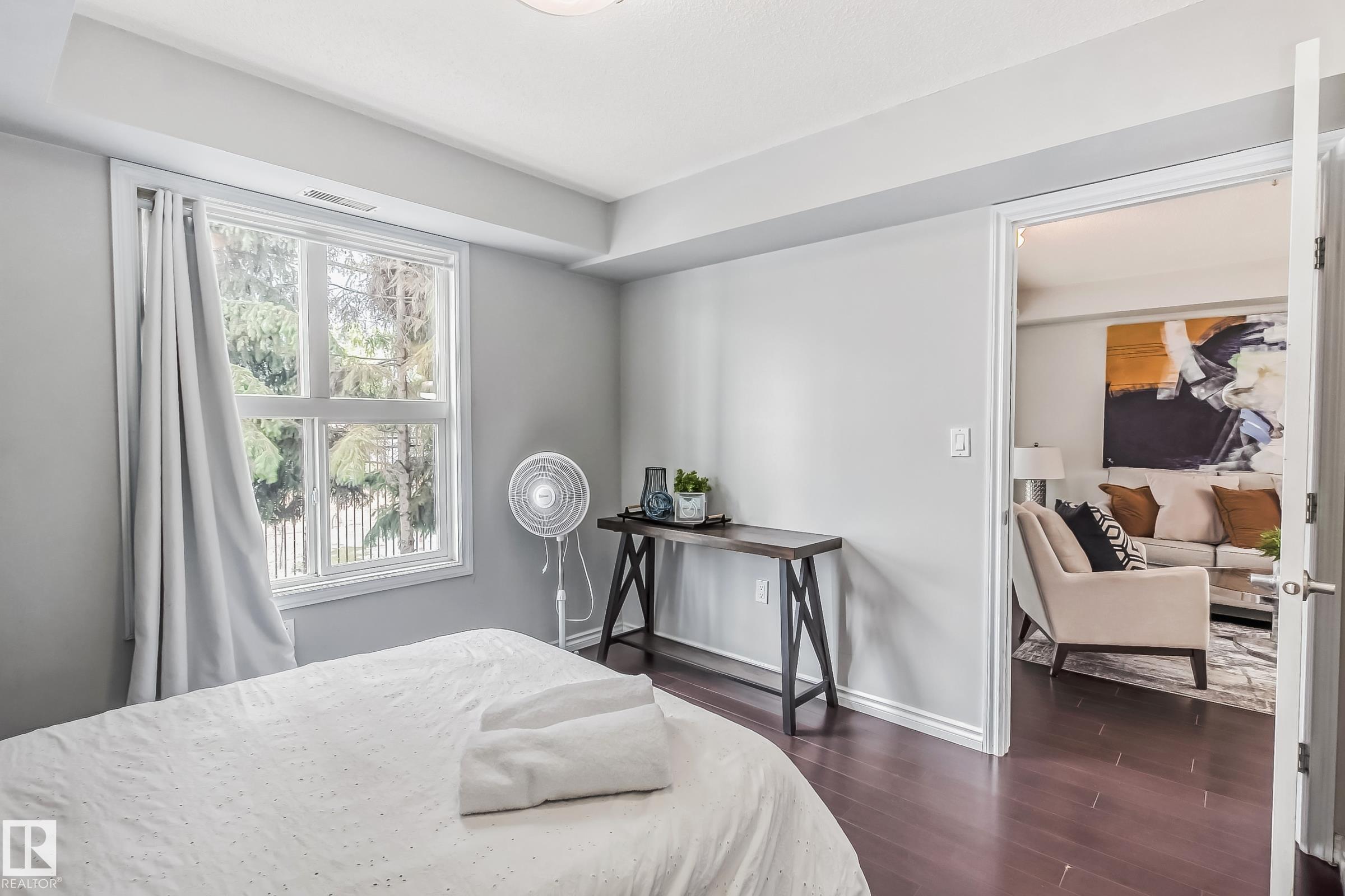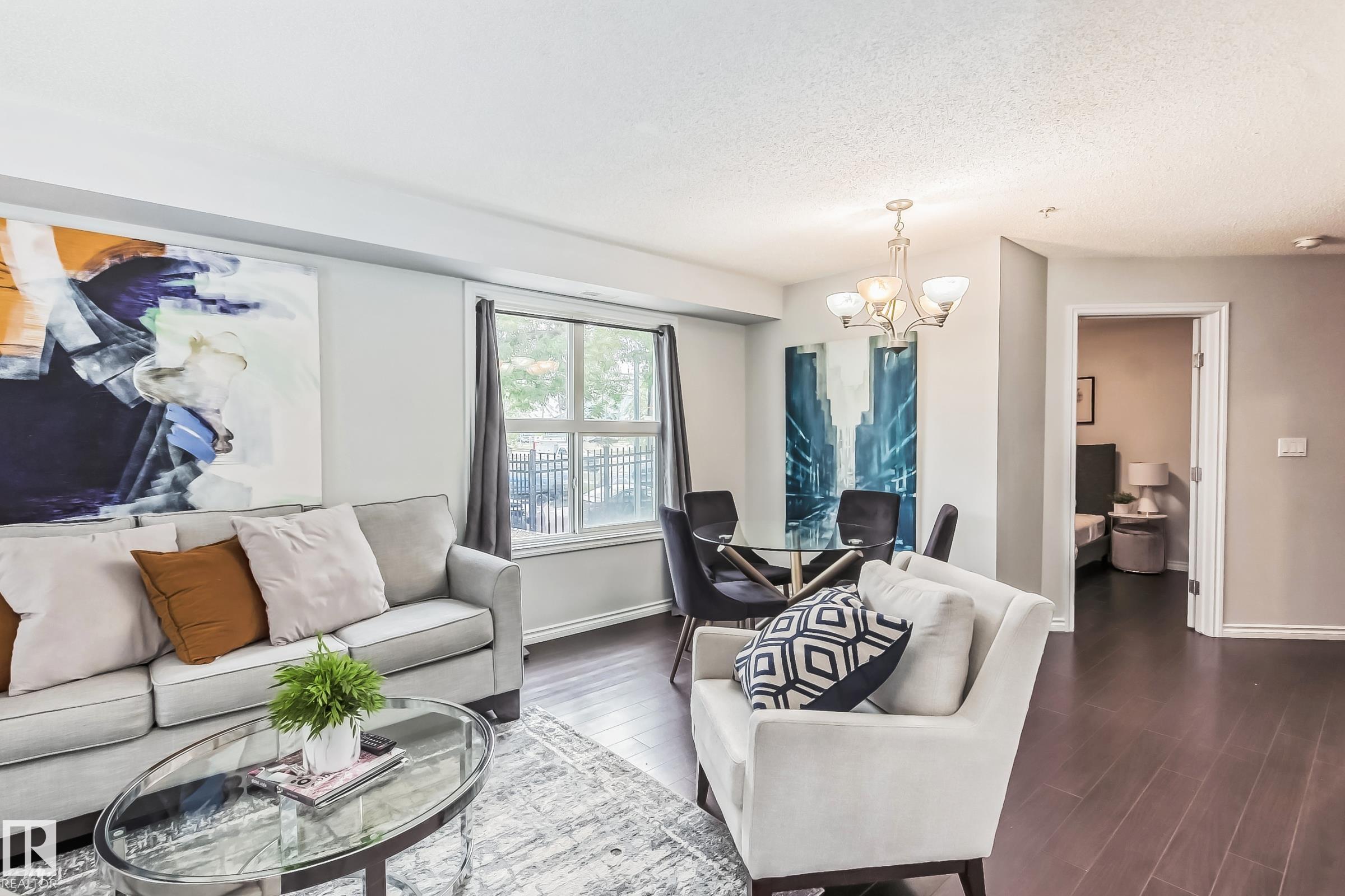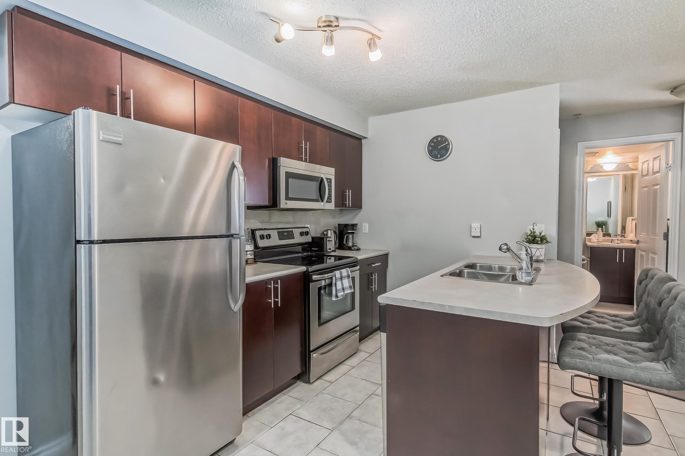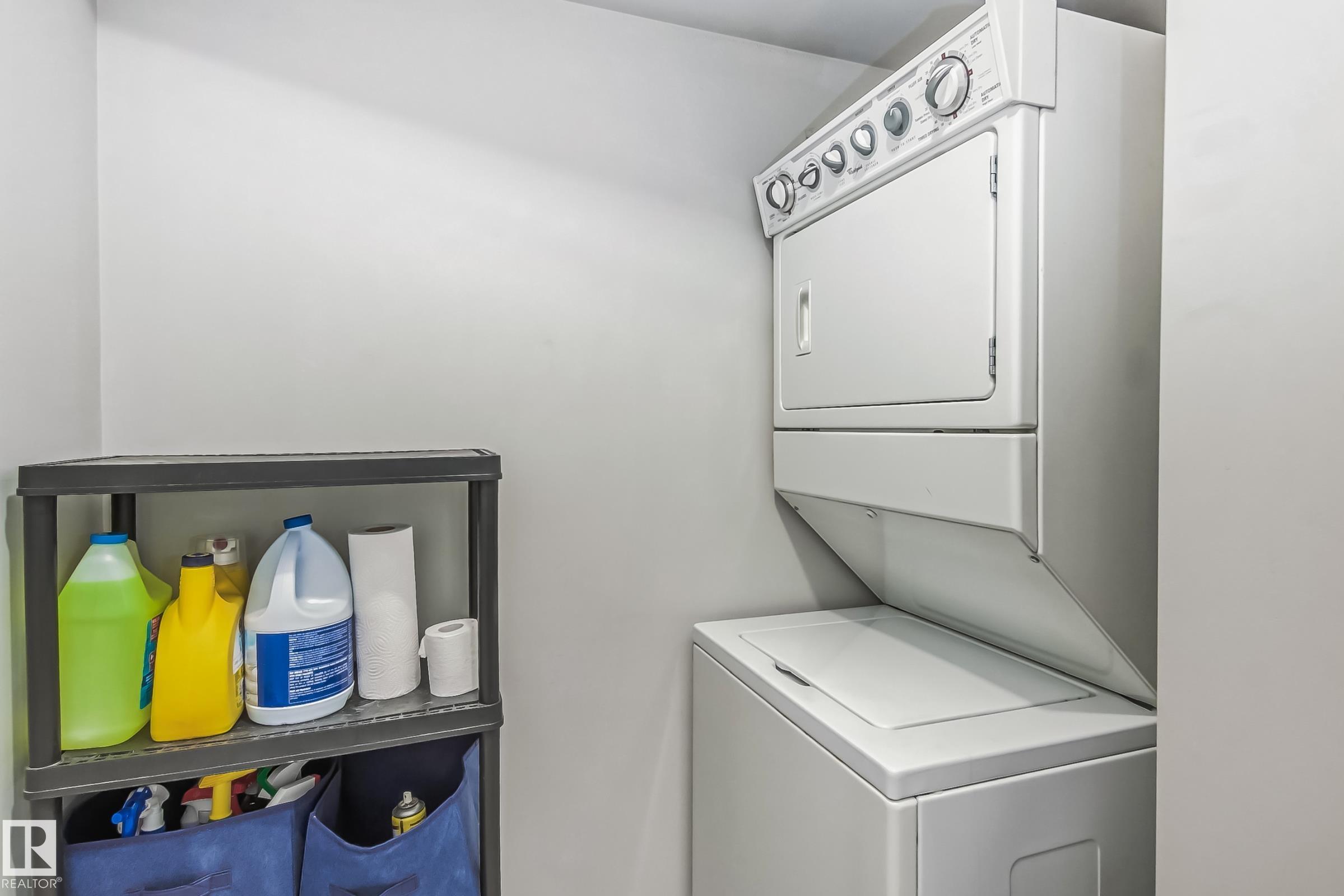 This cozy, 2 bed/2 bath, 854 sq ft unit is well lit with natural light due to its private corner location. It features A/C, a fireplace, stainless steel appliances, as well as a large wrap-around patio that is great for outdoor living and enjoying the city views. Your new home awaits in a vibrant neighborhood surrounded by the Ice District/Rogers Place Arena, MacEwan University, the LRT, and popular dining spots like the Lingnan, & Brew and Bloom. Additionally, the property offers heated underground parking; a valuable feature during the winter months in Edmonton. This property is popular due to its location and proximity to amenities. Come take a look!