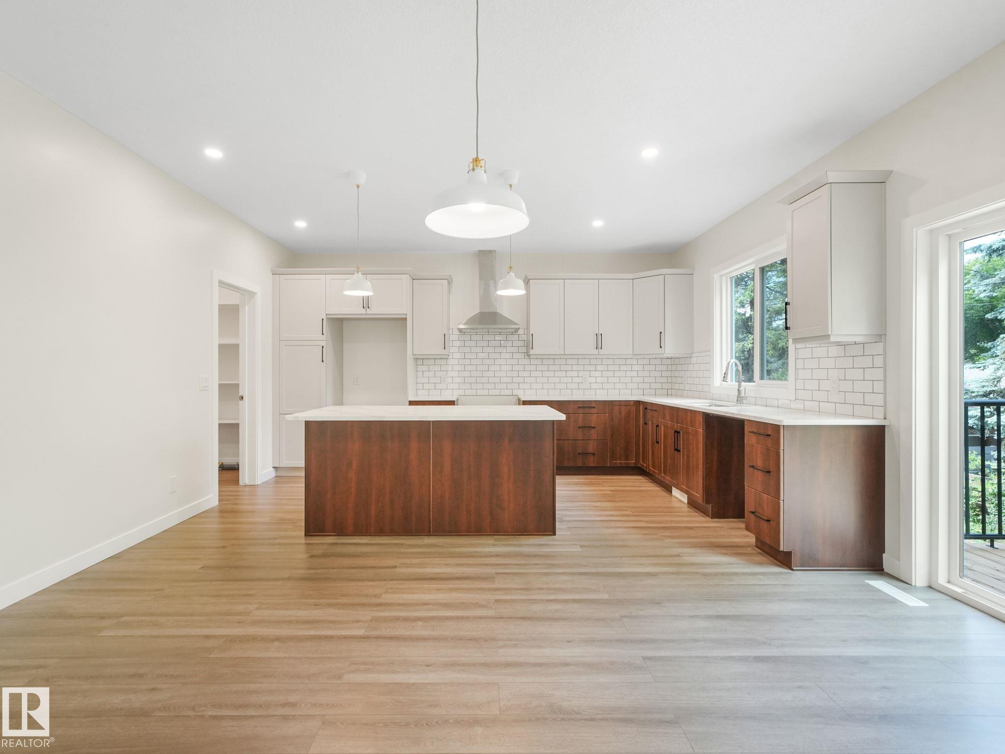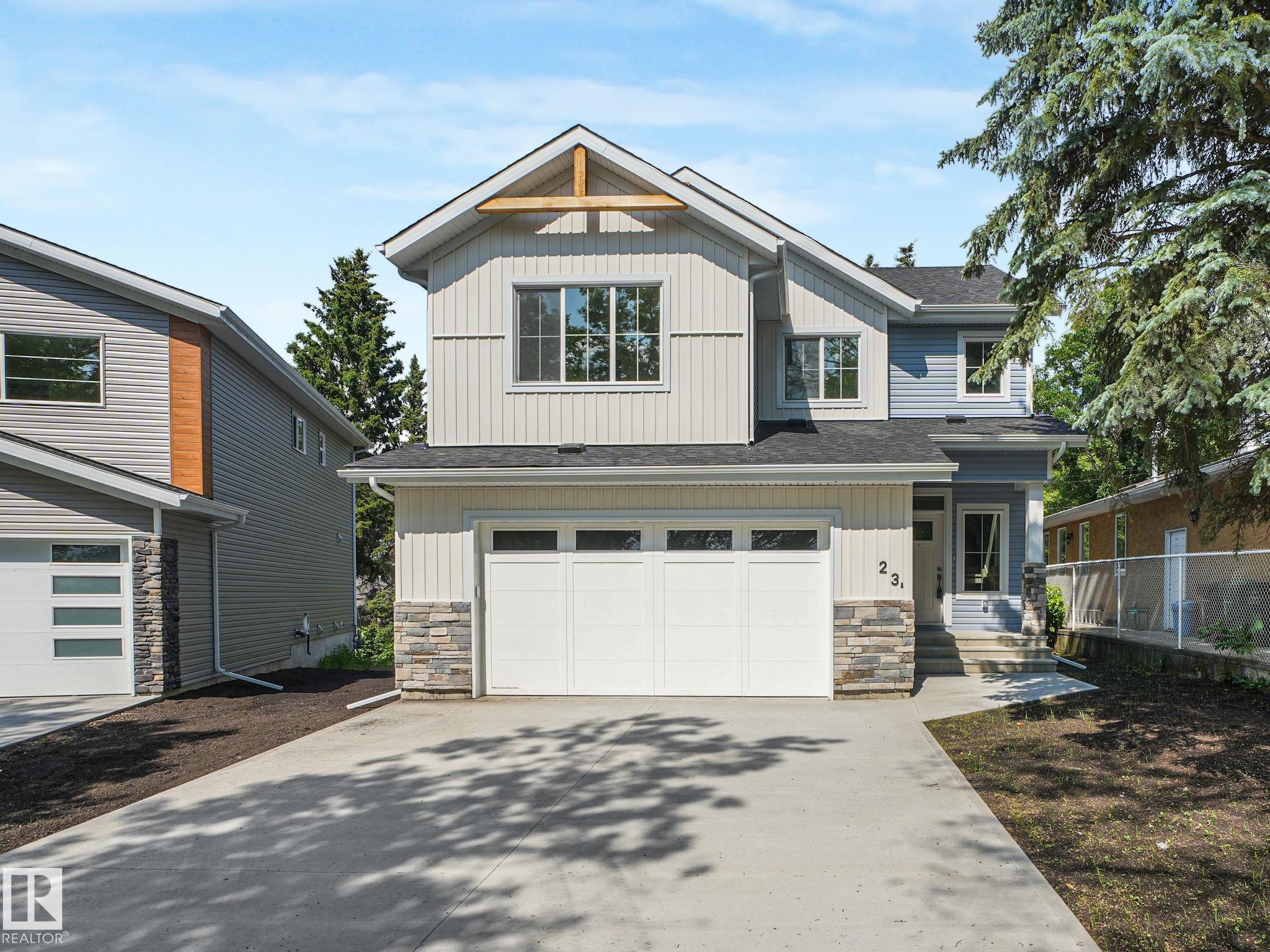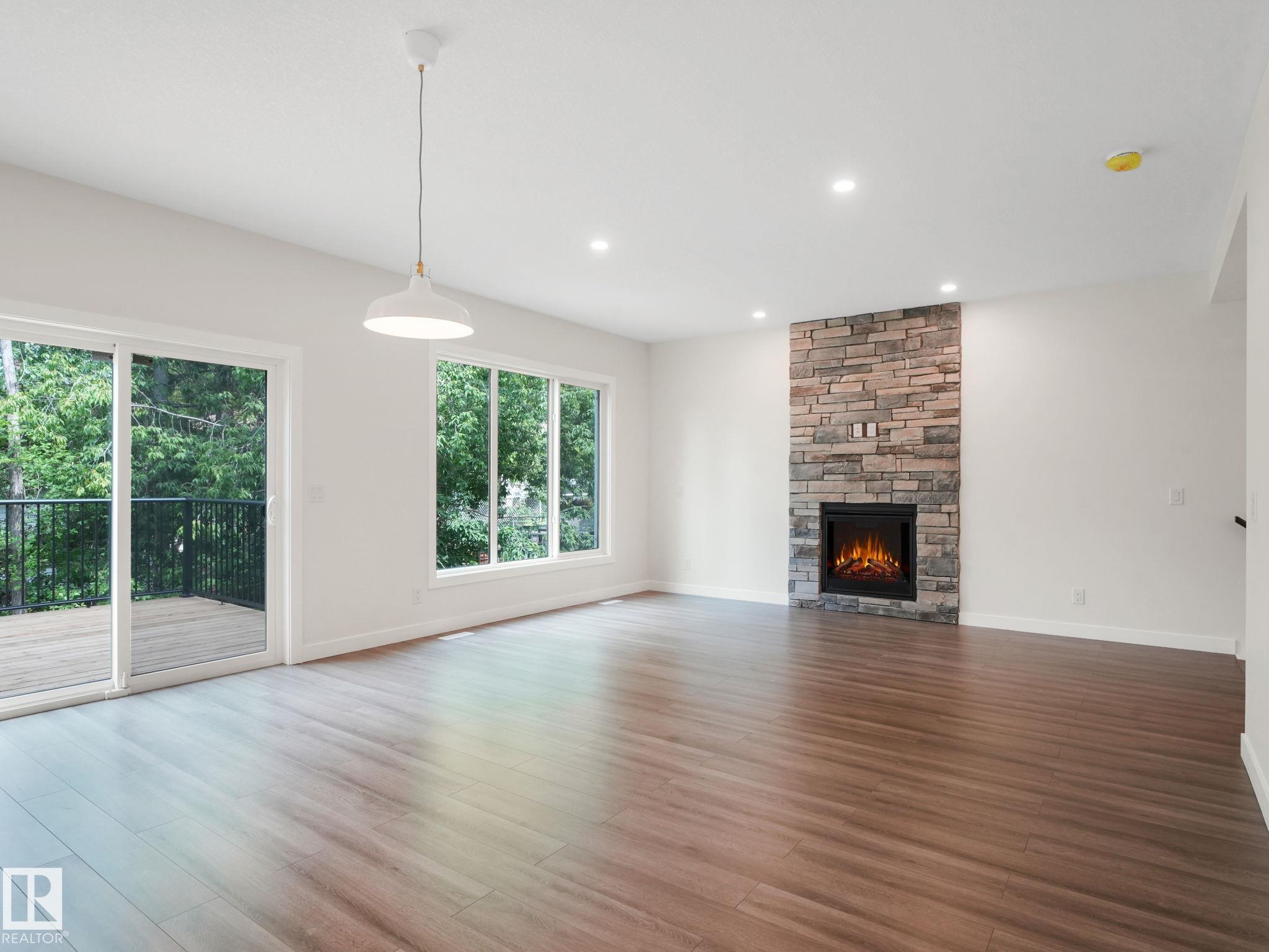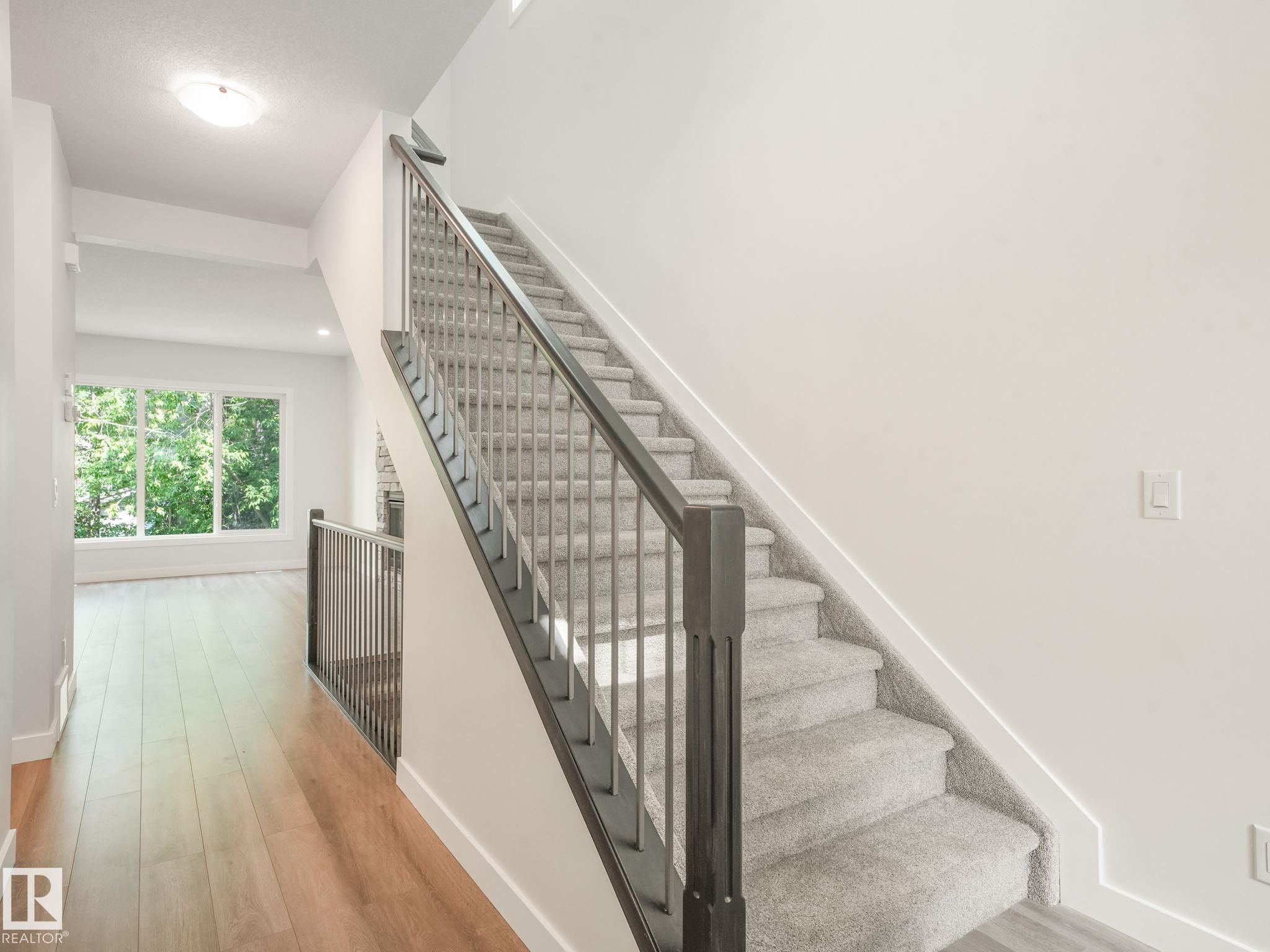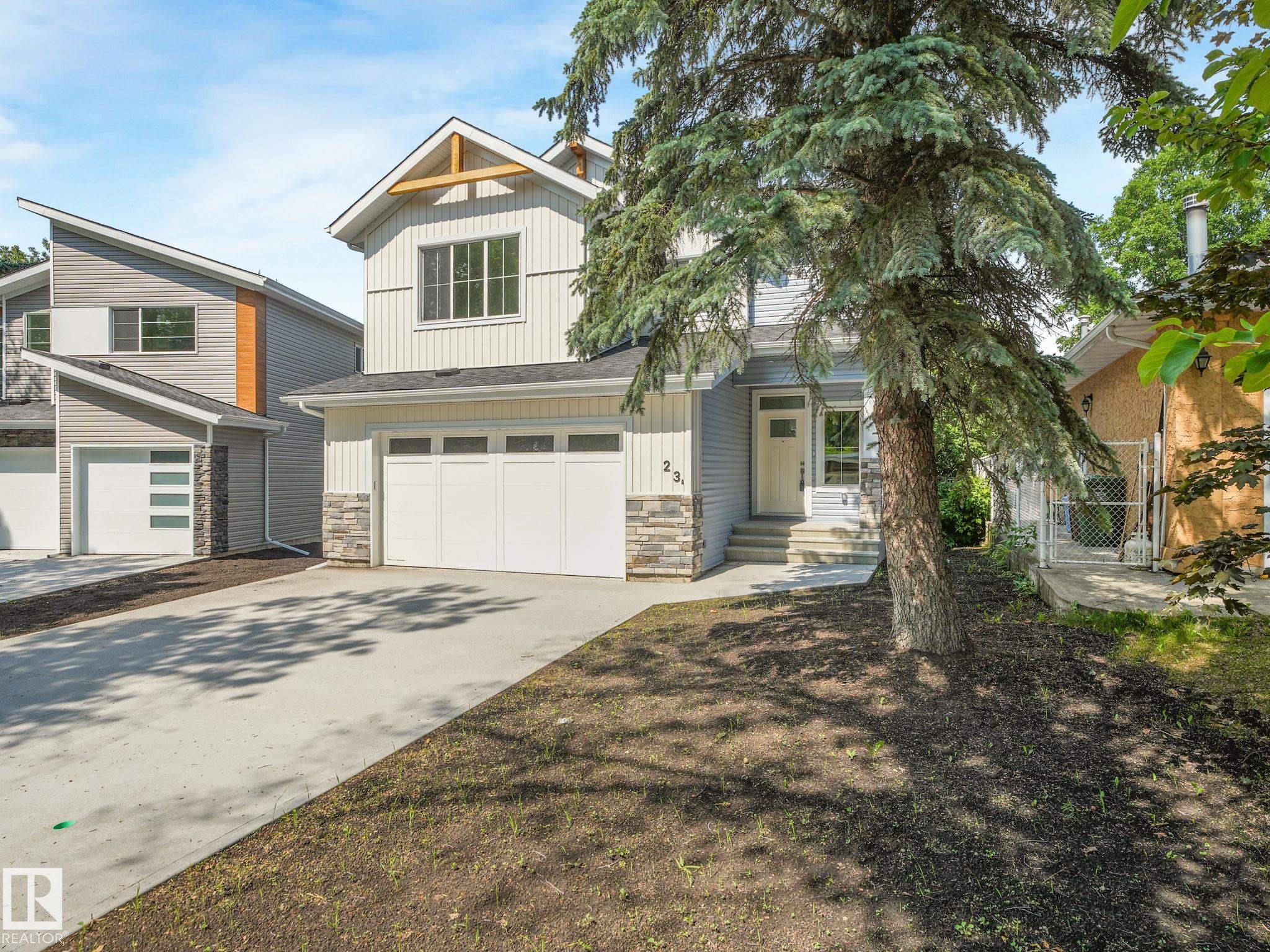 Location, location, location. This home has it all; walking distance to all levels of schooling, indoor swimming pool and rec centre, downtown, restaurants, shopping and the river valley. This stylish two-storey home blends comfort and function with thoughtful design. The main floor offers an open-concept great room with a gas fireplace, a spacious kitchen with granite counters, wood cabinets, a walk-in pantry, and direct access to a large backyard deck. Upstairs, you'll find three bedrooms, a four-piece bathroom, and a bright bonus room ideal for movie nights or a play area. The primary suite features a walk-in closet and private ensuite with soaker tub and separate shower. Finishes include custom maple railings, brushed nickel fixtures, white doors and trim, neutral paint, hardwood laminate flooring, and plush carpet. Only new house for sale in St Albert, in a mature neighborhood!