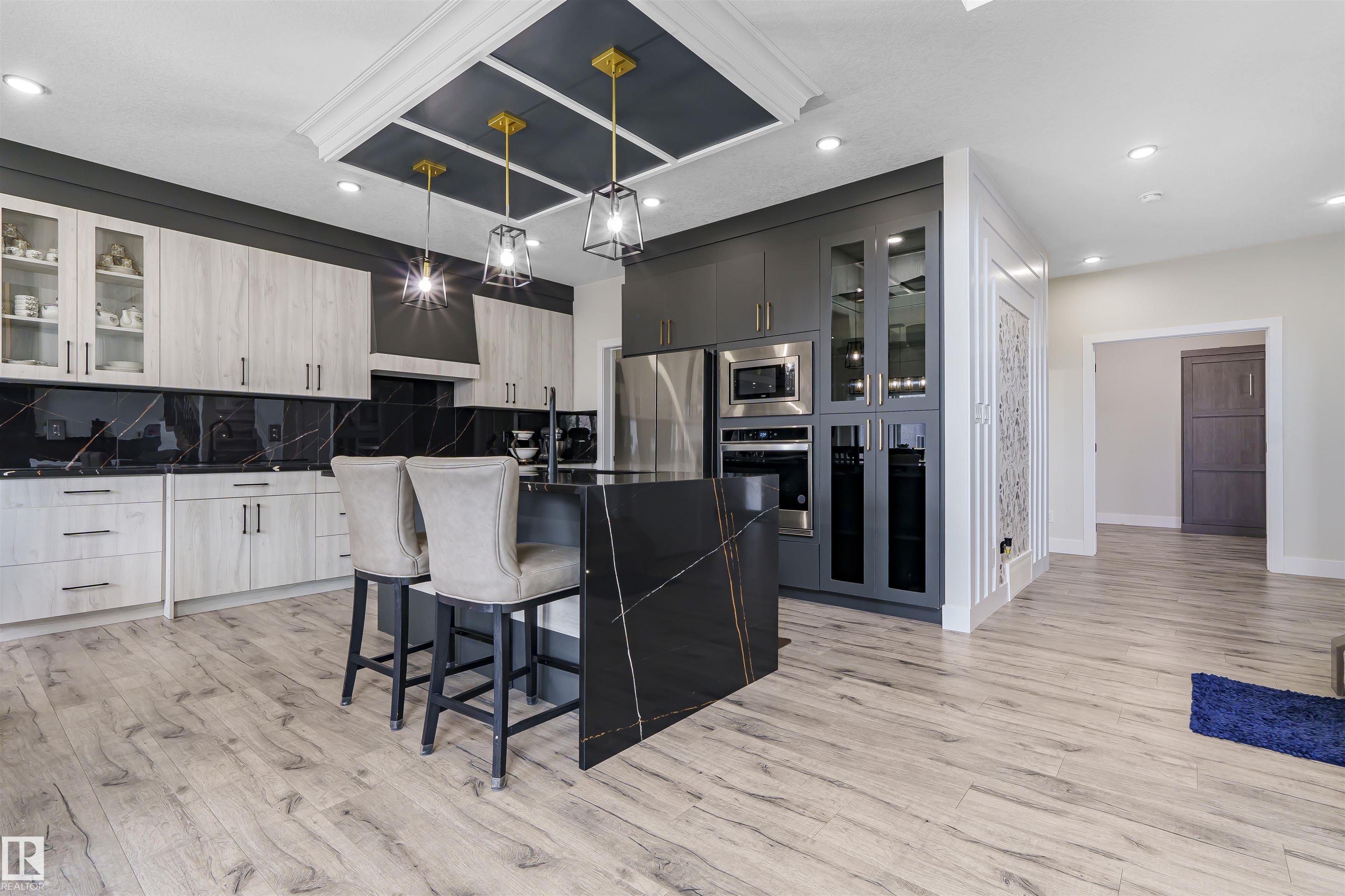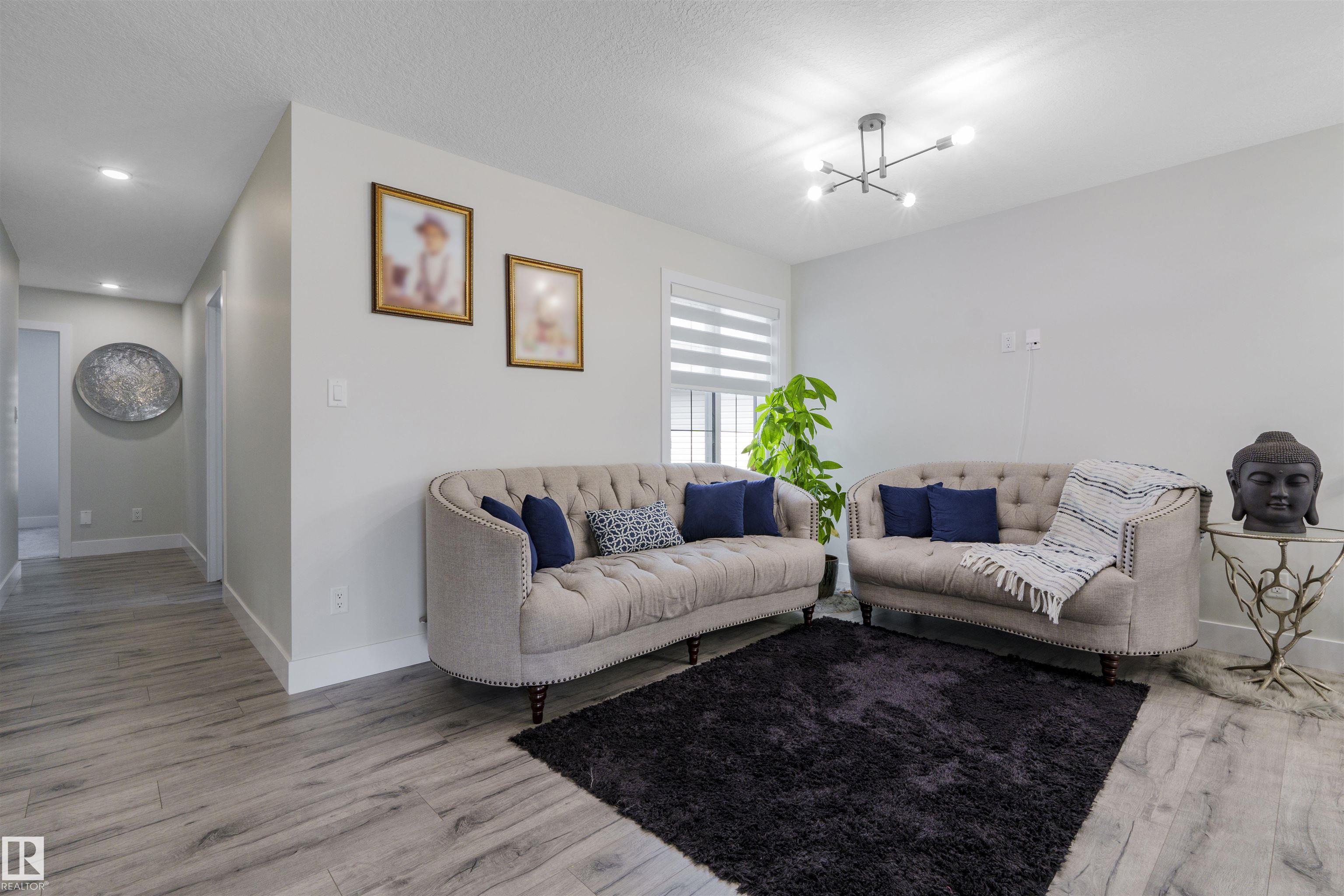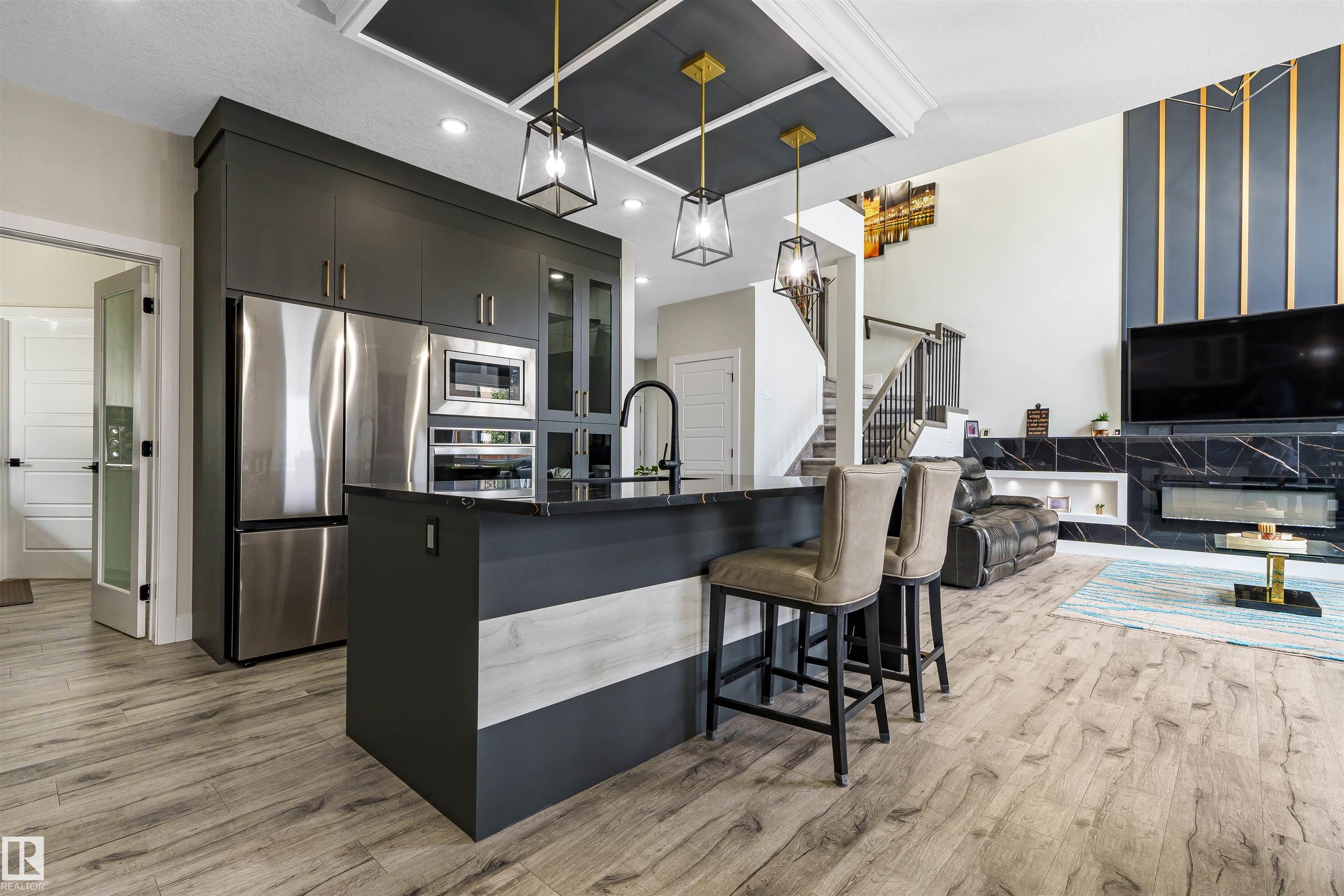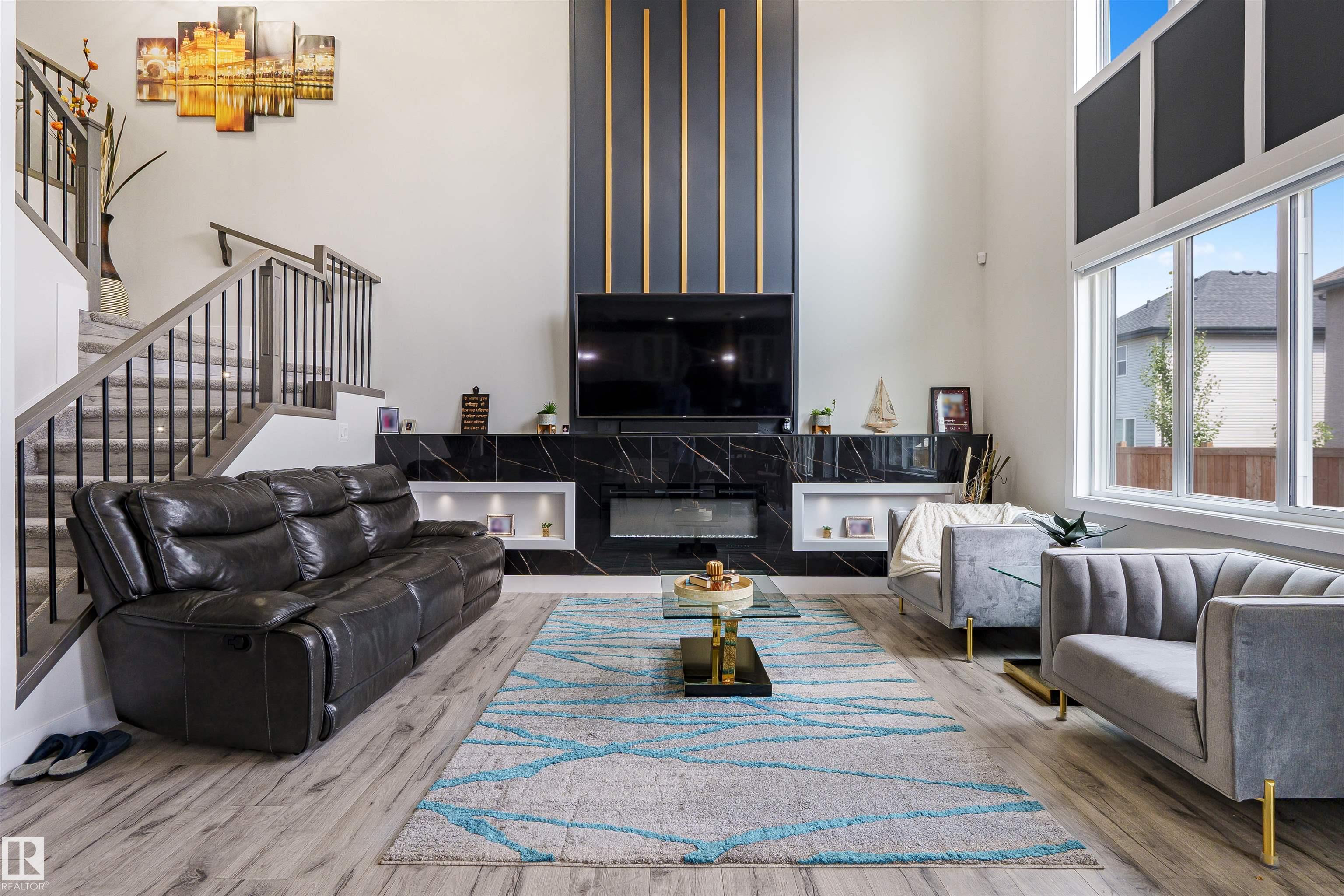 Experience luxury living in this elegant two-story home featuring a triple attached garage, nestled on a tranquil cul-de-sac in Place Chalereuse. Spanning nearly 2,800 sq. ft., this residence offers 5 bedrooms and 4 full bathrooms, including 2 ensuites, making it an ideal haven for a growing family. Step into an open-concept living space adorned with exquisite finishes and superior craftsmanship. The gourmet kitchen boasts a spacious island with a wet bar, quartz countertops, an ample dining area, and a convenient walk-through pantry. The living room, with its soaring ceilings and cozy fireplace, provides a warm and inviting space for family gatherings. The main floor also includes a bedroom and a full bathroom. Upstairs, you'll find 4 additional bedrooms, including a generous master suite with a private ensuite and walk-in closet, a bonus room, a laundry room, and a third bathroom. The basement, with a separate entrance, offers endless possibilities for customization. All appliances are included