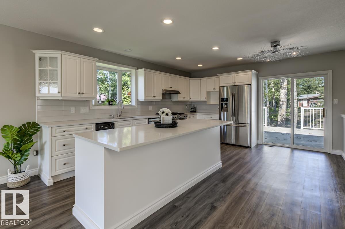 Beautiful view of the Lake!!!! Welcome to this stunning remodelled 4 season 1700 sq ft bungalow nestled in the charming Summer Village of Golden Days at Pigeon Lake. Renovated in 2025, this spacious 4-bedroom, 3-bath home blends modern comfort with a peaceful lakeside lifestyle. The bright, open-concept layout features a stunning white kitchen with stainless steel appliances, ideal for entertaining and everyday living. Cozy up by the fireplace in the generous living area, or retreat to the private primary suite complete with a walk-in closet and a stylish ensuite. Just steps from lake access, this second-row property offers the perfect balance of tranquility and convenience. A double detached garage provides ample parking and storage. Whether you're seeking a year-round residence or a weekend getaway, this home is a must-see at Pigeon Lake!