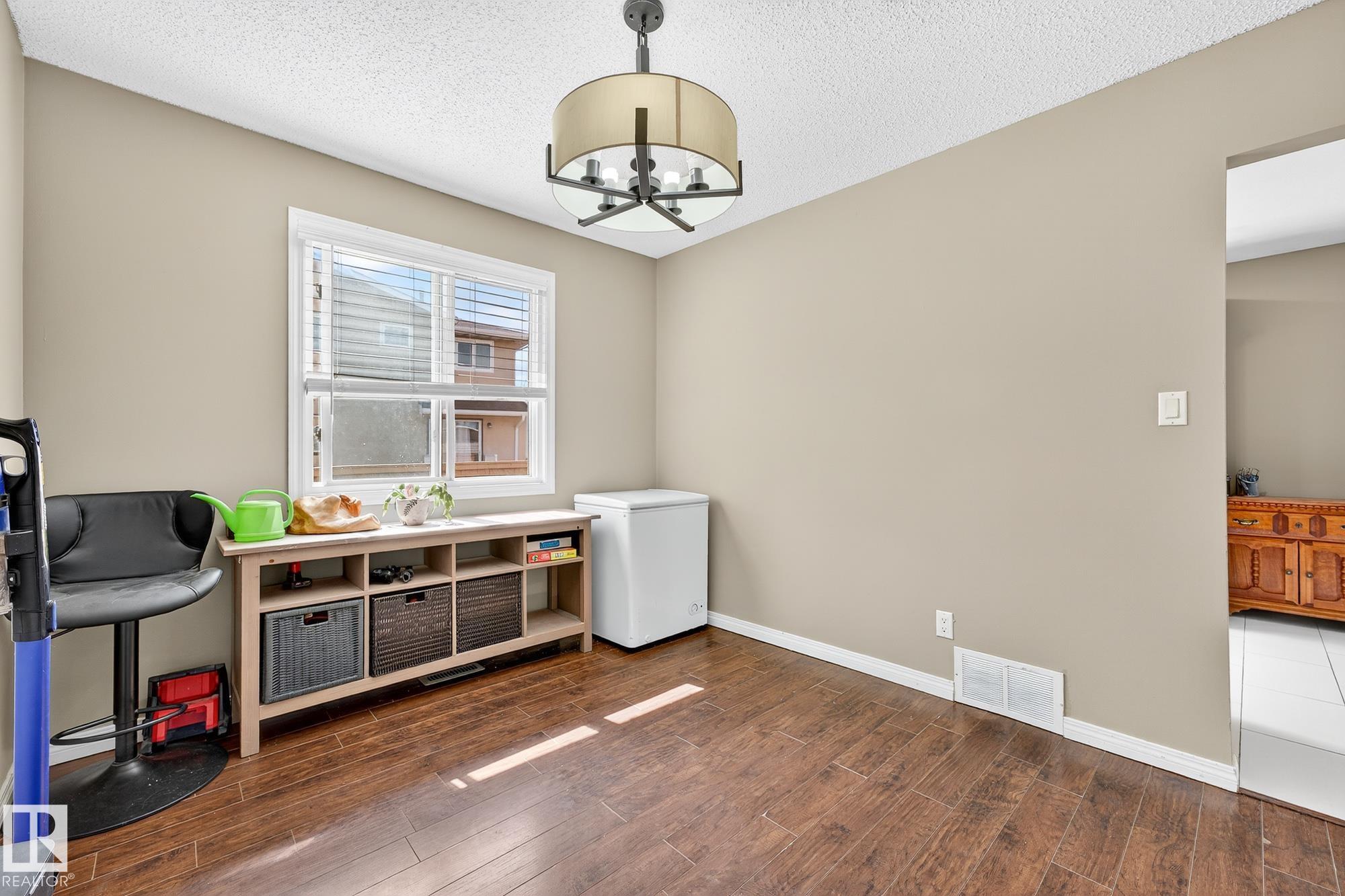 Fully finished townhouse in Lorelei that is walking distance to a school and has 4 beds and 3 baths! Situated on a quiet street with parking for 2 vehicles and a fenced yard! Inside the home has been freshly painted and has seen some updates over the years, including A/C. The kitchen has modern dark cabinetry and stainless steel appliances, a formal dining room and a spacious livingroom with bay window. Upstairs has new carpet and 3 bedrooms, with the primary bed having 2 closets. Finished basement has big rec room, 4 piece bath and a 4th bedroom, plus laundry room. Well maintained condo development with vinyl windows being done as well as shingles.