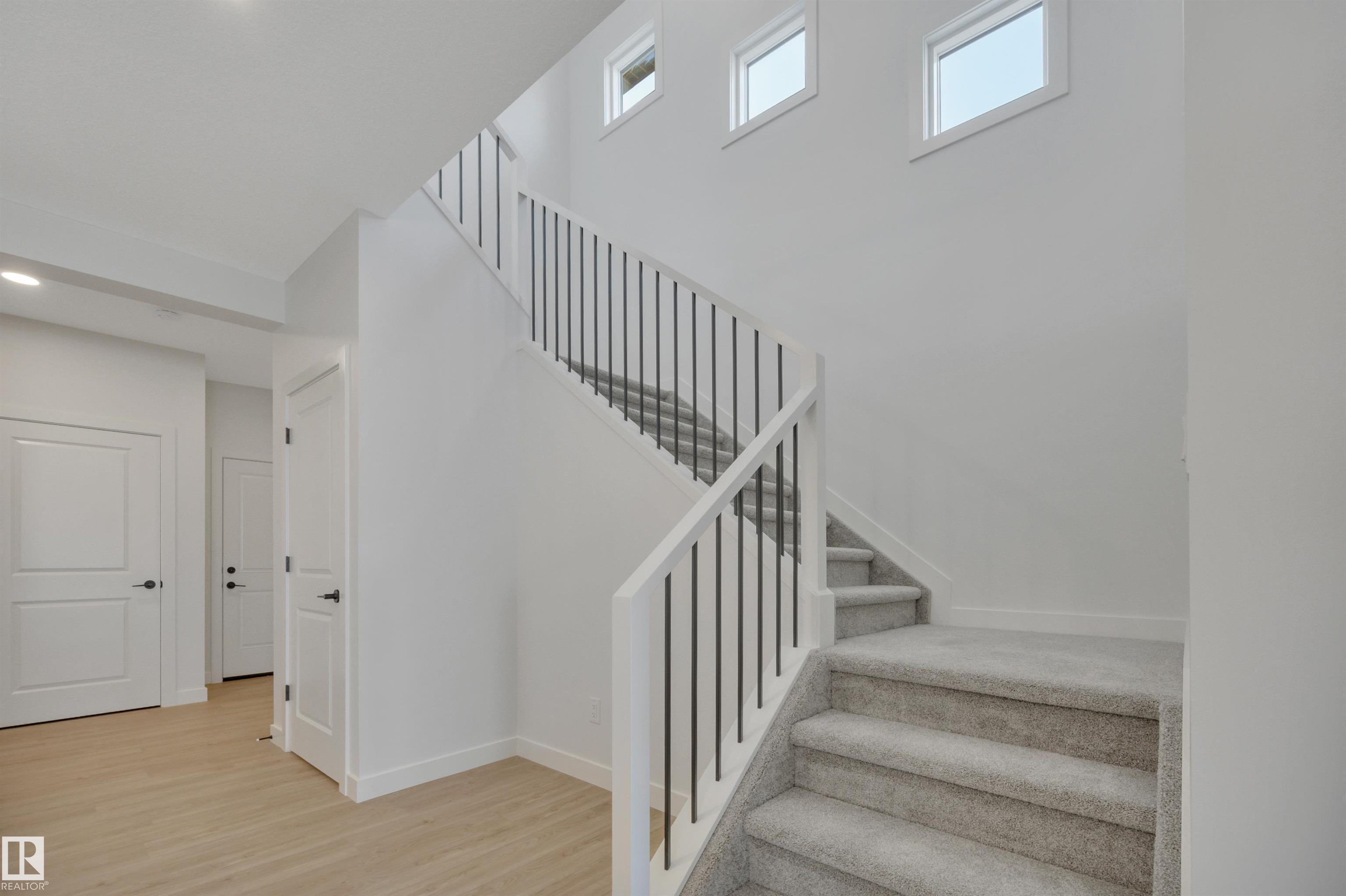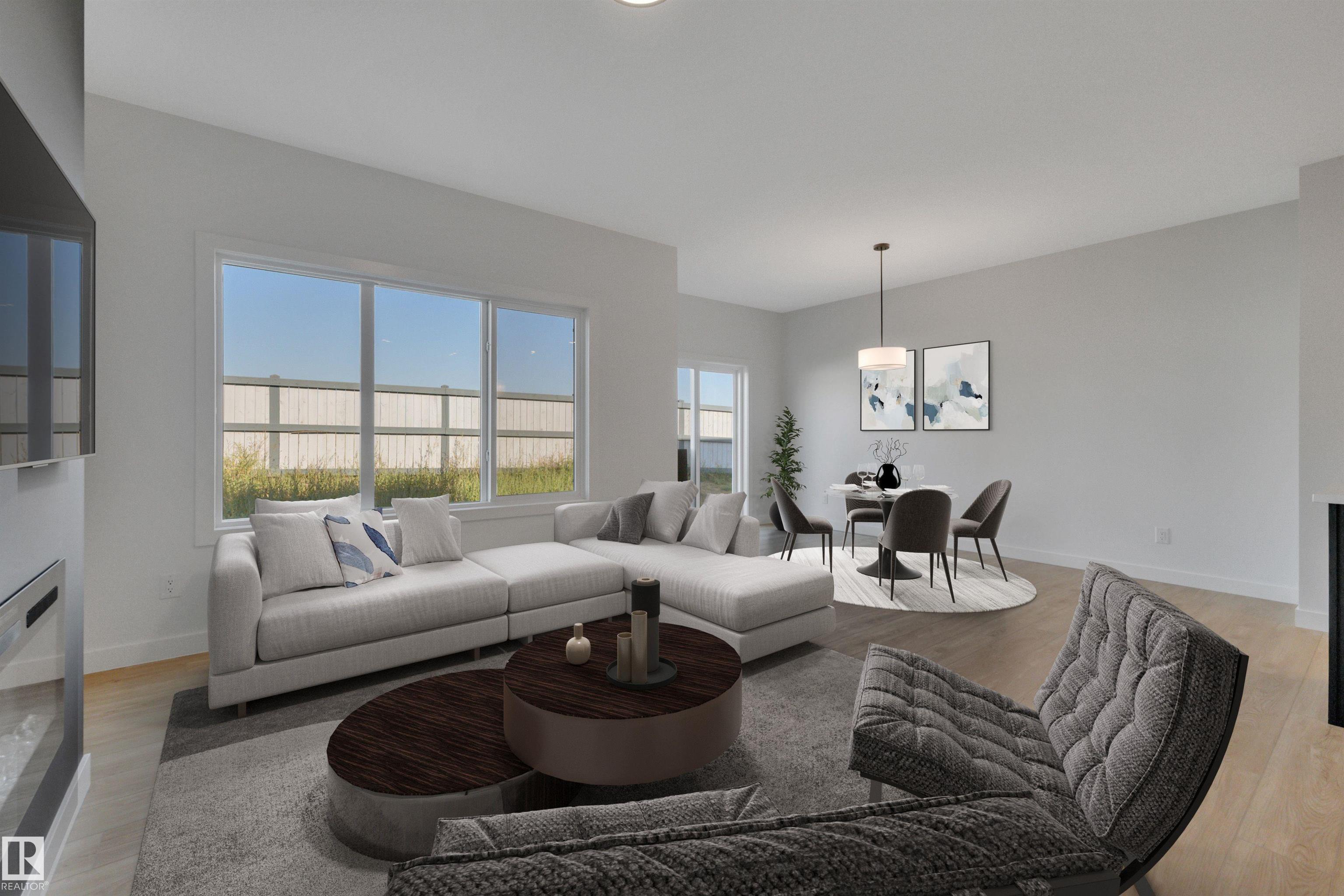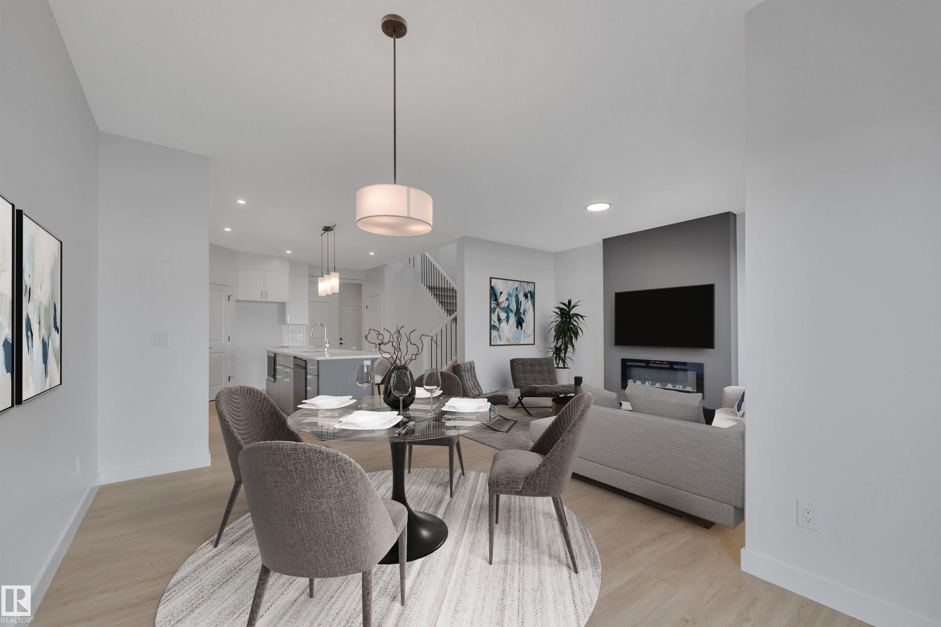 Welcome to Jesperdale, where smart & stylish living meet the rhythm of modern life. This nicely designed home features OPEN LAYOUT that perfectly suits families, first-time buyers, or anyone looking to right-size without compromise. Step into a bright, open-concept main floor where the kitchen, dinette, & great room flow seamlessly together. FULL QUARTZ COUNTERTOPS, & large island offering functionality. Cozy FIREPLACE serves as the heart of the living rm, ideal for chilly evenings. Upstairs, discover 3 bdrms, including primary bdrm with WALK-IN CLOSET, ensuite featuring DUAL SINKS with walk-in shower. CENTRAL BONUS ROOM provides a flex space for movie nights/games room, & convenient UPPER-LEVEL LAUNDRY ROOM simplifies tasks. Additional features include 9' CEILINGS, two-tone kitchen cabinets, TRIPLE-GLAZE WINDOWS, a SIDE ENTRANCE for potential legalized basement SUITE, and easy access to amenities like Home Depot, the Tri-Leisure Recreation Centre, Links Golf Course, and schools. Quick possession