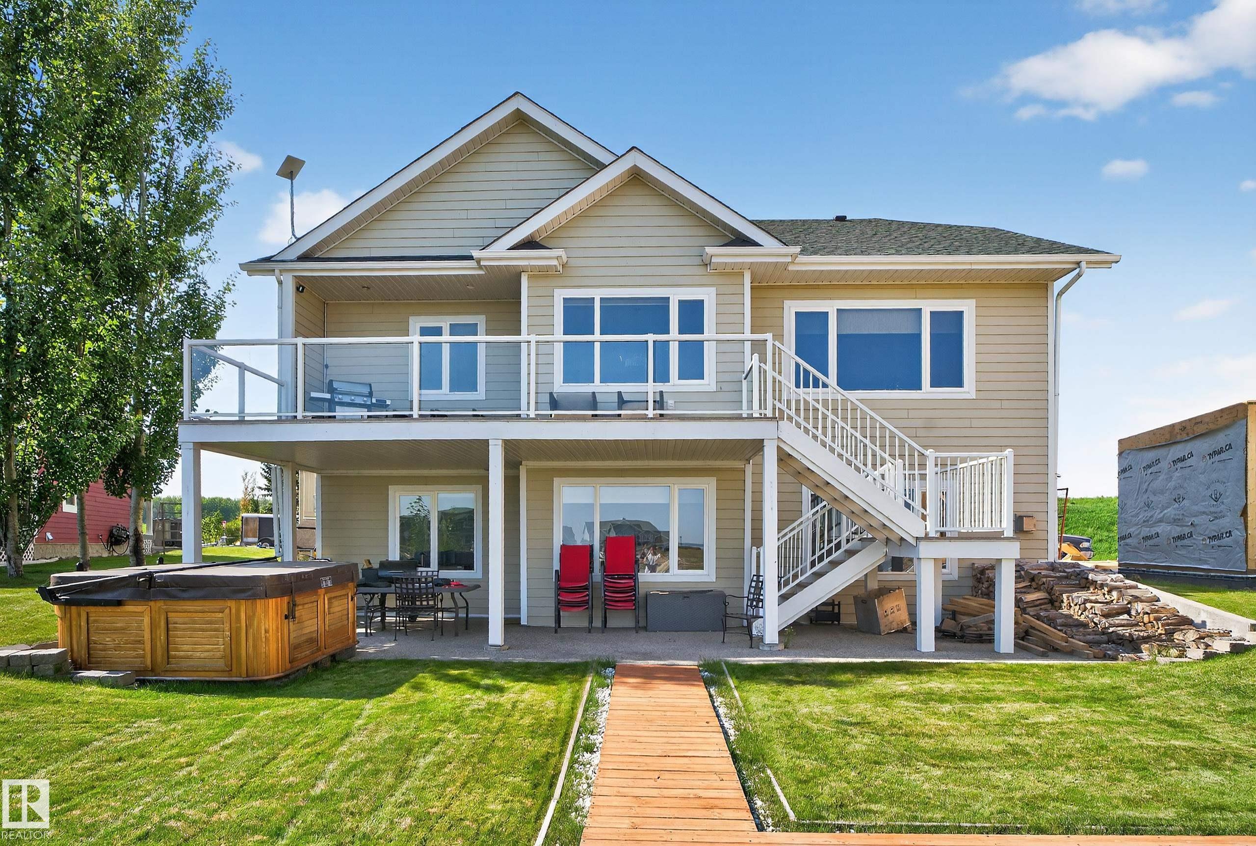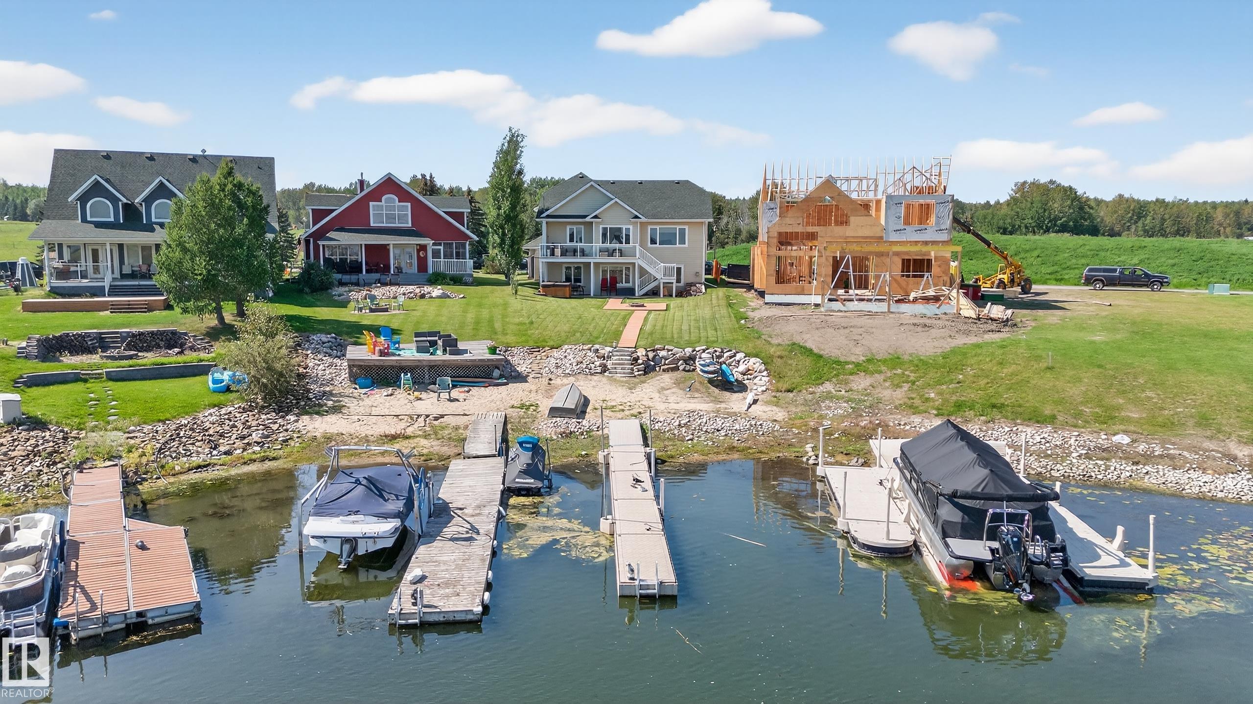 LAKE FRONT PROPERTY | WALK OUT BASEMENT | PRIVATE DOCK | RENOVATED | DOUBLE ATTACHED GARAGE | 3300+ SF | HUGE LOT | 5 BED 3 BATH | Welcome to 32 Sunset Harbour, a stunning lakefront home just 45 mins from the Edmonton Airport. Set in a private gated community on Pigeon Lake, this property offers a perfect mix of comfort and lifestyle with its own private dock & breathtaking lake views. The main floor showcases an open-concept kitchen, living room, and dining area, along with 2 bedrooms & a full bathroom. Upstairs, the master retreat offers privacy and relaxation with its own ensuite and generous closet space. The finished walk-out basement expands the living space with a large recreation area, 2 bedrooms, and a full bathroom, making it ideal for guests or entertaining. Newer roof, boiler, deck, countertops & floor. A double attached garage provides convenience, while the walk-out design connects seamlessly to the outdoors. Perfect for a year-round residence or a weekend getaway home.