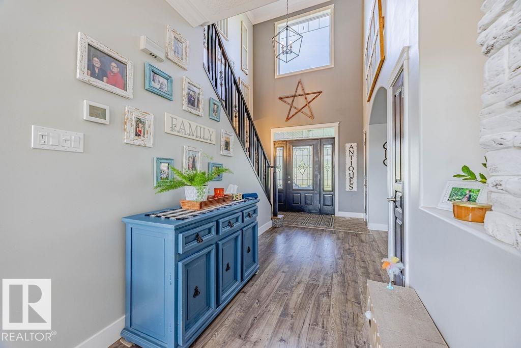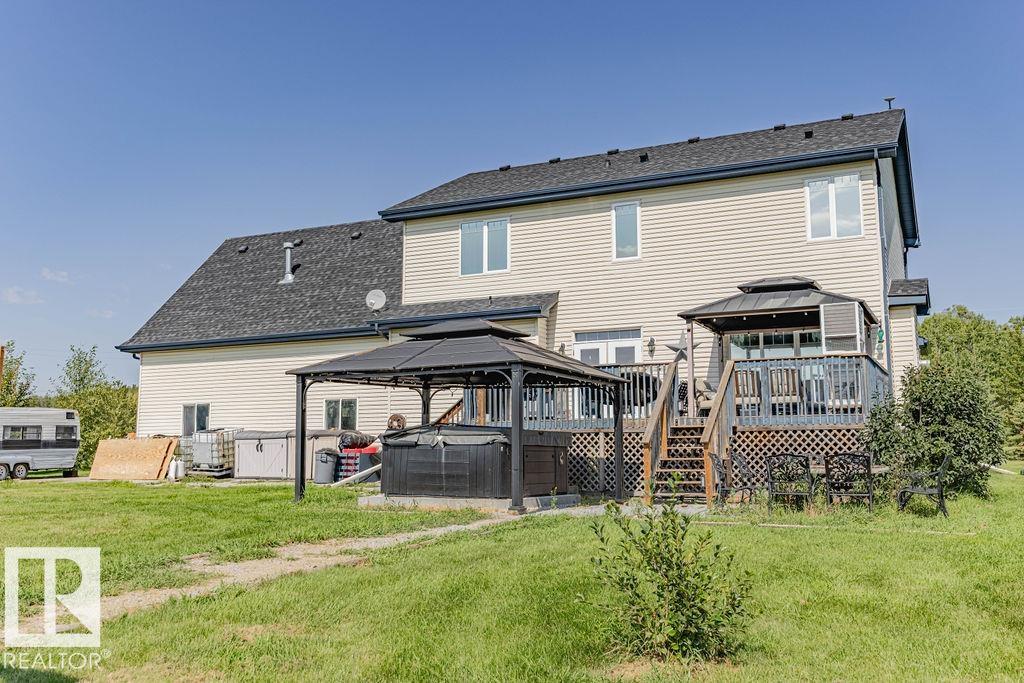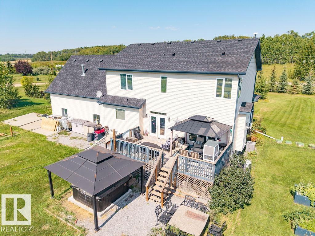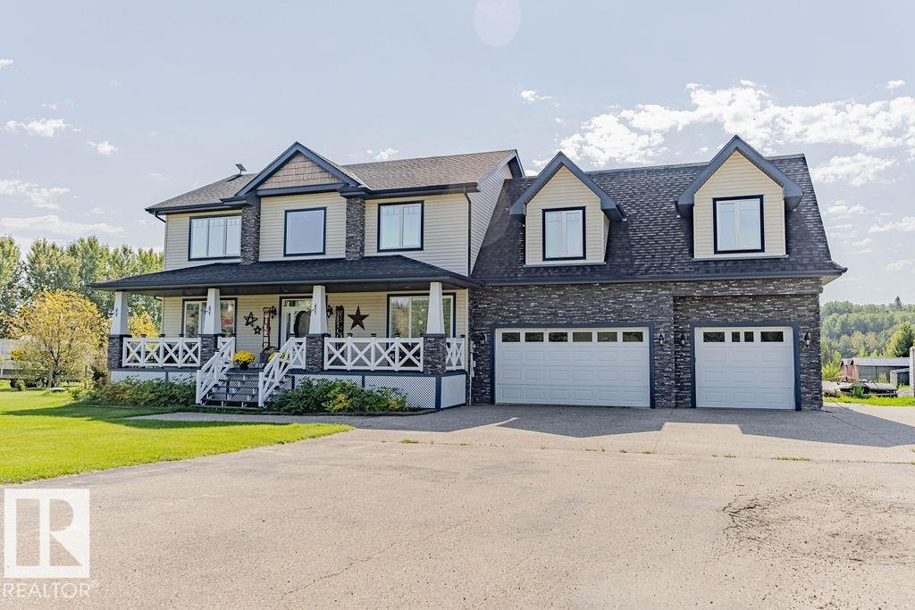 Stunning 5-bedroom acreage on 1.64 acres backing onto nature preserve (Ducks Unlimited). Just a short drive to St. Albert, Spruce Grove or Edmonton. This move-in ready home features 9-ft vaulted ceilings, tile & hardwood flooring, and a designer kitchen with black granite counters, stainless steel appliances & walk-through pantry. A spacious mudroom, main floor laundry & den add convenience. Upstairs, enjoy a large bonus room with gas fireplace, a primary retreat with walk-in closet & 5-pc ensuite, plus 2 more bedrooms & full bath. The fully finished basement offers in-floor heating, 2 bedrooms & 4-pc bath. Outside boasts a covered front porch, back deck, fenced yard, paved driveway & aggregate walkways. Acreage living at its best!