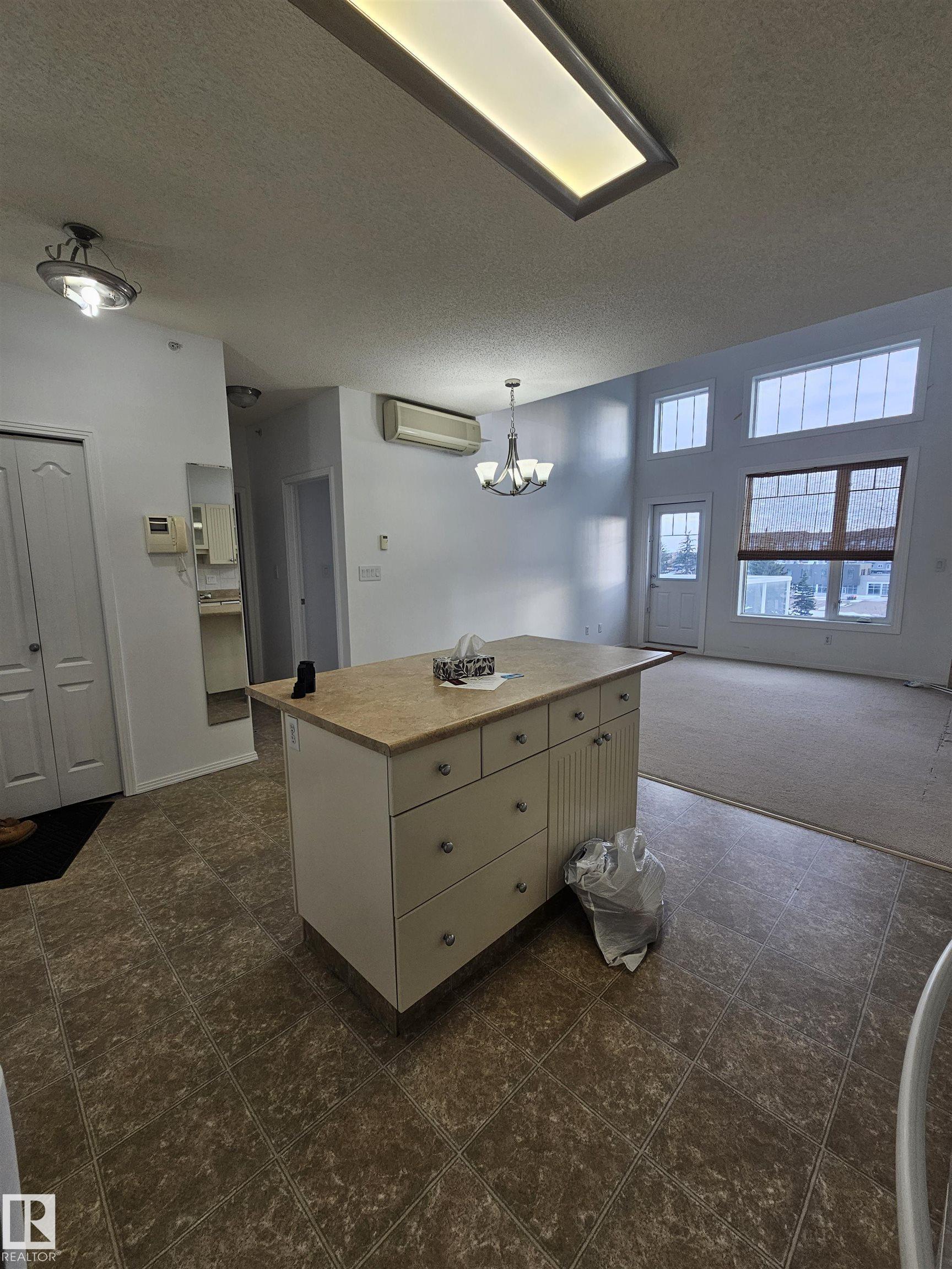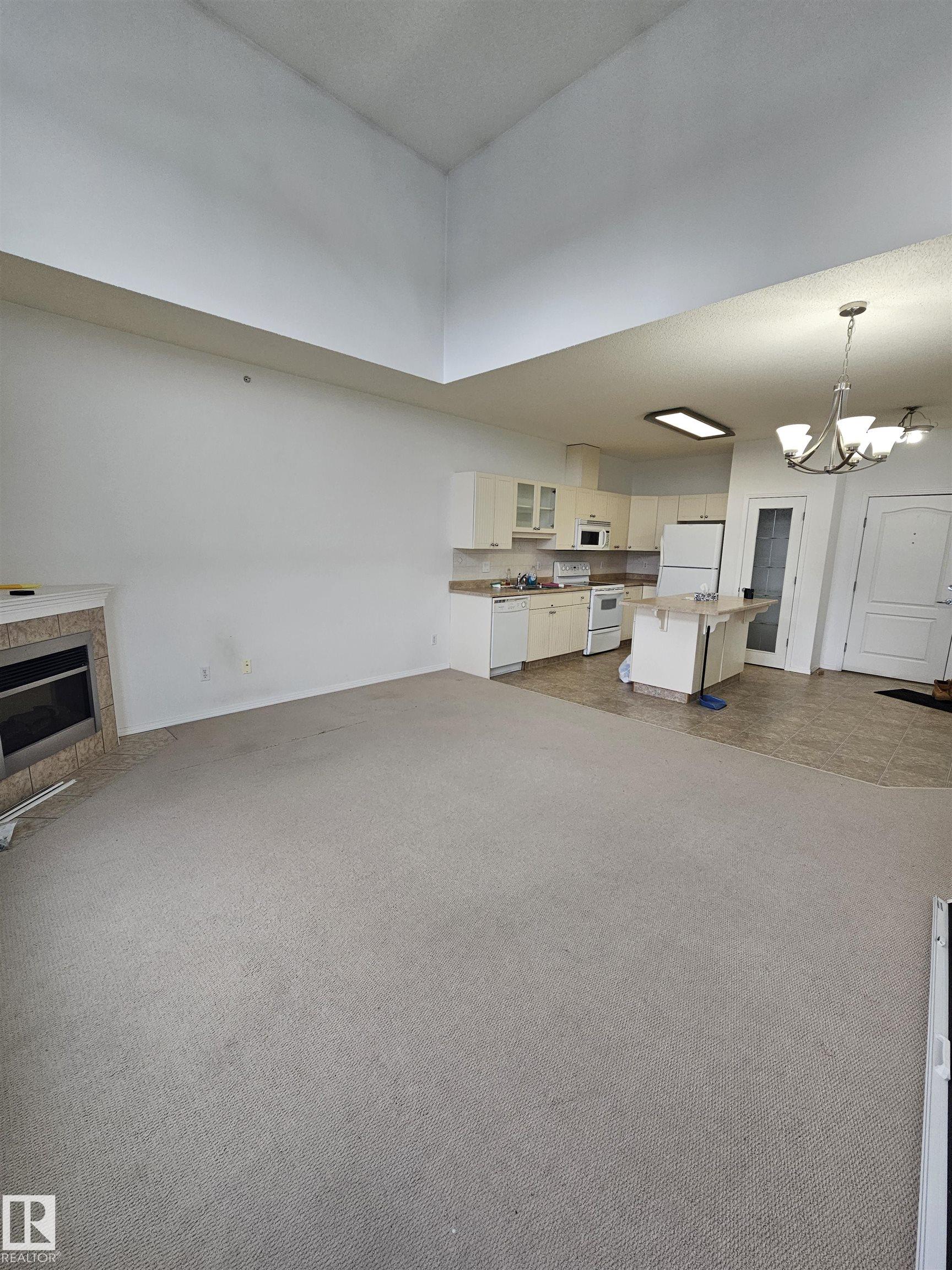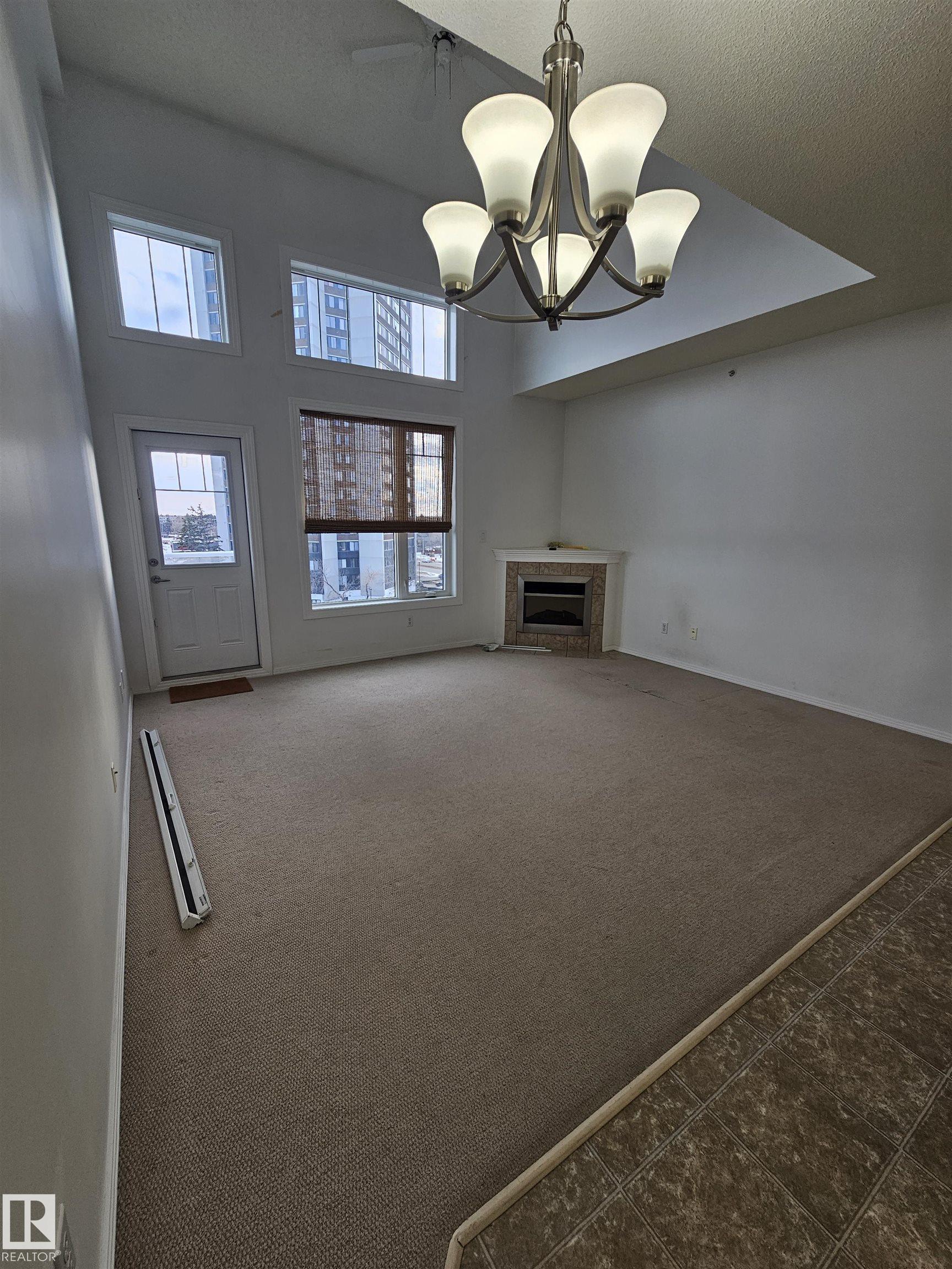 Welcome to the top floor of Californian Lansdowne. Situated in an incredible location just off Whitemud and close to Southgate LRT, this condo is just a few stops from UofA, walking distance to TRANSIT and plazas. Being on the top floor, you?ll enjoy the comforts of a quiet suite. Included is a kitchen with lots of cupboards and a center island. This space is ideal for entertainment with a cozy fireplace in the adjacent living room and a 14? ceiling. It has a spacious bedroom, good-sized closet, and convenient in-suite laundry with extra storage space. A south facing balcony with a nice open view provides a fantastic area for relaxation. Amenities include a guest suite available for booking for overnighters, large social hall, a gym, and car wash bay for your vehicles! Complete with underground parking and an enclosed storage unit, this condo is great for singles, young couples, or those looking to retire. The AC unit needs to be re-installed as it was uninstalled for building renovations.