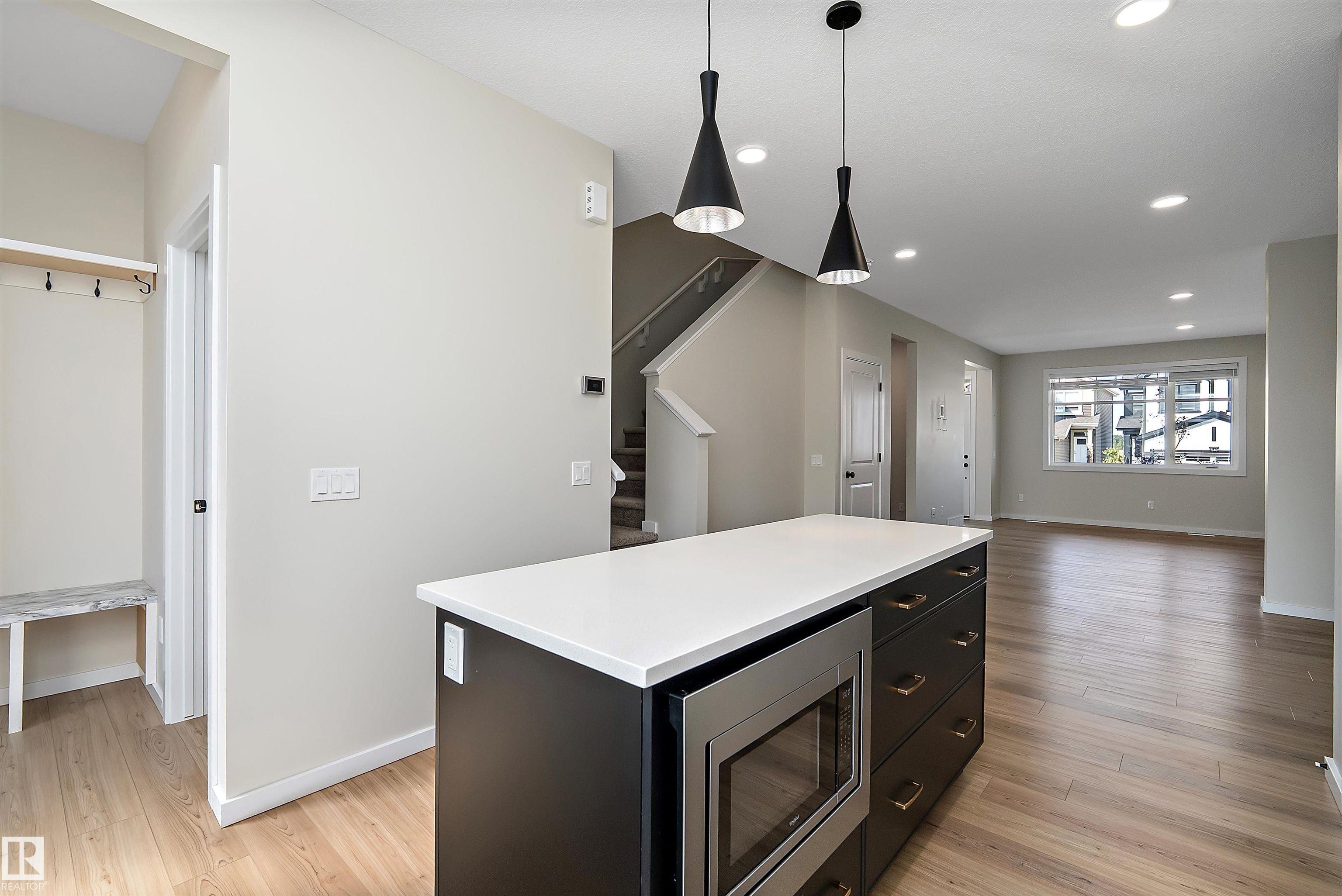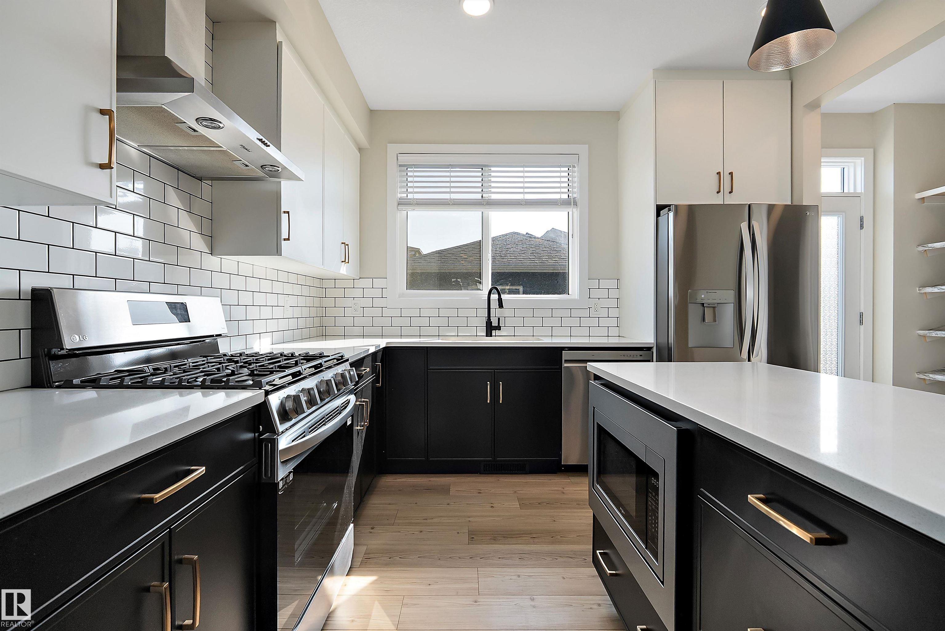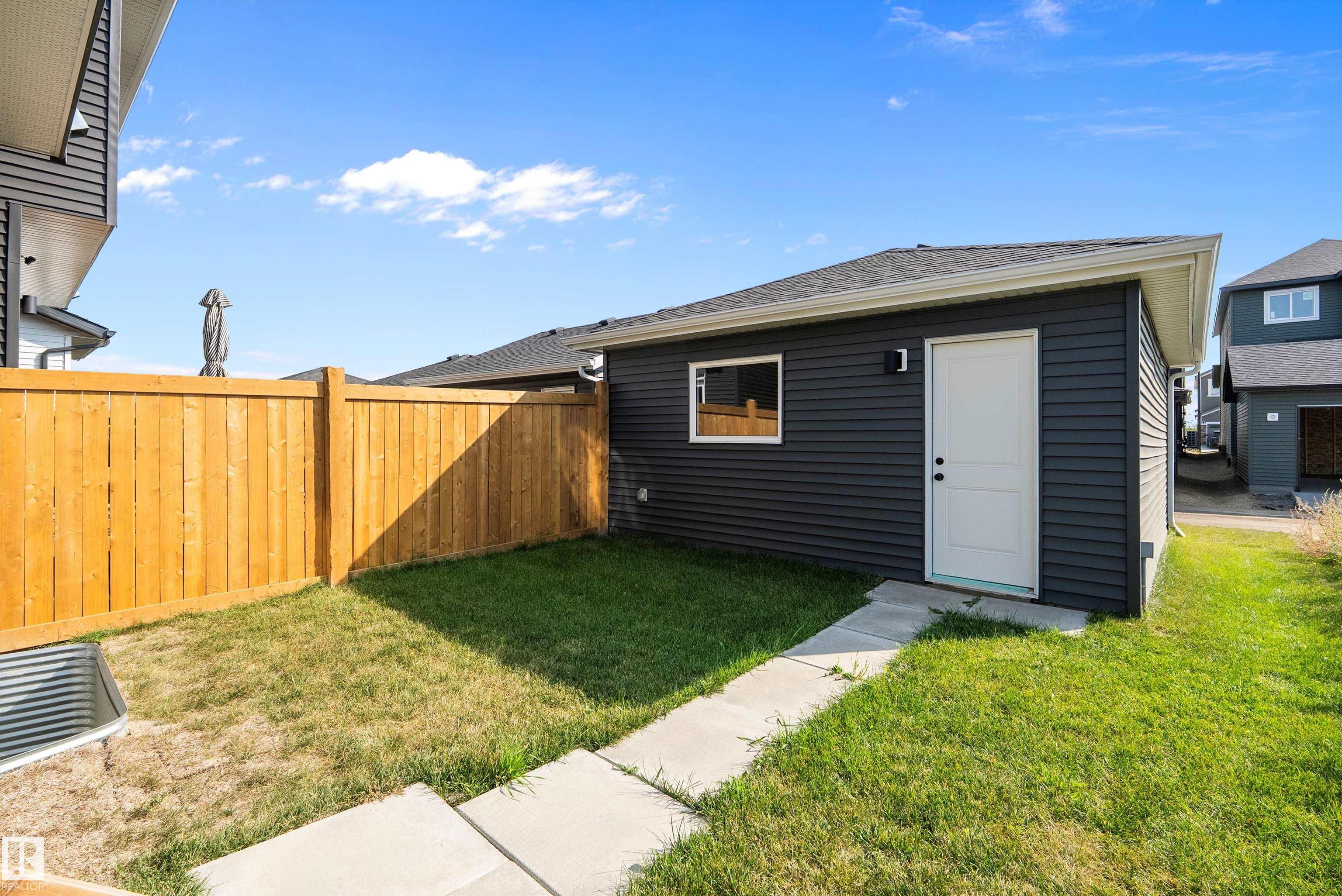 BETTER THAN NEW, this 1534 sq. ft. QUALITY BUILT "HOMES BY AVI, 2 STOREY, is ready for IMMEDIATE POSSESSION. GREAT ROOM floor plan featuring VINYL PLANK flooring, contemporary WHITE CABINETRY with upgraded STAINLESS APPLIANCES, including a GAS STOVE (220 is in for electric) and WATER/ICE feature on the REFRIDGERATOR plus QUARTZ COUNTERS and modern BRASS ACCENTS. A 2 piece bath & handy mud room off the back door leads to the SUNNY SOUTH YARD and DOUBLE DETACHED GARAGE that is insulated & drywalled! Up to a SPACIOUS PRIMARY that has a WALK IN CLOSET & 3 PIECE BATH, 2 additional bedrooms, a 4 piece main bath & CONVENIENT 2ND. FLOOR LAUNDRY. The basement features a SEPARATE ENTRANCE from outside and is ready for future development. The yard features low maintenance landscape and a brand new fence on one side! ELAN is a lovely new area in West BEAUMONT featuring PARKS, PLAYGROUNDS, WALKING TRAILS and wonderful GATHERING SPACES for FAMILIES and FRIENDS! It is PERFECT!