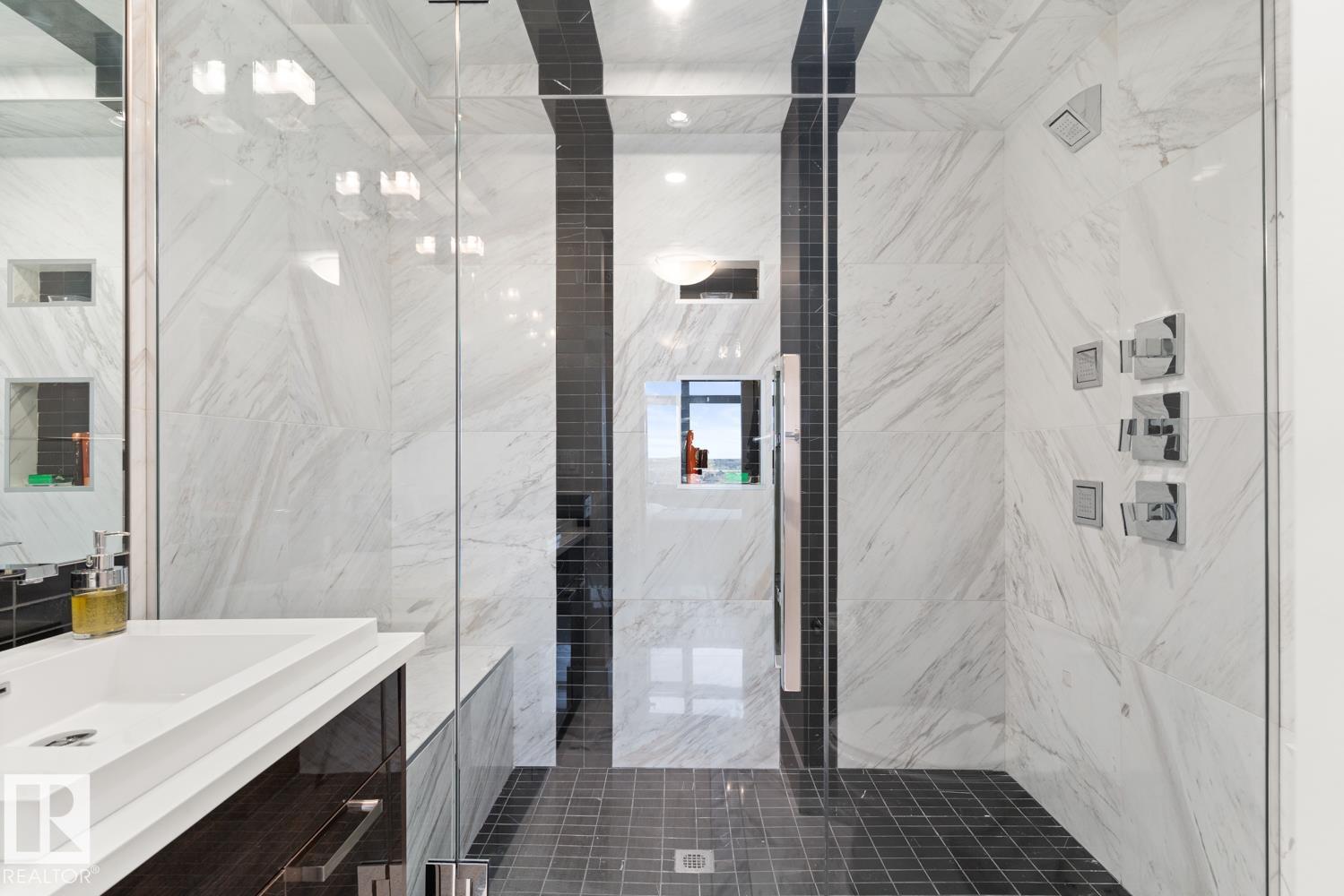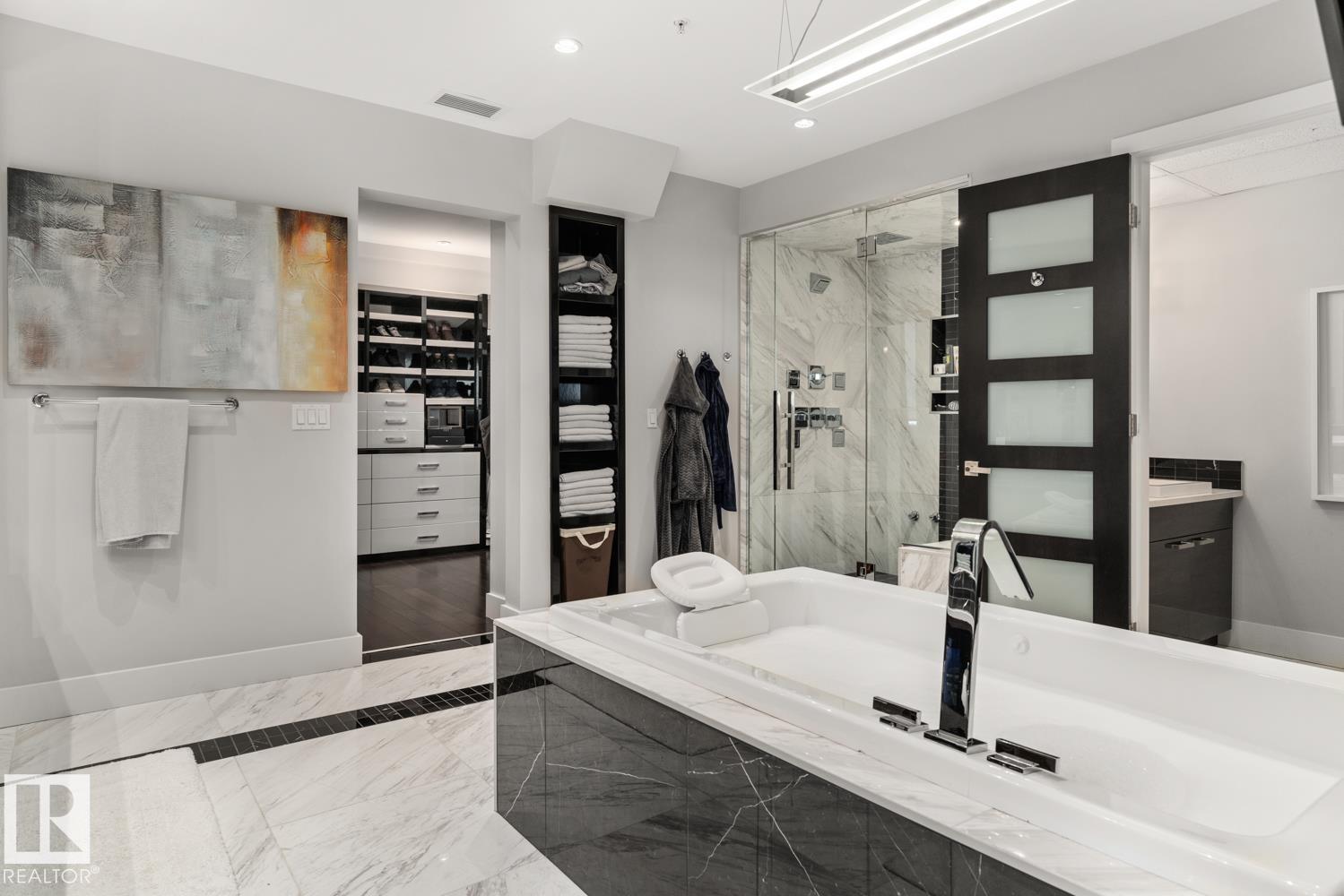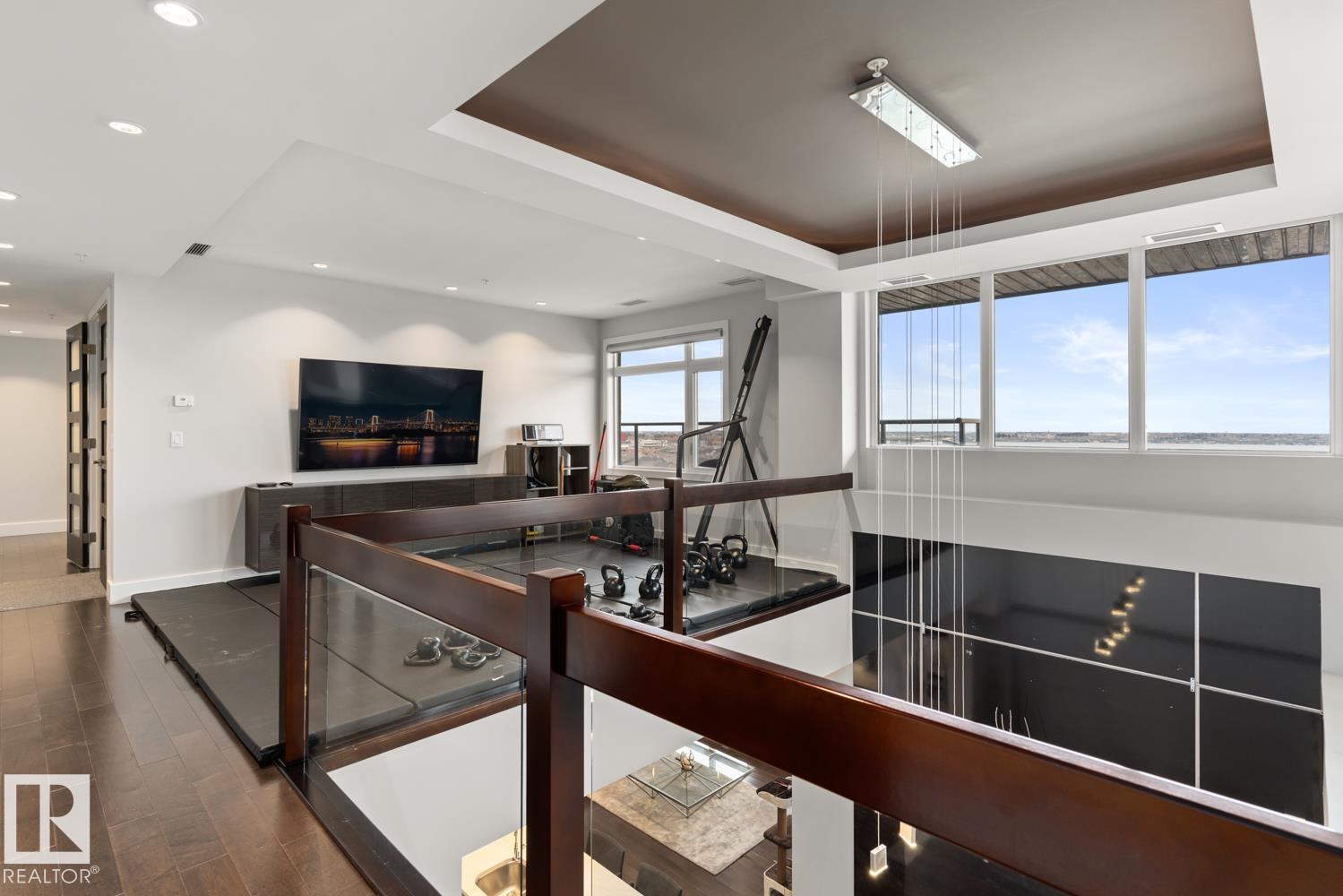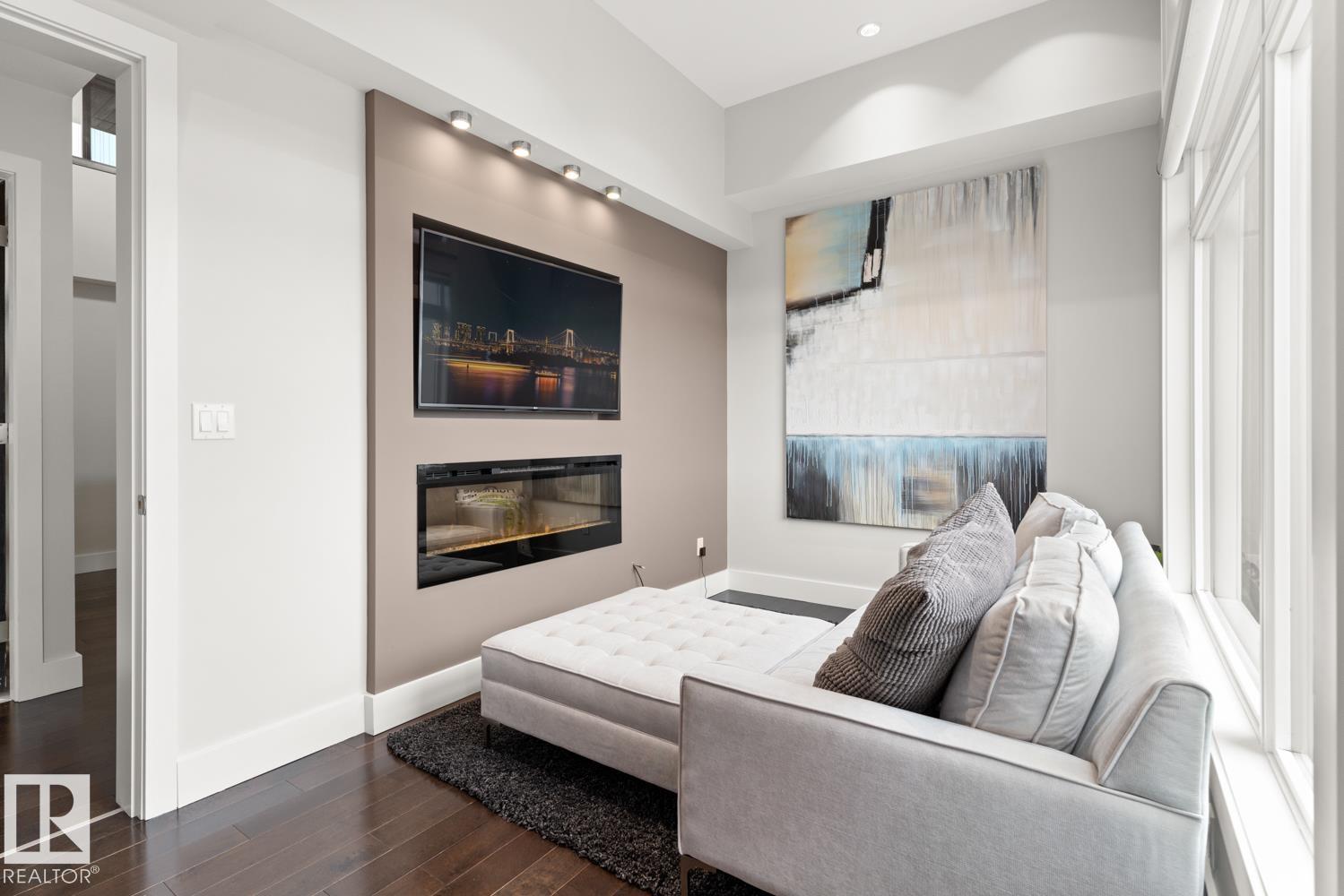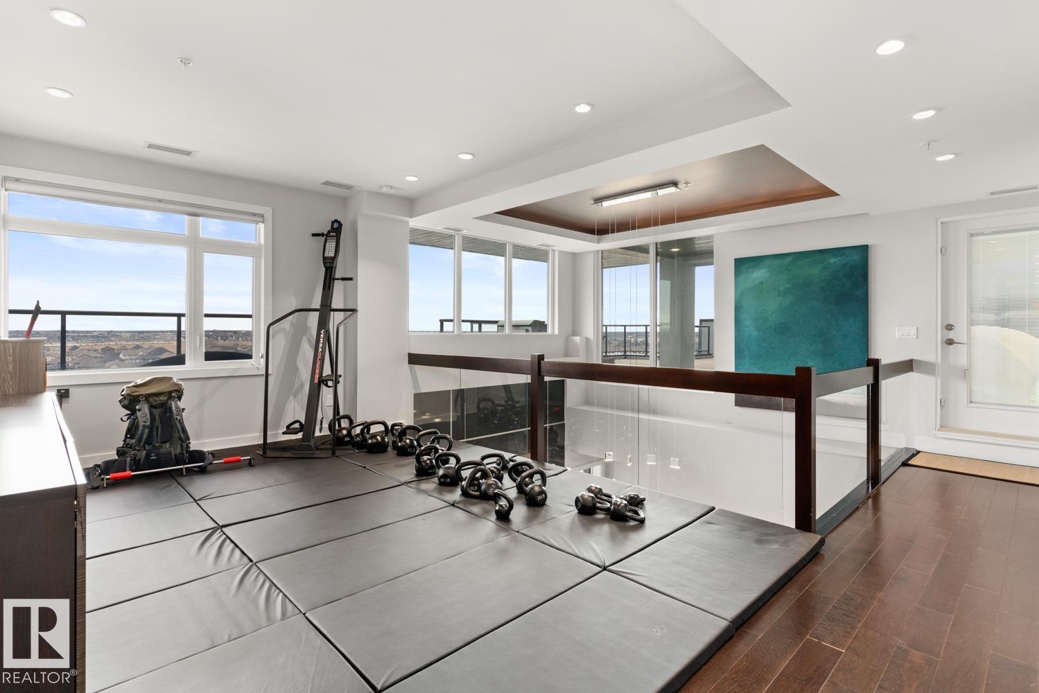 Welcome to the pinnacle of luxury living in Windermere! This stunning penthouse offers a sophisticated loft-style design with panoramic city views from two private balconies. The chef-inspired kitchen boasts a massive island with eating bar, modern finishes, and high-end appliances?perfect for entertaining. The open-concept living space is bright and inviting, while the main floor also features a den plus a bedroom with walk-through closet and private ensuite. Upstairs, the lavish master suite impresses with a double-sided fireplace, jet tub, steam shower, water closet, and an oversized walk-in closet. Two additional bedrooms and a laundry room complete the upper level. With two titled parking stalls and access to a fully equipped fitness centre, this penthouse is the perfect blend of elegance, comfort, and convenience in one of Edmonton?s most desirable communities. Don?t miss your chance to call this exceptional penthouse home!