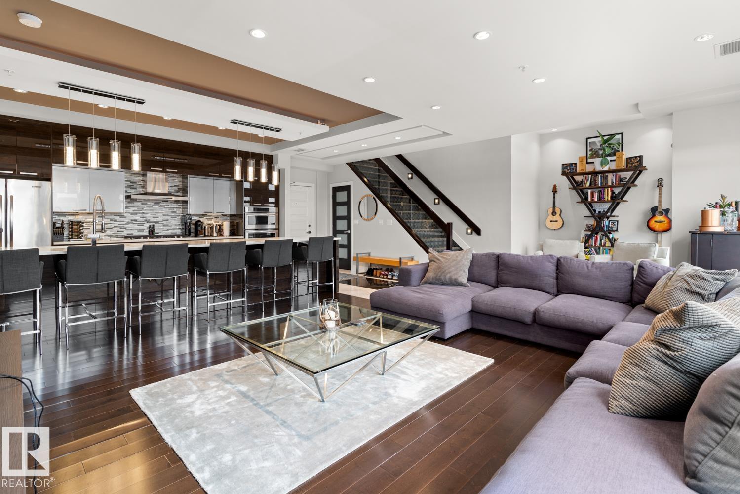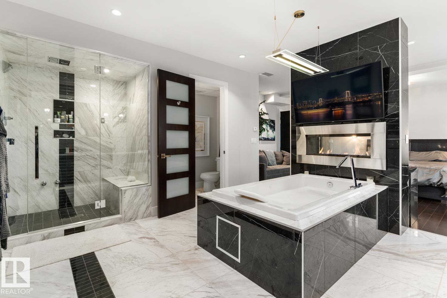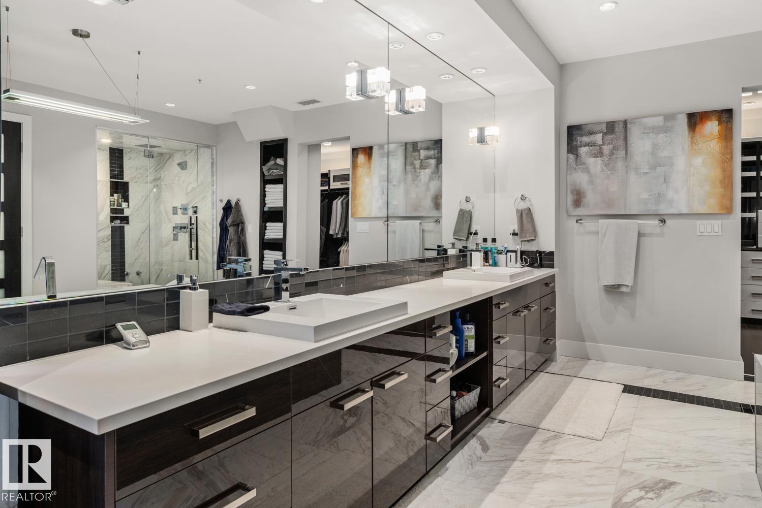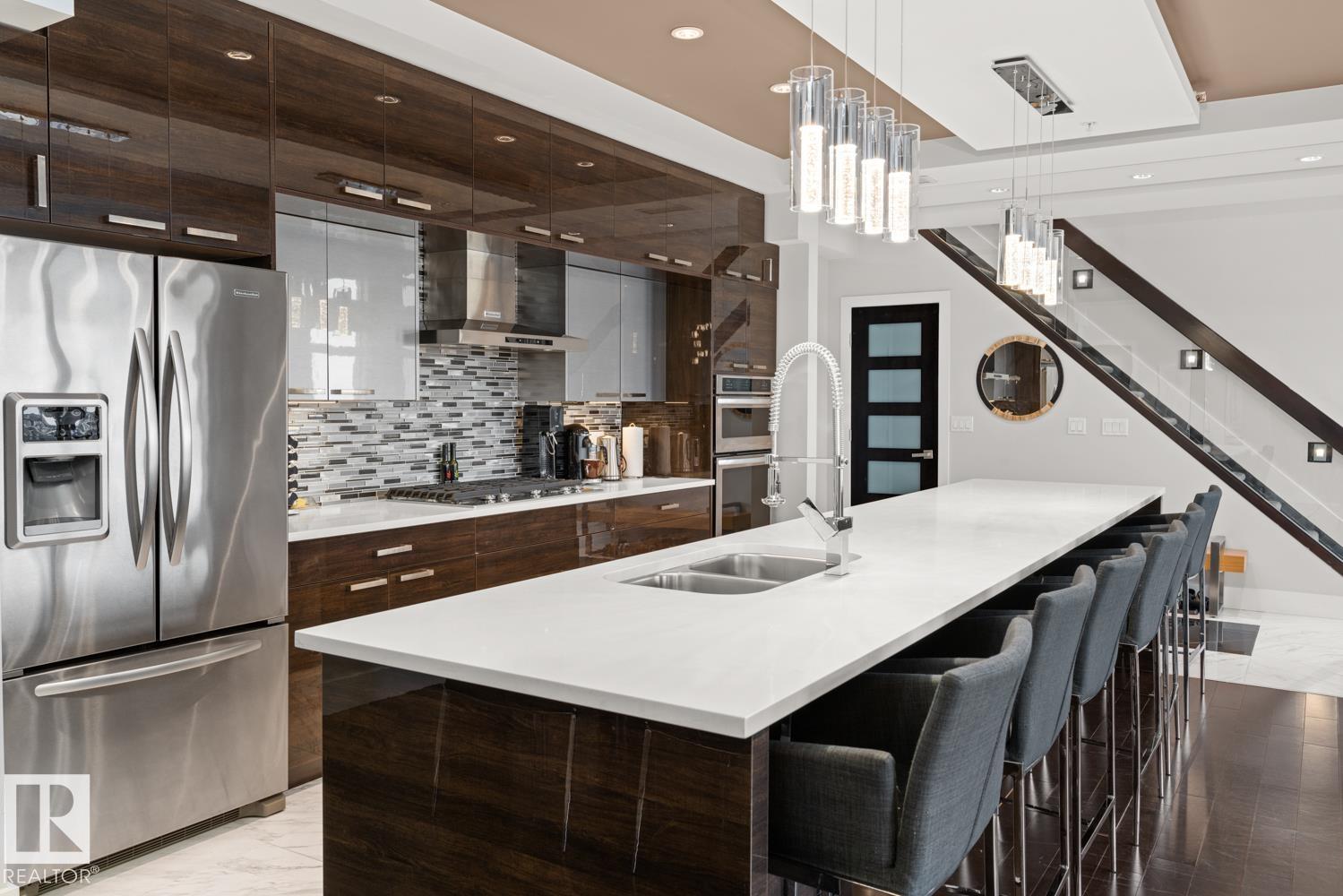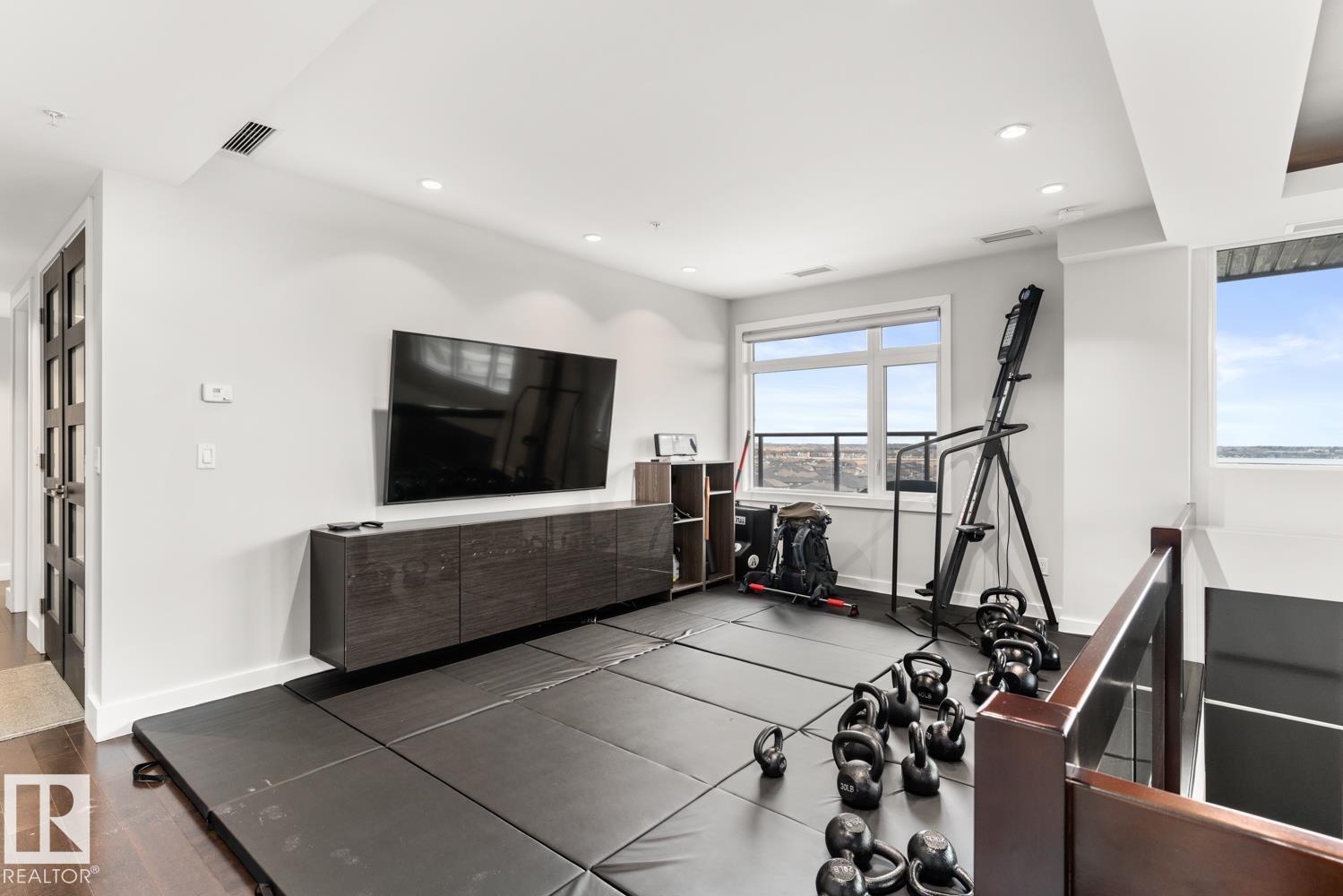 Welcome to the pinnacle of luxury living in Windermere! This stunning penthouse offers a sophisticated loft-style design with panoramic city views from two private balconies. The chef-inspired kitchen boasts a massive island with eating bar, modern finishes, and high-end appliances?perfect for entertaining. The open-concept living space is bright and inviting, while the main floor also features a den plus a bedroom with walk-through closet and private ensuite. Upstairs, the lavish master suite impresses with a double-sided fireplace, jet tub, steam shower, water closet, and an oversized walk-in closet. Two additional bedrooms and a laundry room complete the upper level. With two titled parking stalls and access to a fully equipped fitness centre, this penthouse is the perfect blend of elegance, comfort, and convenience in one of Edmonton?s most desirable communities. Don?t miss your chance to call this exceptional penthouse home!