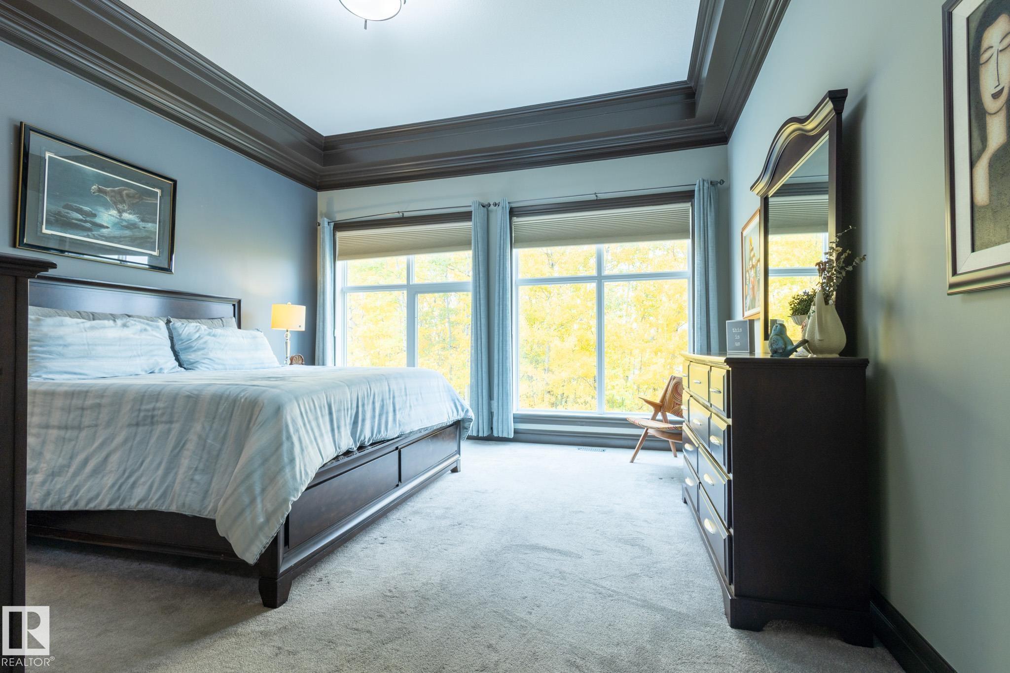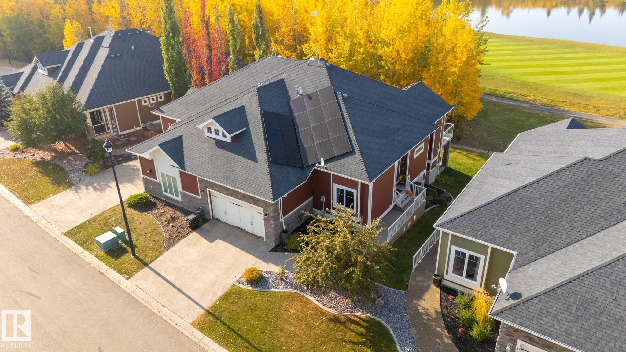 Welcome to Villas on the Green, backing onto the prestigious Northern Bear Golf Course. This executive half-duplex bungalow is boasting almost 3400 square feet including a walkout basement offering elegance and comfort throughout. The main floor features engineered hardwood floors, 11' ceilings on main floor with vaulted ceilings in the living room, and a modern kitchen with granite countertops and stainless steel appliances. The bright dining and living room with gas fireplace open to a private deck with stunning views of the course and pond. The primary suite boasts a spa-like 5-piece ensuite, with a 2nd bedroom, full bathroom, laundry, and attached double garage completing the level. The walkout basement has 9' ceilings and adds a rec room, wet bar, media/fitness room, guest bedroom, and full bath. With central A/C and unbeatable golf course living, this property blends executive style with serene surroundings. To complete this "green" living there is also 7.38 KW of SOLAR PANELS on the roof!
