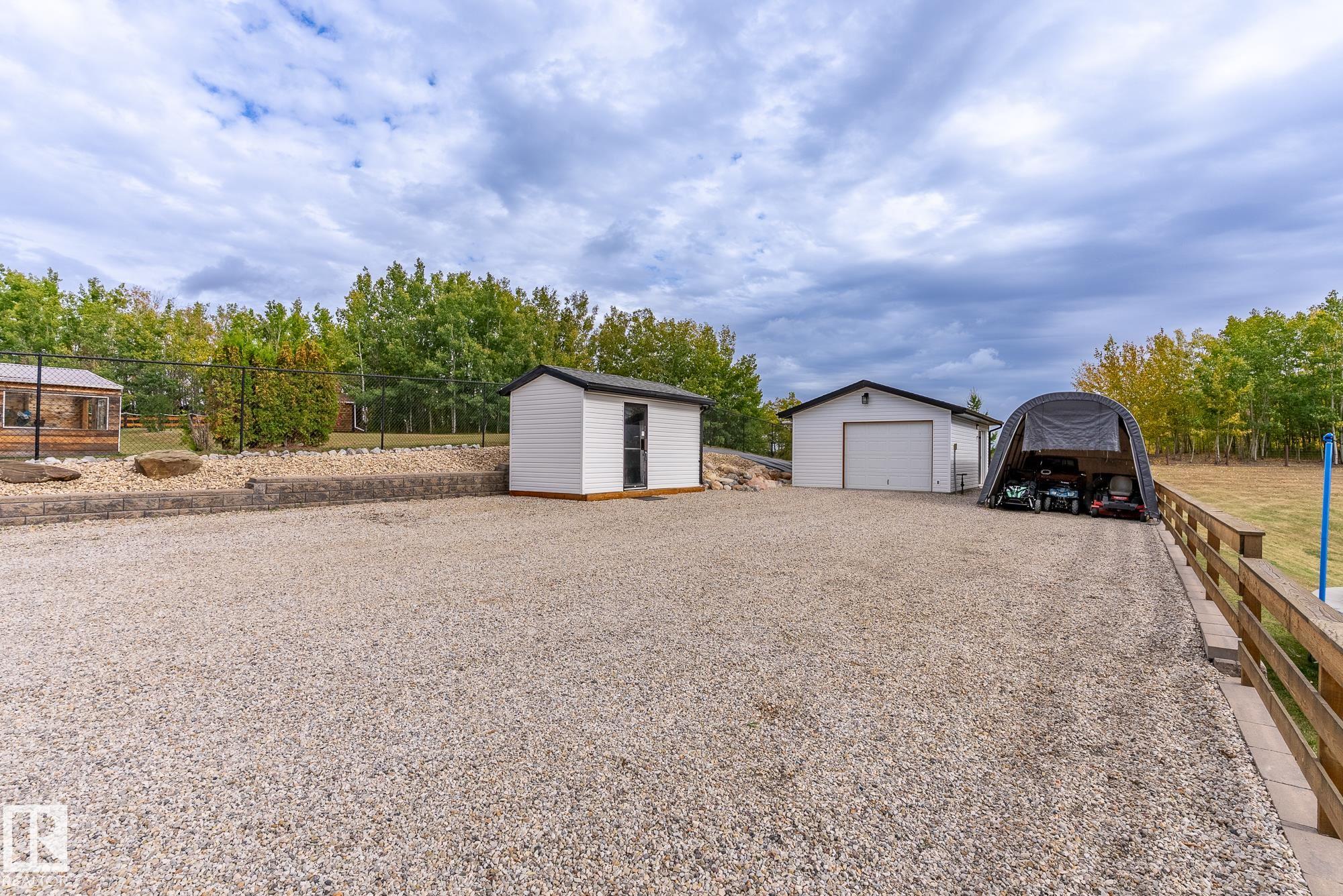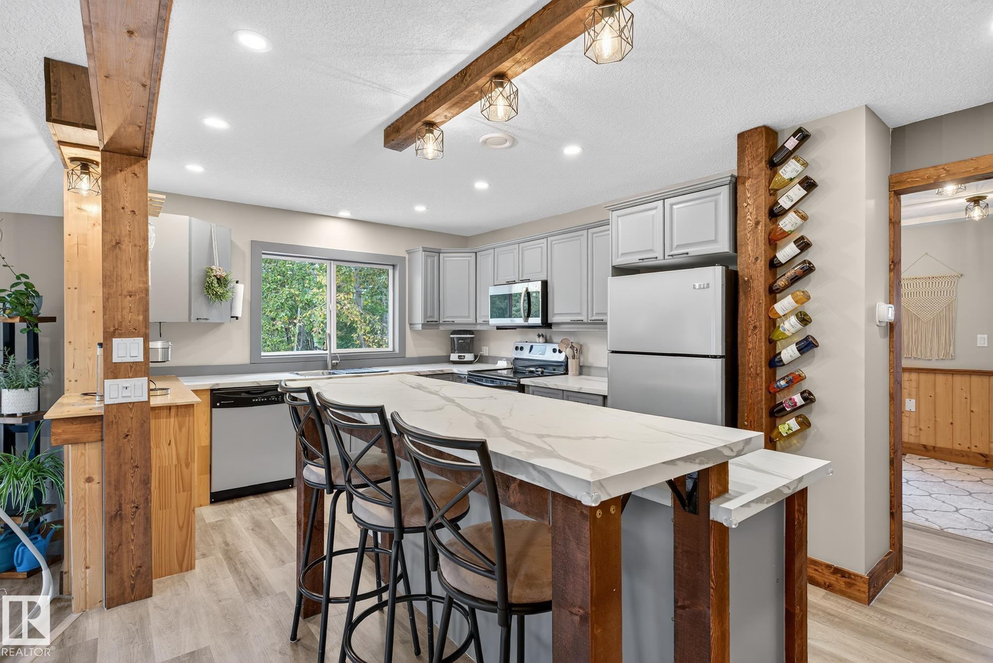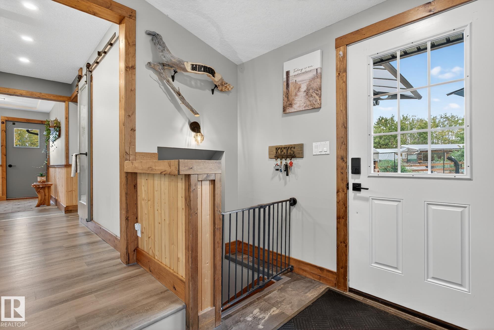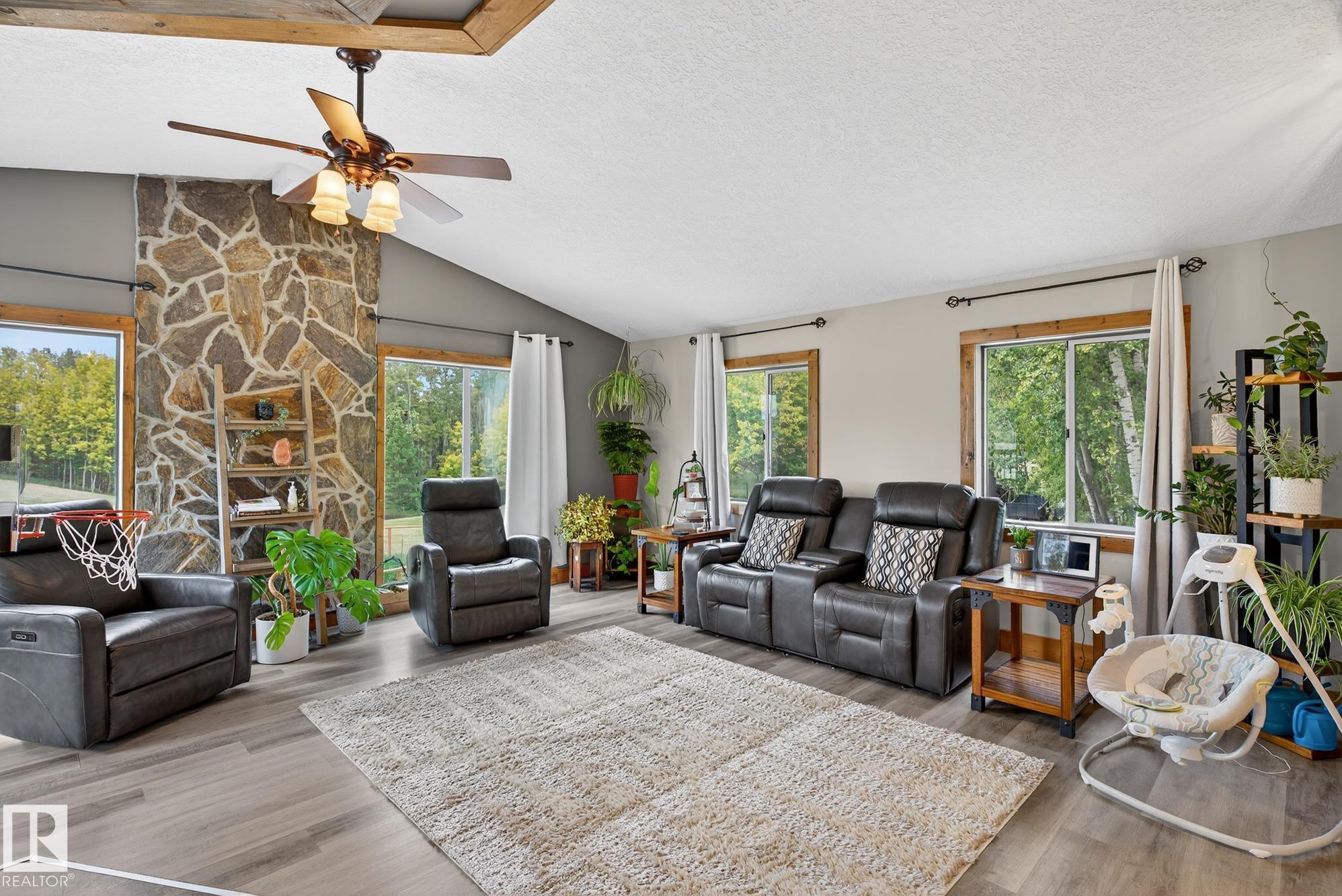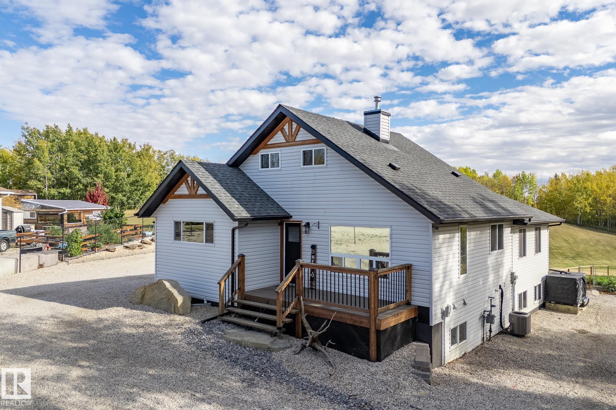 Escape to Tranquility on 2.06 Acres ? Just 20 Mins West of Stony Plain! This beautifully renovated rural gem offers a gated 2.06 fully fenced acres backing mature trees for ultimate privacy. Timber accents frame the house while an abundance of charm lies inside including 4 bedrooms, 2.5 baths, vinyl plank flooring, newer kitchen cabinets, centre island, and new appliances. Big picturesque windows flood the home with light and overlook the lush yard with garden, deck, and hot tub. The main floor features a primary bedroom, a formal dining/flex room, and the upstairs offers a bedroom, loft/yoga space, and 2-pce bath. The finished basement feels nothing like a basement ? thanks to large windows, 2 bedrooms, a 4-pce bath, and abundant natural light. Central A/C adds to the comfort of this home. Outside, enjoy a fire pit, shed, tons of slate rock landscaping, and an oversized heated single garage perfect for a man cave, plus large storage shed. Serene. Private. Full of character. Your country dream awaits!