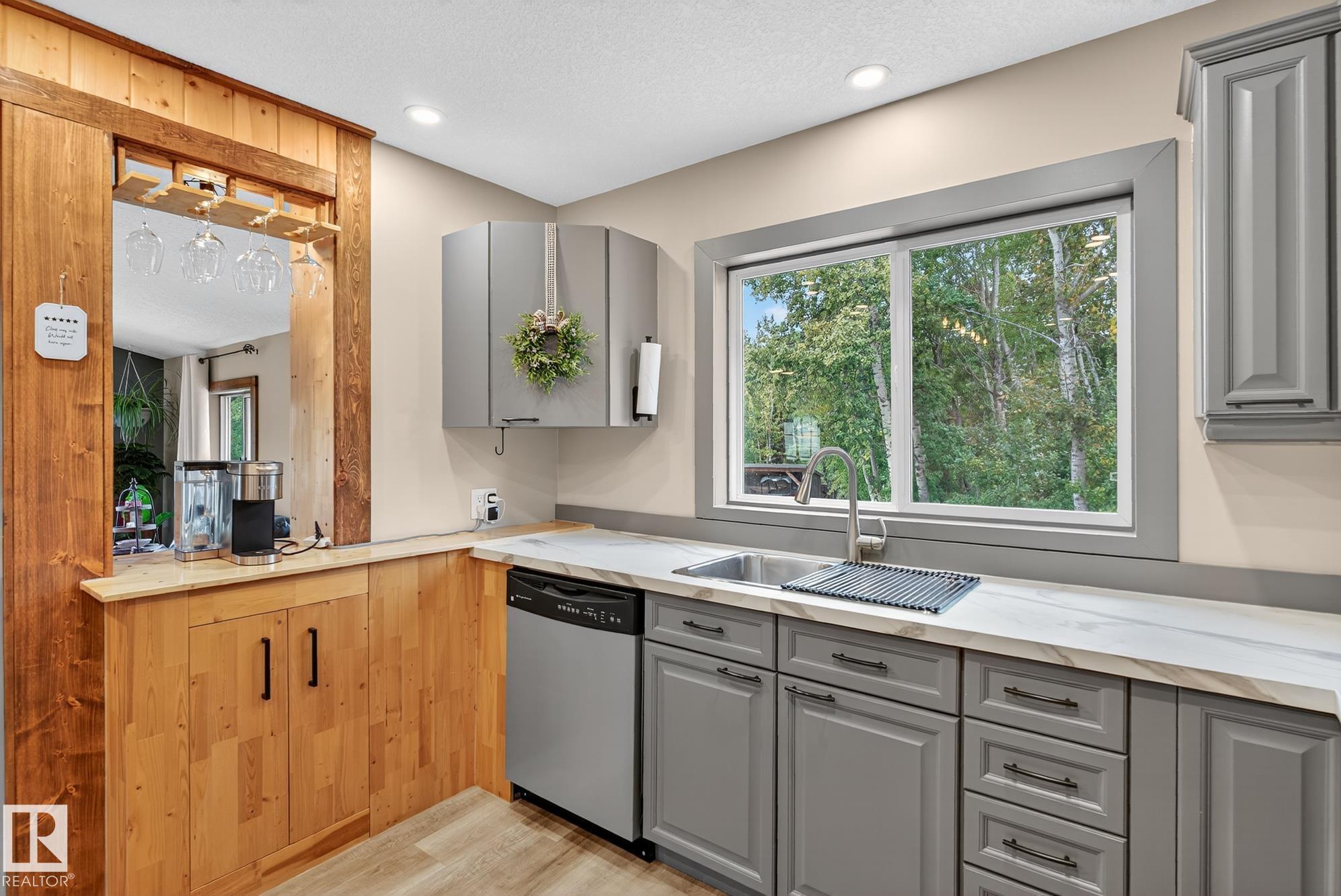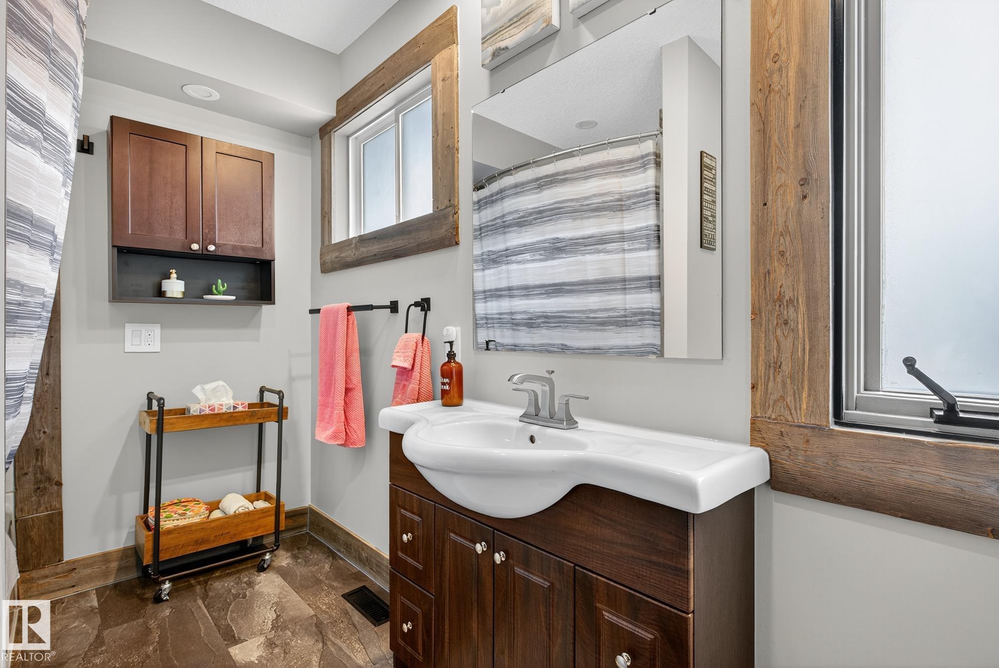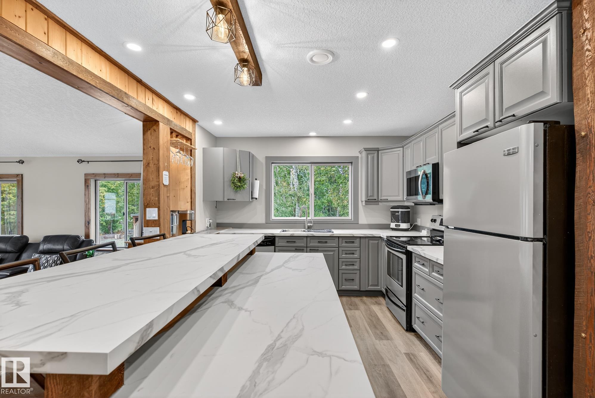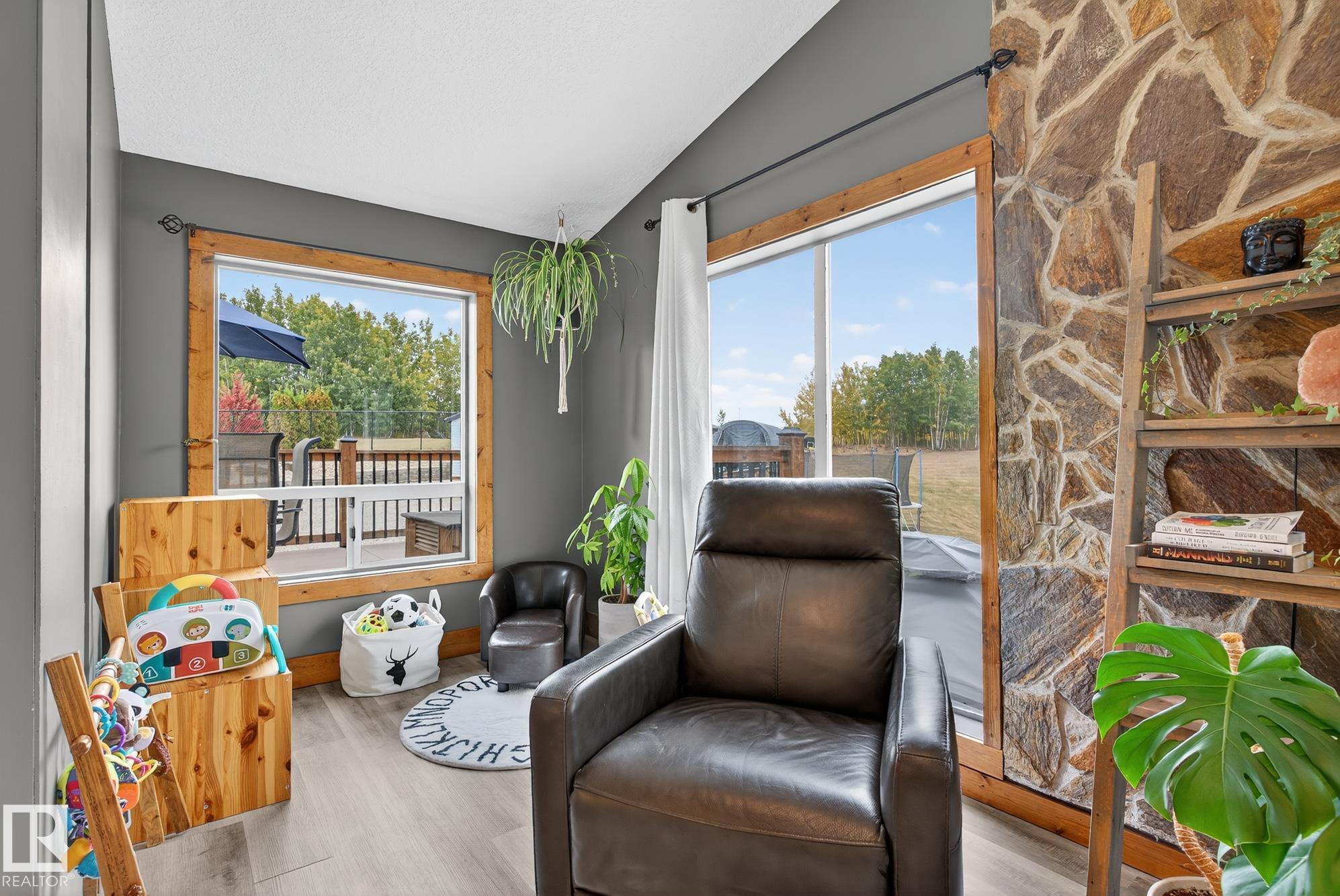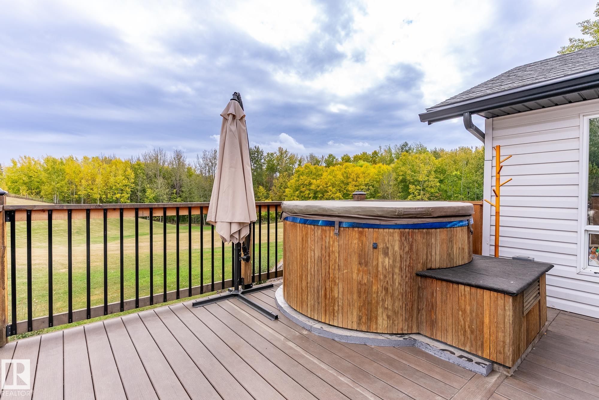 Escape to Tranquility on 2.06 Acres ? Just 20 Mins West of Stony Plain! This beautifully renovated rural gem offers a gated 2.06 fully fenced acres backing mature trees for ultimate privacy. Timber accents frame the house while an abundance of charm lies inside including 4 bedrooms, 2.5 baths, vinyl plank flooring, newer kitchen cabinets, centre island, and new appliances. Big picturesque windows flood the home with light and overlook the lush yard with garden, deck, and hot tub. The main floor features a primary bedroom, a formal dining/flex room, and the upstairs offers a bedroom, loft/yoga space, and 2-pce bath. The finished basement feels nothing like a basement ? thanks to large windows, 2 bedrooms, a 4-pce bath, and abundant natural light. Central A/C adds to the comfort of this home. Outside, enjoy a fire pit, shed, tons of slate rock landscaping, and an oversized heated single garage perfect for a man cave, plus large storage shed. Serene. Private. Full of character. Your country dream awaits!