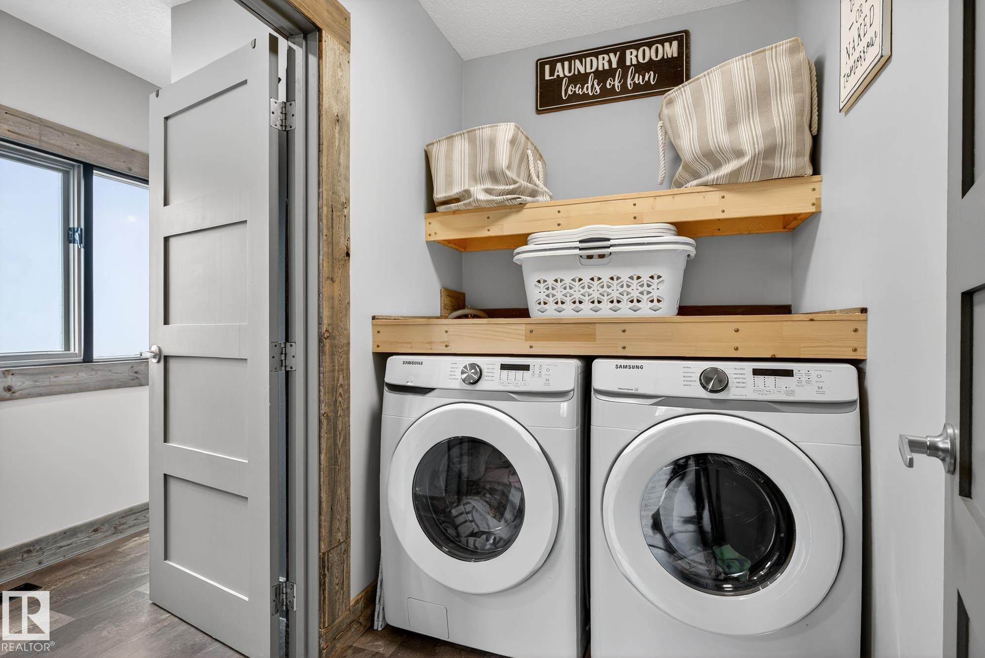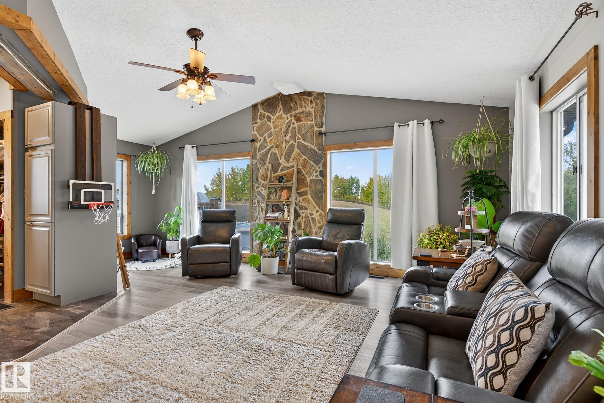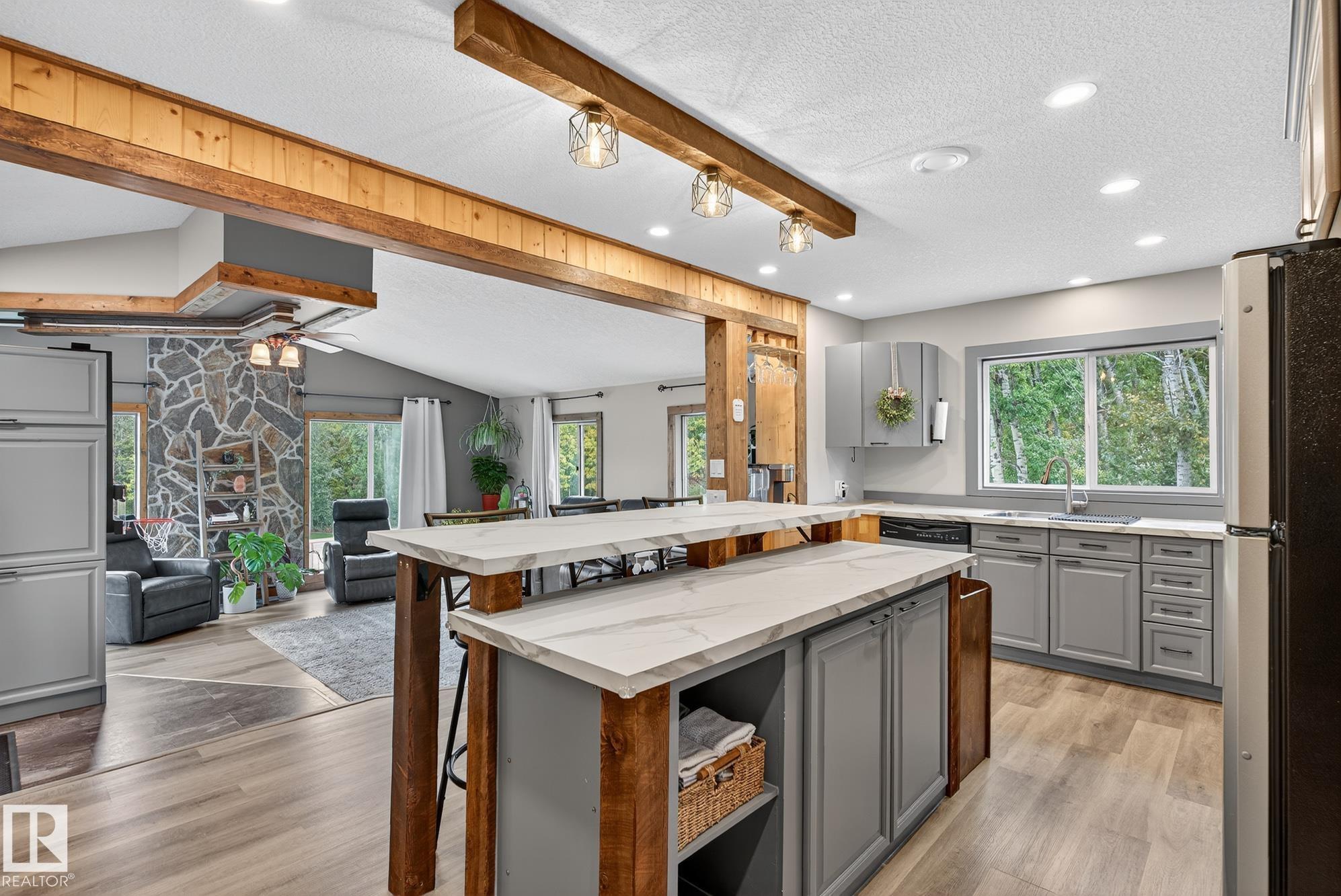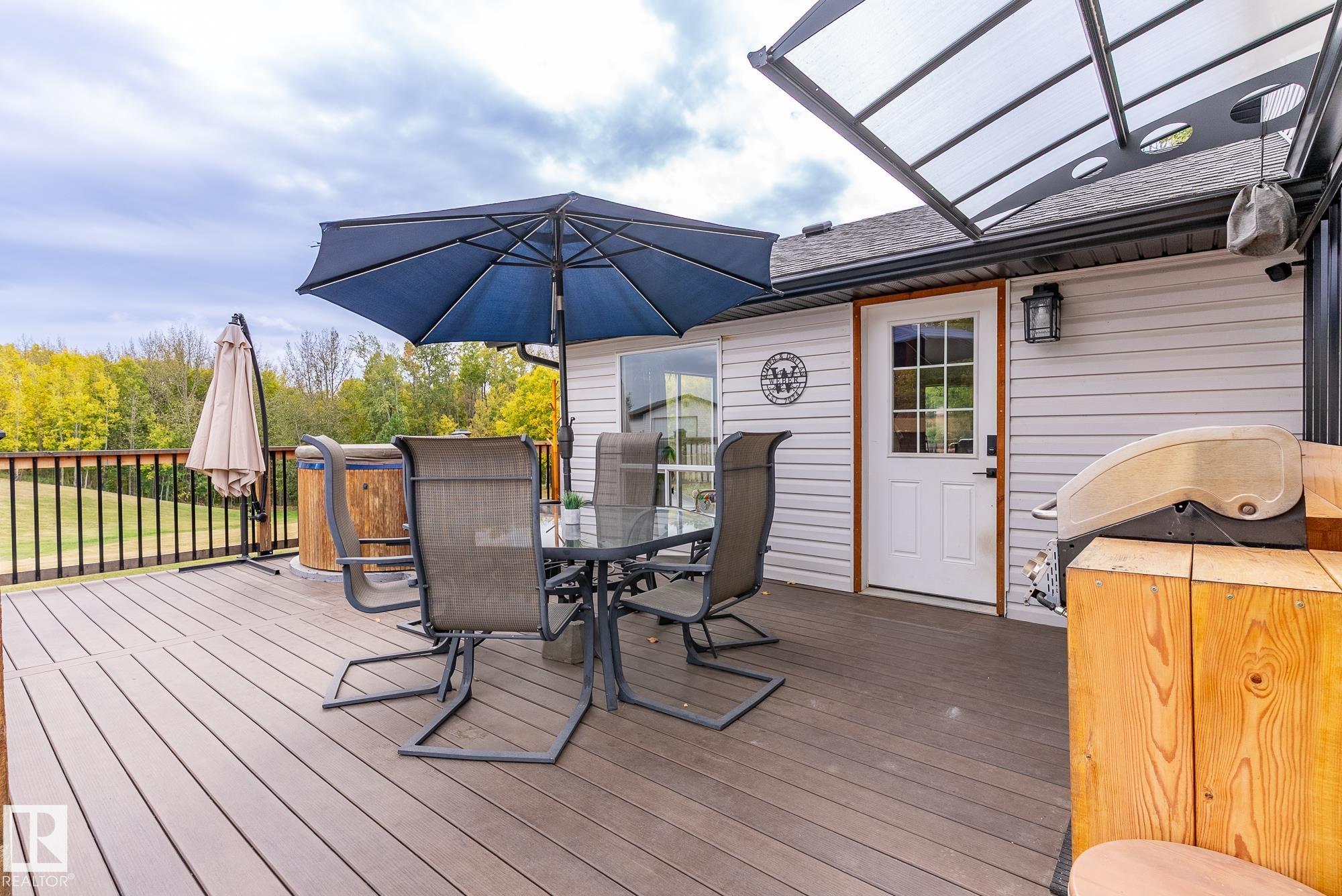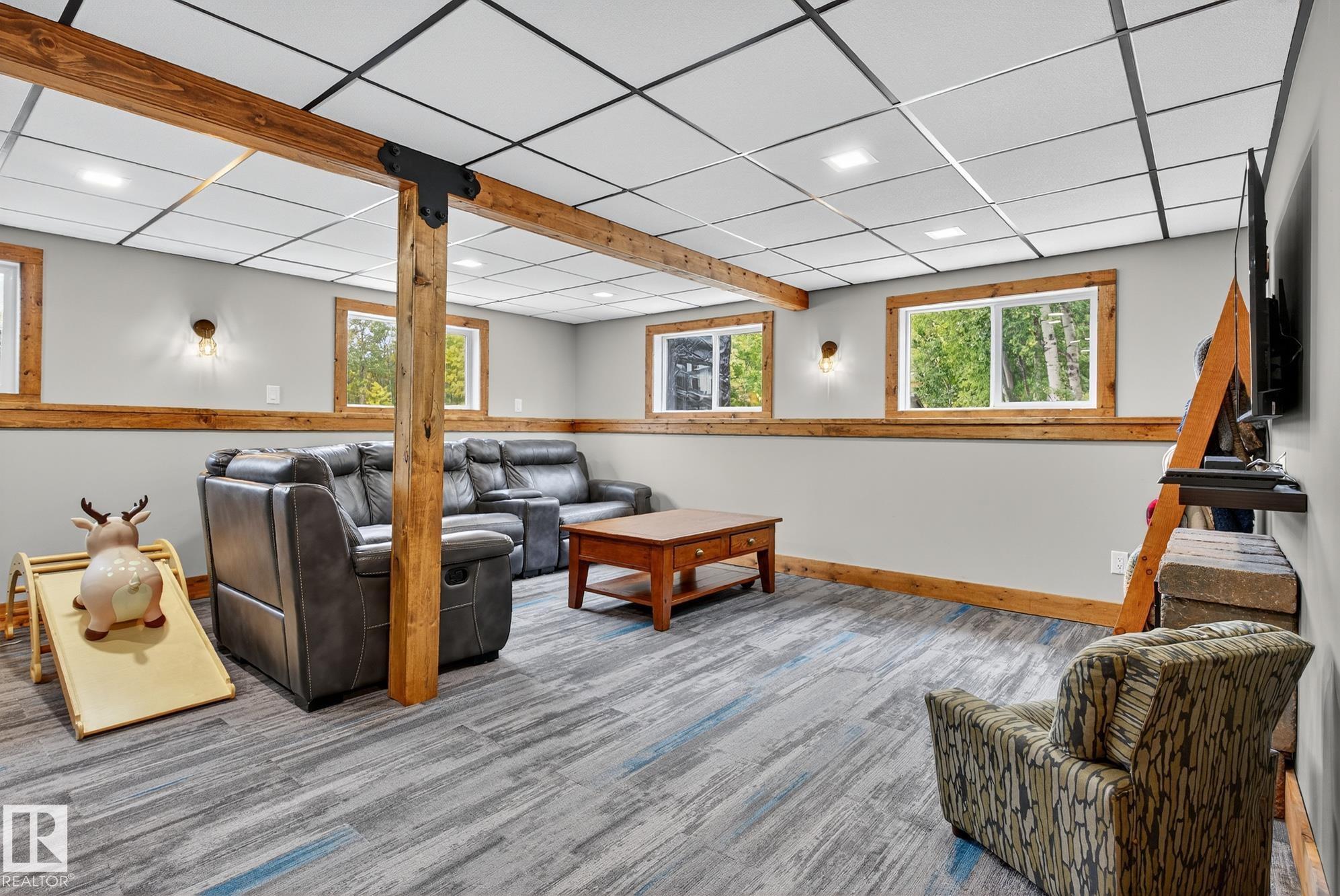 Escape to Tranquility on 2.06 Acres ? Just 20 Mins West of Stony Plain! This beautifully renovated rural gem offers a gated 2.06 fully fenced acres backing mature trees for ultimate privacy. Timber accents frame the house while an abundance of charm lies inside including 4 bedrooms, 2.5 baths, vinyl plank flooring, newer kitchen cabinets, centre island, and new appliances. Big picturesque windows flood the home with light and overlook the lush yard with garden, deck, and hot tub. The main floor features a primary bedroom, a formal dining/flex room, and the upstairs offers a bedroom, loft/yoga space, and 2-pce bath. The finished basement feels nothing like a basement ? thanks to large windows, 2 bedrooms, a 4-pce bath, and abundant natural light. Central A/C adds to the comfort of this home. Outside, enjoy a fire pit, shed, tons of slate rock landscaping, and an oversized heated single garage perfect for a man cave, plus large storage shed. Serene. Private. Full of character. Your country dream awaits!