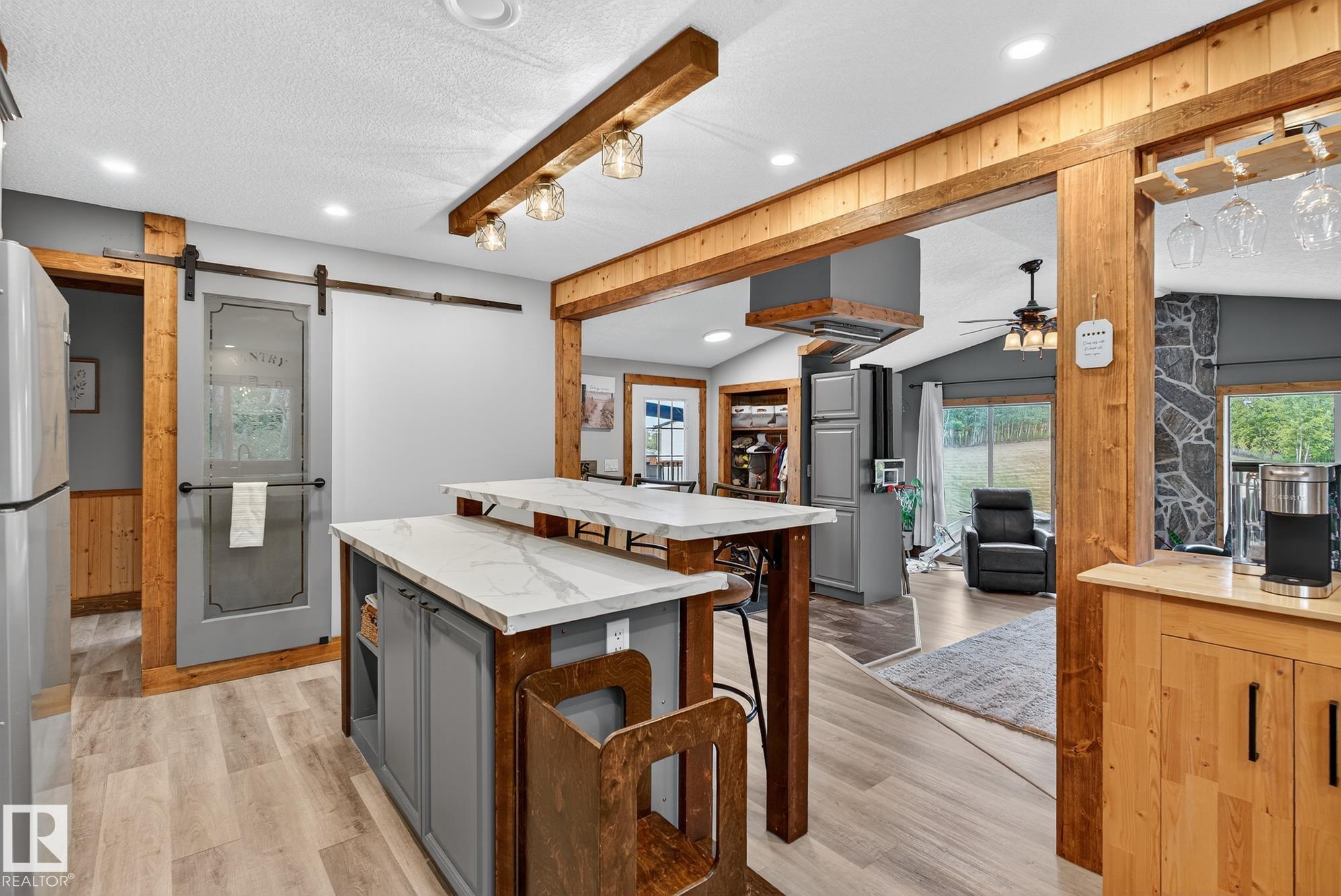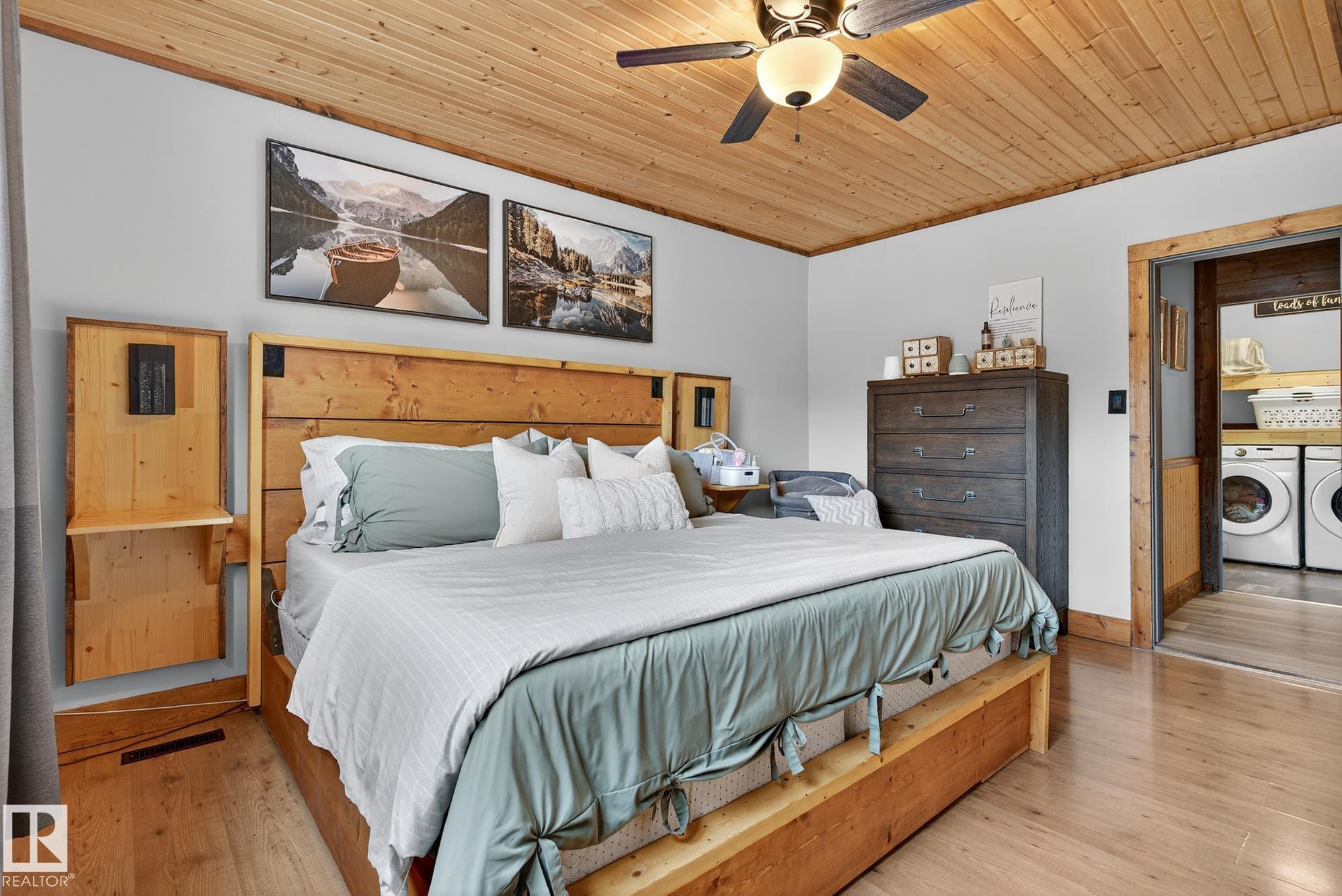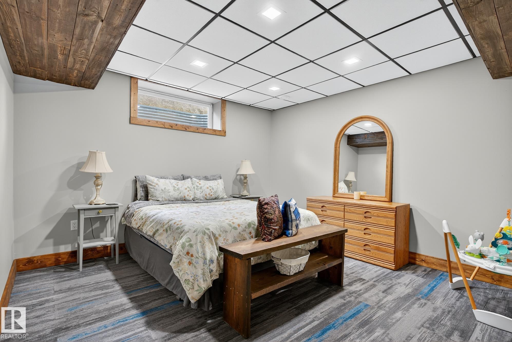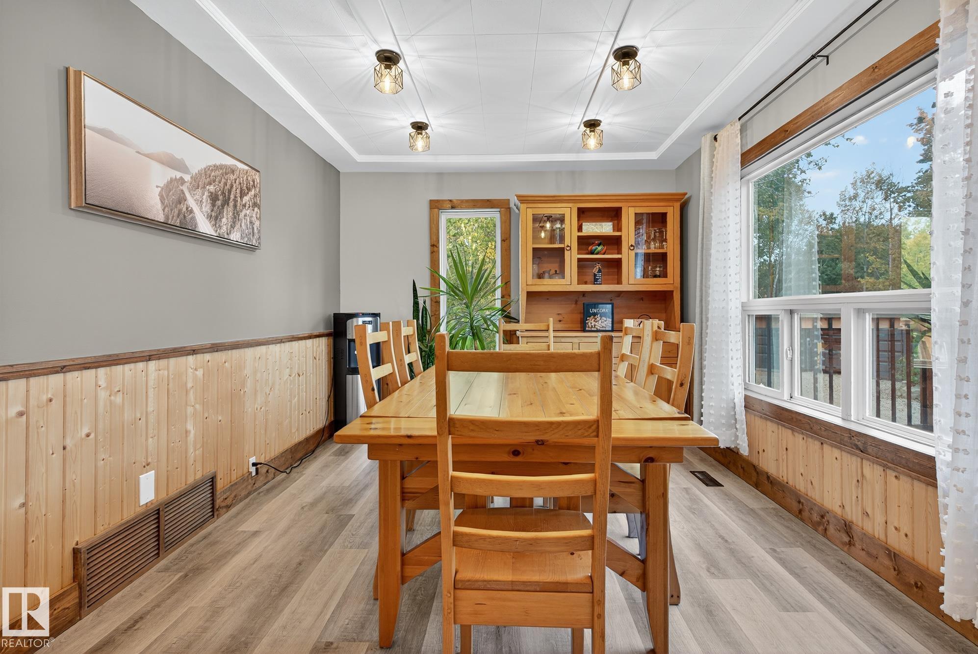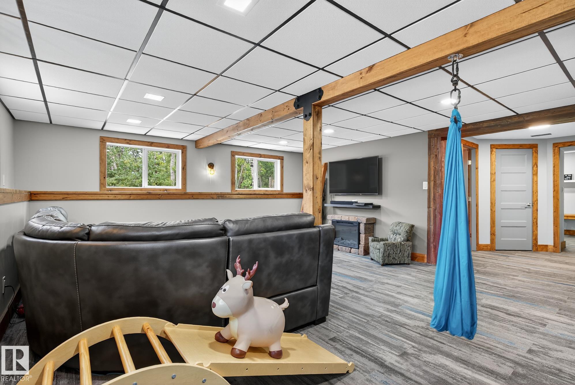 Escape to Tranquility on 2.06 Acres ? Just 20 Mins West of Stony Plain! This beautifully renovated rural gem offers a gated 2.06 fully fenced acres backing mature trees for ultimate privacy. Timber accents frame the house while an abundance of charm lies inside including 4 bedrooms, 2.5 baths, vinyl plank flooring, newer kitchen cabinets, centre island, and new appliances. Big picturesque windows flood the home with light and overlook the lush yard with garden, deck, and hot tub. The main floor features a primary bedroom, a formal dining/flex room, and the upstairs offers a bedroom, loft/yoga space, and 2-pce bath. The finished basement feels nothing like a basement ? thanks to large windows, 2 bedrooms, a 4-pce bath, and abundant natural light. Central A/C adds to the comfort of this home. Outside, enjoy a fire pit, shed, tons of slate rock landscaping, and an oversized heated single garage perfect for a man cave, plus large storage shed. Serene. Private. Full of character. Your country dream awaits!