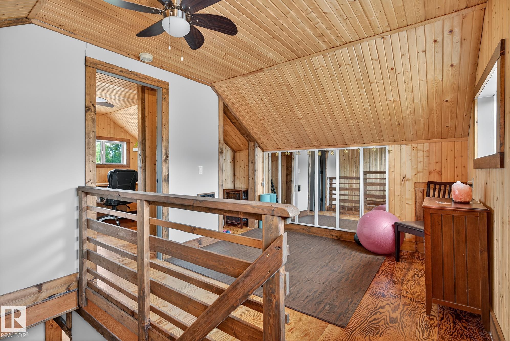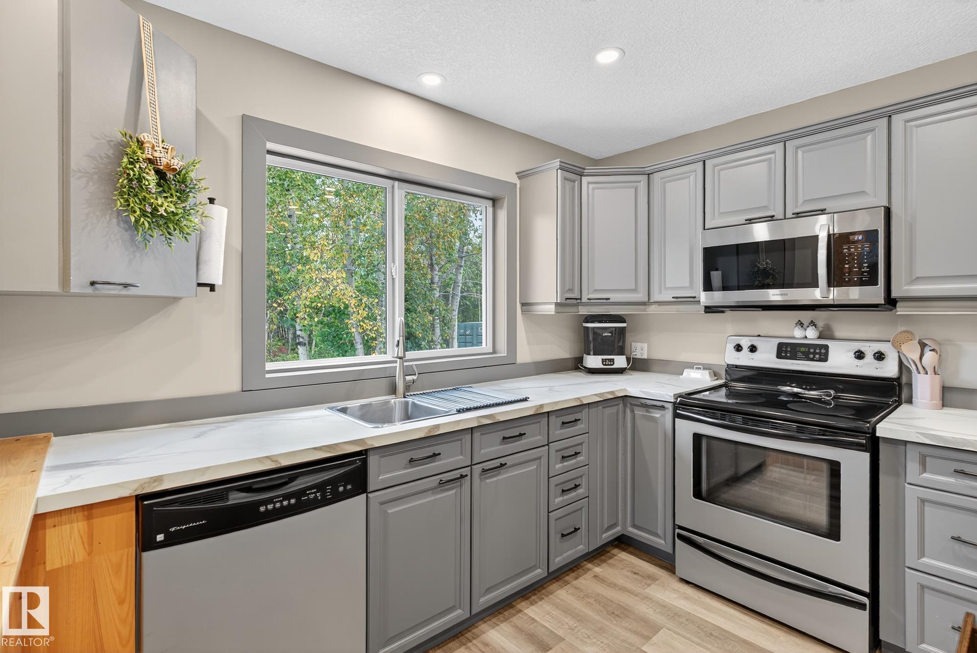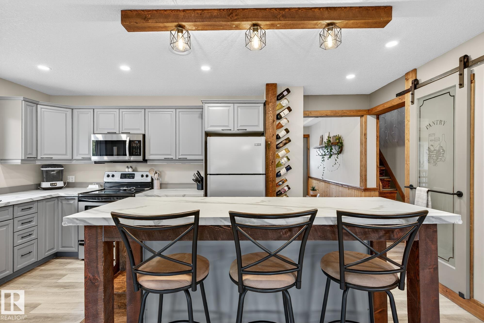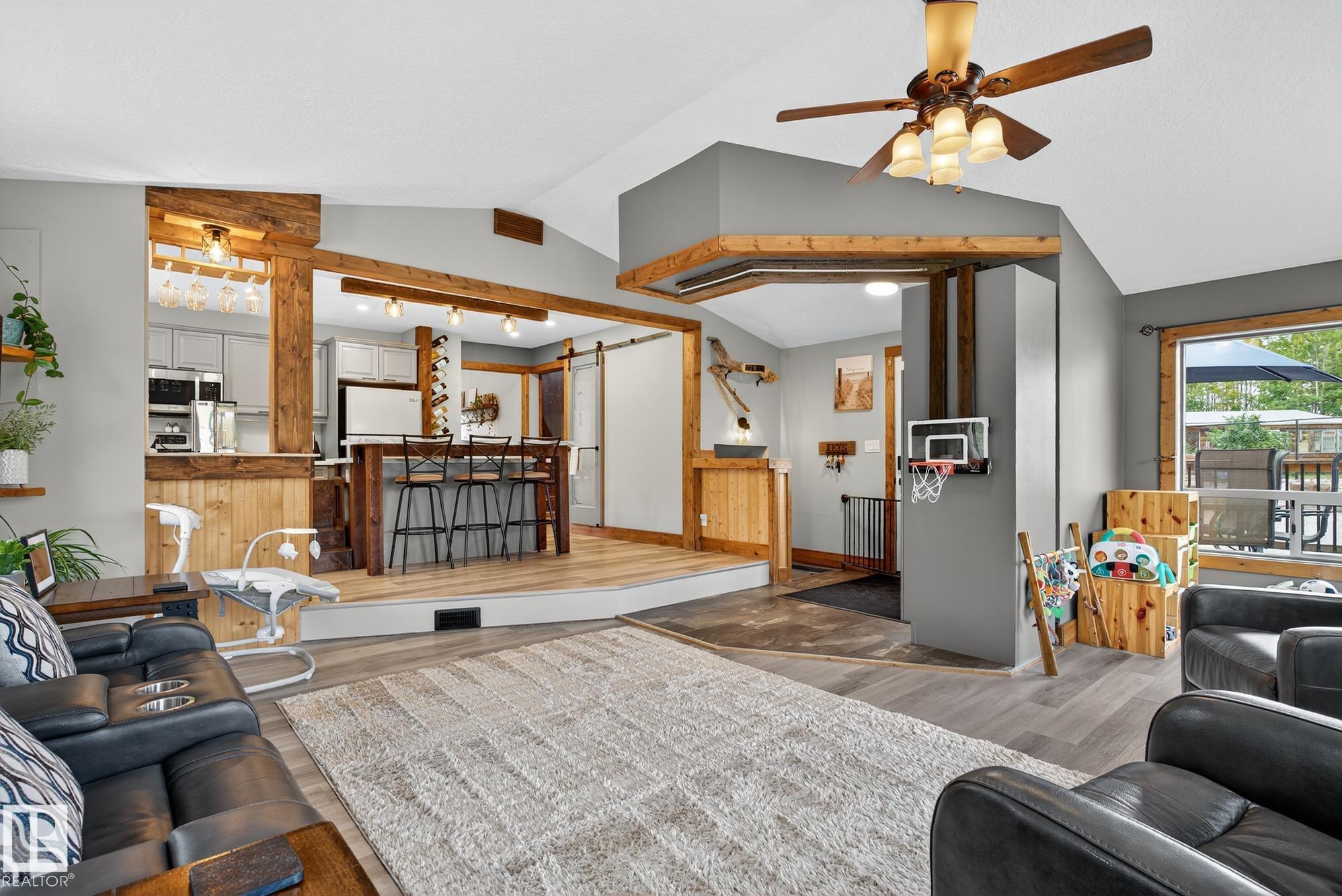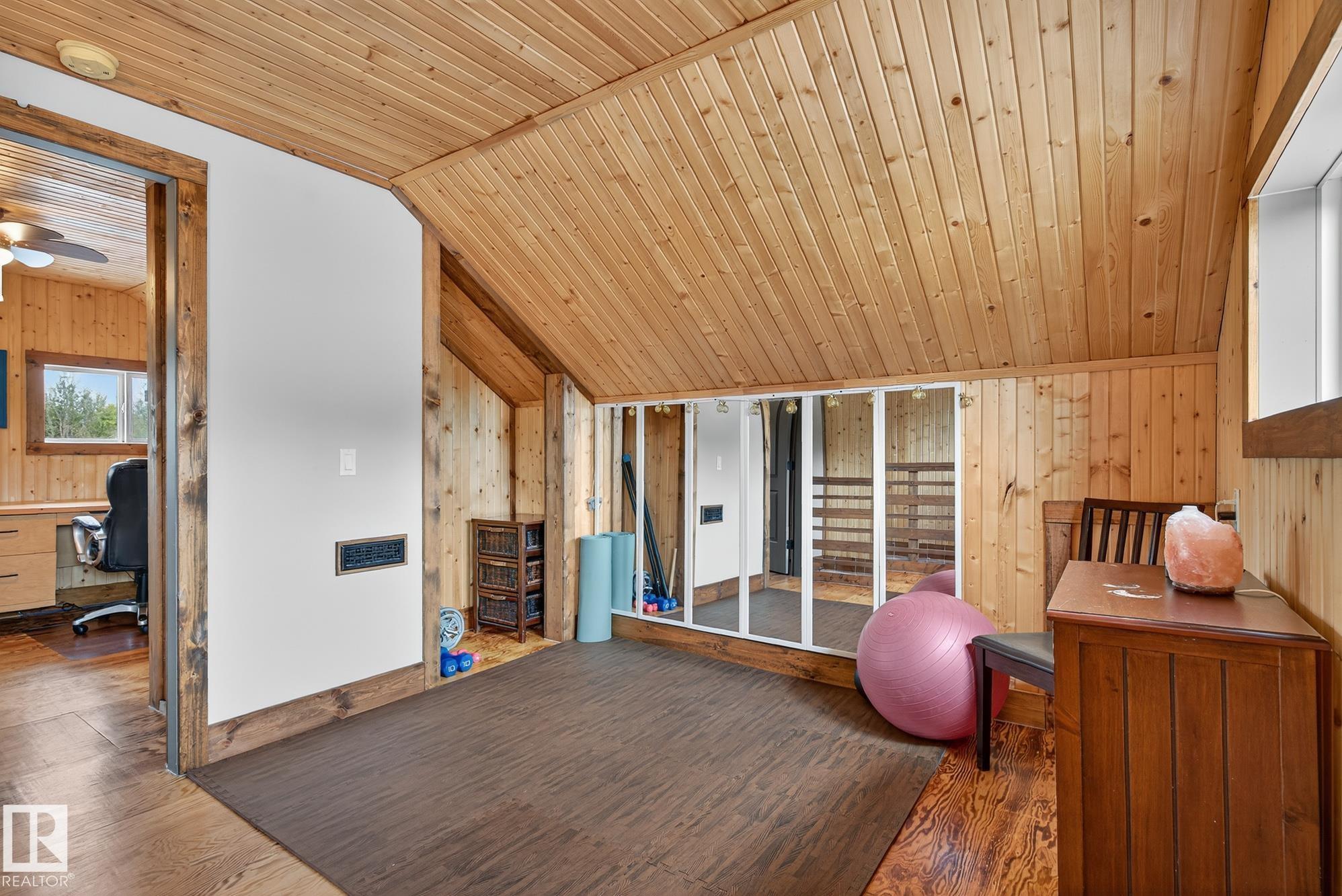 Escape to Tranquility on 2.06 Acres ? Just 20 Mins West of Stony Plain! This beautifully renovated rural gem offers a gated 2.06 fully fenced acres backing mature trees for ultimate privacy. Timber accents frame the house while an abundance of charm lies inside including 4 bedrooms, 2.5 baths, vinyl plank flooring, newer kitchen cabinets, centre island, and new appliances. Big picturesque windows flood the home with light and overlook the lush yard with garden, deck, and hot tub. The main floor features a primary bedroom, a formal dining/flex room, and the upstairs offers a bedroom, loft/yoga space, and 2-pce bath. The finished basement feels nothing like a basement ? thanks to large windows, 2 bedrooms, a 4-pce bath, and abundant natural light. Central A/C adds to the comfort of this home. Outside, enjoy a fire pit, shed, tons of slate rock landscaping, and an oversized heated single garage perfect for a man cave, plus large storage shed. Serene. Private. Full of character. Your country dream awaits!