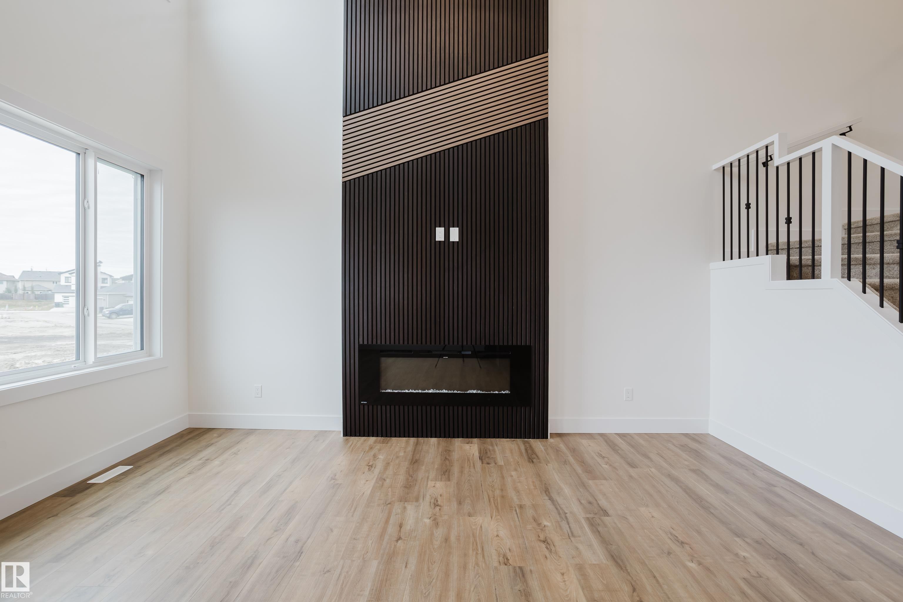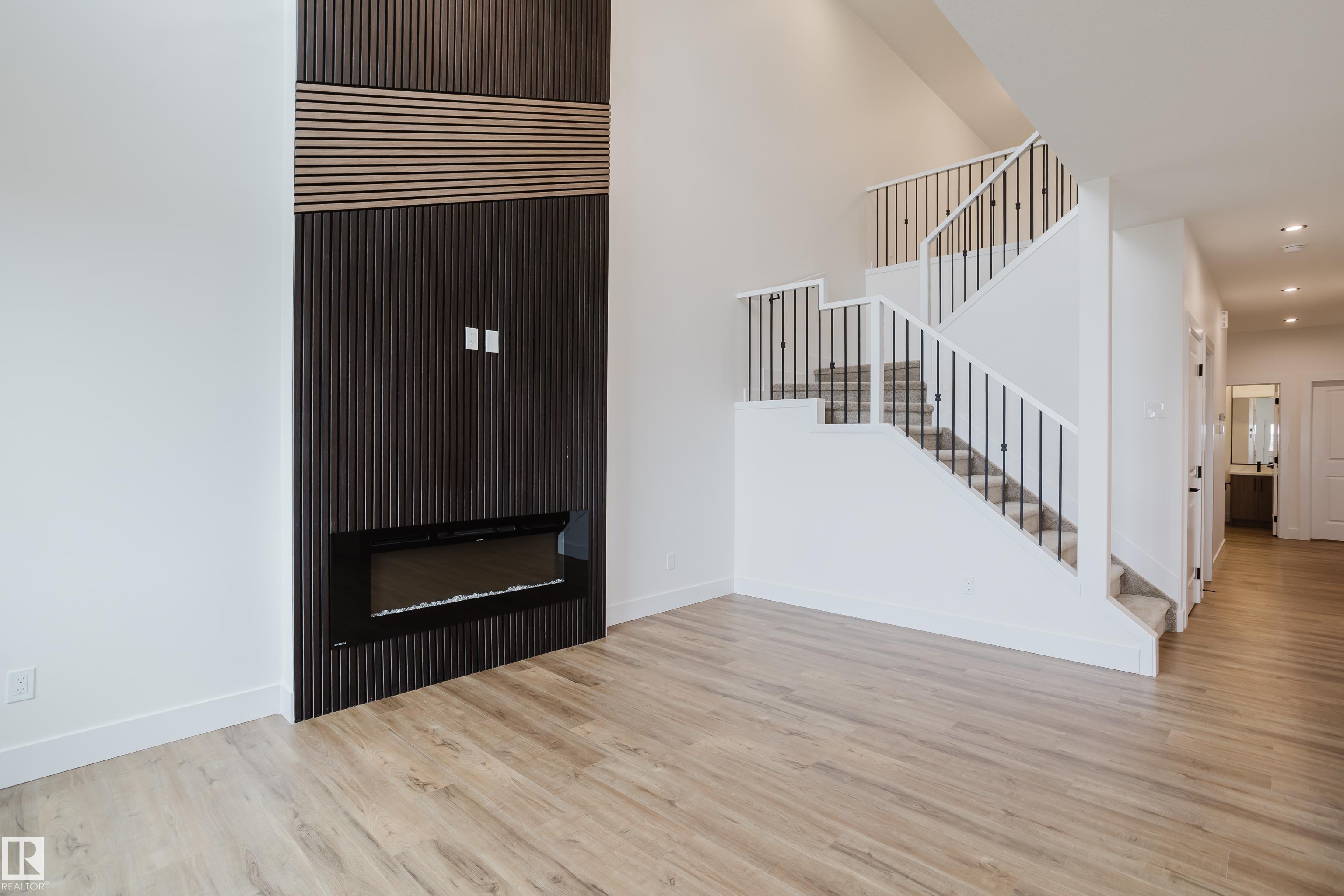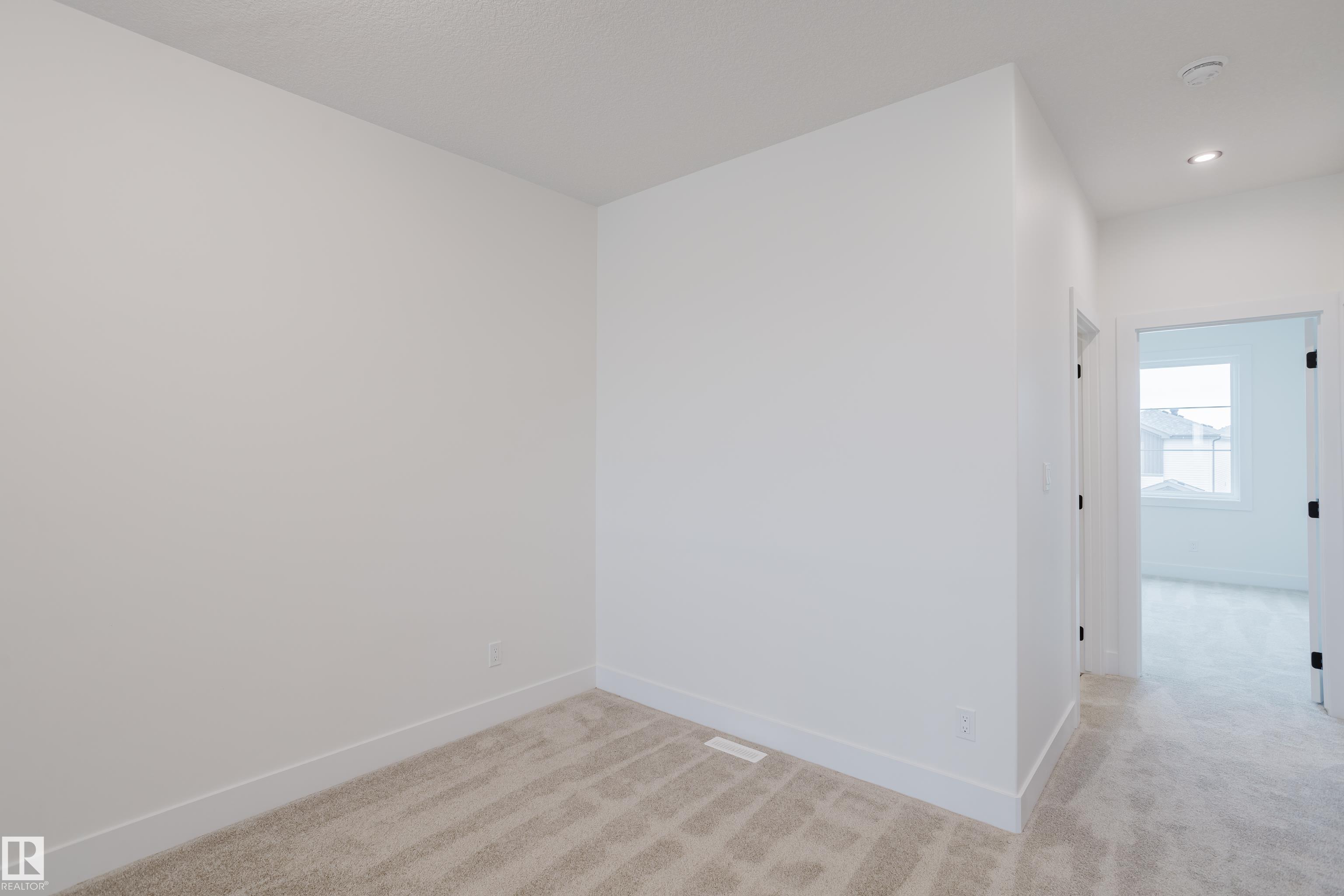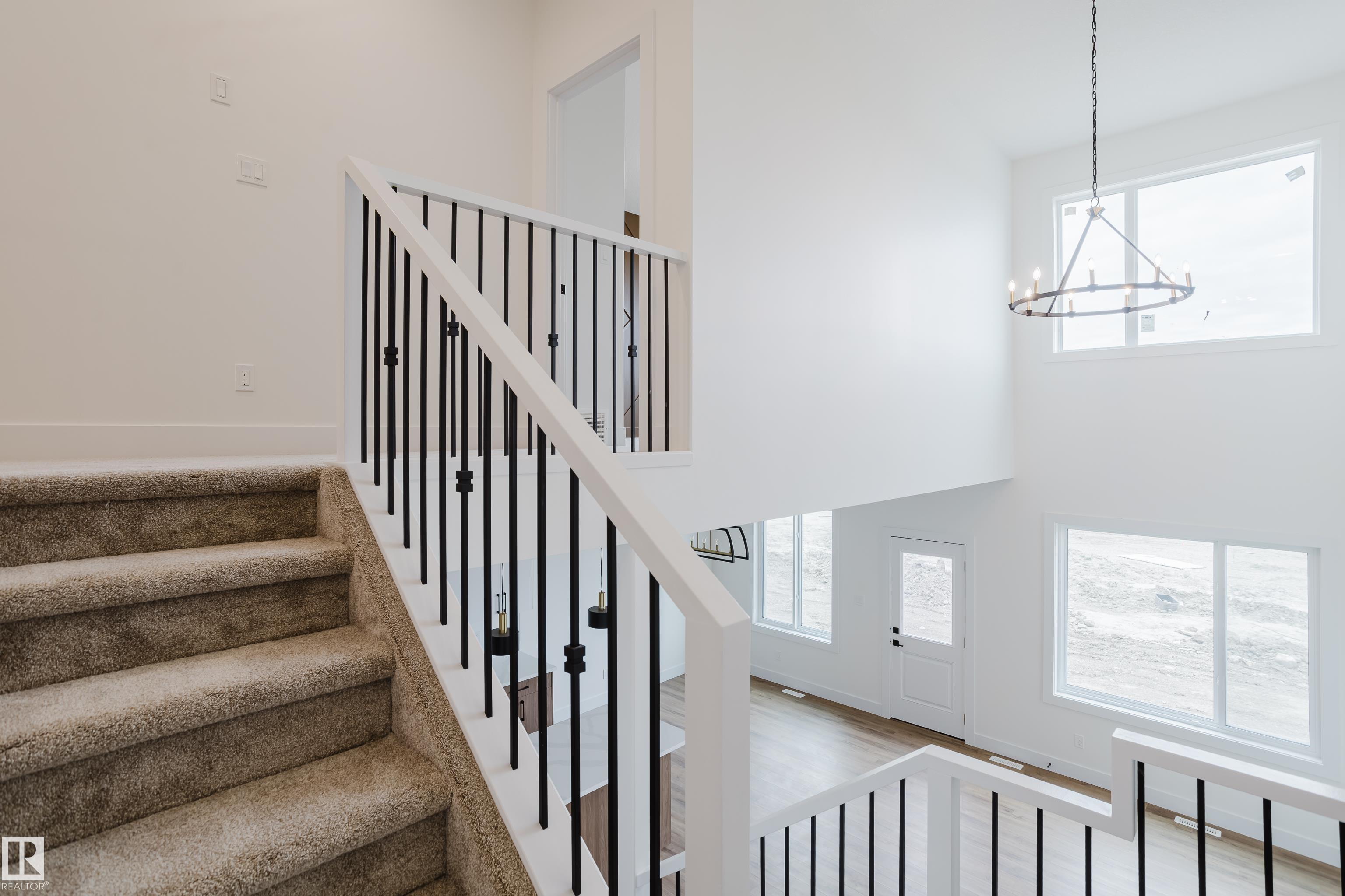 Located in the family-friendly community of Meadowview in Leduc, this Destino model offers a spacious layout with modern finishes throughout. The main floor features vinyl flooring, a den, and a full bath with a standing shower ideal for guests or a home office. The chef-inspired kitchen includes a walkthrough spice kitchen and flows into the dining area and great room, which is open to above with a built-in fireplace. Upstairs offers three bedrooms, including a primary suite with a five-piece ensuite, soaker tub, tiled shower, and walk-in closet. A bonus room and upper laundry add convenience, while the side entrance provides potential for future development.