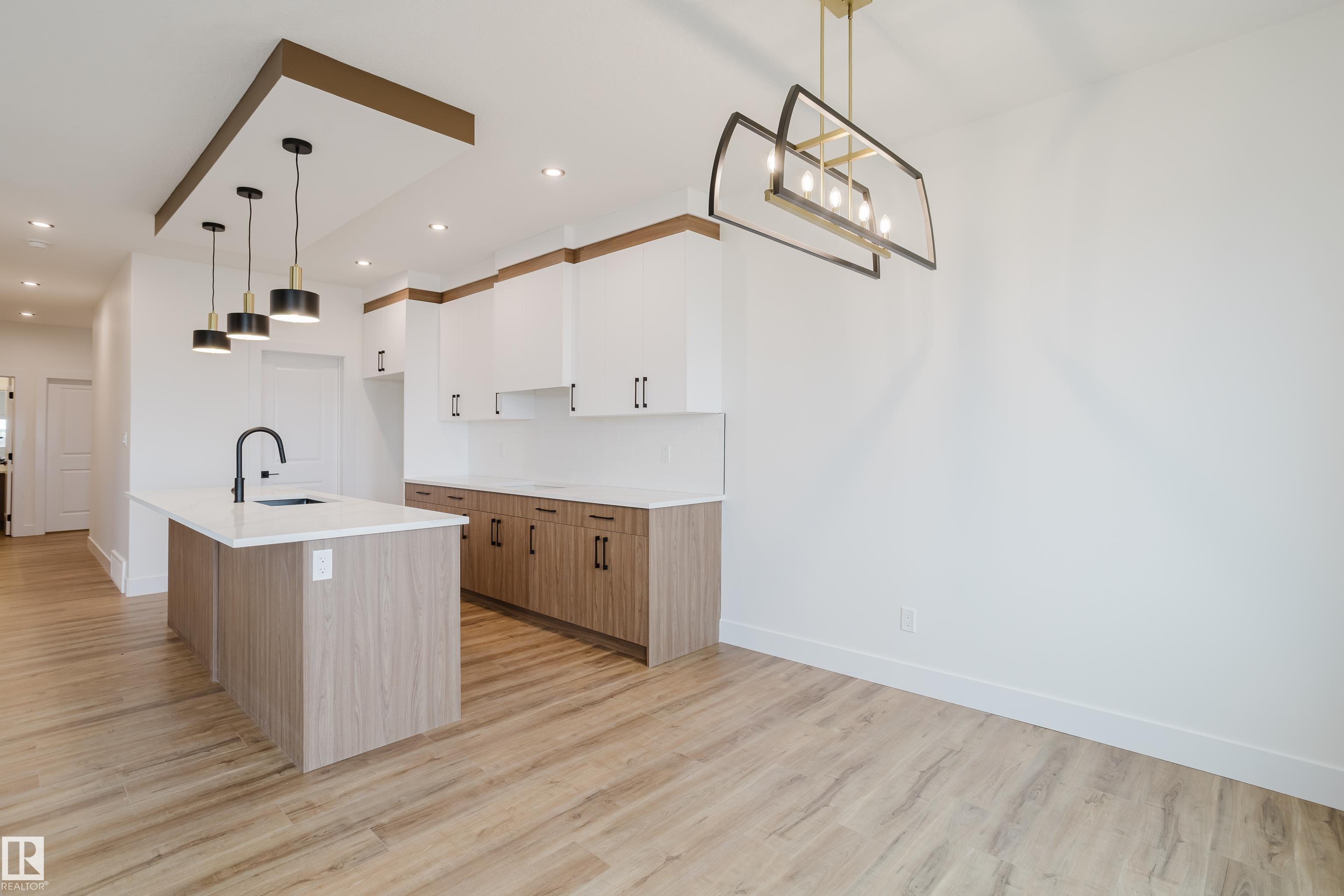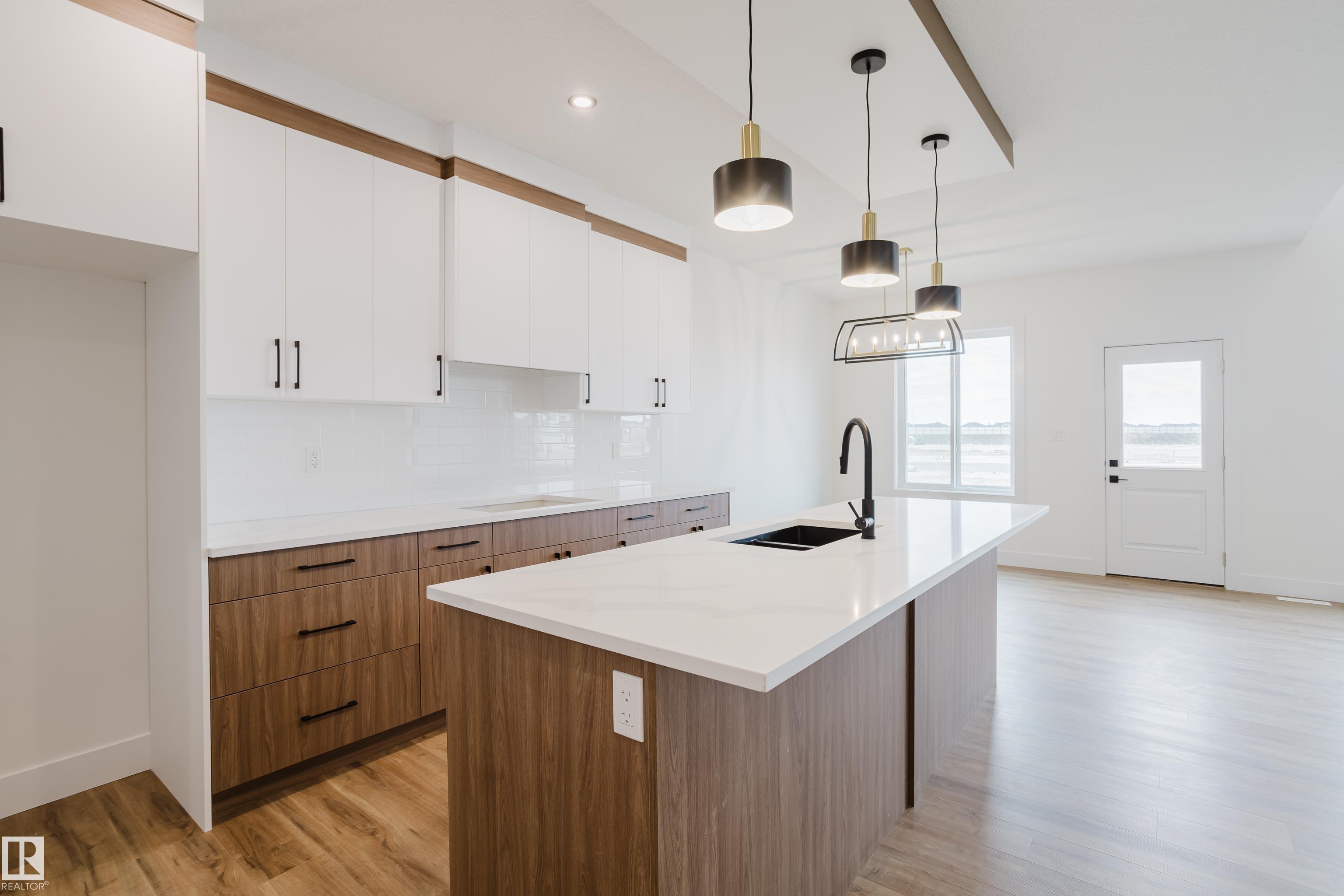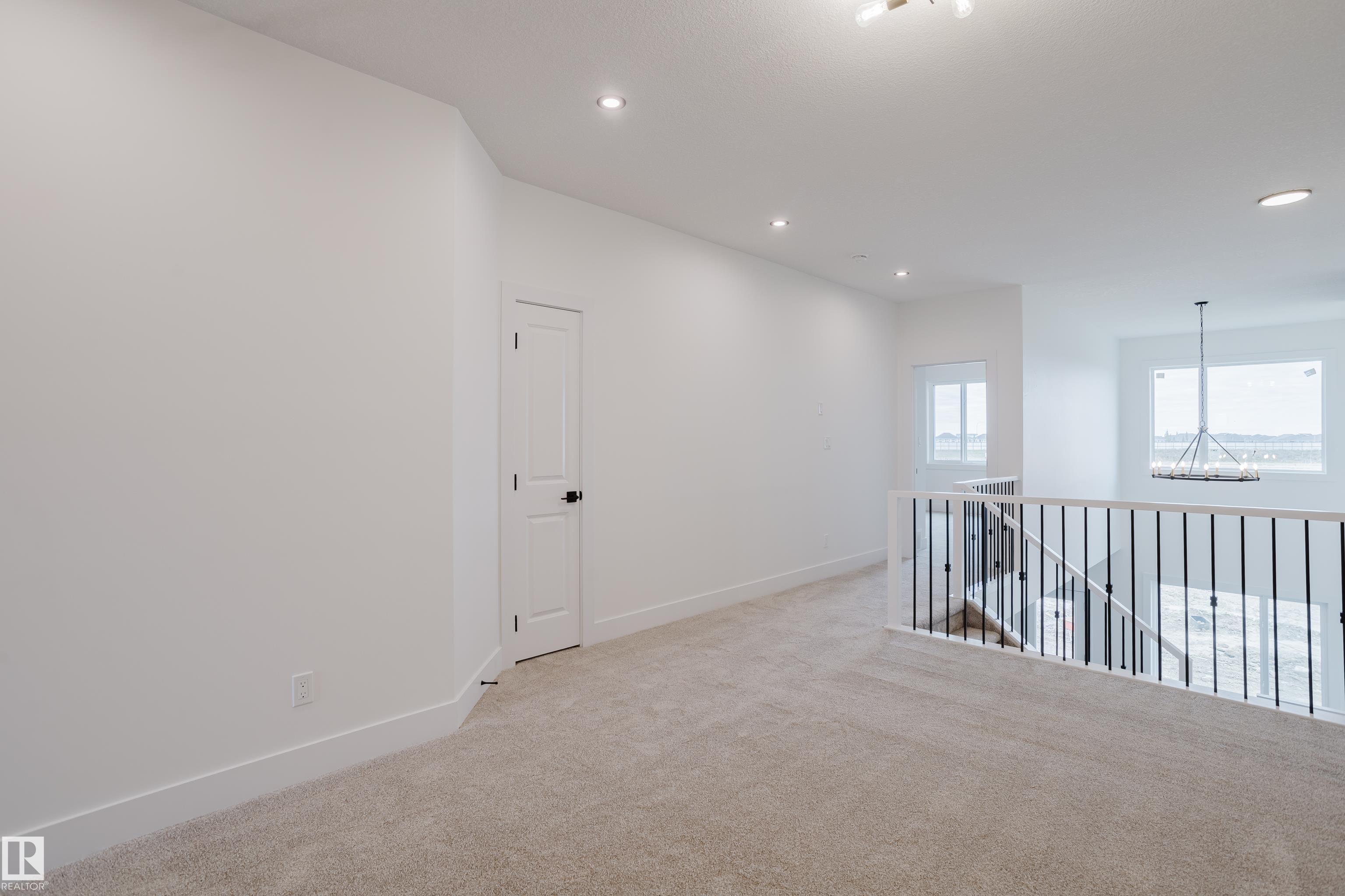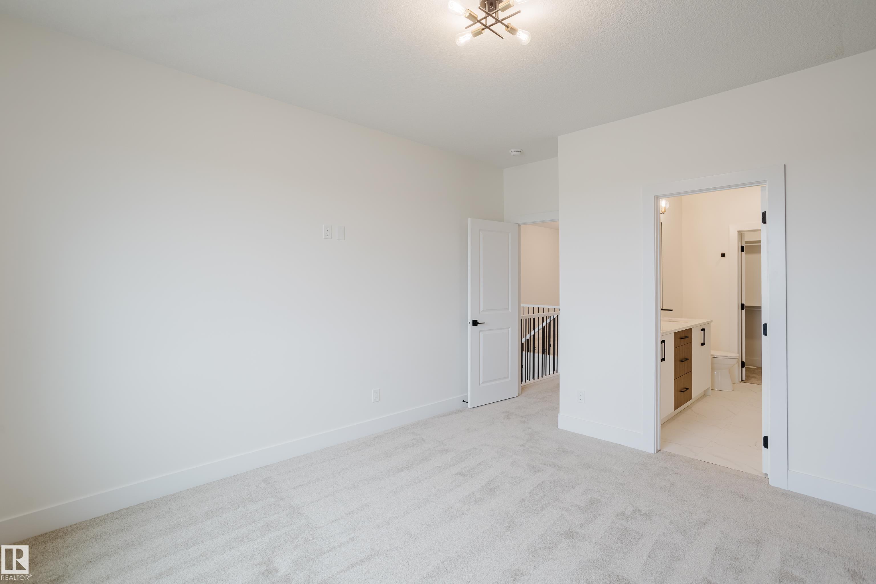 Located in the family-friendly community of Meadowview in Leduc, this Destino model offers a spacious layout with modern finishes throughout. The main floor features vinyl flooring, a den, and a full bath with a standing shower ideal for guests or a home office. The chef-inspired kitchen includes a walkthrough spice kitchen and flows into the dining area and great room, which is open to above with a built-in fireplace. Upstairs offers three bedrooms, including a primary suite with a five-piece ensuite, soaker tub, tiled shower, and walk-in closet. A bonus room and upper laundry add convenience, while the side entrance provides potential for future development.