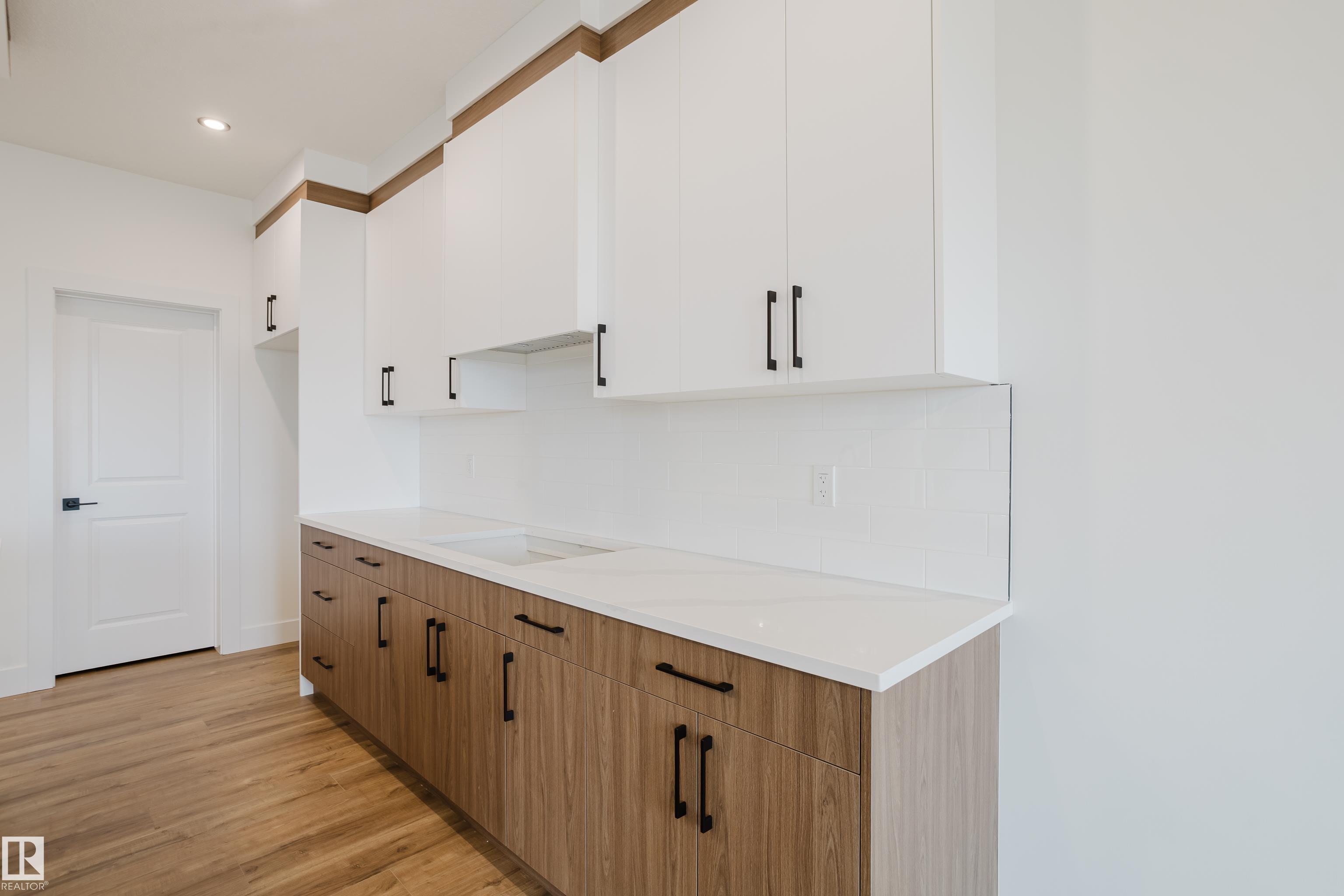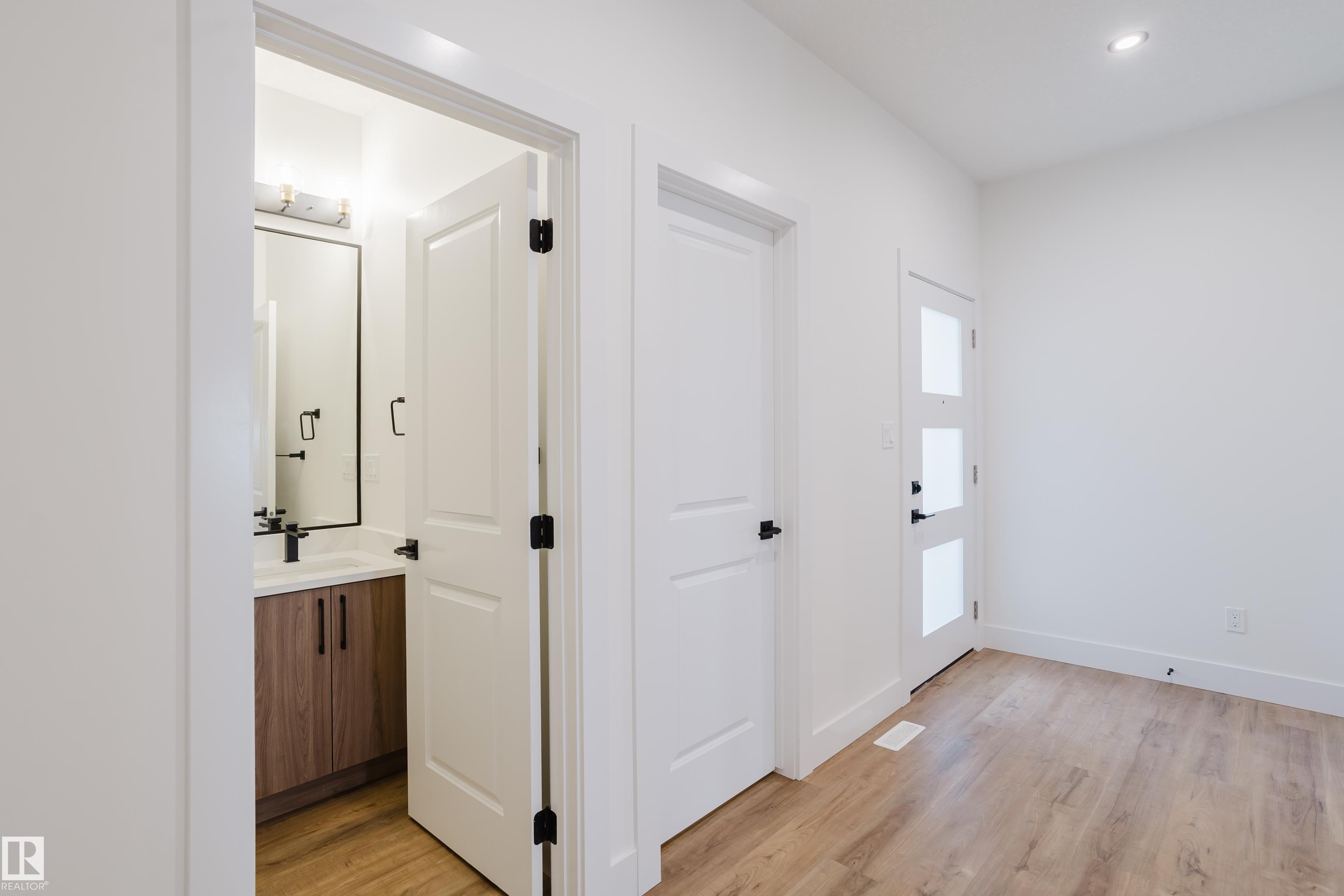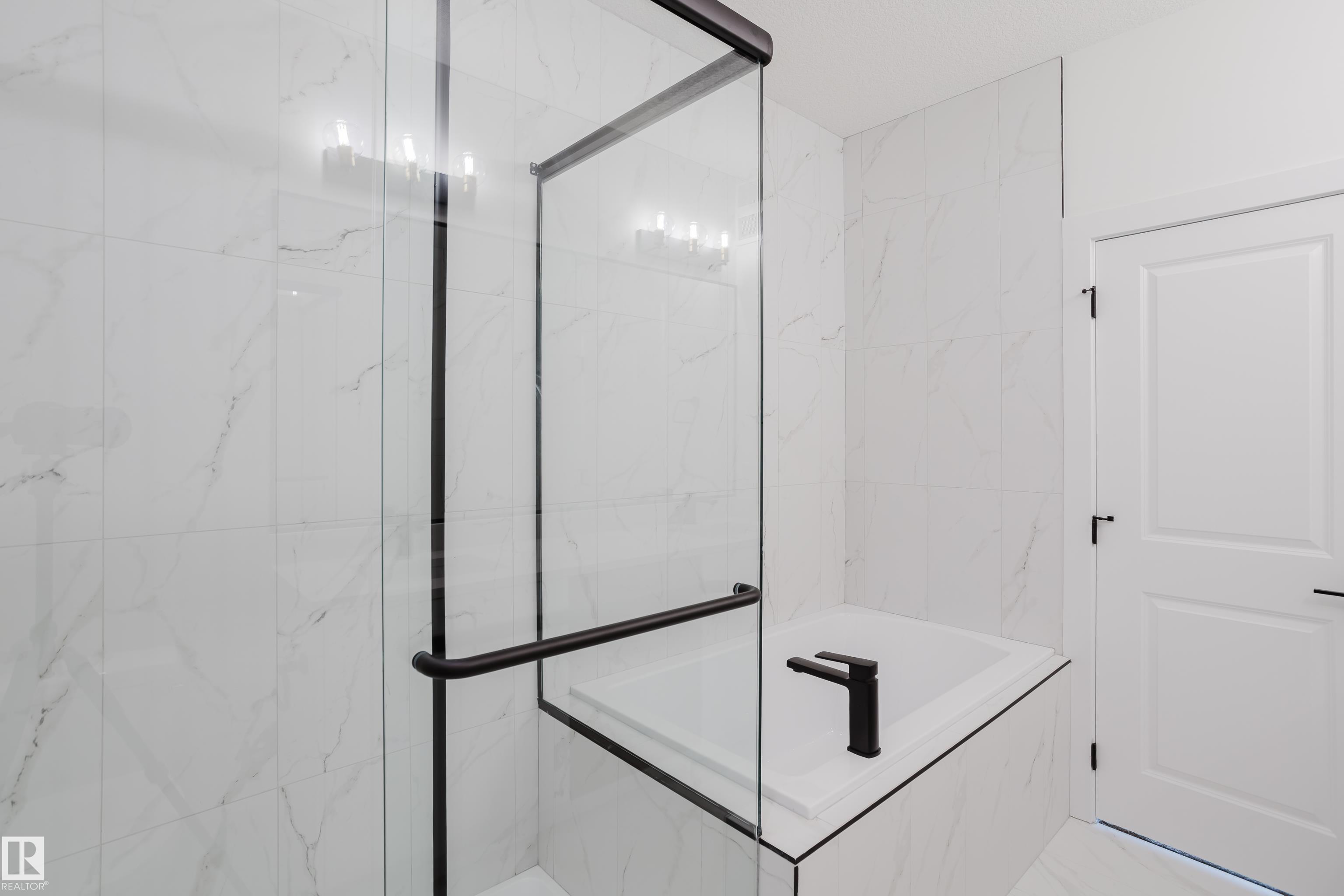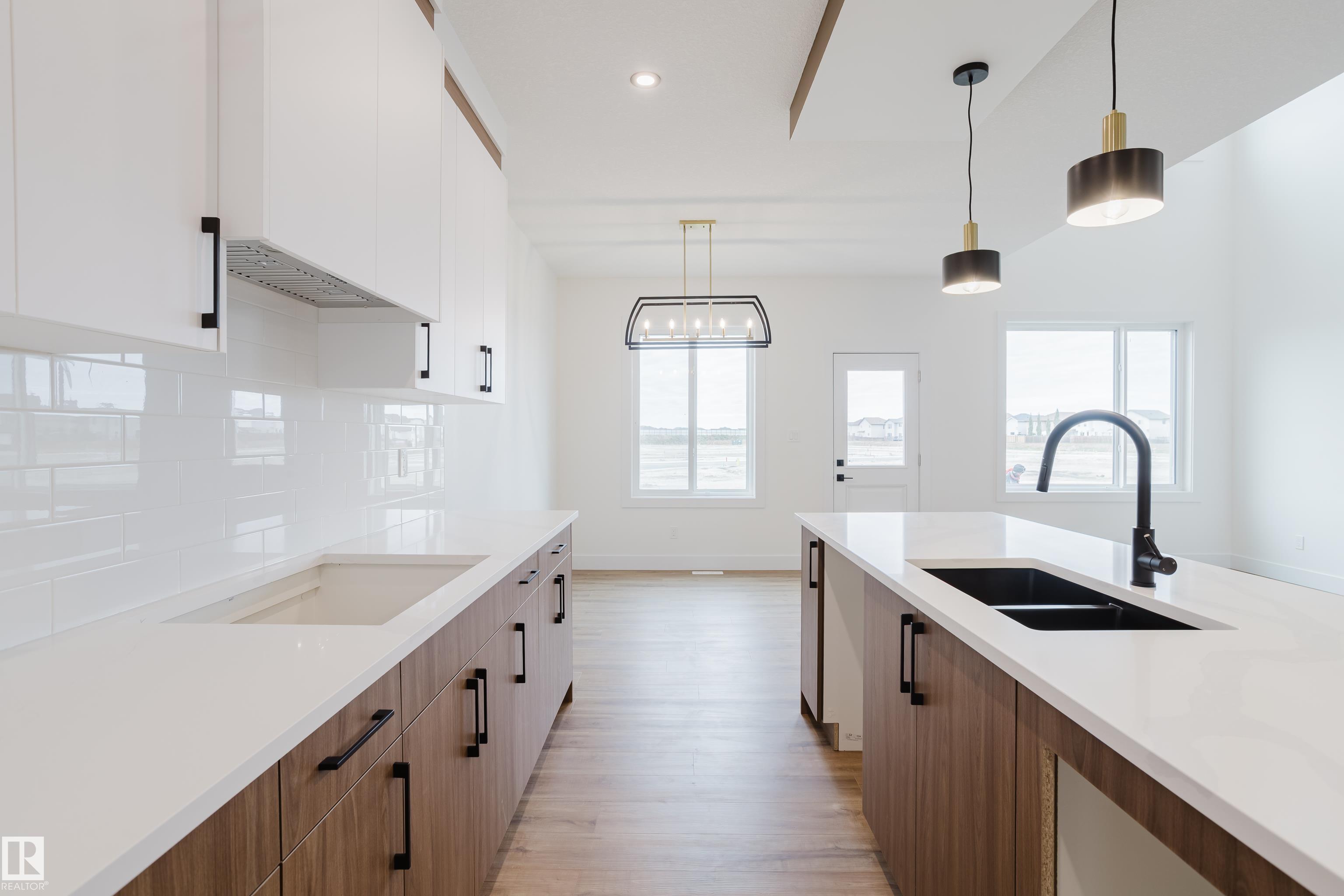 Located in the family-friendly community of Meadowview in Leduc, this Destino model offers a spacious layout with modern finishes throughout. The main floor features vinyl flooring, a den, and a full bath with a standing shower ideal for guests or a home office. The chef-inspired kitchen includes a walkthrough spice kitchen and flows into the dining area and great room, which is open to above with a built-in fireplace. Upstairs offers three bedrooms, including a primary suite with a five-piece ensuite, soaker tub, tiled shower, and walk-in closet. A bonus room and upper laundry add convenience, while the side entrance provides potential for future development.