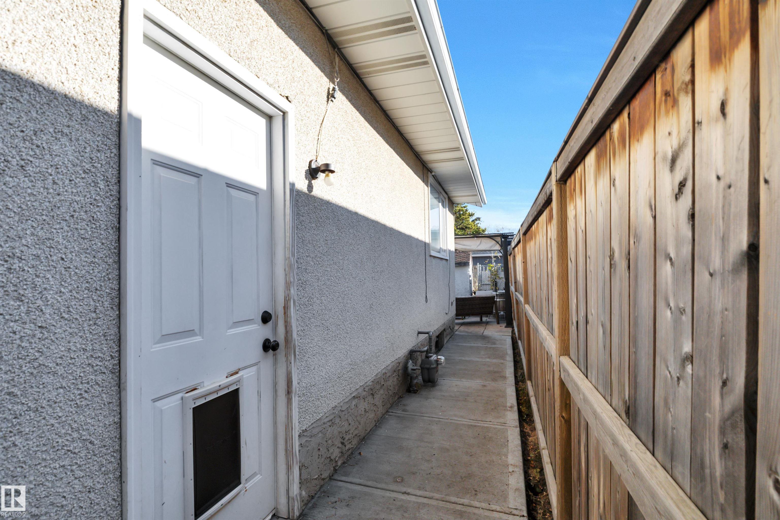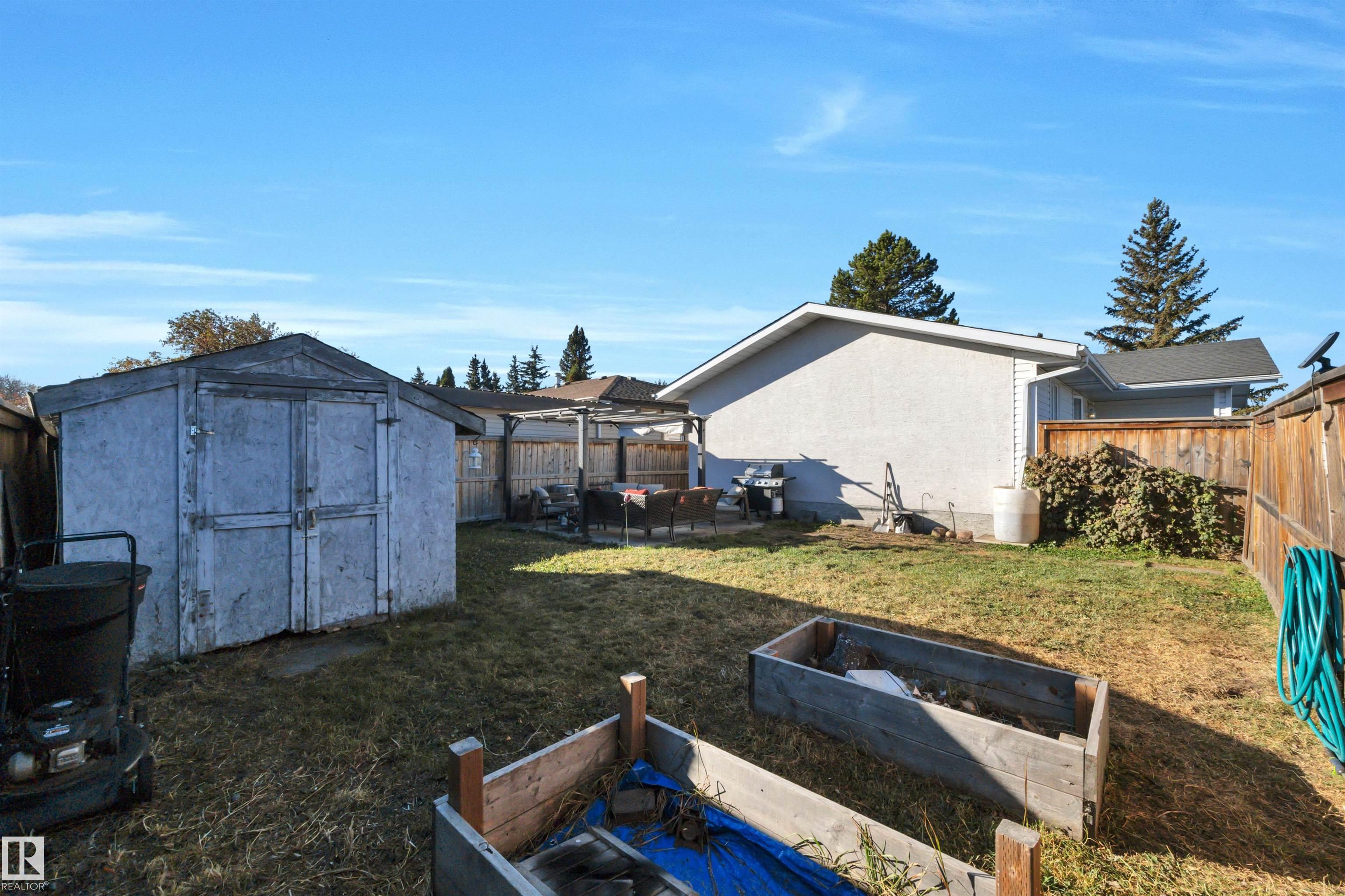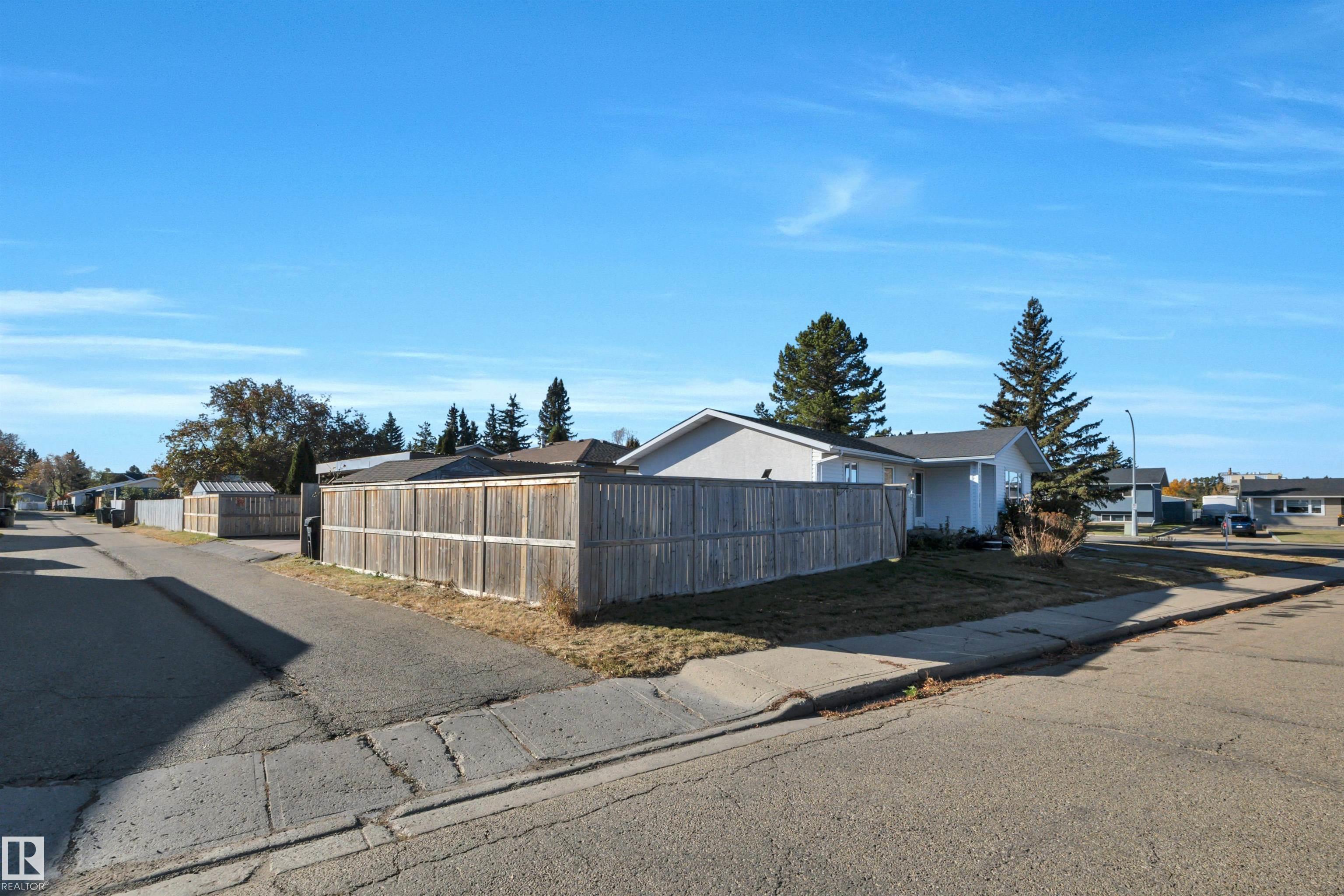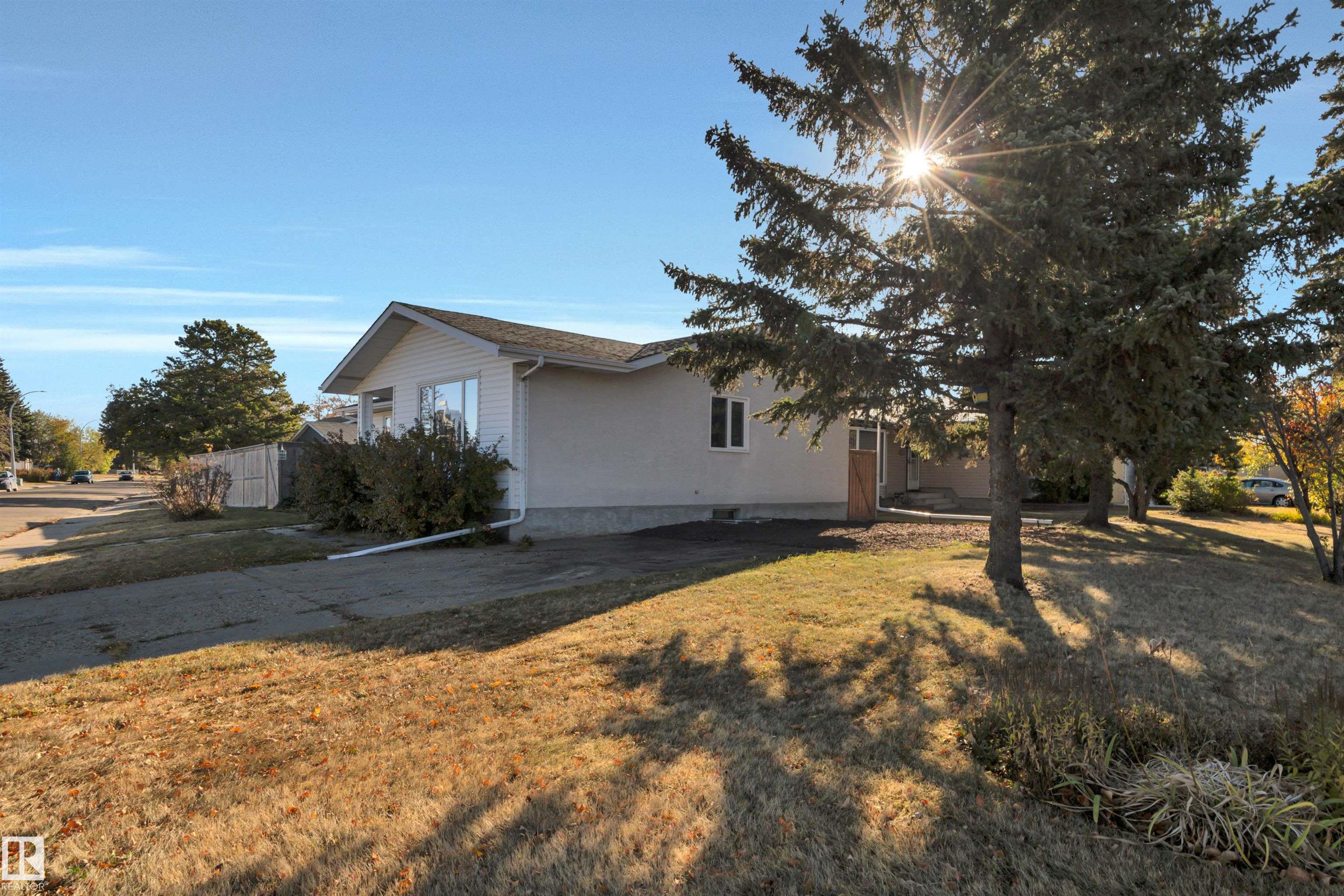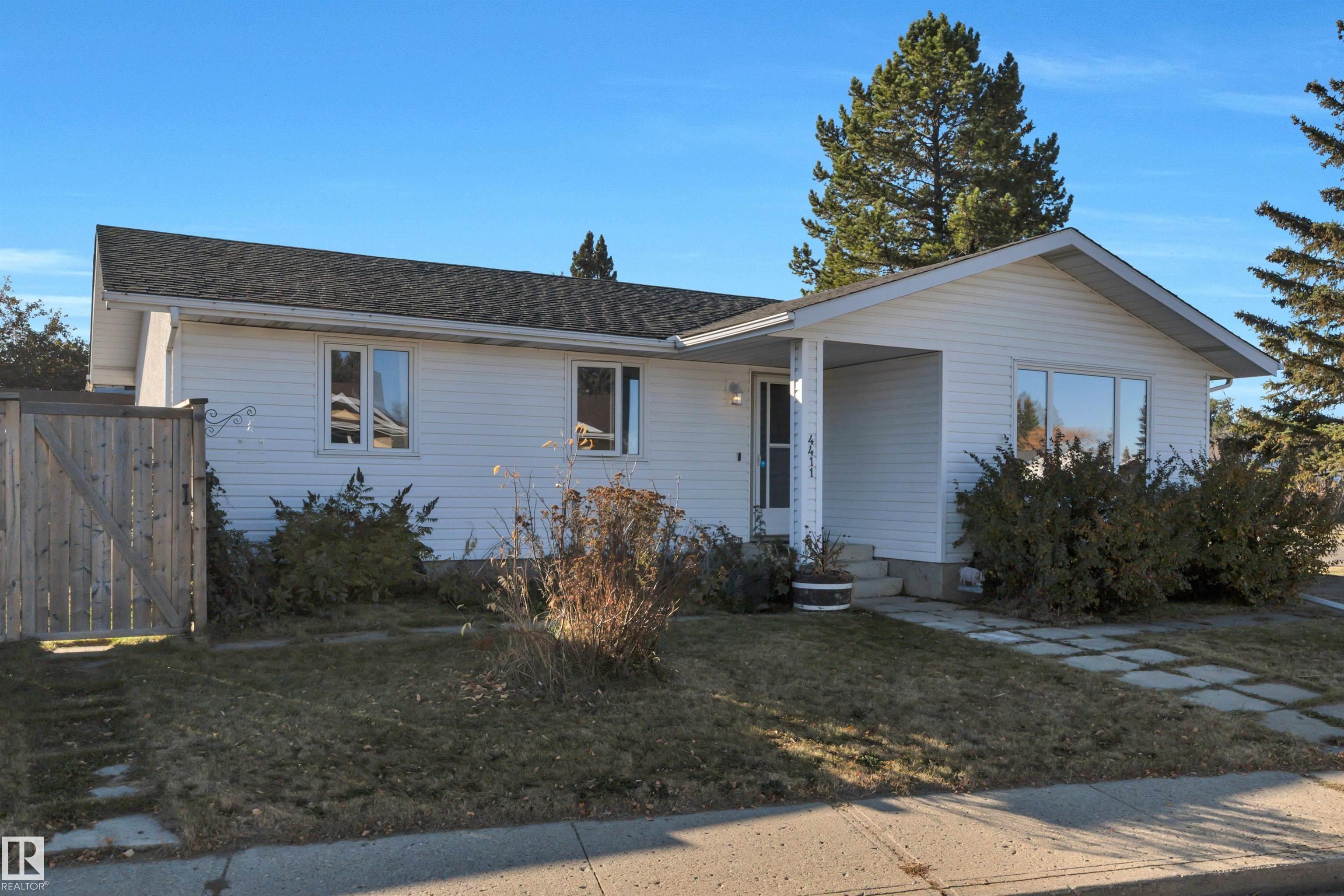Incredible value in this beautifully updated bungalow in Leduc! You?ll love the charm of 4411 42B Ave, set on a unique semi-pie corner lot with a truly private yard. At 5193 sqft, there?s space for RV parking and even a future garage, with access from both the road and laneway. Updates include shingles, soffits, fascia, siding, vinyl windows, bathrooms, flooring, high-efficiency furnace (2019) and newer appliances. It's move-in ready at a price that leaves room to make it your own! Inside, you?ll find 3 bedrooms upstairs, a full bath & a half ensuite; large open living room + dining room at the front of the home and kitchen + eating nook. The separate back entry has a concrete walkway that leads to the fenced in yard, including patio/pergola, garden beds, shed, & plenty of yard left. The finished basement adds more cozy living/rec space with a full bath and room. Fantastic location?steps to both public & catholic schools, Leduc Rec Centre, shopping amenities, Telford Lake trails, and the off-leash park!