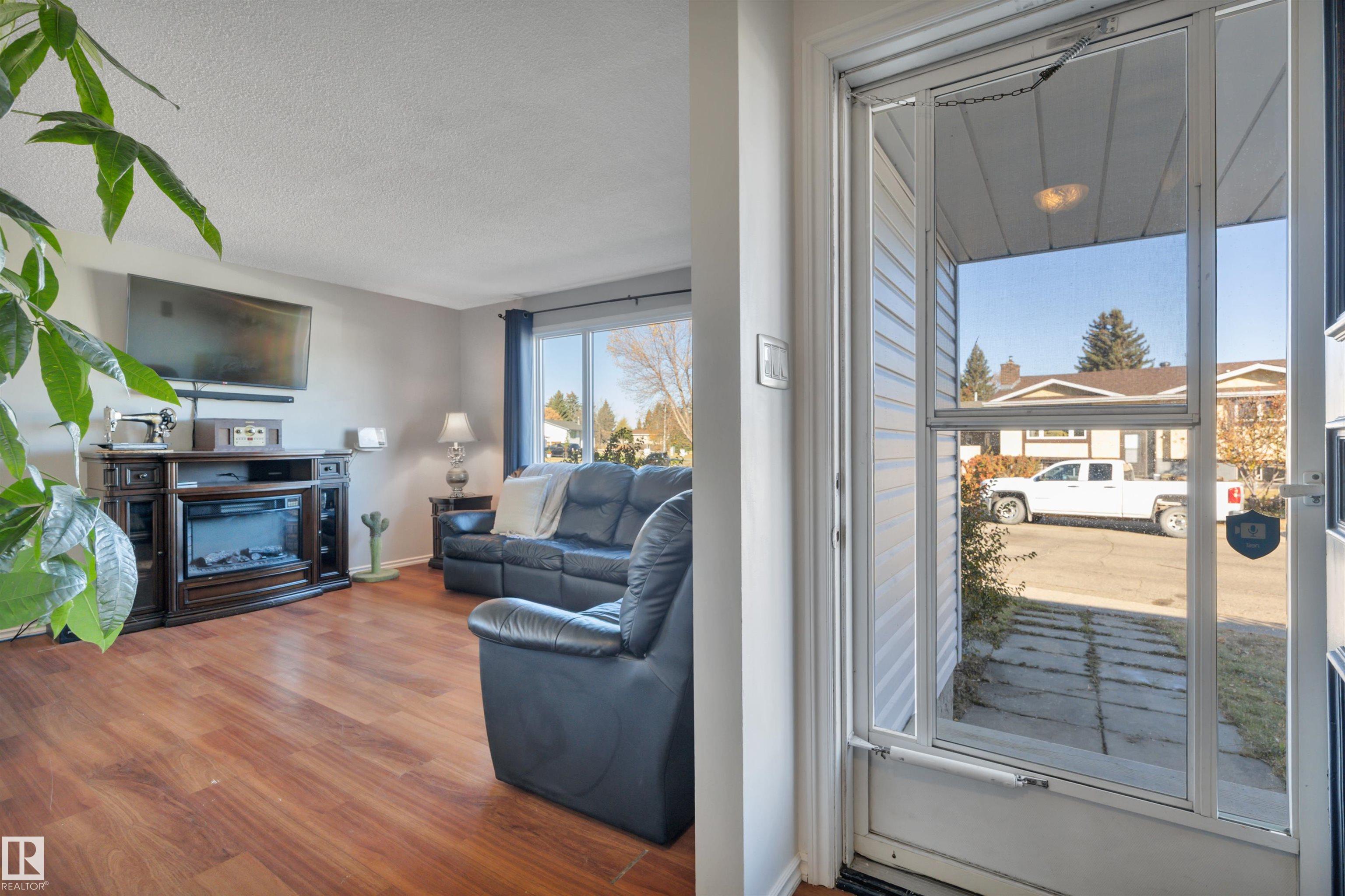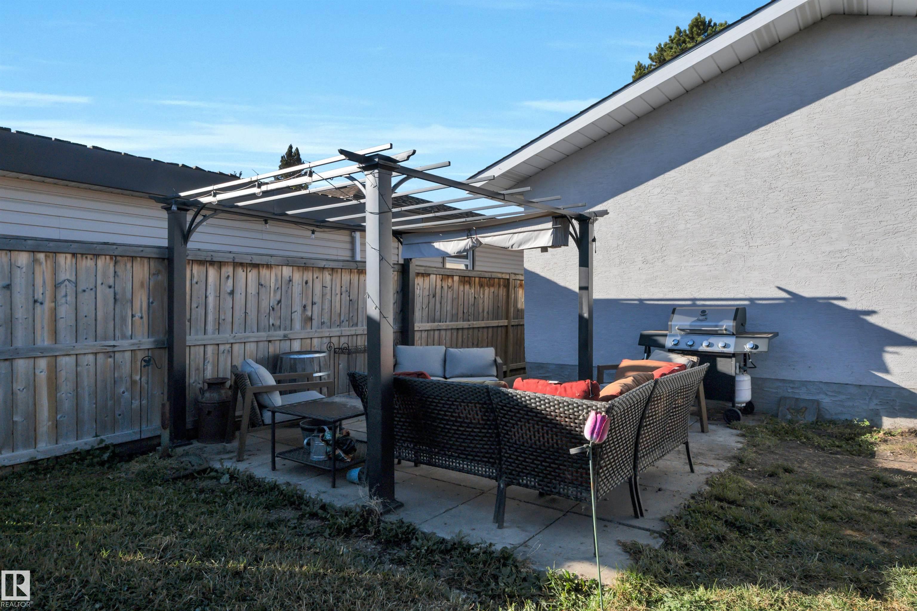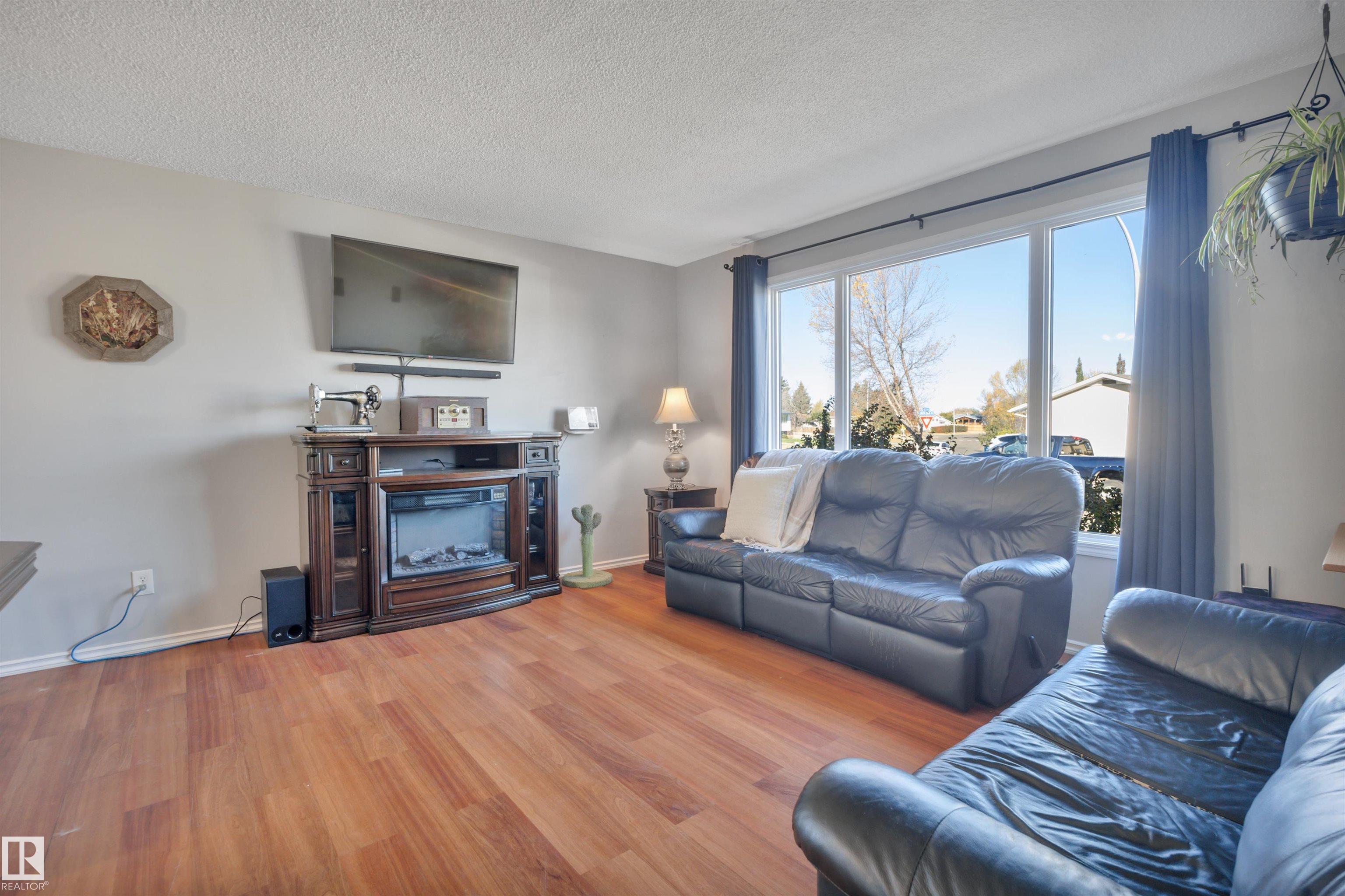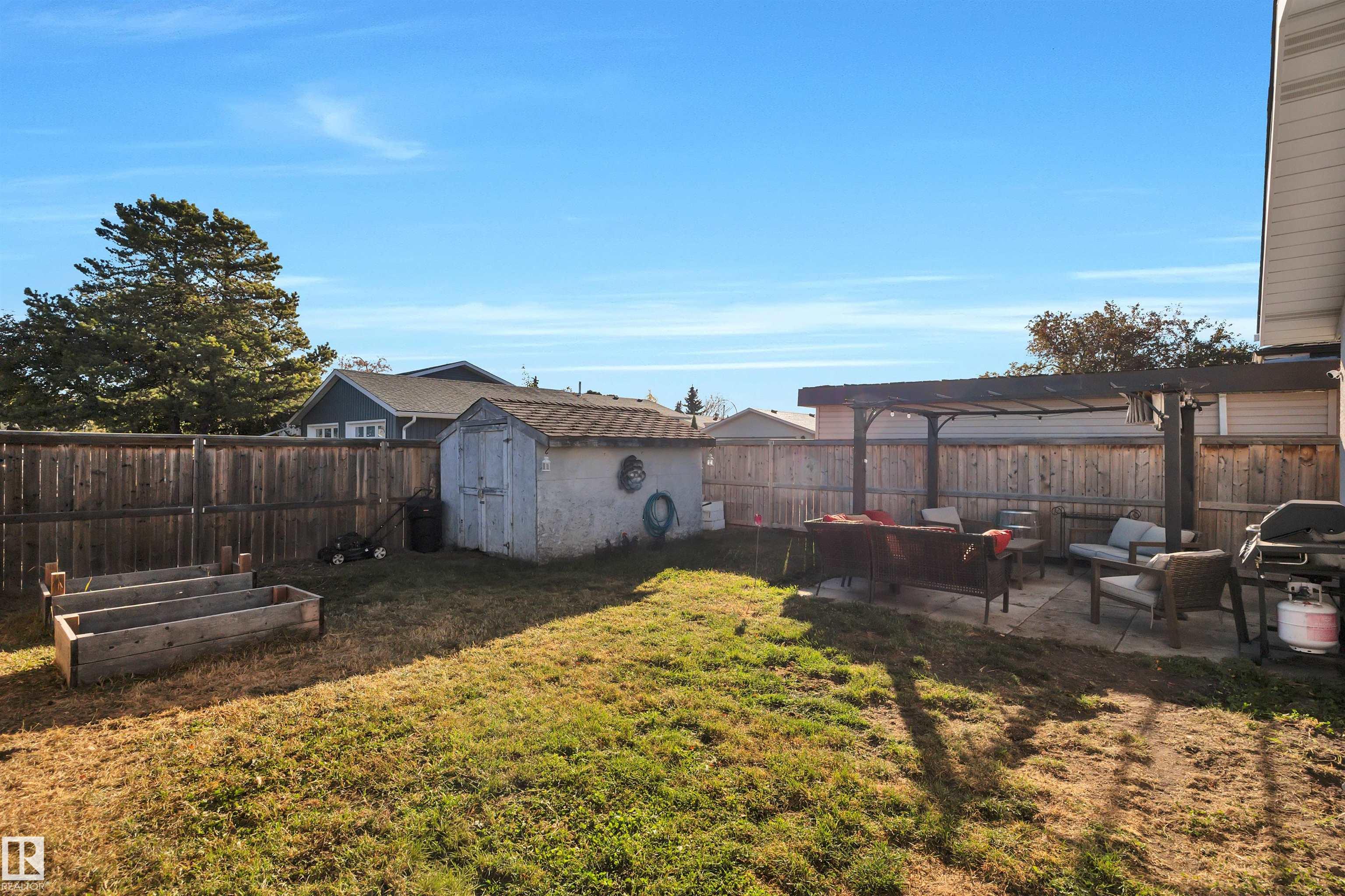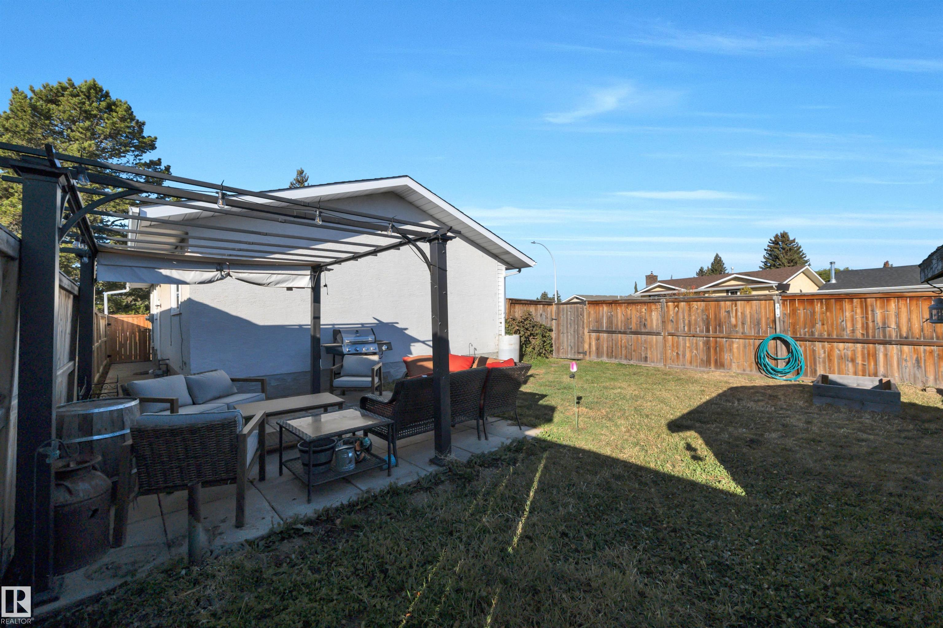 Incredible value in this beautifully updated bungalow in Leduc! You?ll love the charm of 4411 42B Ave, set on a unique semi-pie corner lot with a truly private yard. At 5193 sqft, there?s space for RV parking and even a future garage, with access from both the road and laneway. Updates include shingles, soffits, fascia, siding, vinyl windows, bathrooms, flooring, high-efficiency furnace (2019) and newer appliances. It's move-in ready at a price that leaves room to make it your own! Inside, you?ll find 3 bedrooms upstairs, a full bath & a half ensuite; large open living room + dining room at the front of the home and kitchen + eating nook. The separate back entry has a concrete walkway that leads to the fenced in yard, including patio/pergola, garden beds, shed, & plenty of yard left. The finished basement adds more cozy living/rec space with a full bath and room. Fantastic location?steps to both public & catholic schools, Leduc Rec Centre, shopping amenities, Telford Lake trails, and the off-leash park!