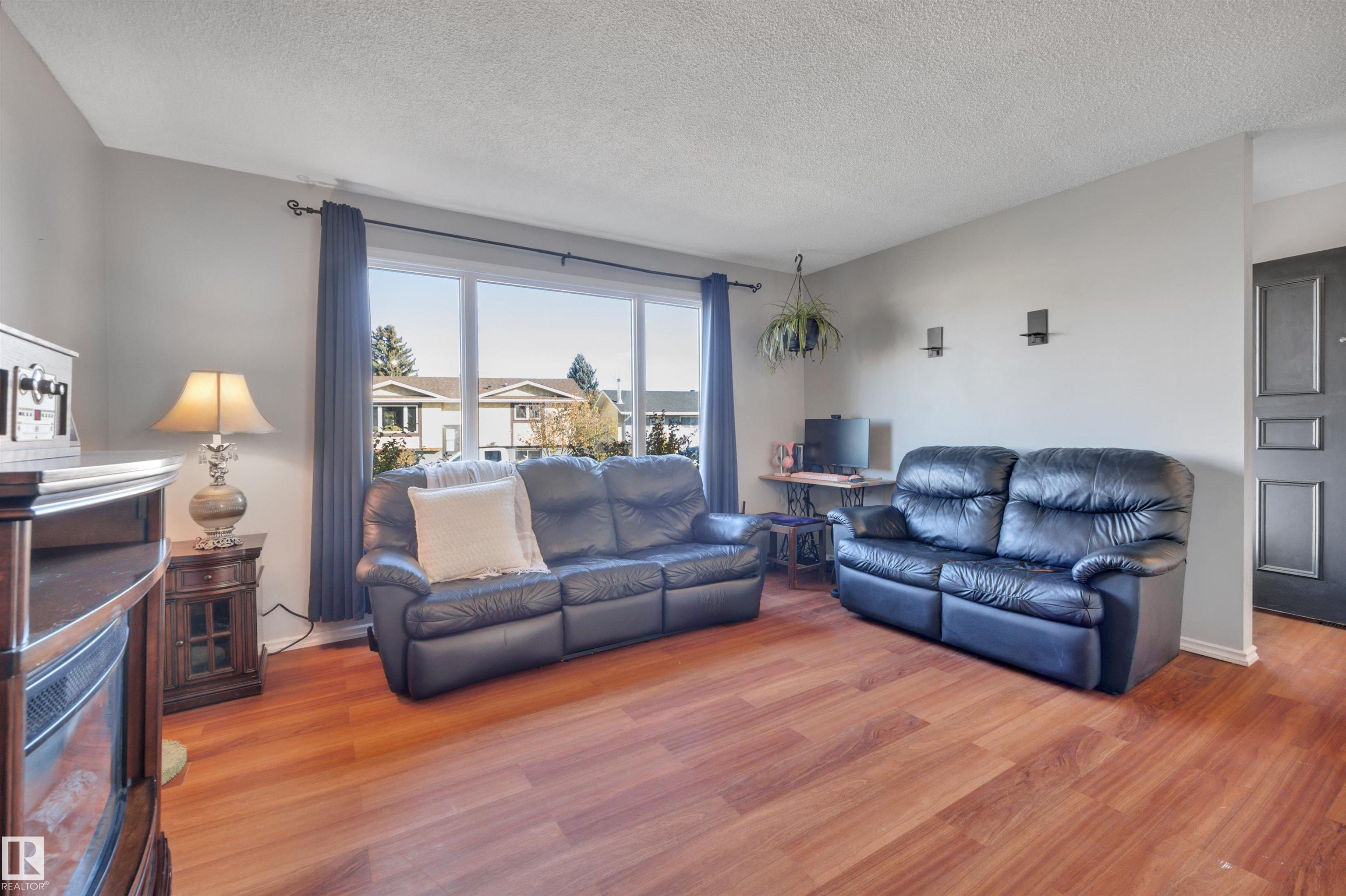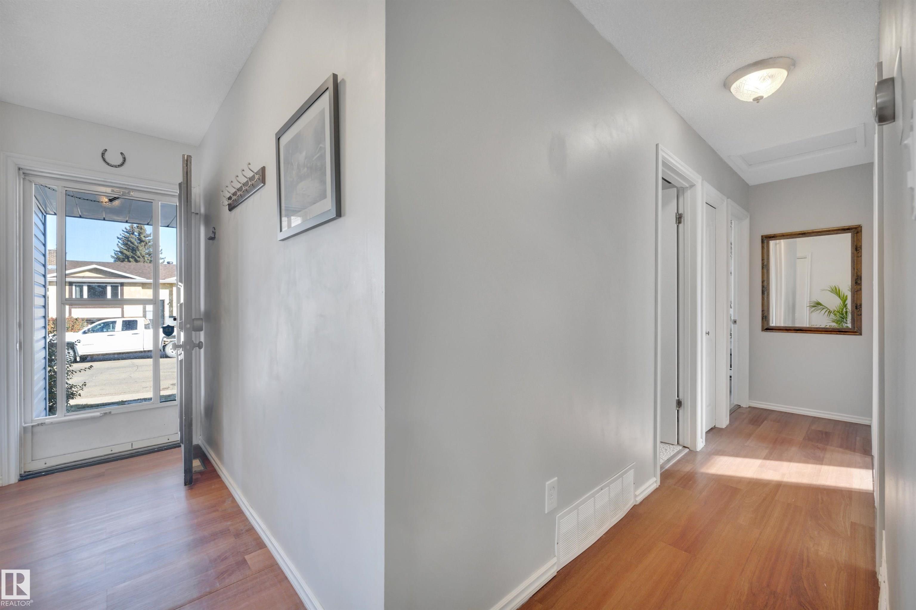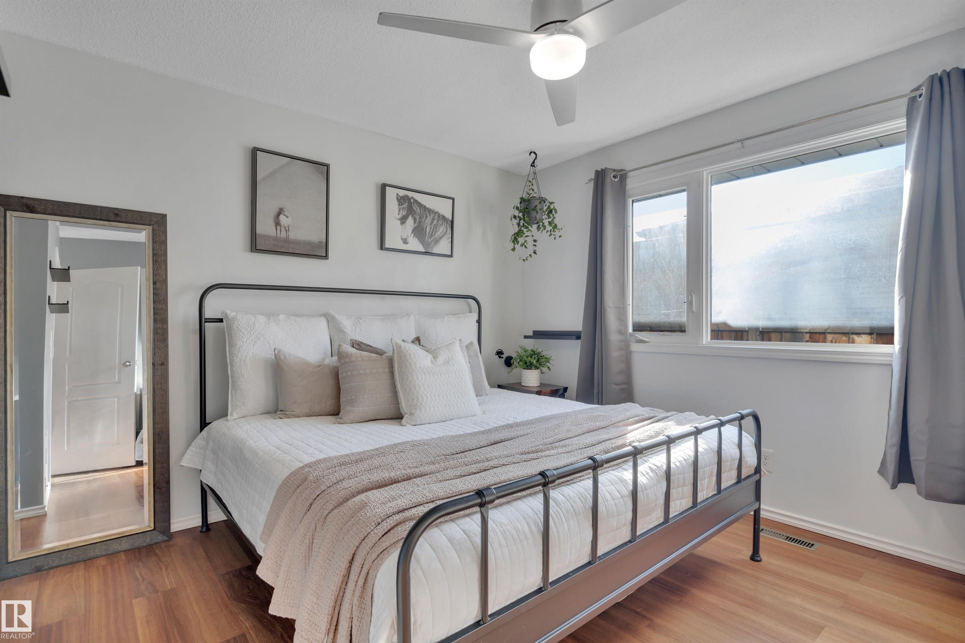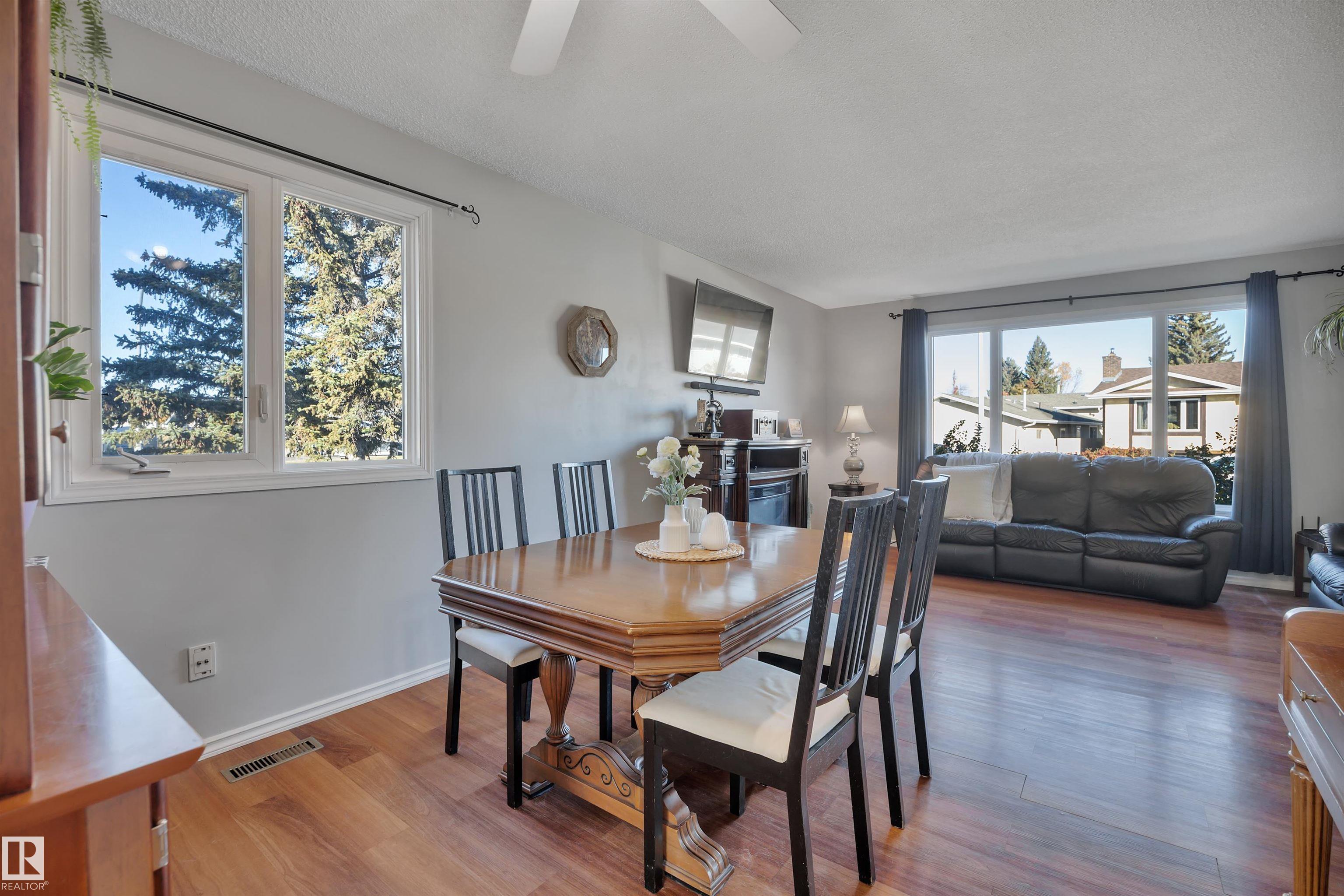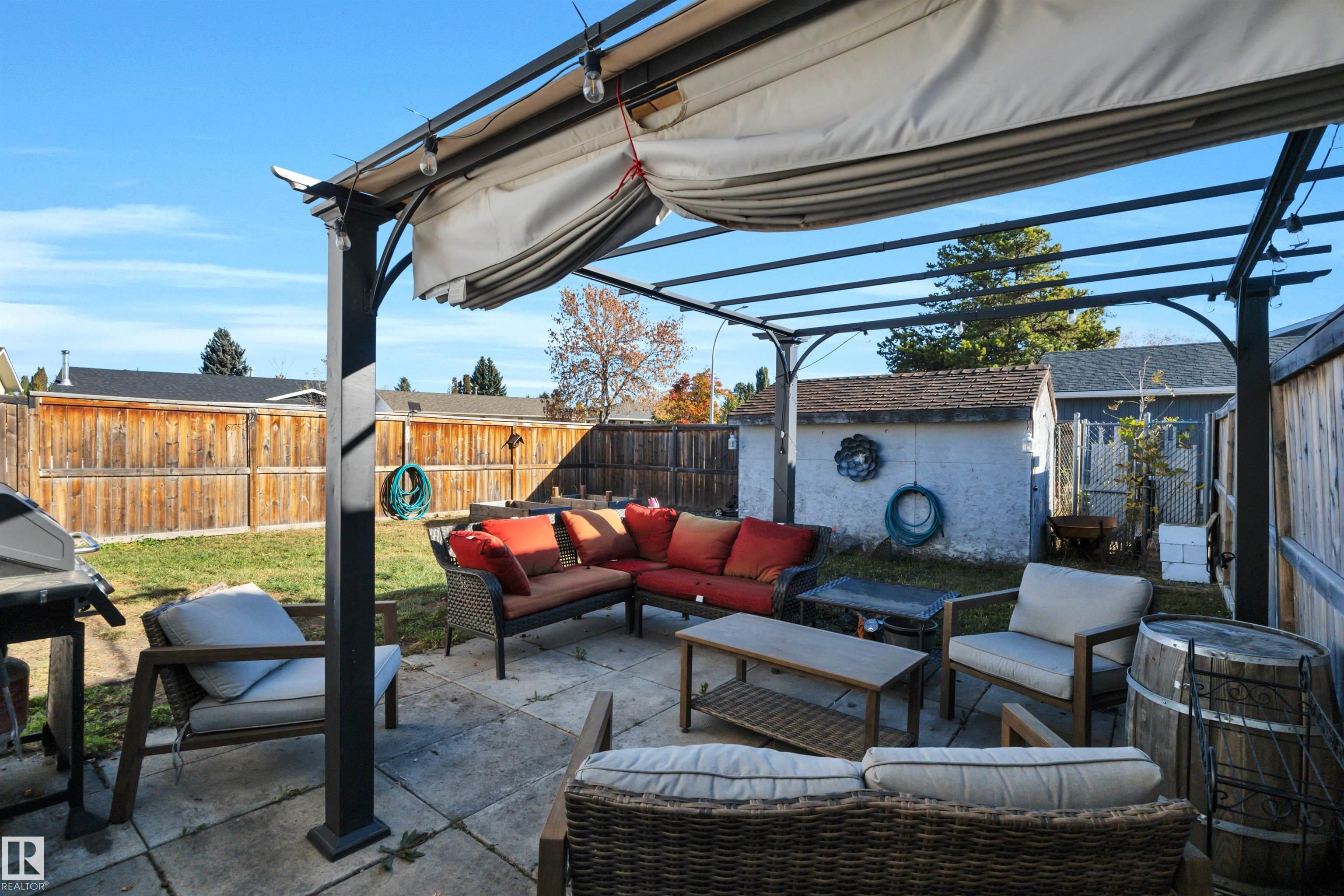 Incredible value in this beautifully updated bungalow in Leduc! You?ll love the charm of 4411 42B Ave, set on a unique semi-pie corner lot with a truly private yard. At 5193 sqft, there?s space for RV parking and even a future garage, with access from both the road and laneway. Updates include shingles, soffits, fascia, siding, vinyl windows, bathrooms, flooring, high-efficiency furnace (2019) and newer appliances. It's move-in ready at a price that leaves room to make it your own! Inside, you?ll find 3 bedrooms upstairs, a full bath & a half ensuite; large open living room + dining room at the front of the home and kitchen + eating nook. The separate back entry has a concrete walkway that leads to the fenced in yard, including patio/pergola, garden beds, shed, & plenty of yard left. The finished basement adds more cozy living/rec space with a full bath and room. Fantastic location?steps to both public & catholic schools, Leduc Rec Centre, shopping amenities, Telford Lake trails, and the off-leash park!
