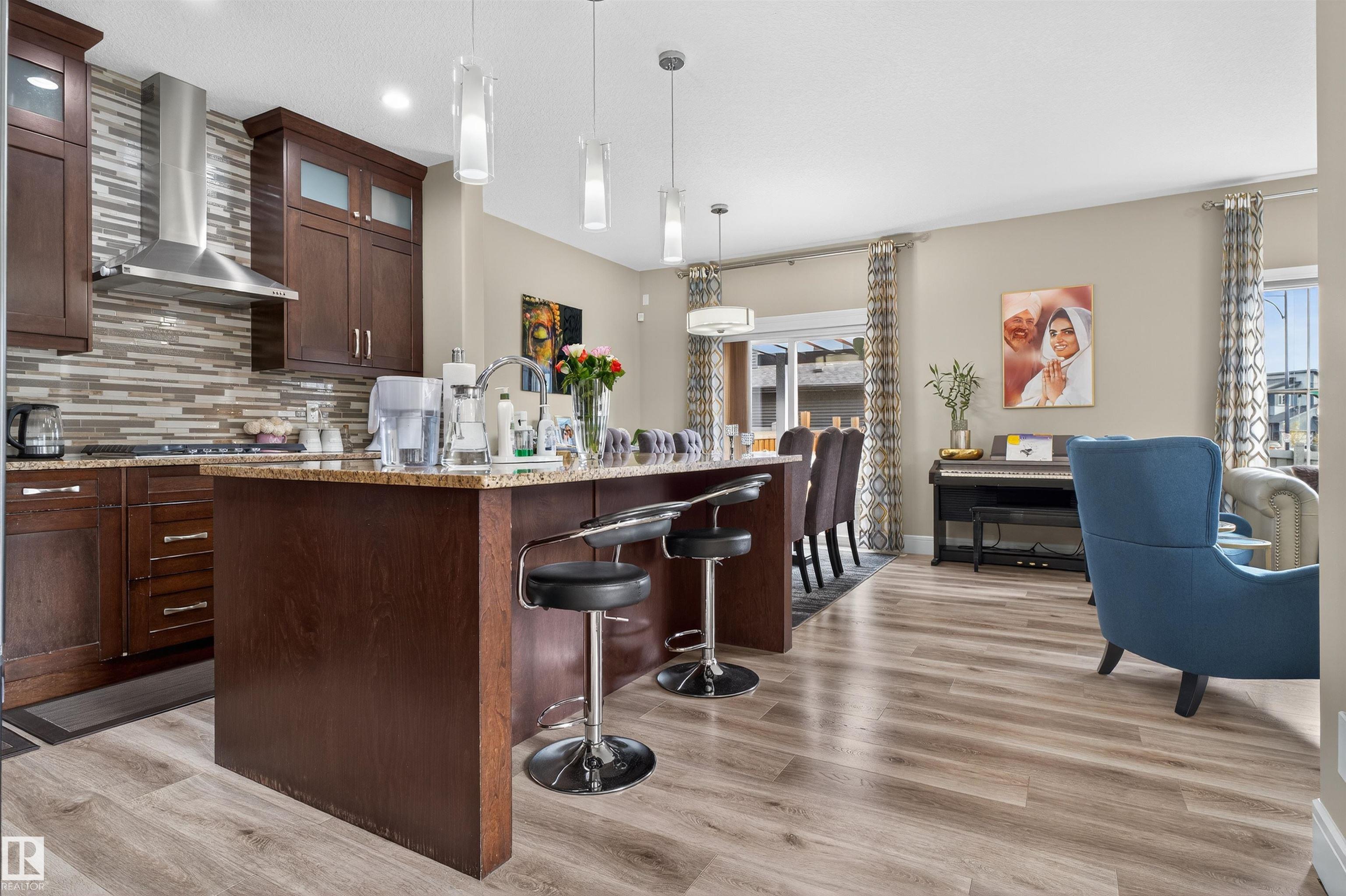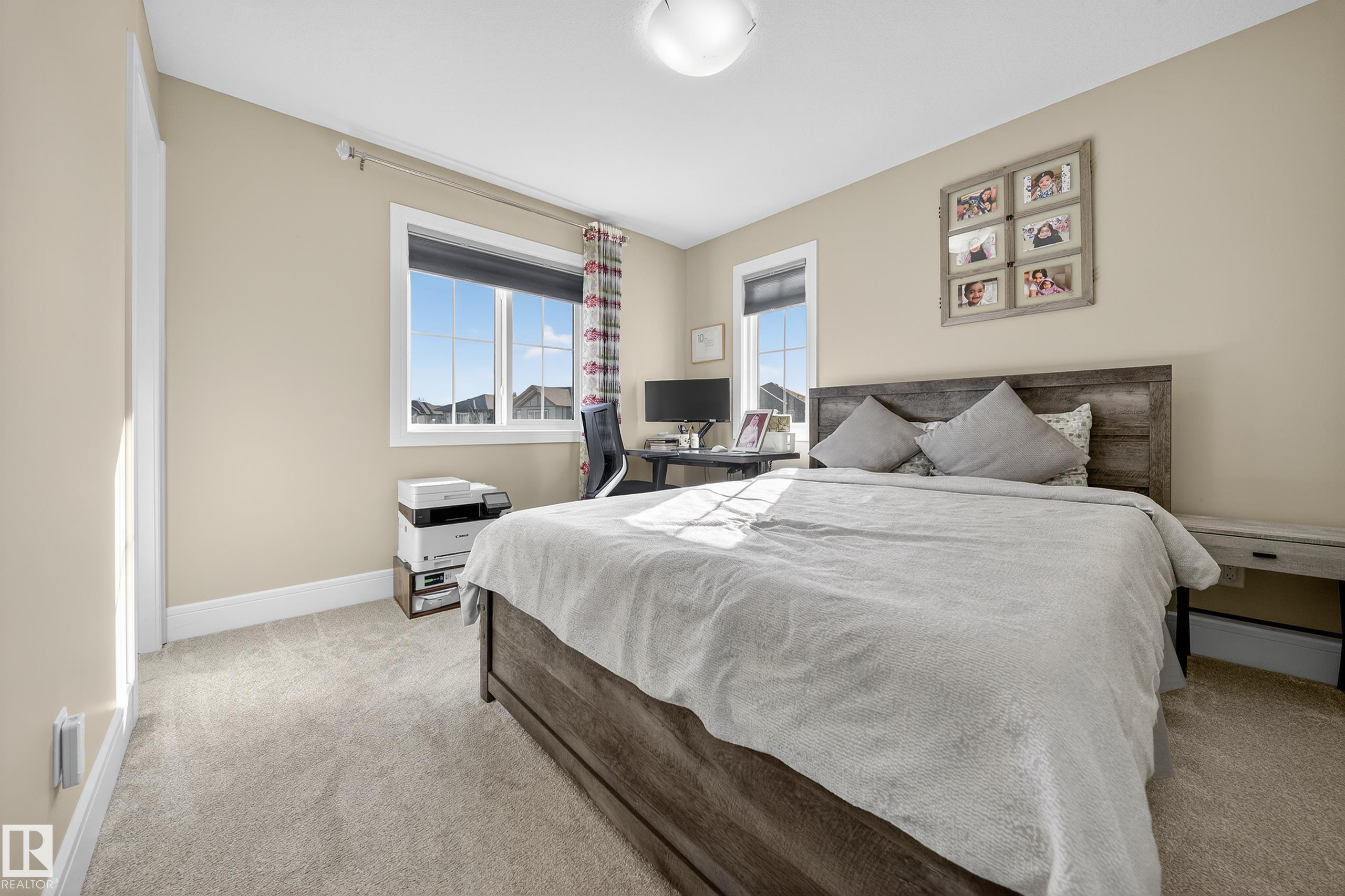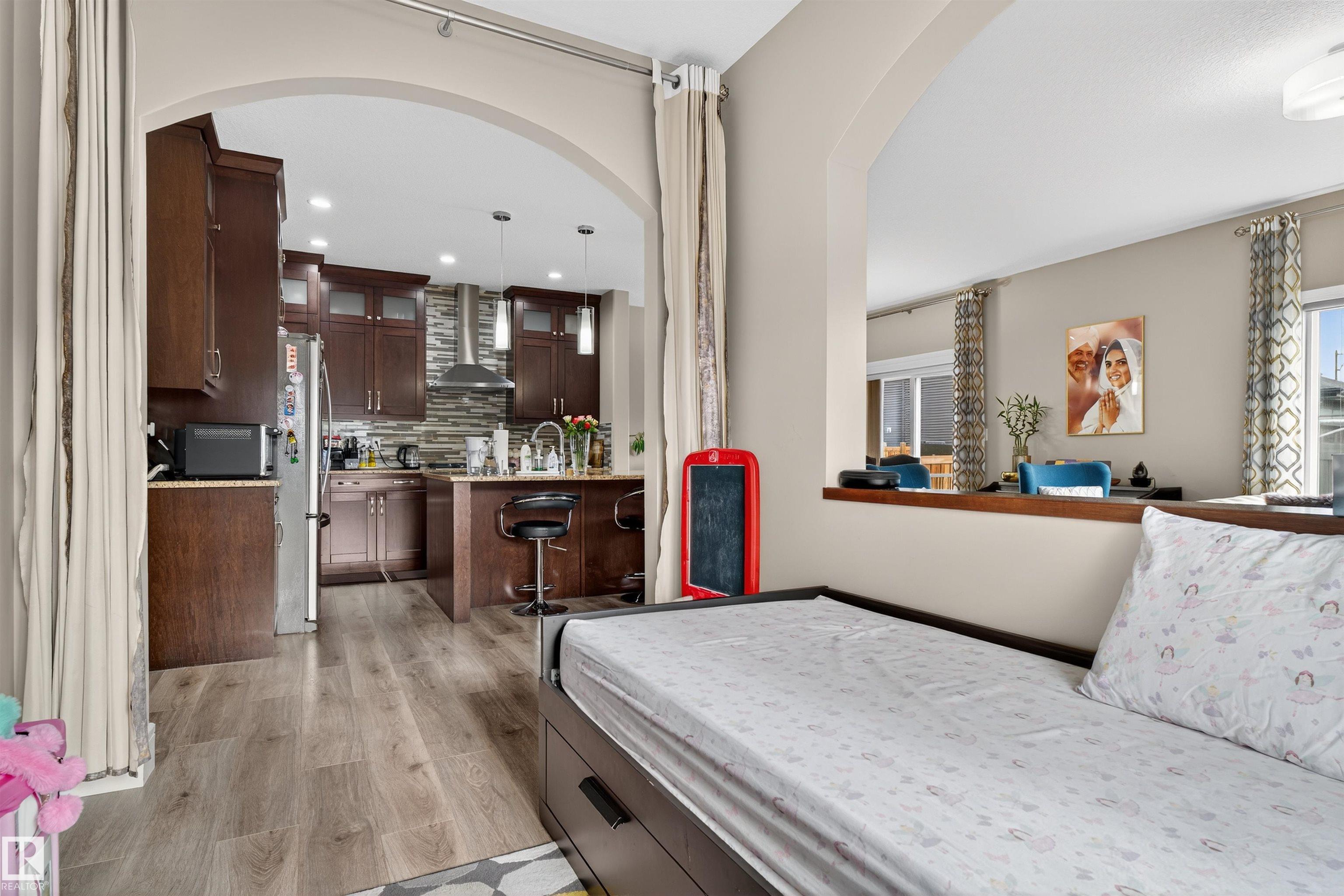 Welcome to this beautifully designed 5 bed, 3.5 bath home with a legal basement suite in the desirable Chappelle! Offering over 2,100 sq.ft. of elegant living space, this home highlights superior craftsmanship with granite countertops, rich maple cabinetry, stainless steel appliances, knockdown ceilings, ceramic tile, and stylish baseboards. The open-concept main floor features a chef?s kitchen with soft-close drawers, glass uppers to the ceiling, walk-through pantry, 5-burner gas cooktop, built-in oven, and a large island overlooking the cozy family room with a sleek gas fireplace. A main-floor den adds space for work or study. Upstairs includes a bonus room, laundry, 3 bedrooms which includes a luxurious primary suite with double sinks, soaker tub, tiled shower, and walk-in closet. The fully finished basement has 2bedroom legal suite. Close to parks, schools, shopping & Edmonton International Airport!