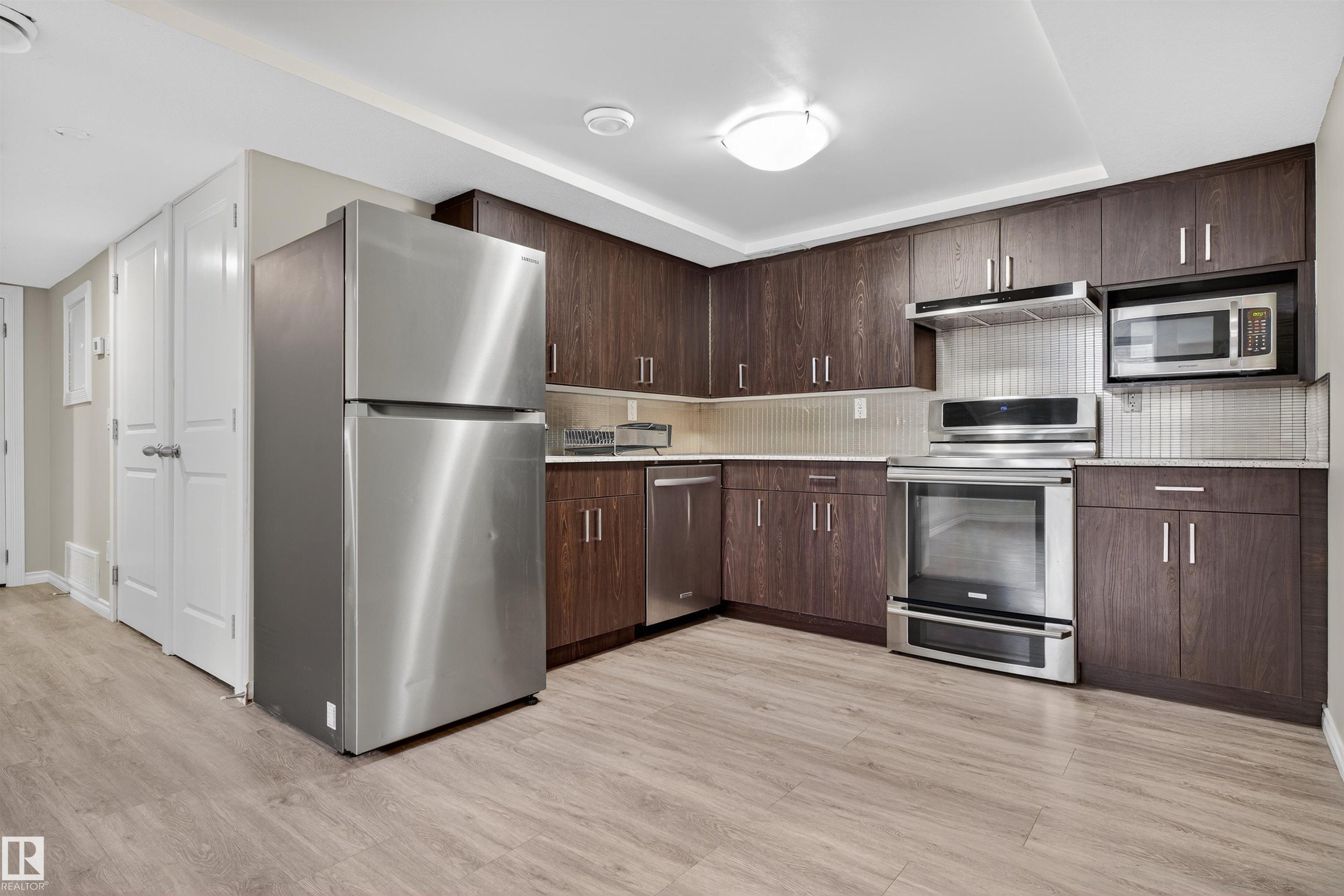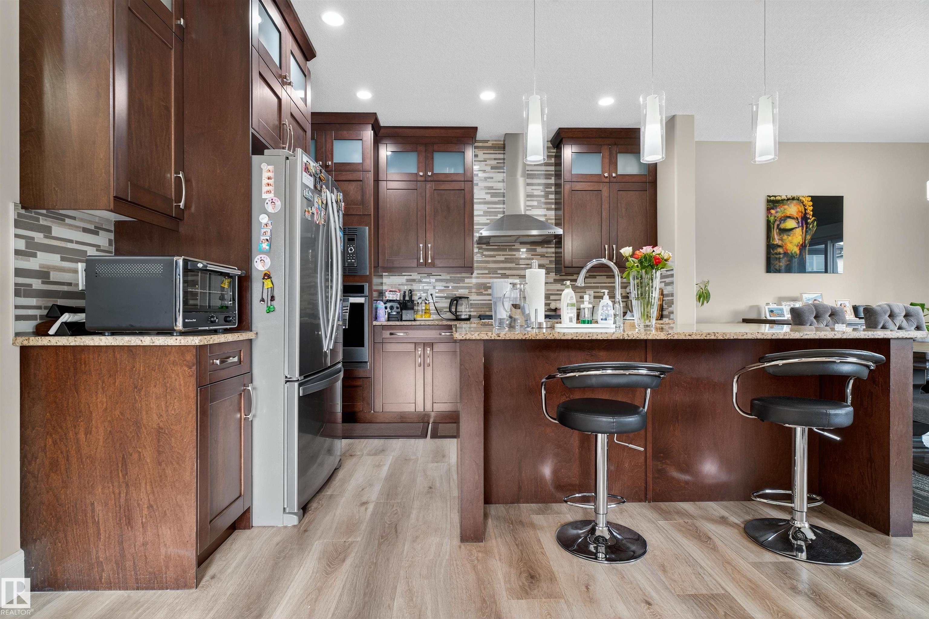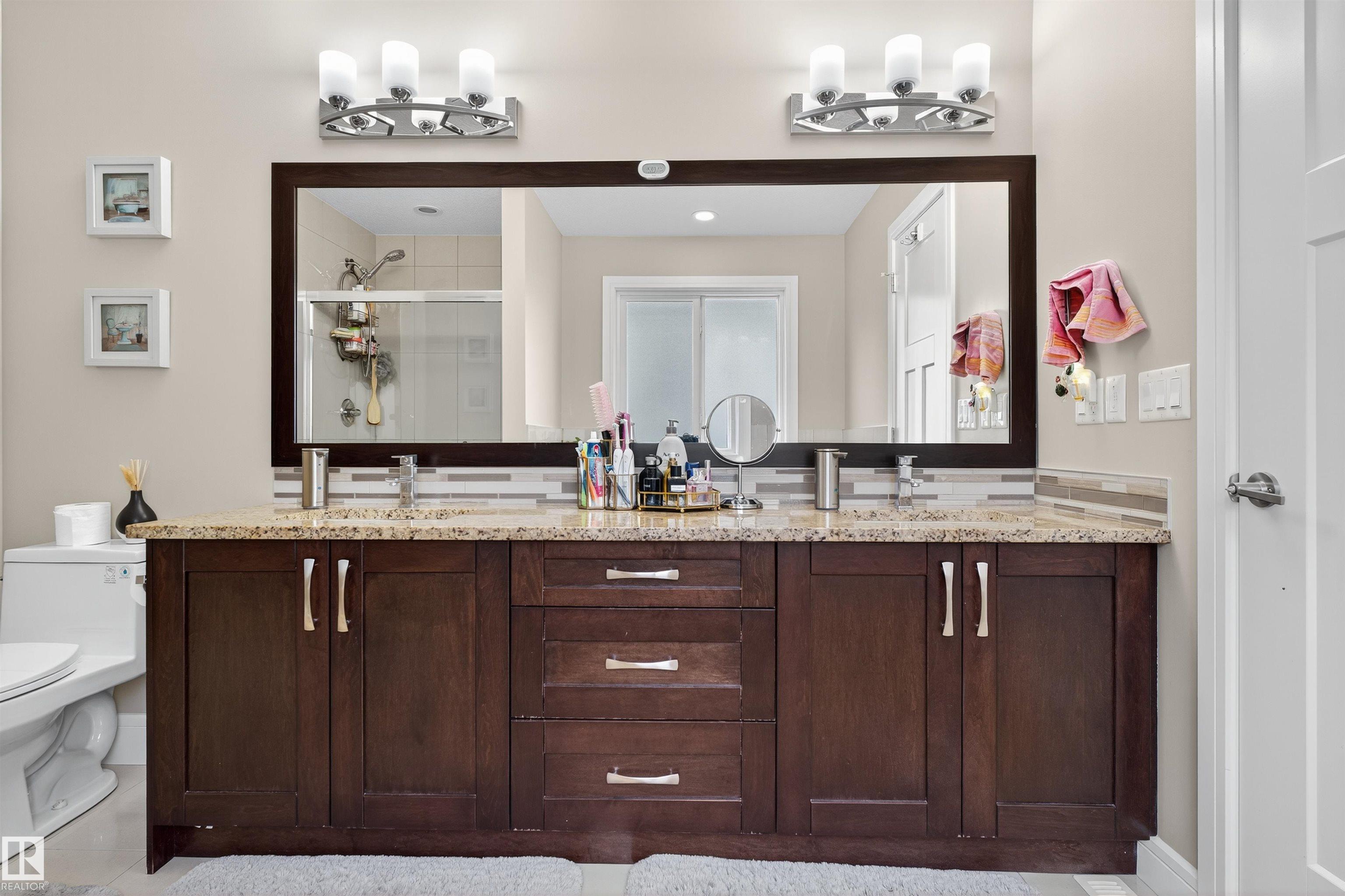 Welcome to this beautifully designed 5 bed, 3.5 bath home with a legal basement suite in the desirable Chappelle! Offering over 2,100 sq.ft. of elegant living space, this home highlights superior craftsmanship with granite countertops, rich maple cabinetry, stainless steel appliances, knockdown ceilings, ceramic tile, and stylish baseboards. The open-concept main floor features a chef?s kitchen with soft-close drawers, glass uppers to the ceiling, walk-through pantry, 5-burner gas cooktop, built-in oven, and a large island overlooking the cozy family room with a sleek gas fireplace. A main-floor den adds space for work or study. Upstairs includes a bonus room, laundry, 3 bedrooms which includes a luxurious primary suite with double sinks, soaker tub, tiled shower, and walk-in closet. The fully finished basement has 2bedroom legal suite. Close to parks, schools, shopping & Edmonton International Airport!