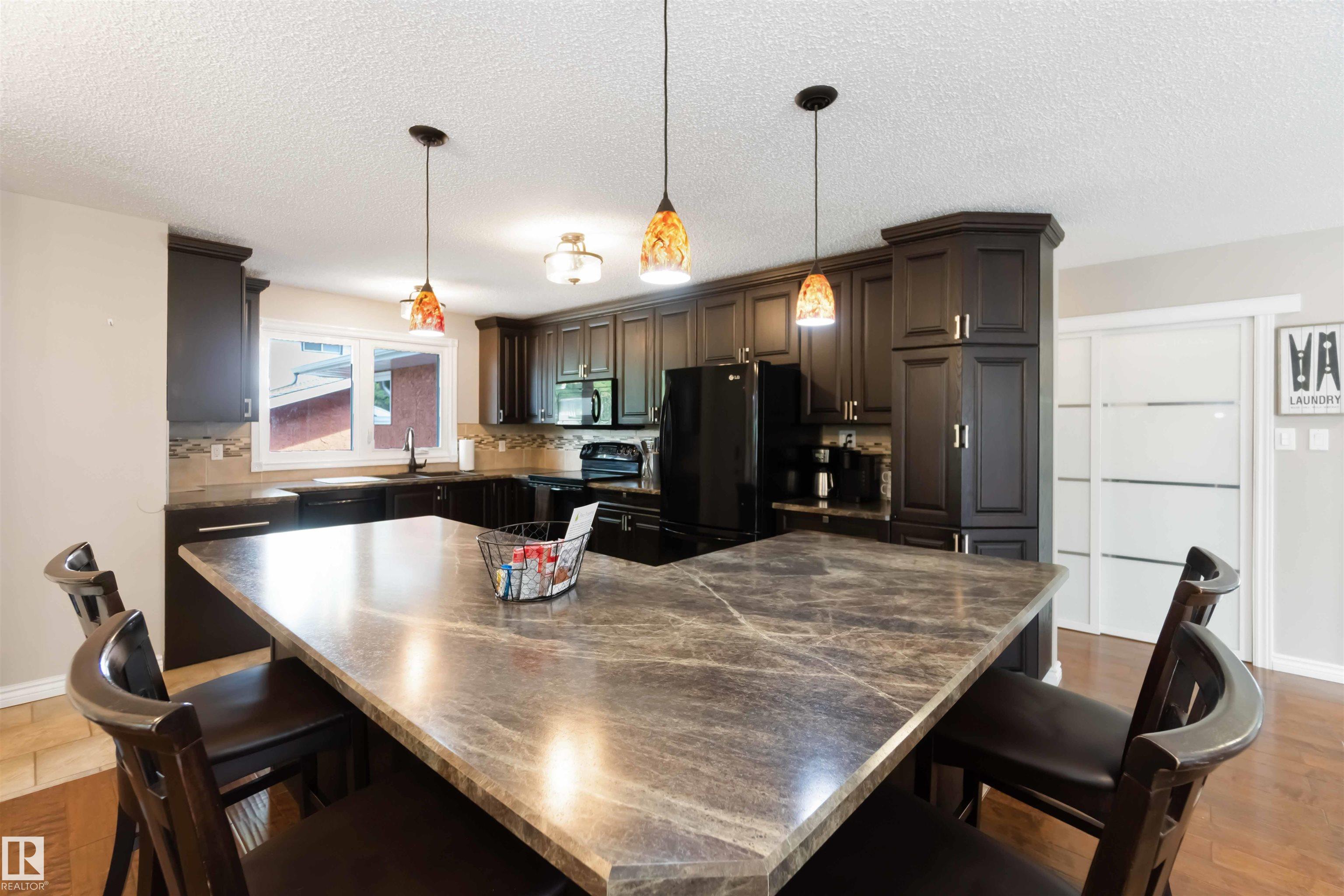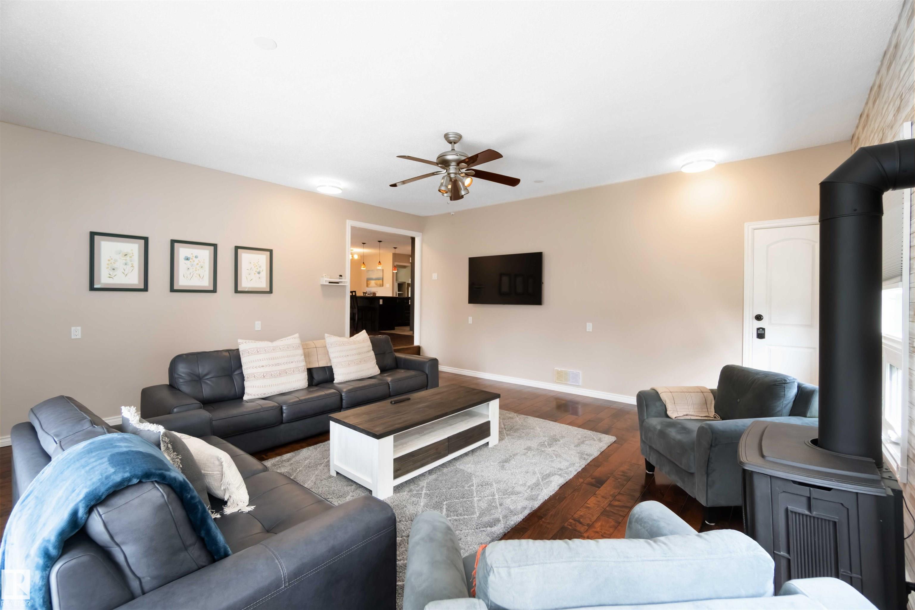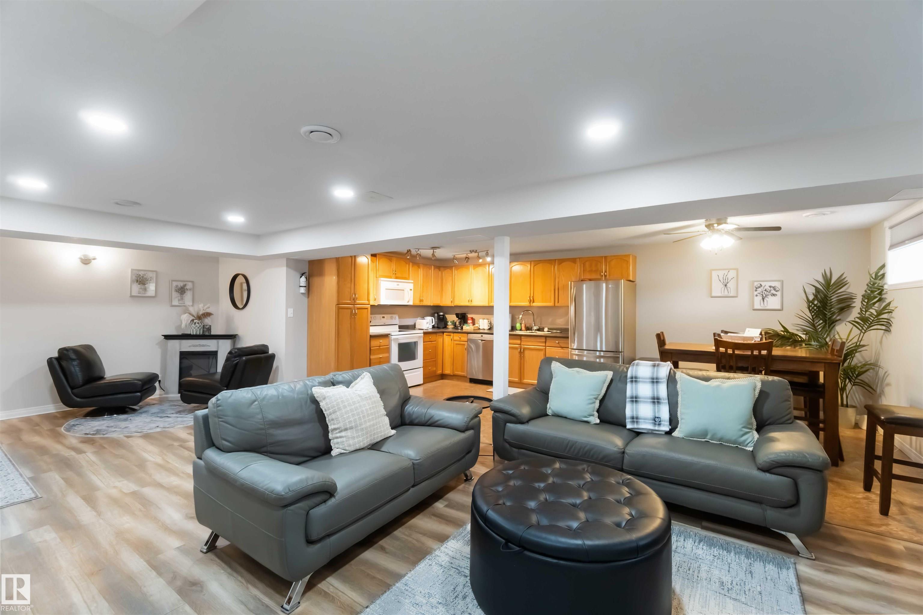 Rare Dual-Suite Opportunity in Prime Sherwood Park Location This exceptional property offers two independent, self-contained suites, making it ideal for multigenerational living or rental income. The main floor features queen size bed in one bedroom. Double queen bunkbeds in the other. Primary suite with a private 4-piece ensuite, king size bed. Large kitchen and dining area that flows seamlessly into the living room?perfect for family gatherings and entertaining. Step outside to your private patio and enjoy the fresh air in your own outdoor retreat. The lower level offers 1,150 sq ft of comfortable living space with two generously sized bedrooms, a massive open-concept kitchen/dining/living room, separate entrance, and in-suite laundry?ideal for extended family or guests. Additional features include a double oversized garage, modern upgrades throughout, and a location that?s tough to beat?just steps from Sherwood Park Mall, the theatre. PRICE INCLUDES ALL FURNITURE!