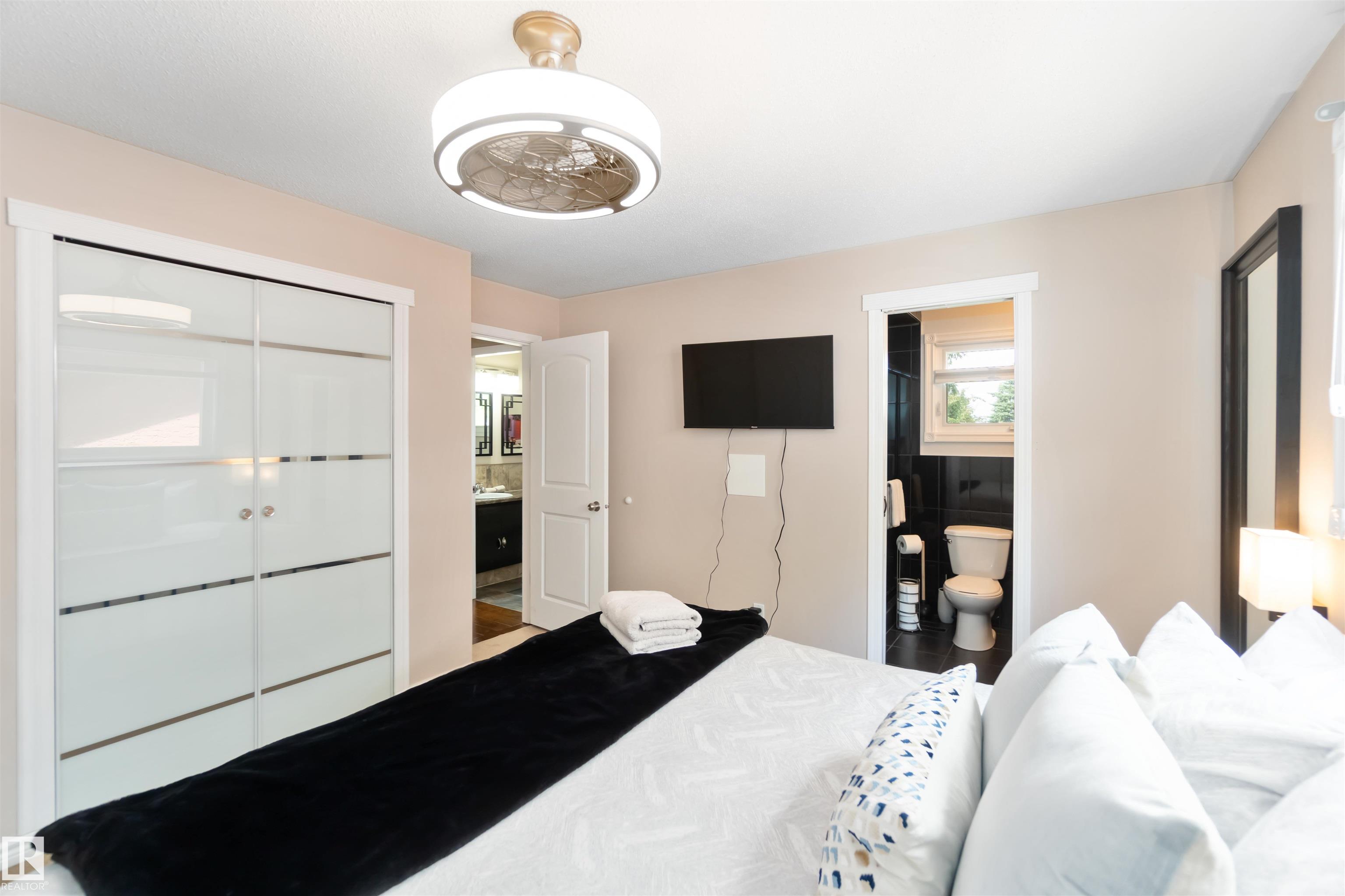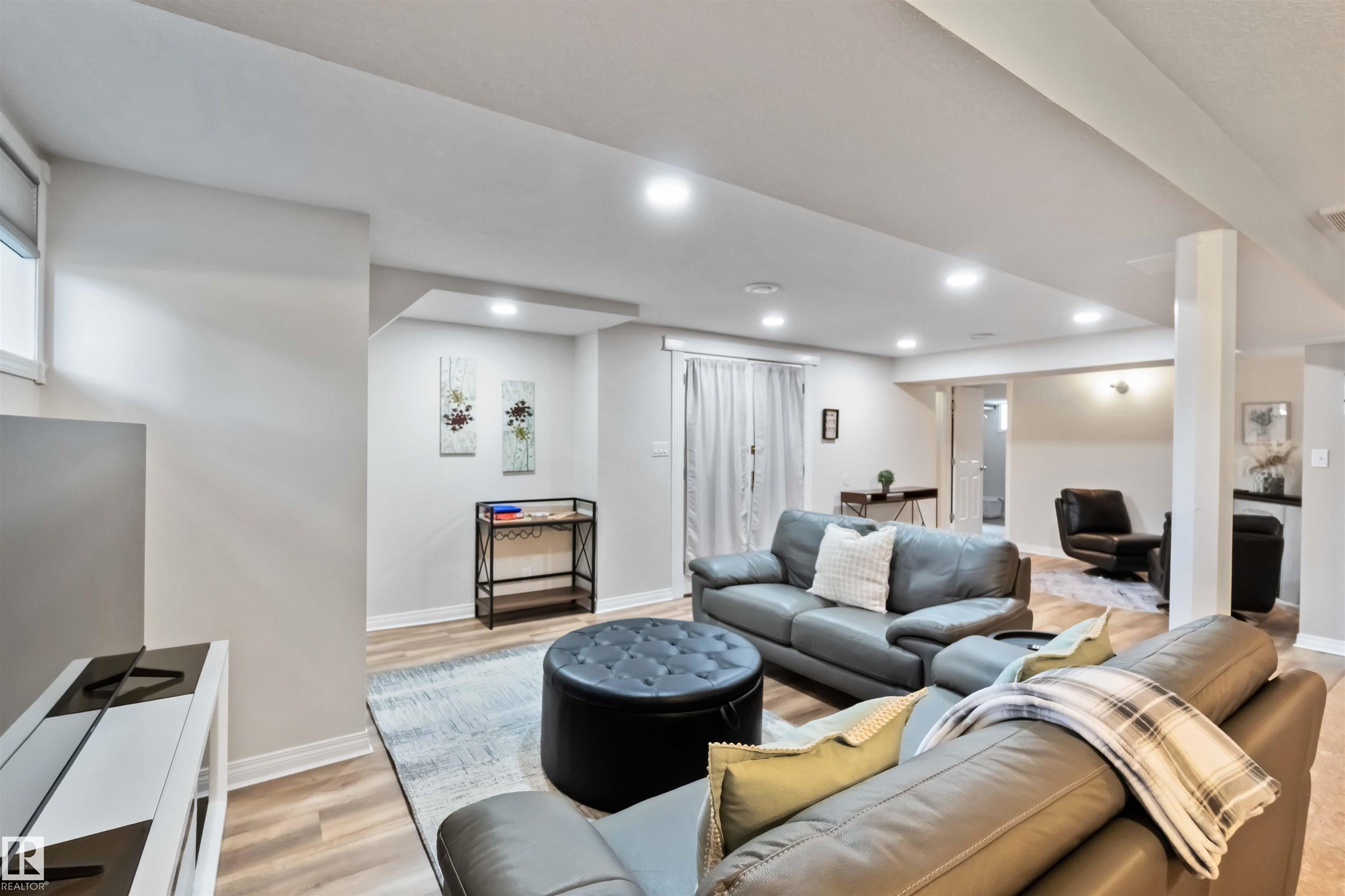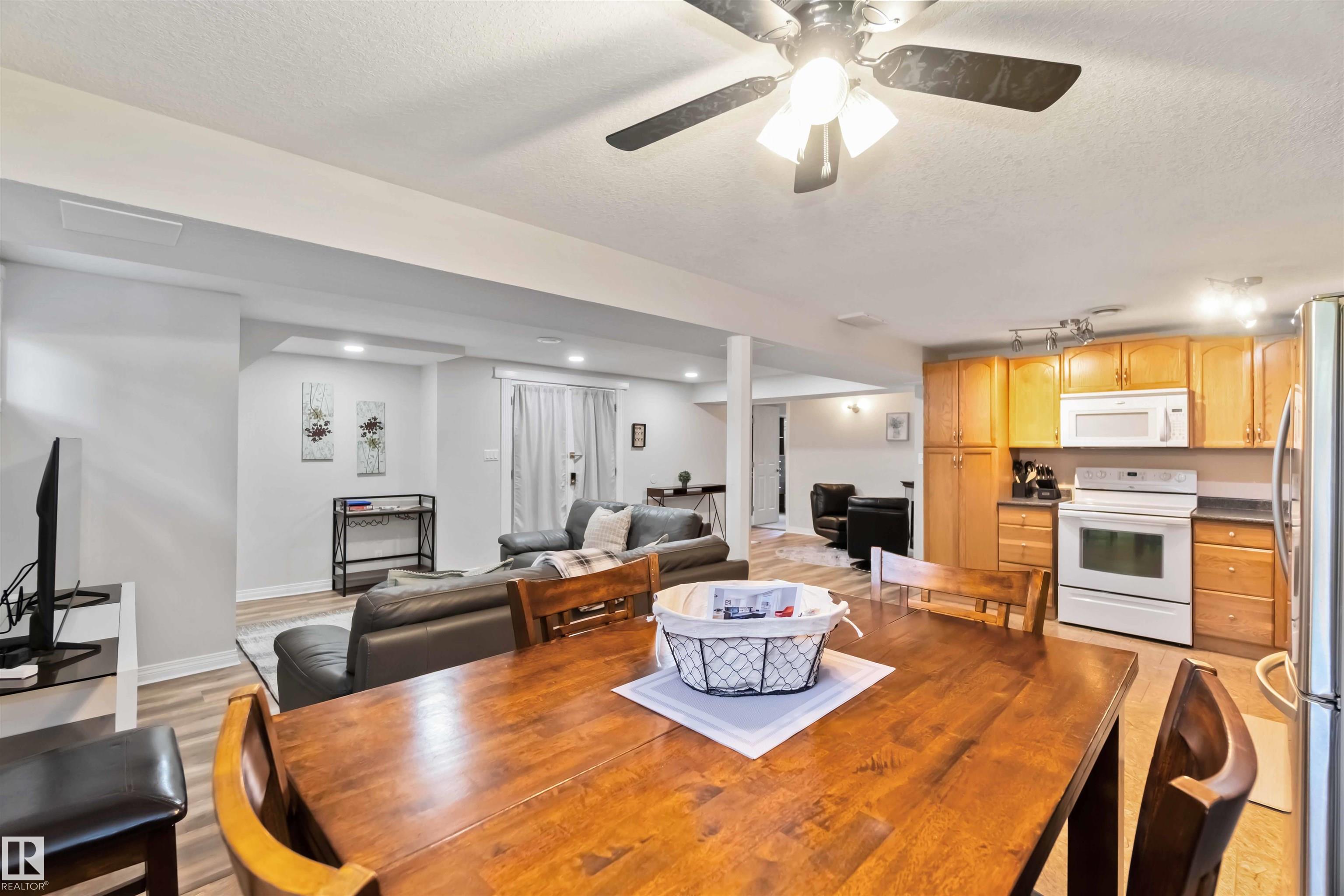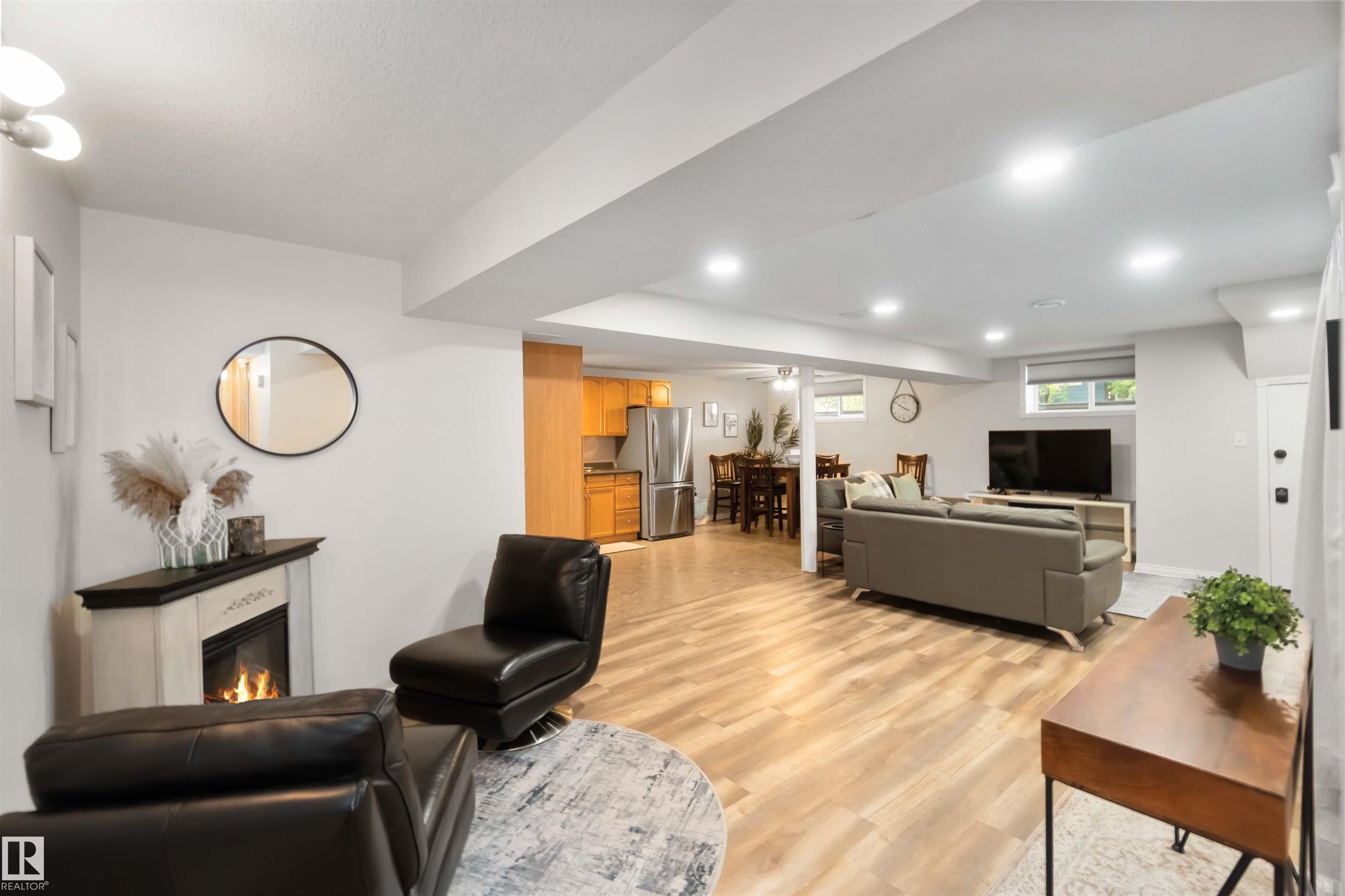 Rare Dual-Suite Opportunity in Prime Sherwood Park Location This exceptional property offers two independent, self-contained suites, making it ideal for multigenerational living or rental income. The main floor features queen size bed in one bedroom. Double queen bunkbeds in the other. Primary suite with a private 4-piece ensuite, king size bed. Large kitchen and dining area that flows seamlessly into the living room?perfect for family gatherings and entertaining. Step outside to your private patio and enjoy the fresh air in your own outdoor retreat. The lower level offers 1,150 sq ft of comfortable living space with two generously sized bedrooms, a massive open-concept kitchen/dining/living room, separate entrance, and in-suite laundry?ideal for extended family or guests. Additional features include a double oversized garage, modern upgrades throughout, and a location that?s tough to beat?just steps from Sherwood Park Mall, the theatre. PRICE INCLUDES ALL FURNITURE!