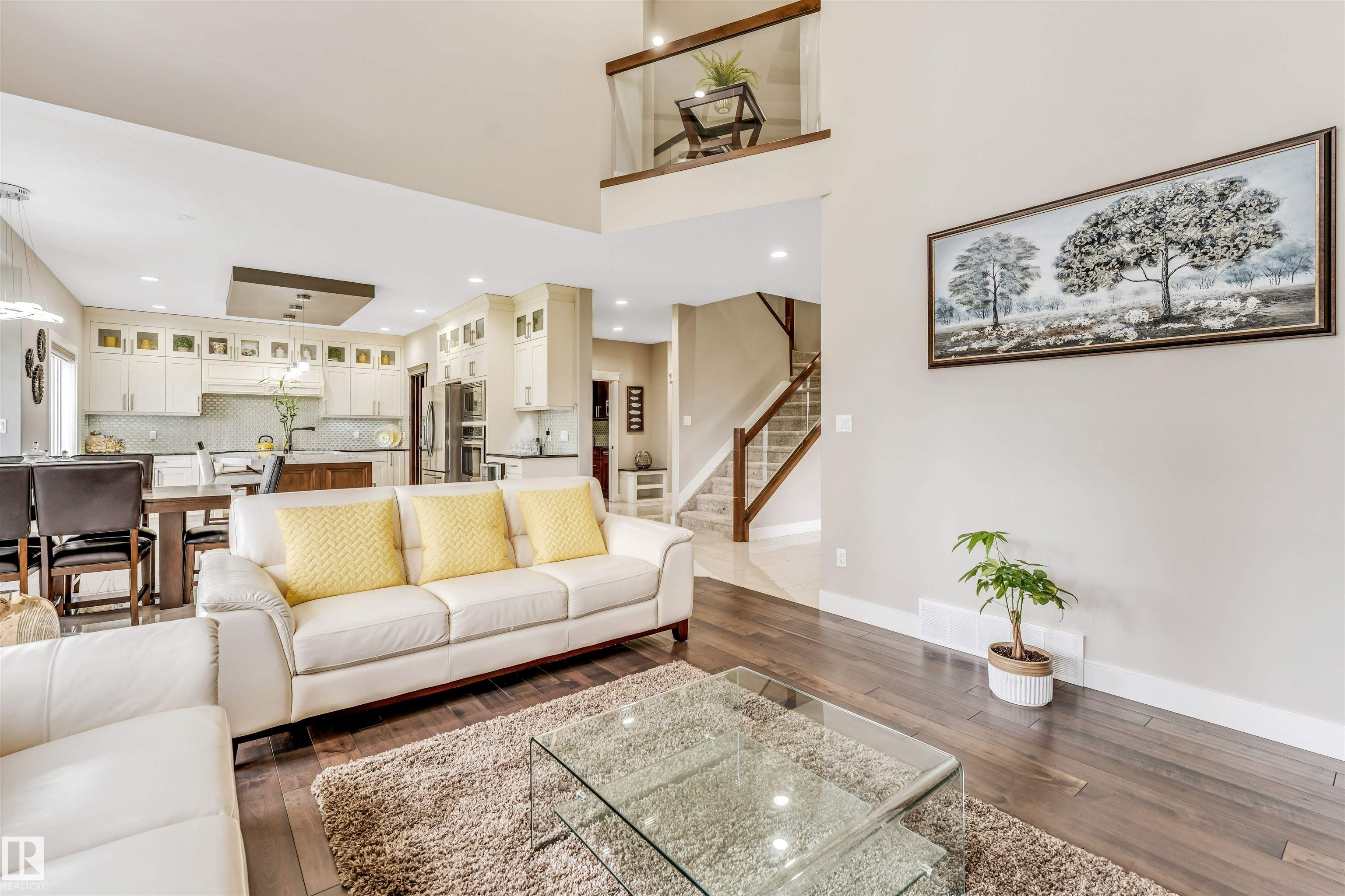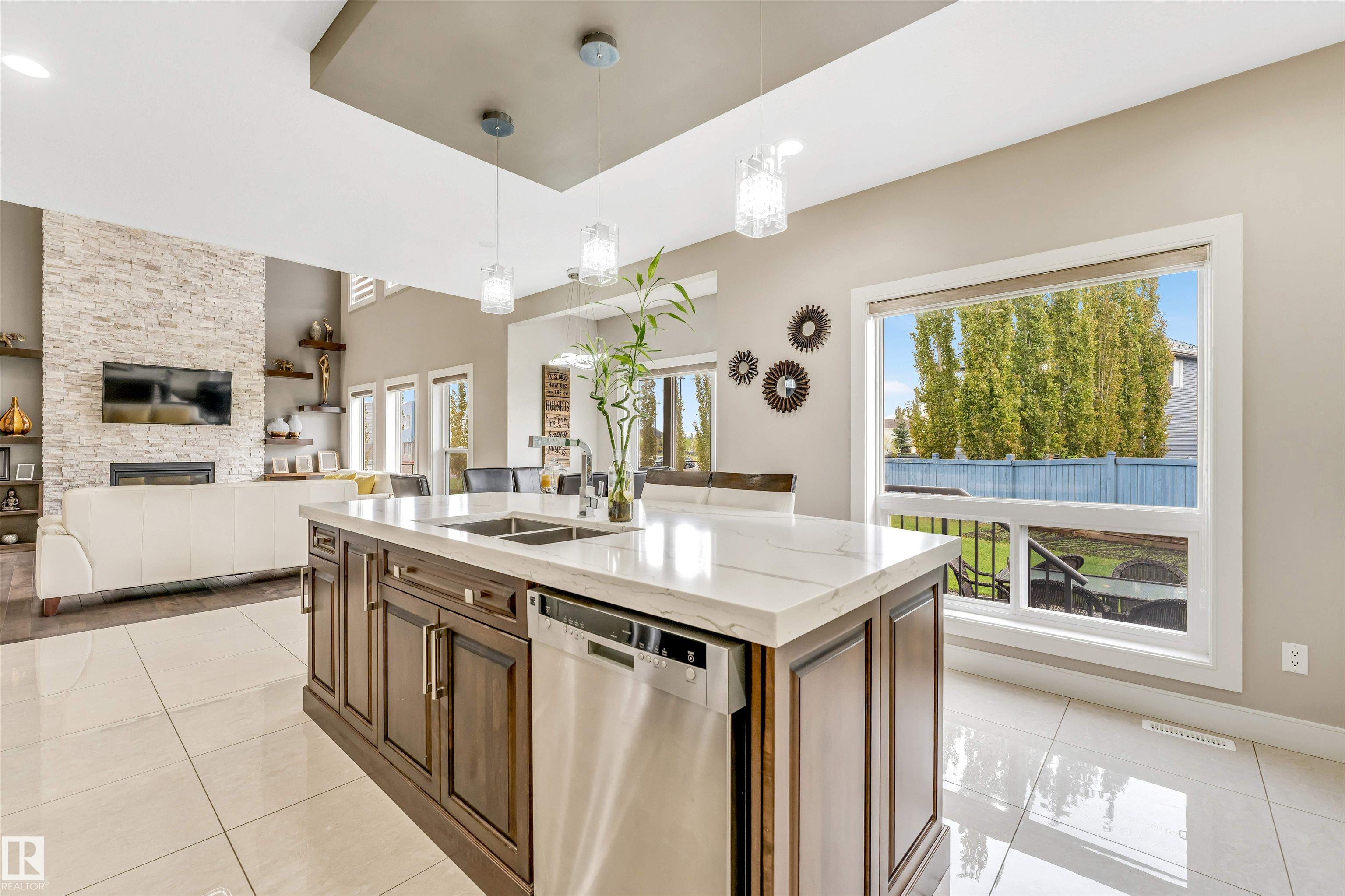 Welcome to this stunning estate home offering nearly 3,000 sq ft of total living space on one of Beaumont's most sought-after pie-shaped lots! With 6 bedrooms, 5 full bathrooms, and a fully finished basement with a second kitchen, this home is the perfect blend of elegance, function, and flexibility for multigenerational living. Step inside to experience high-end finishings throughout, including a grand open-to-below living room with a breathtaking floor-to-ceiling brick fireplace. The chef-inspired kitchen is a showstopper, featuring sleek white cabinetry, an oversized island, butler?s kitchen, and walk-in pantry?ideal for entertaining and everyday luxury.Enjoy the benefits of a fully landscaped yard, triple garage, and thoughtfully designed layout that offers room for everyone. Whether you're relaxing in one of the spacious bedrooms, hosting guests in the elegant dining area, or utilizing the secondary kitchen in the basement, every detail has been crafted for modern comfort and sophistication!