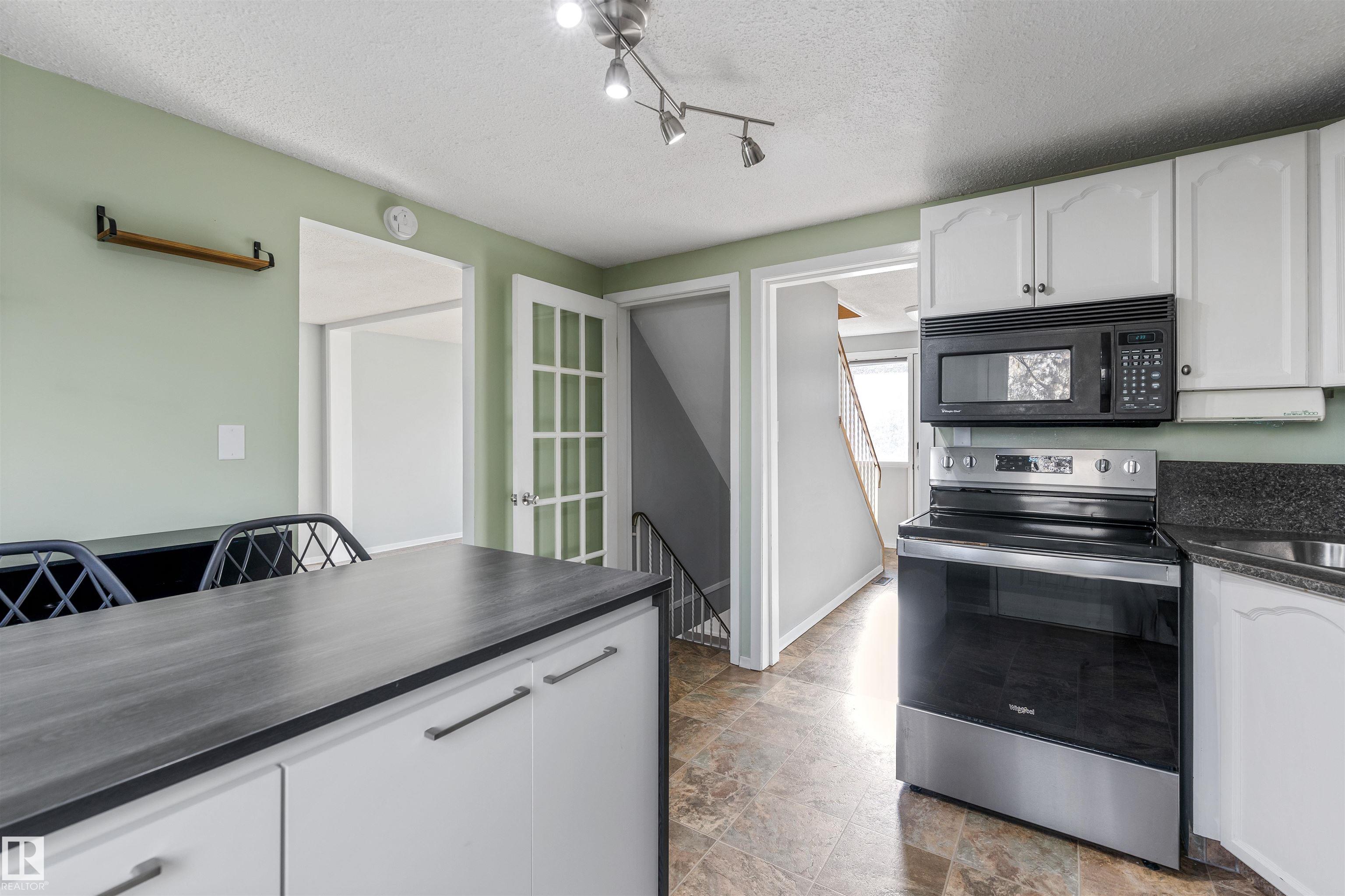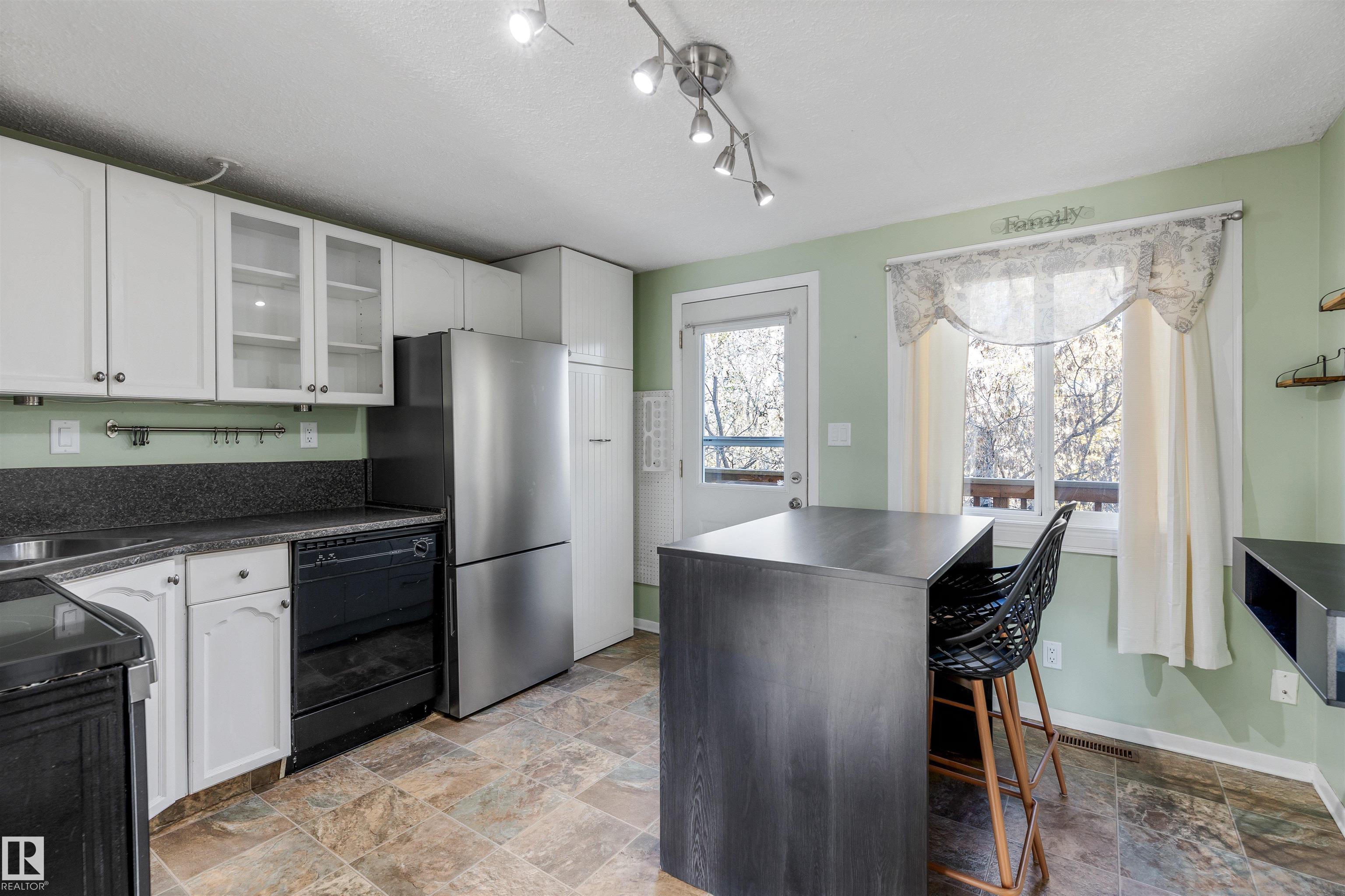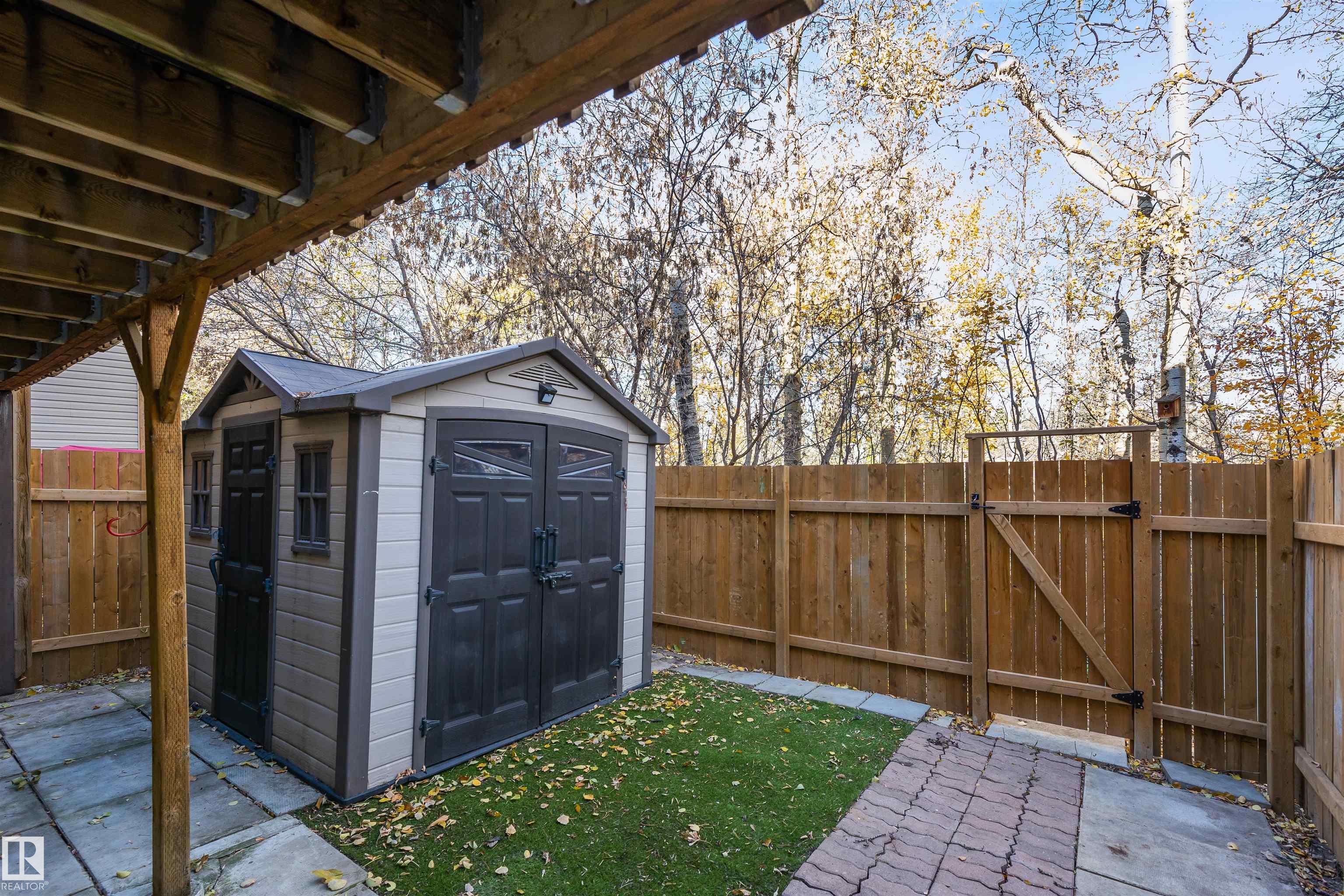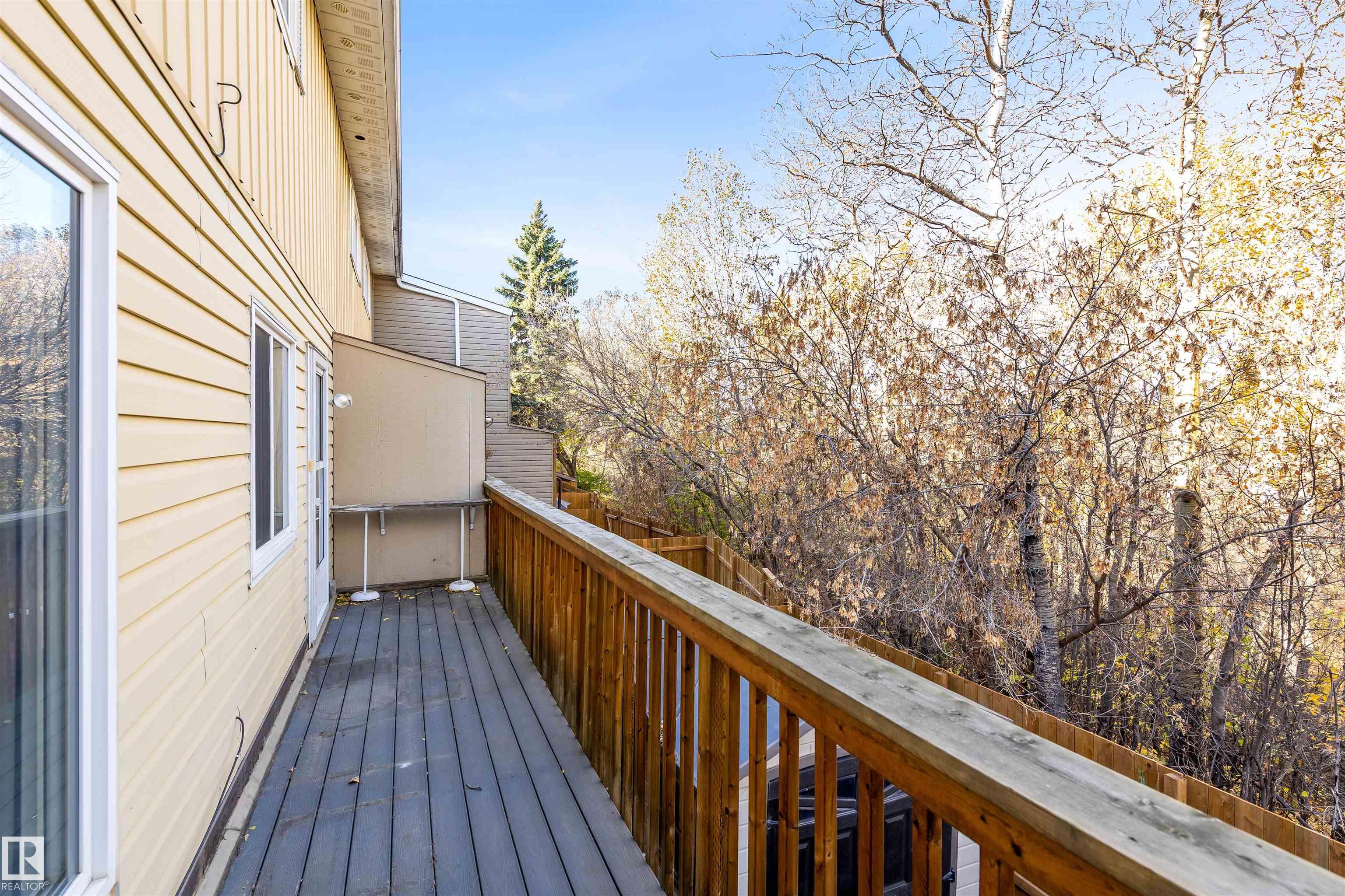 Sensational location on the RAVINE! Welcome to the FULLY FINISHED towhome featuring FOUR bedrooms, 2.5 baths and a WALKOUT BASEMENT. This well maintained unit has a large front living room with electric fireplace, spacious dining nook, kitchen with updated ISLAND, wall PANTRY and access to the back deck. Upstairs there are three large bedrooms and main 4pce bathroom. The 3rd bedroom has rough in plumbing for laundry. The fully finished walk out basement has a second kitchen, full 5pce bathroom, family room and 4th bedroom. There is access to the PRIVATE, low maintenance backyard with artificial grass, patio, large shed and access to the RAVINE. New HWT (2023), washer and dryer (2024), Fridge (2023) and stove (2022). Well run, pet freindly complex with low condo fees of $435.