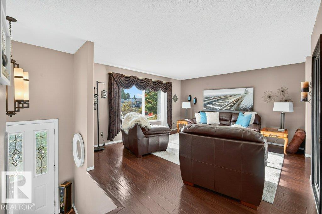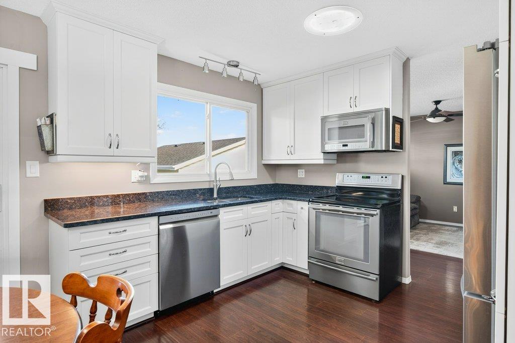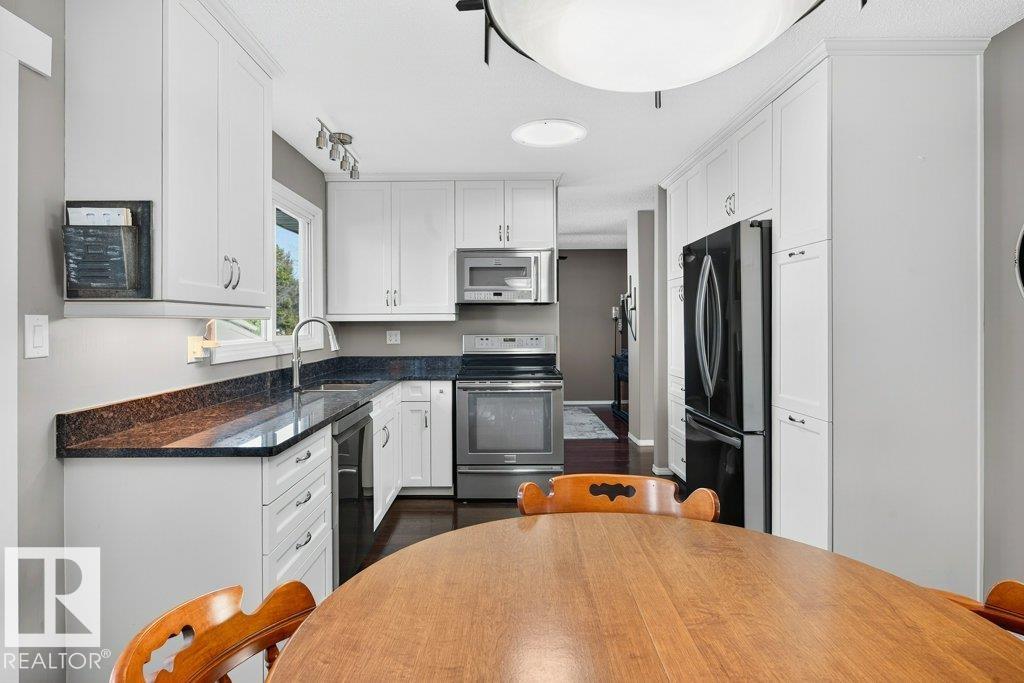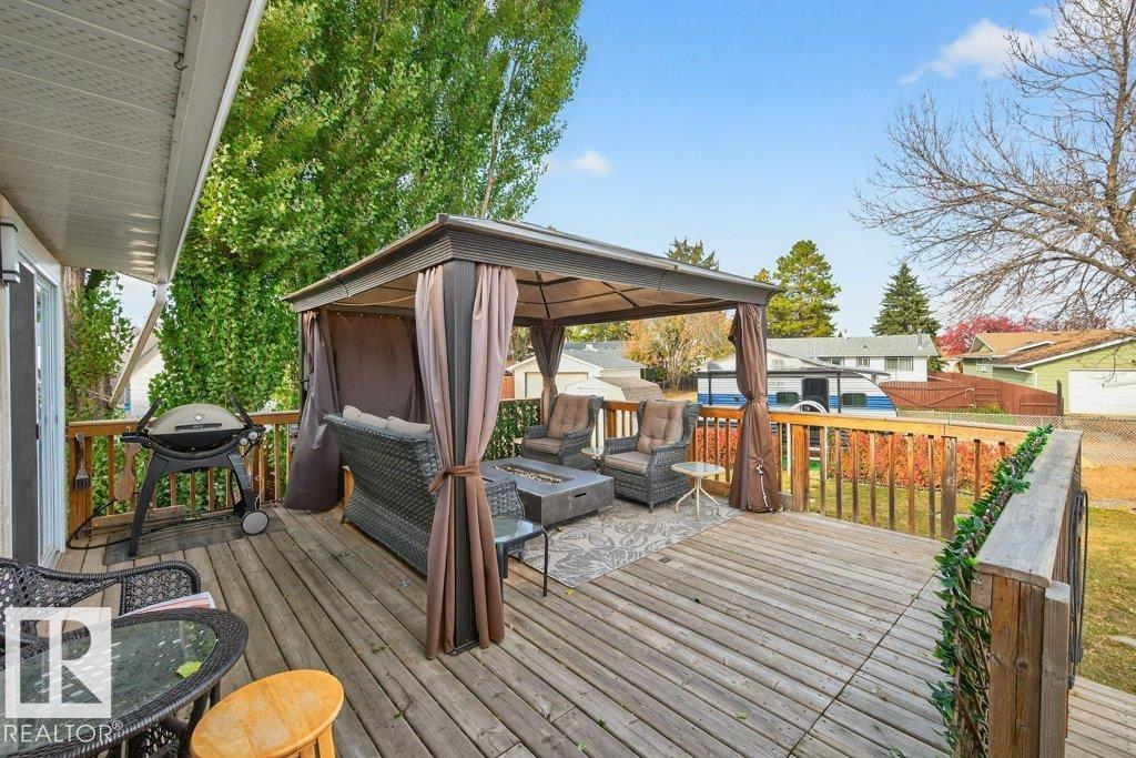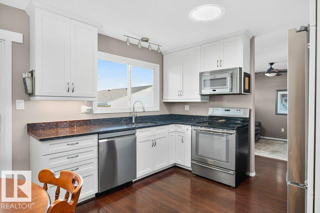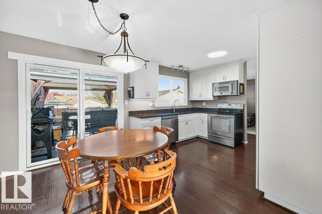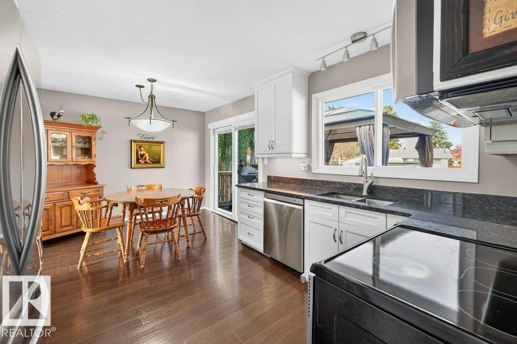 Meticulously maintained and lovingly cared for Bi-level in Meridian Heights on a large PIE-SHAPED LOT with RV PARKING! Bright SOUTH-FACING main level features large windows and rich warm-toned flooring. The modern renovated kitchen (2015) includes floor-to-ceiling cabinetry, a pull out pantry, SS appliances, a solar tube skylight & tons of storage. Dining area offers direct patio access to the deck (gas hookup for the bbq and Fire Table) and a massive backyard! Two spacious bedrooms, a flex space (great for an office or playroom) & 4 piece bath complete the main. The fully finished basement offers a cozy rec room w/ a charming gas stove, a third bedroom, 3 pc bath & laundry room -perfect for guests or your teenagers. Updates include: HWT, (2022) Bathrooms (2019) and vinyl windows. PLUS... a 28 X 30 DOUBLE GARAGE with a 9 ft door and electric heater! This well kept home is spotless, updated and truly Move In Ready. Excellent family friendly location very close to parks, schools, and amenities.