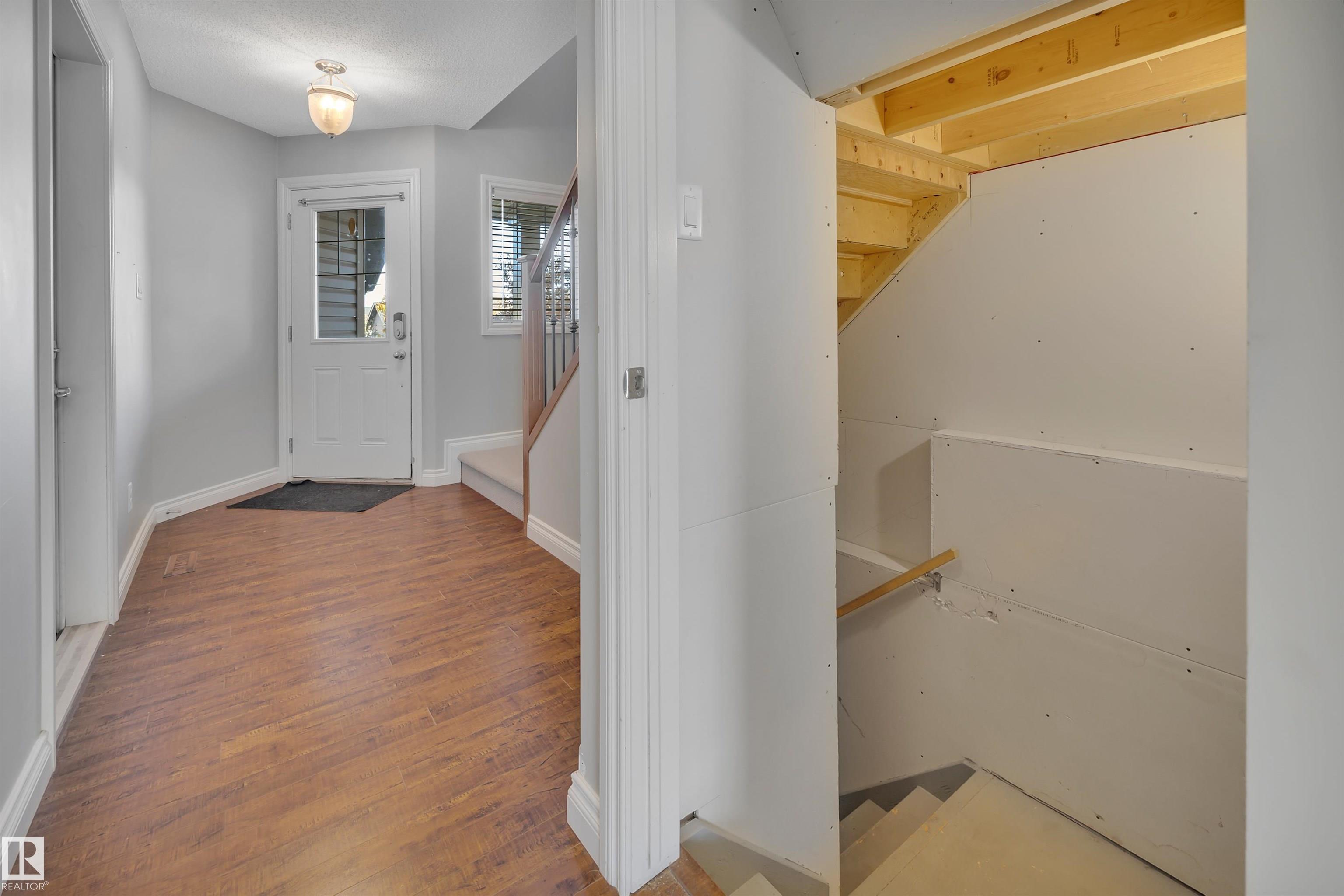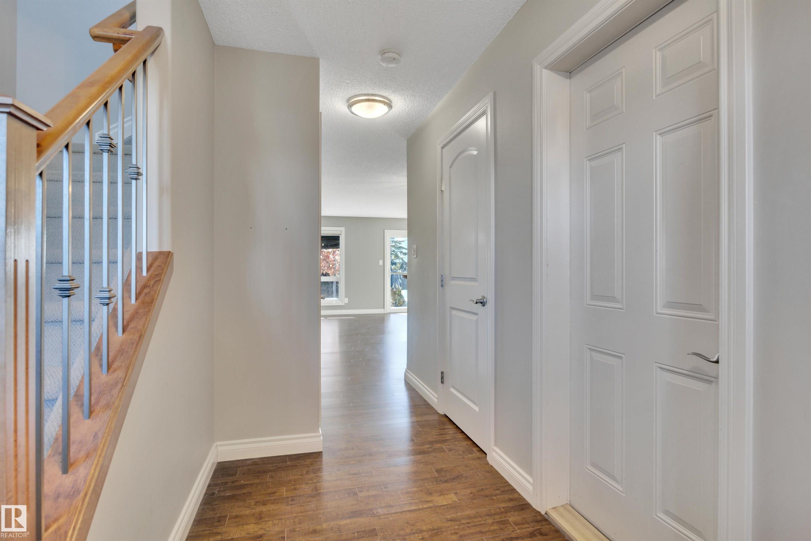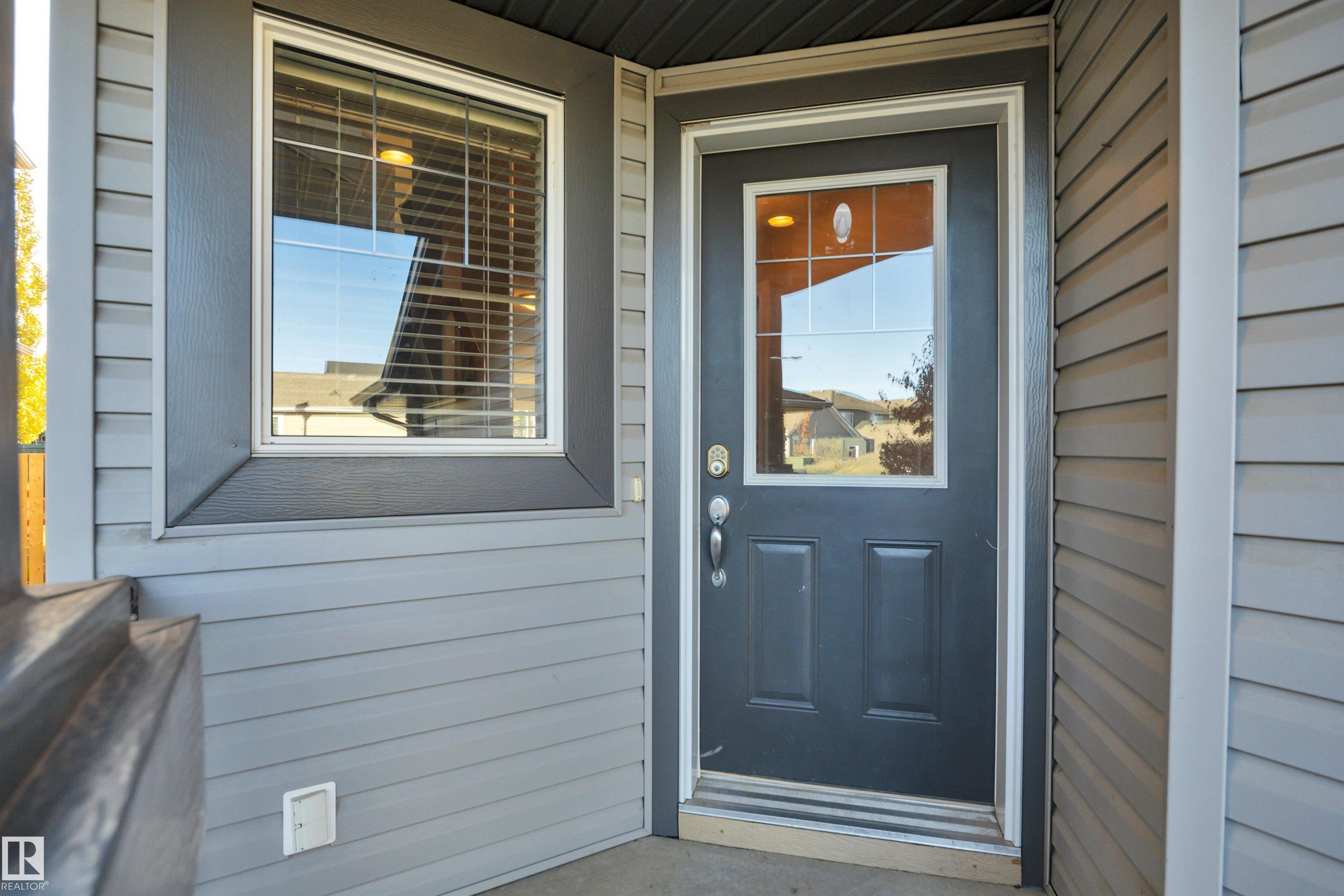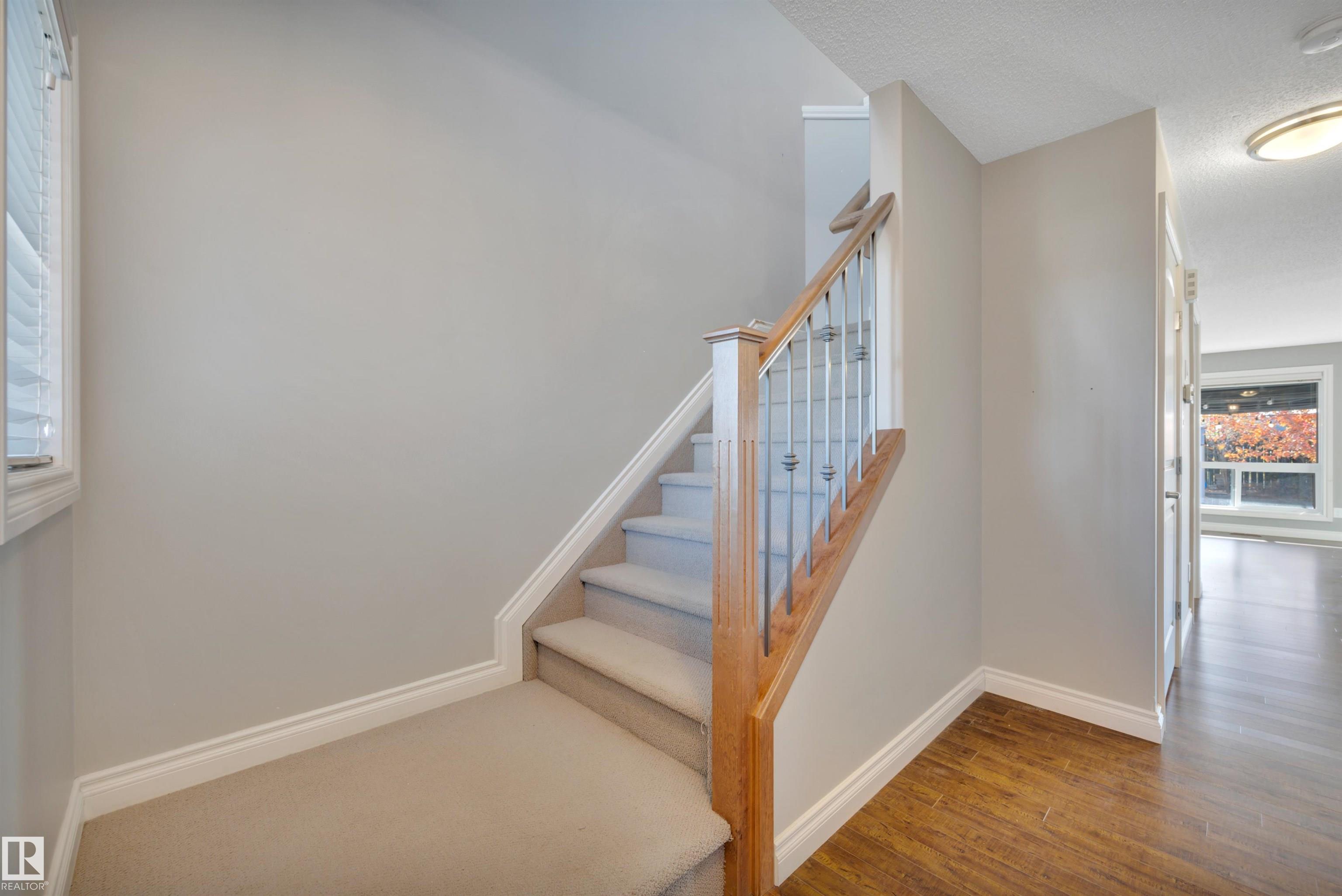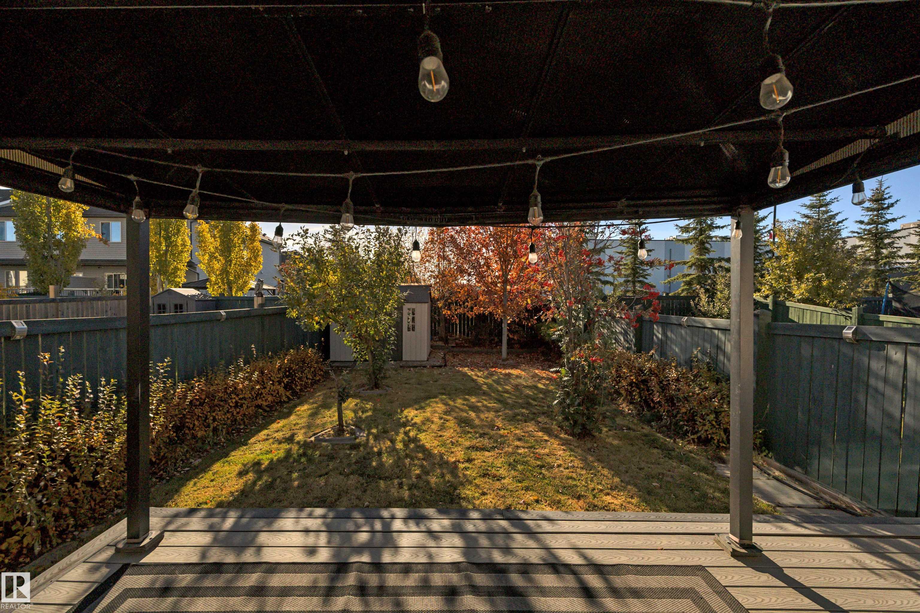 Located in Edmonton?s desirable west end, this lovely duplex is just steps from groceries, shops, dining, and Michael Phair Junior High, with Lewis Estates Golf Course only minutes away. You?ll love the spacious neighbourhood streets, ample visitor parking, and the warm, family-friendly community. From the moment you walk in, you?ll notice what makes this home special...the beautiful backyard, with the composite deck, hardtop gazebo, thoughtful landscaping, trees and a handy storage shed, it creates a private, welcoming outdoor retreat. Inside, enjoy the open-concept main floor with hardwood floors, light wood cabinetry, a convenient pantry, and a generous 2-piece powder room. The oversized single garage offers excellent space for both ground and overhead storage, while the front staircase fills the home with natural light. Upstairs, you?ll find a cozy bonus area perfect for an office, reading nook or hobby space. This home offers the perfect blend of location , lifestyle and potential. Welcome home