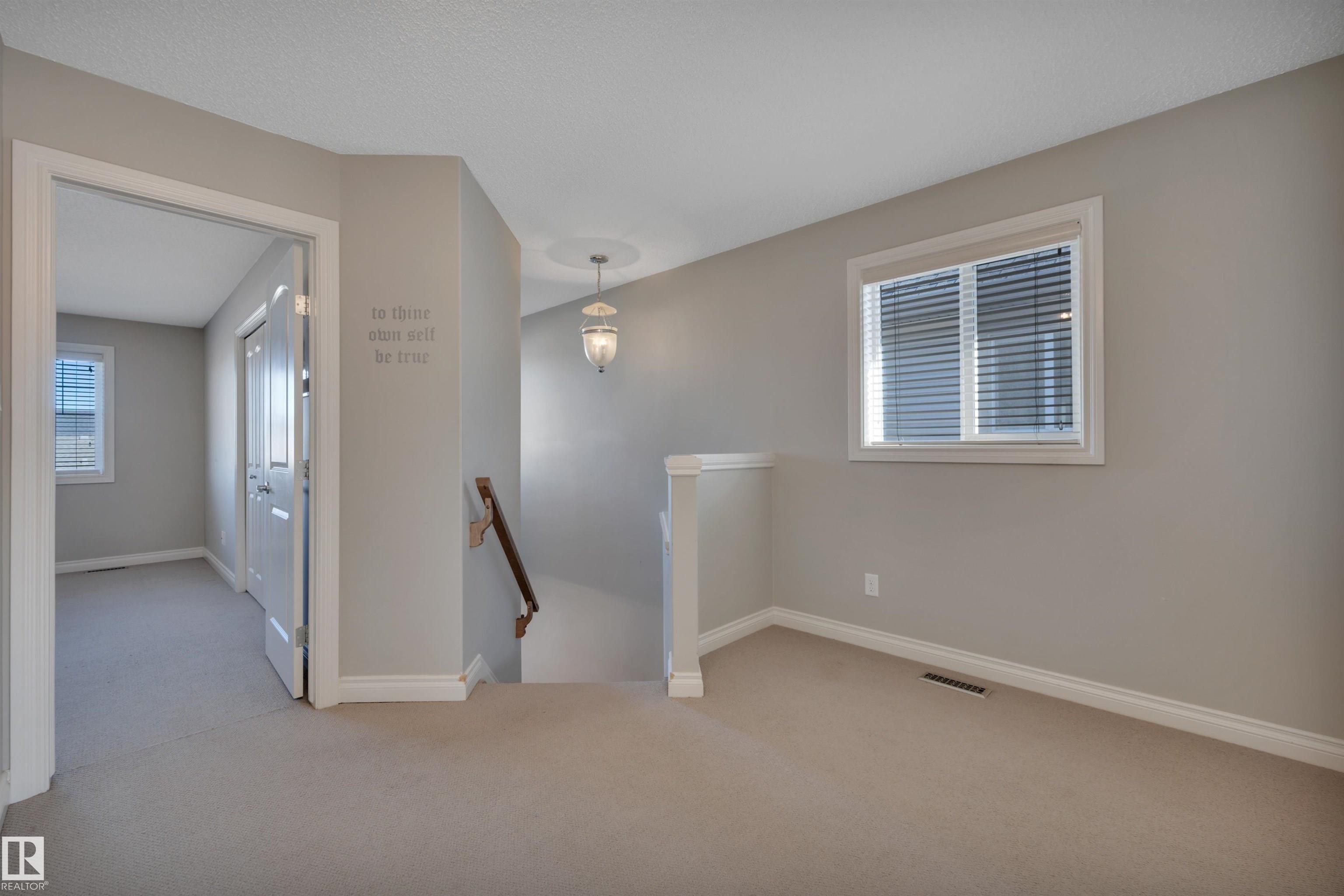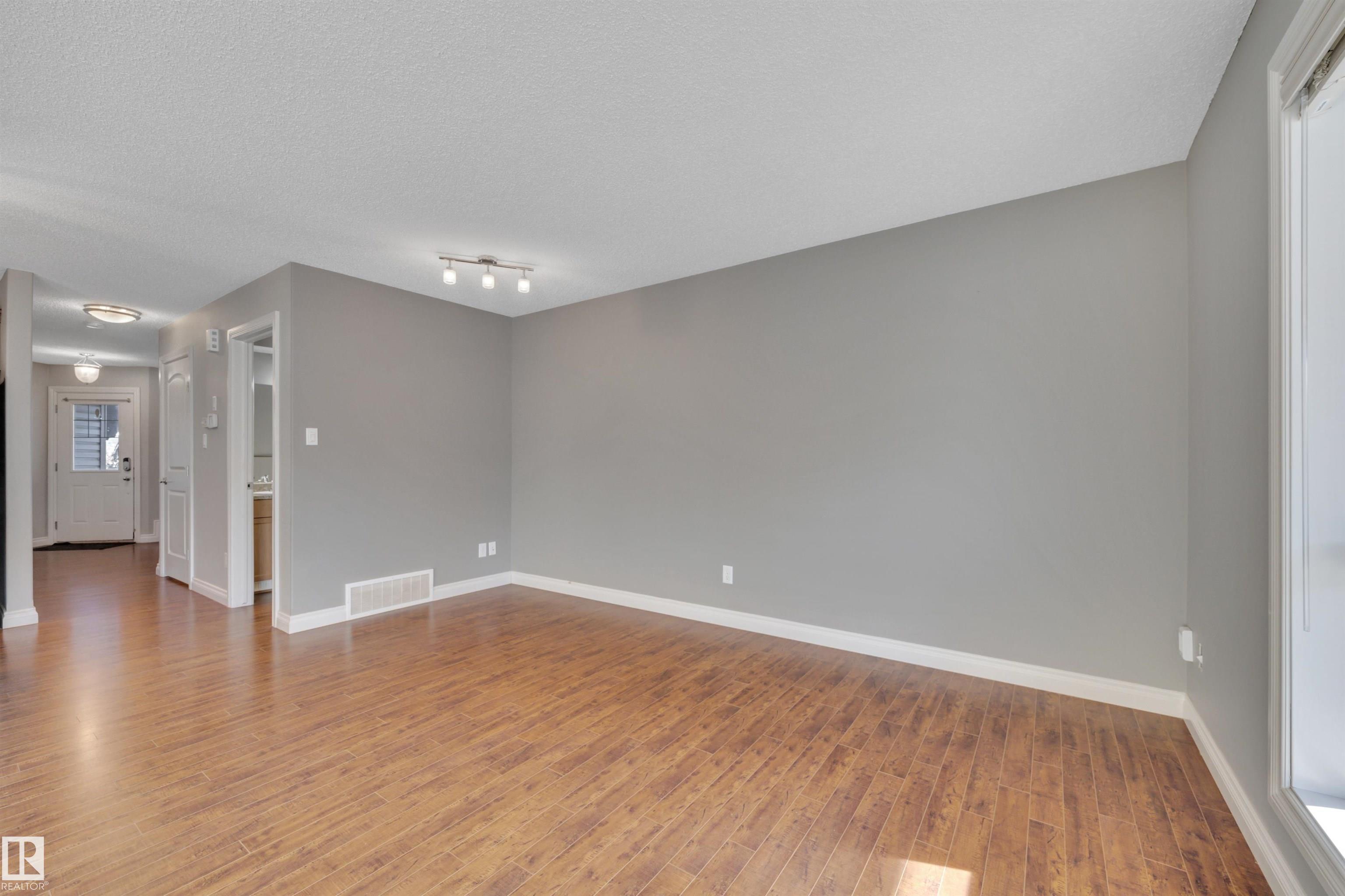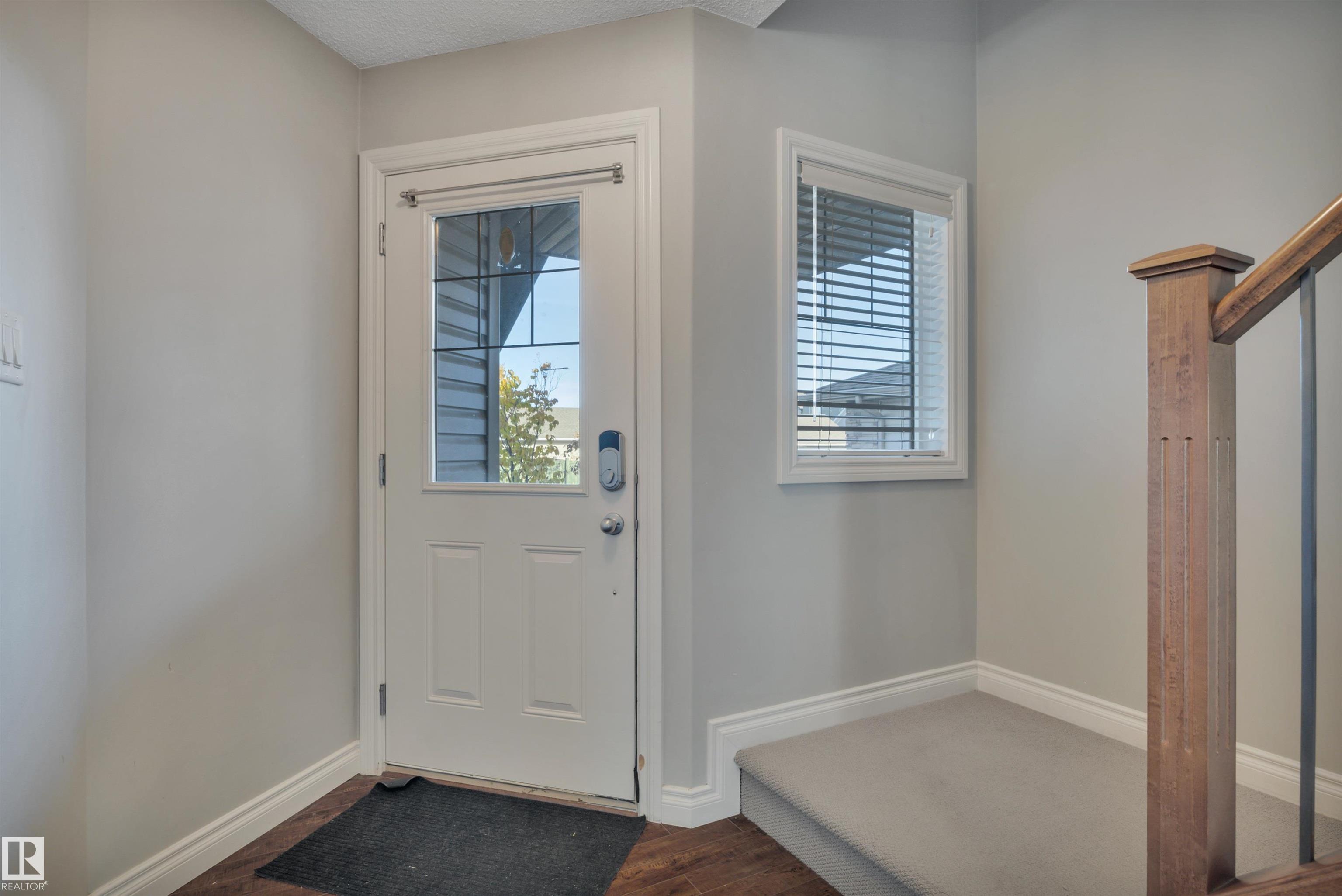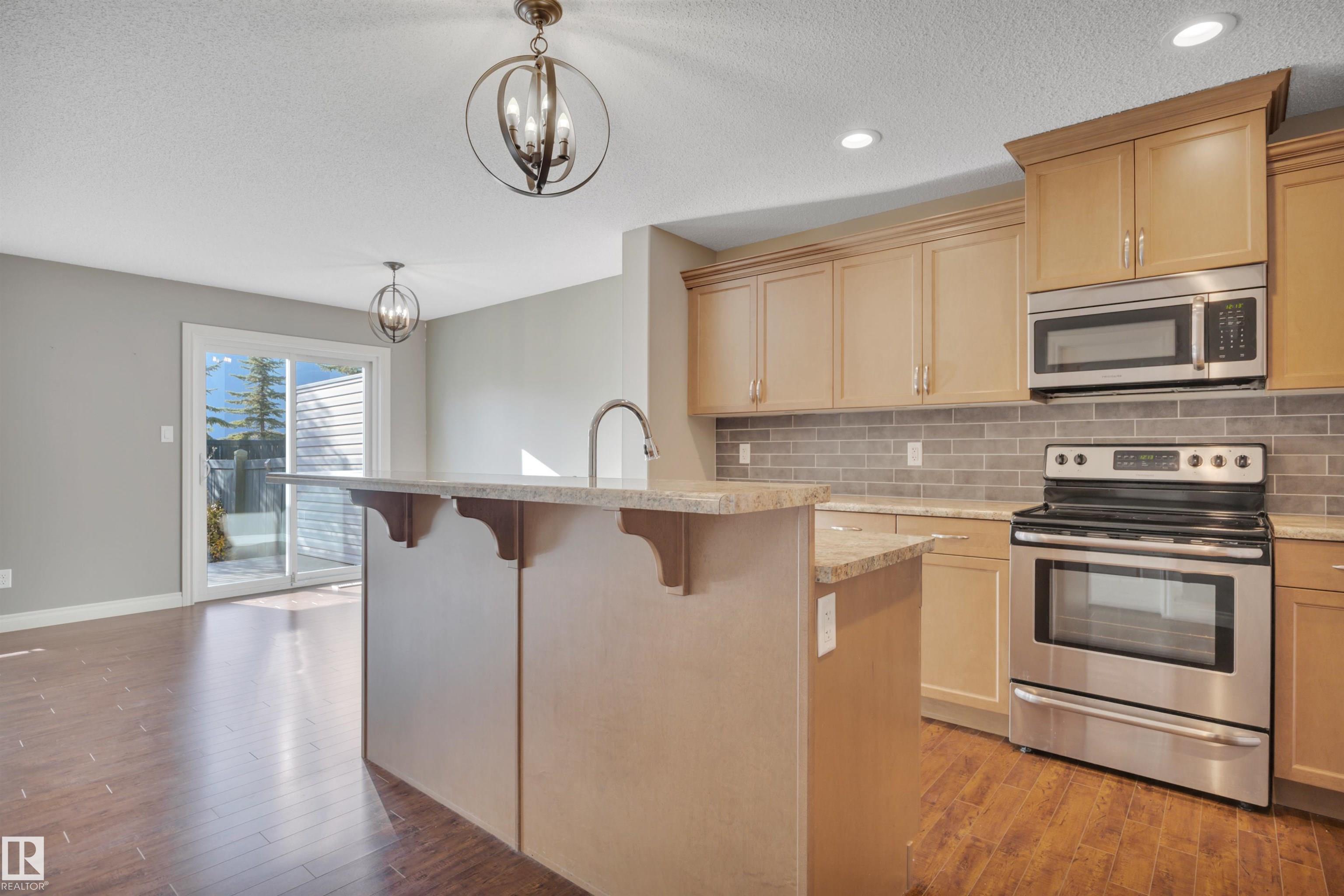 Located in Edmonton?s desirable west end, this lovely duplex is just steps from groceries, shops, dining, and Michael Phair Junior High, with Lewis Estates Golf Course only minutes away. You?ll love the spacious neighbourhood streets, ample visitor parking, and the warm, family-friendly community. From the moment you walk in, you?ll notice what makes this home special...the beautiful backyard, with the composite deck, hardtop gazebo, thoughtful landscaping, trees and a handy storage shed, it creates a private, welcoming outdoor retreat. Inside, enjoy the open-concept main floor with hardwood floors, light wood cabinetry, a convenient pantry, and a generous 2-piece powder room. The oversized single garage offers excellent space for both ground and overhead storage, while the front staircase fills the home with natural light. Upstairs, you?ll find a cozy bonus area perfect for an office, reading nook or hobby space. This home offers the perfect blend of location , lifestyle and potential. Welcome home