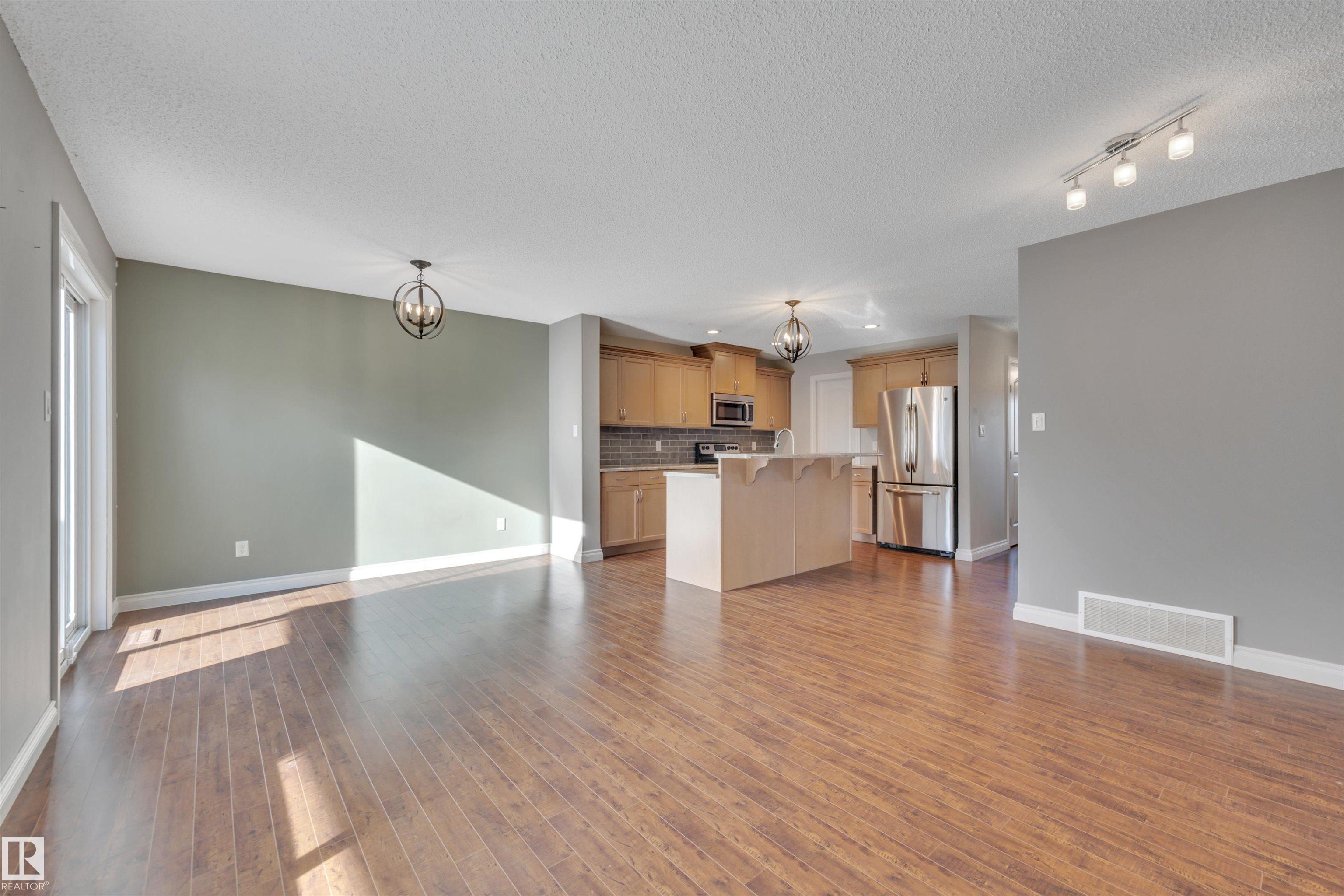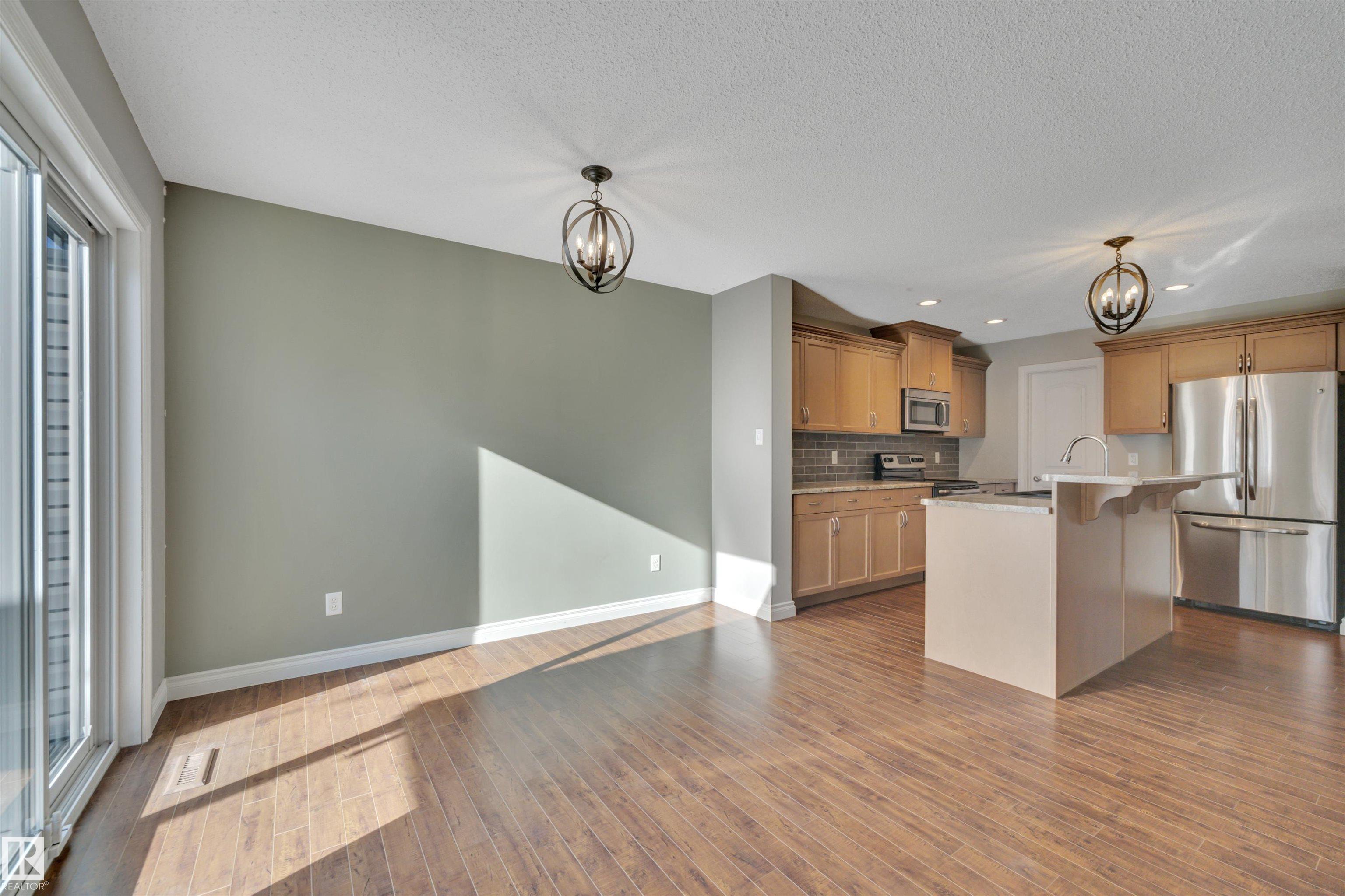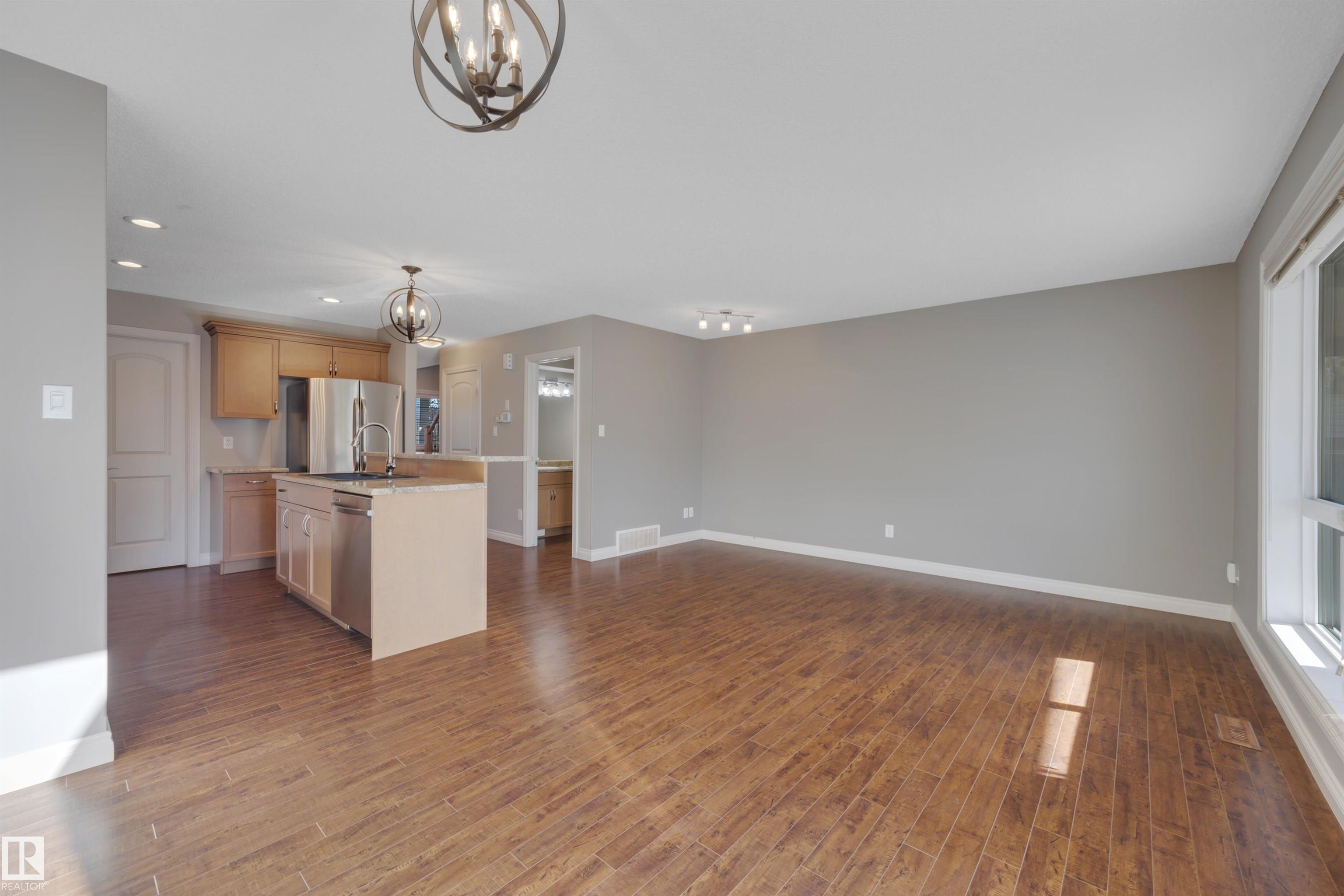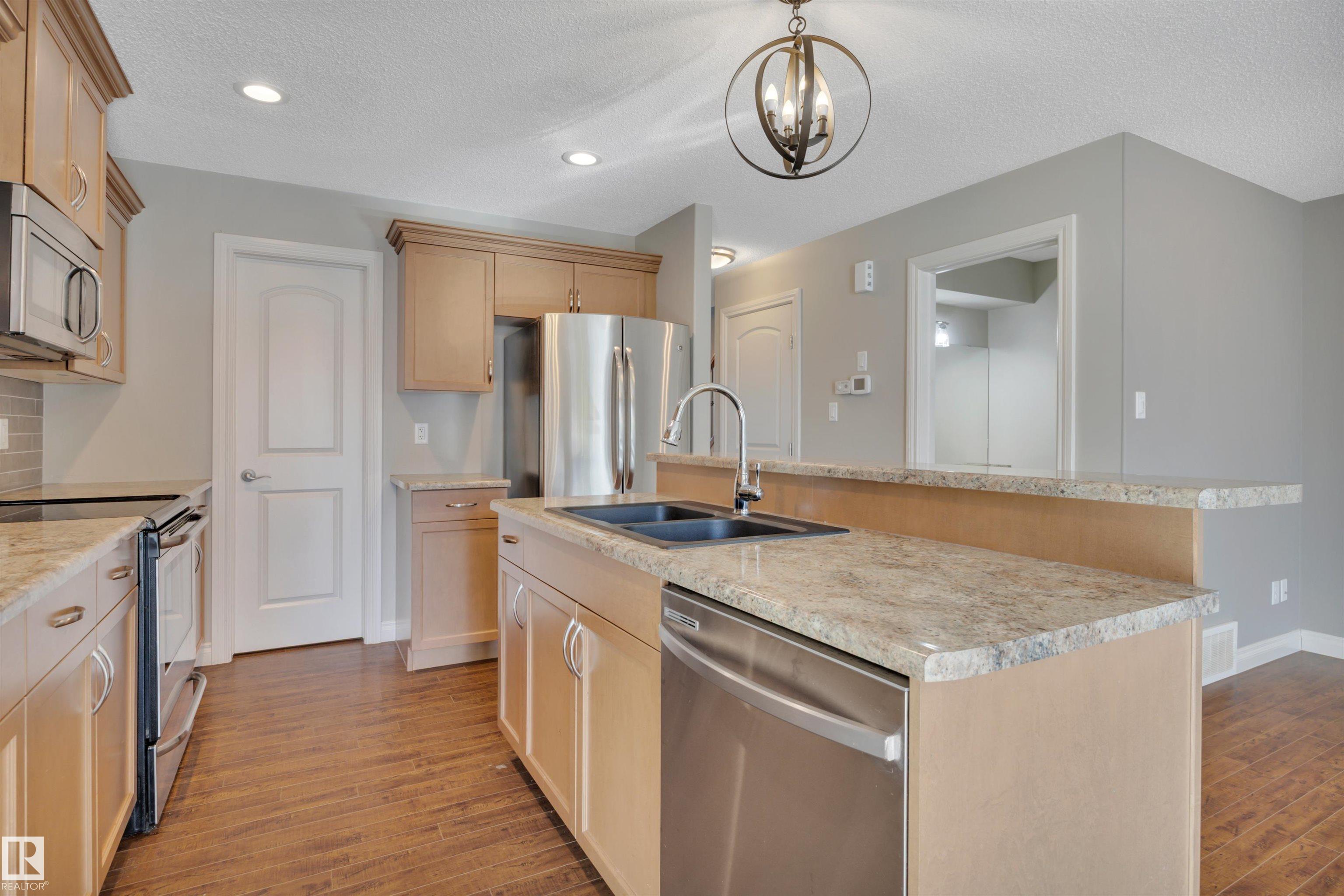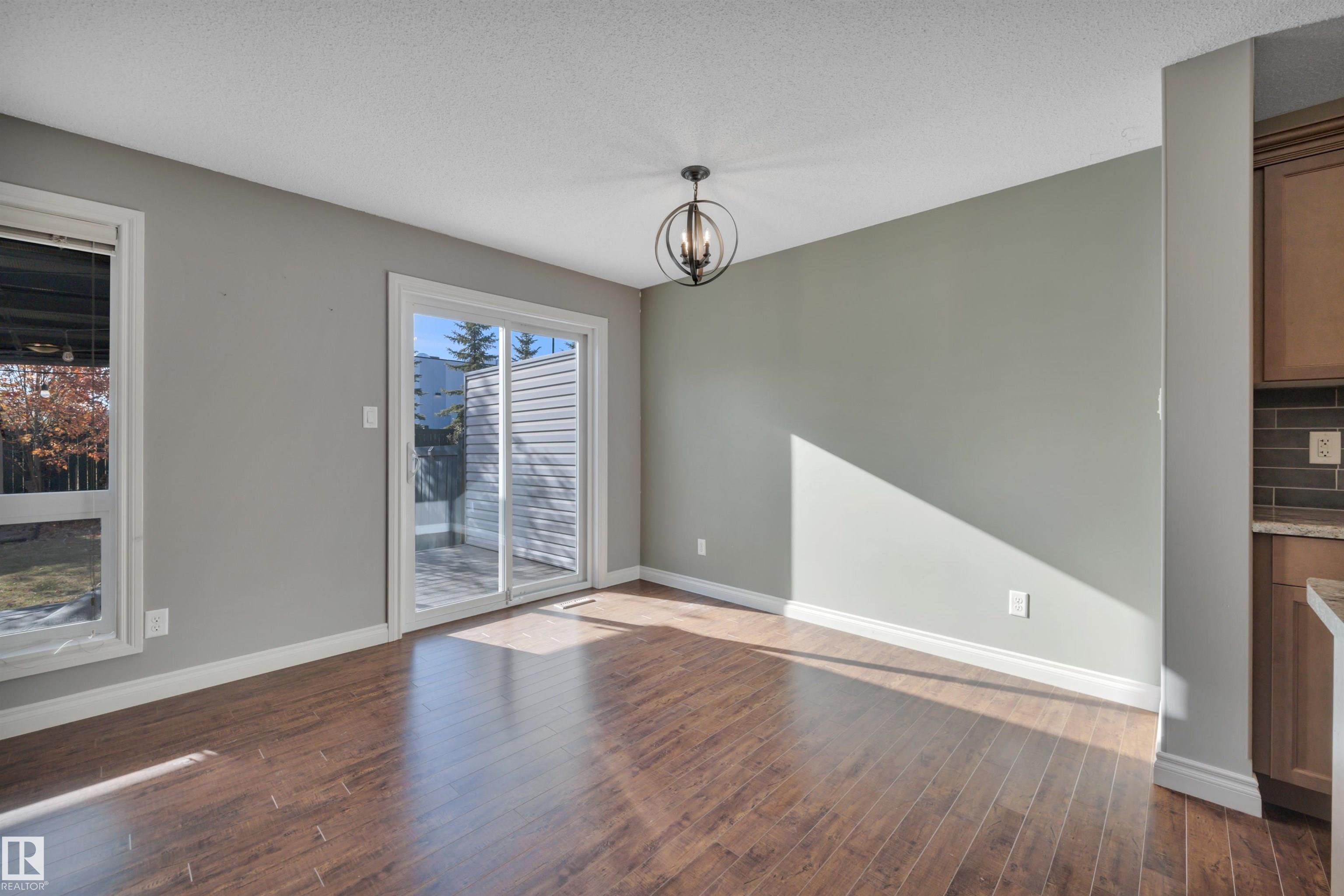 Located in Edmonton?s desirable west end, this lovely duplex is just steps from groceries, shops, dining, and Michael Phair Junior High, with Lewis Estates Golf Course only minutes away. You?ll love the spacious neighbourhood streets, ample visitor parking, and the warm, family-friendly community. From the moment you walk in, you?ll notice what makes this home special...the beautiful backyard, with the composite deck, hardtop gazebo, thoughtful landscaping, trees and a handy storage shed, it creates a private, welcoming outdoor retreat. Inside, enjoy the open-concept main floor with hardwood floors, light wood cabinetry, a convenient pantry, and a generous 2-piece powder room. The oversized single garage offers excellent space for both ground and overhead storage, while the front staircase fills the home with natural light. Upstairs, you?ll find a cozy bonus area perfect for an office, reading nook or hobby space. This home offers the perfect blend of location , lifestyle and potential. Welcome home