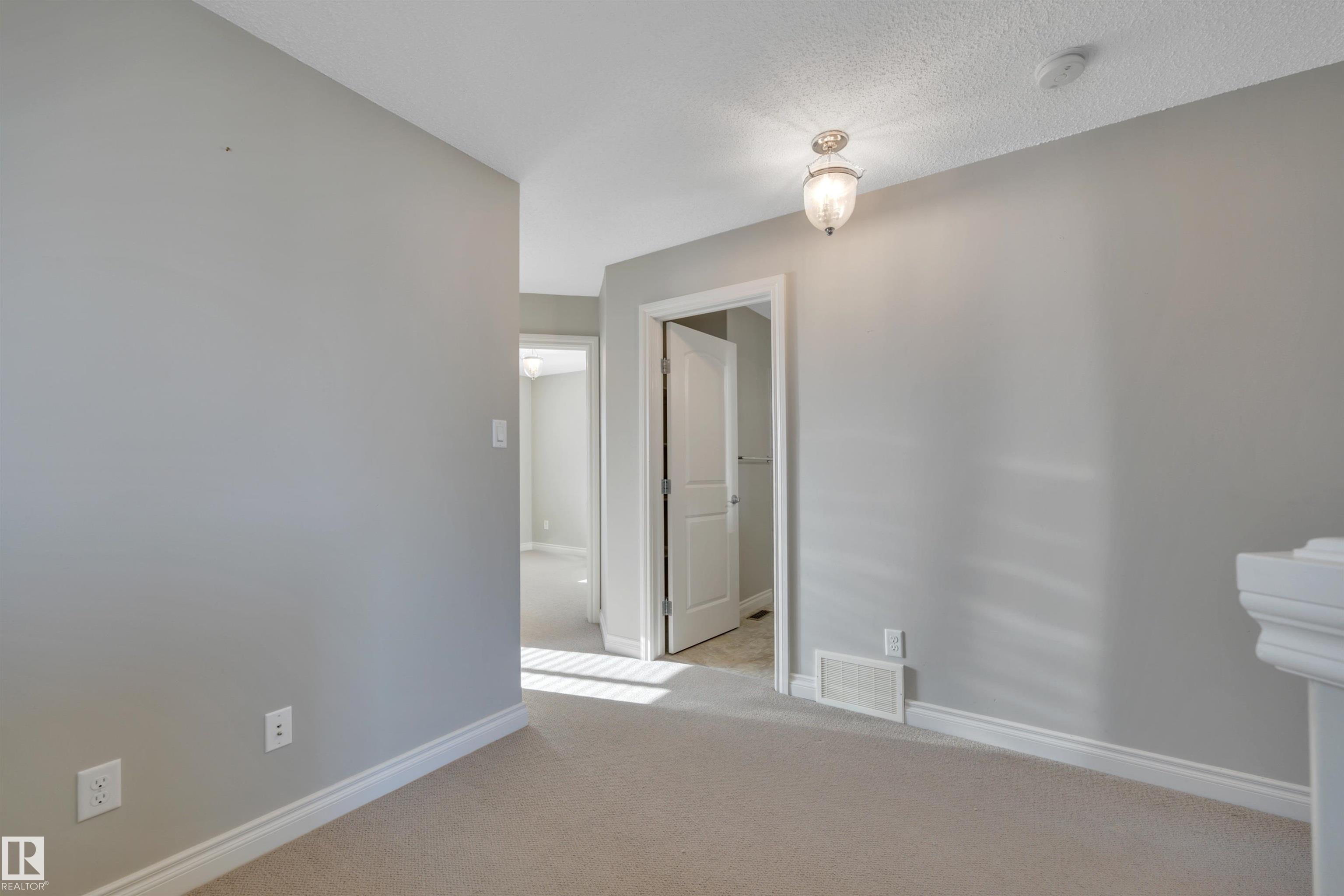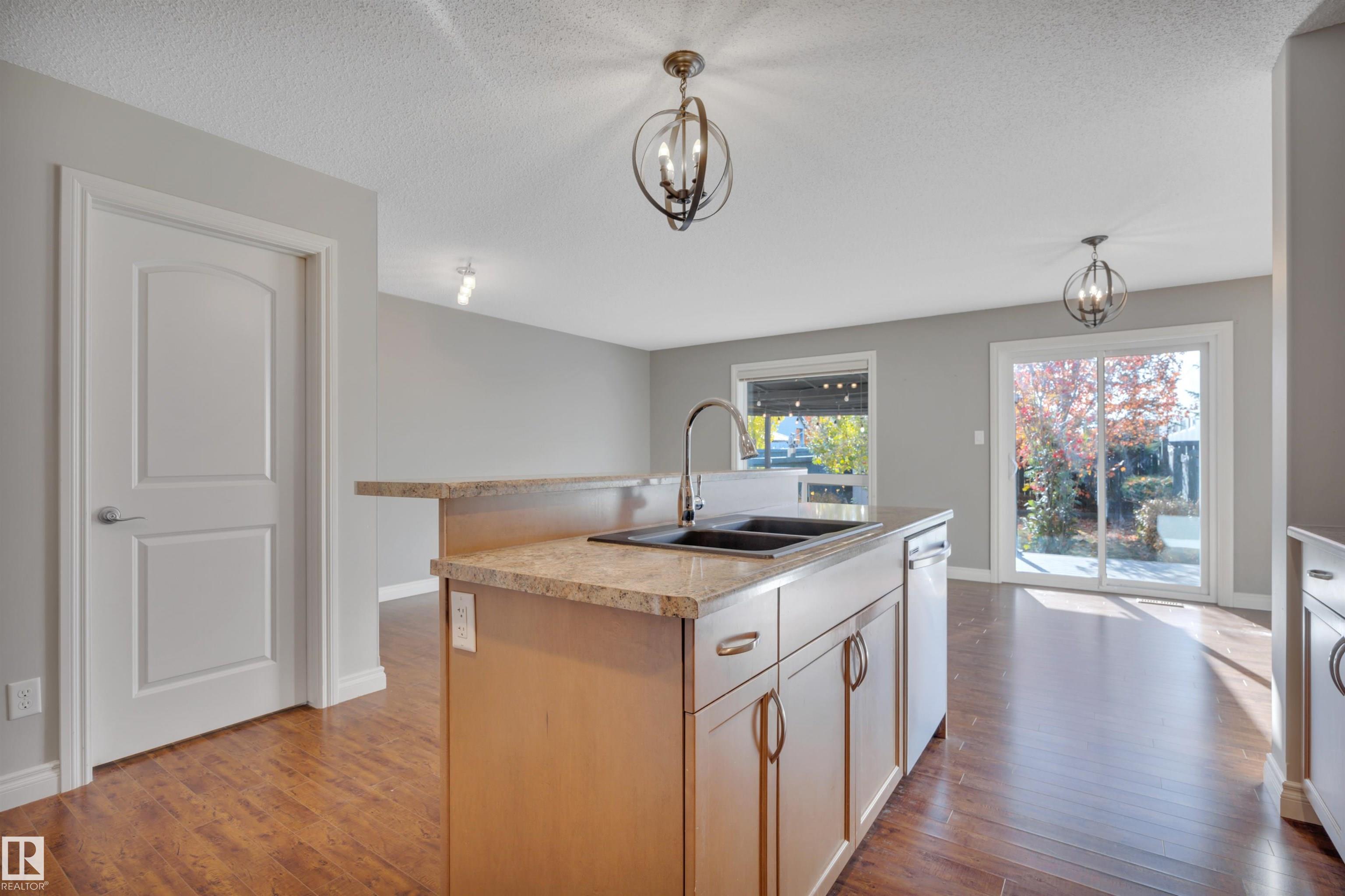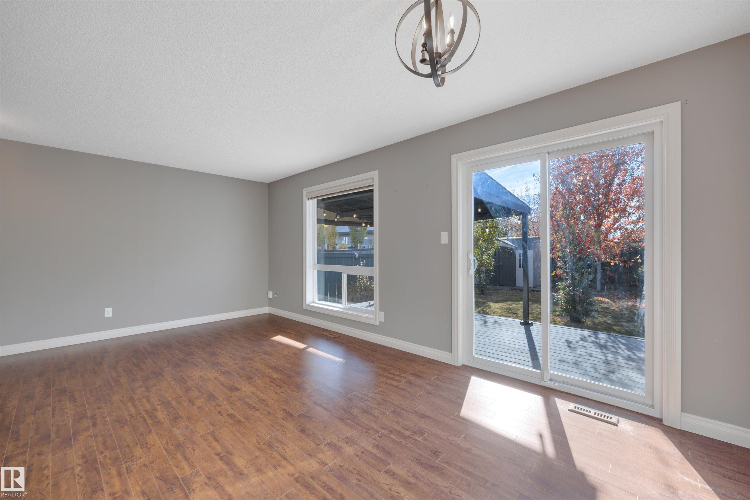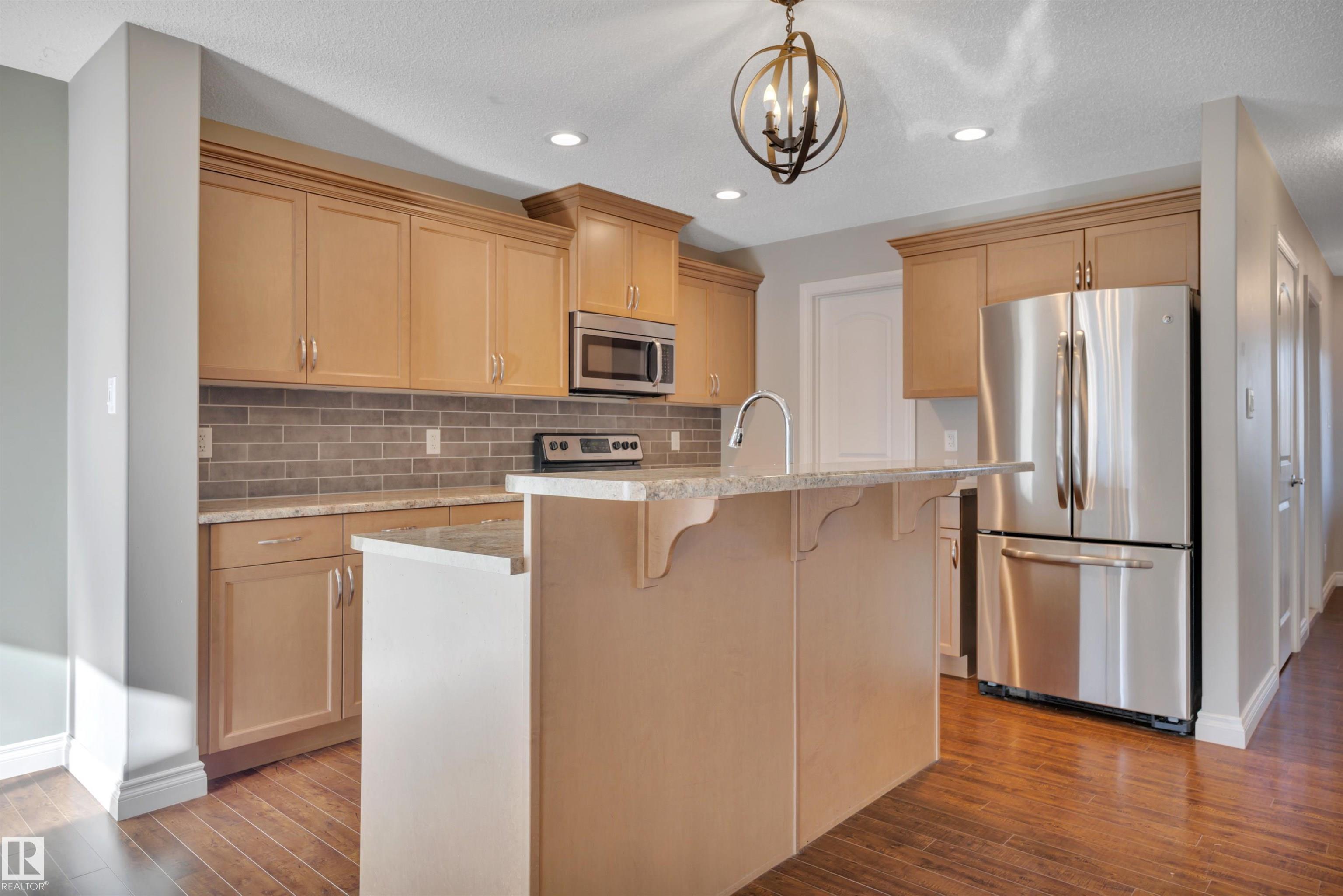 Located in Edmonton?s desirable west end, this lovely duplex is just steps from groceries, shops, dining, and Michael Phair Junior High, with Lewis Estates Golf Course only minutes away. You?ll love the spacious neighbourhood streets, ample visitor parking, and the warm, family-friendly community. From the moment you walk in, you?ll notice what makes this home special...the beautiful backyard, with the composite deck, hardtop gazebo, thoughtful landscaping, trees and a handy storage shed, it creates a private, welcoming outdoor retreat. Inside, enjoy the open-concept main floor with hardwood floors, light wood cabinetry, a convenient pantry, and a generous 2-piece powder room. The oversized single garage offers excellent space for both ground and overhead storage, while the front staircase fills the home with natural light. Upstairs, you?ll find a cozy bonus area perfect for an office, reading nook or hobby space. This home offers the perfect blend of location , lifestyle and potential. Welcome home