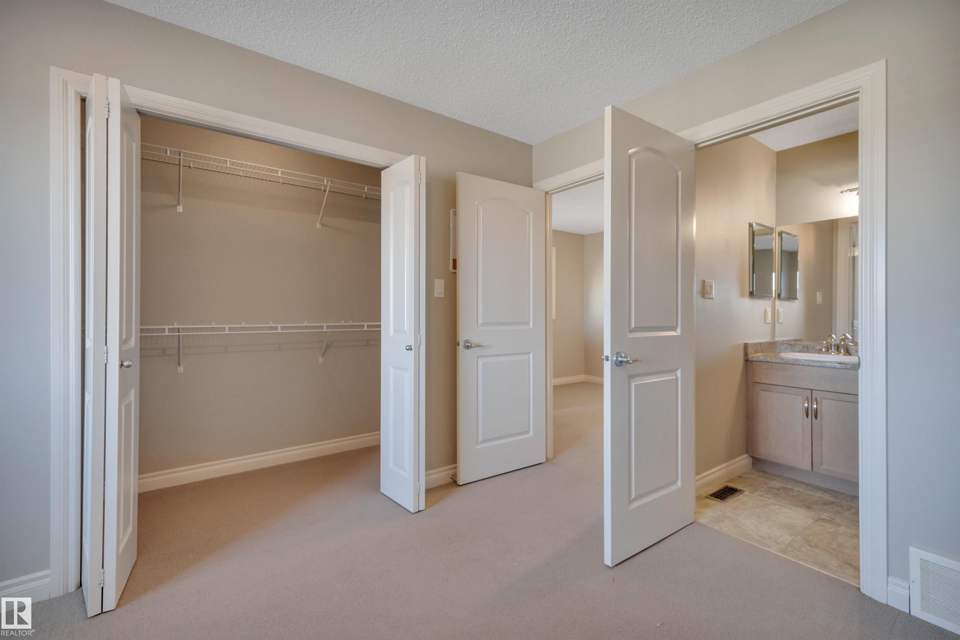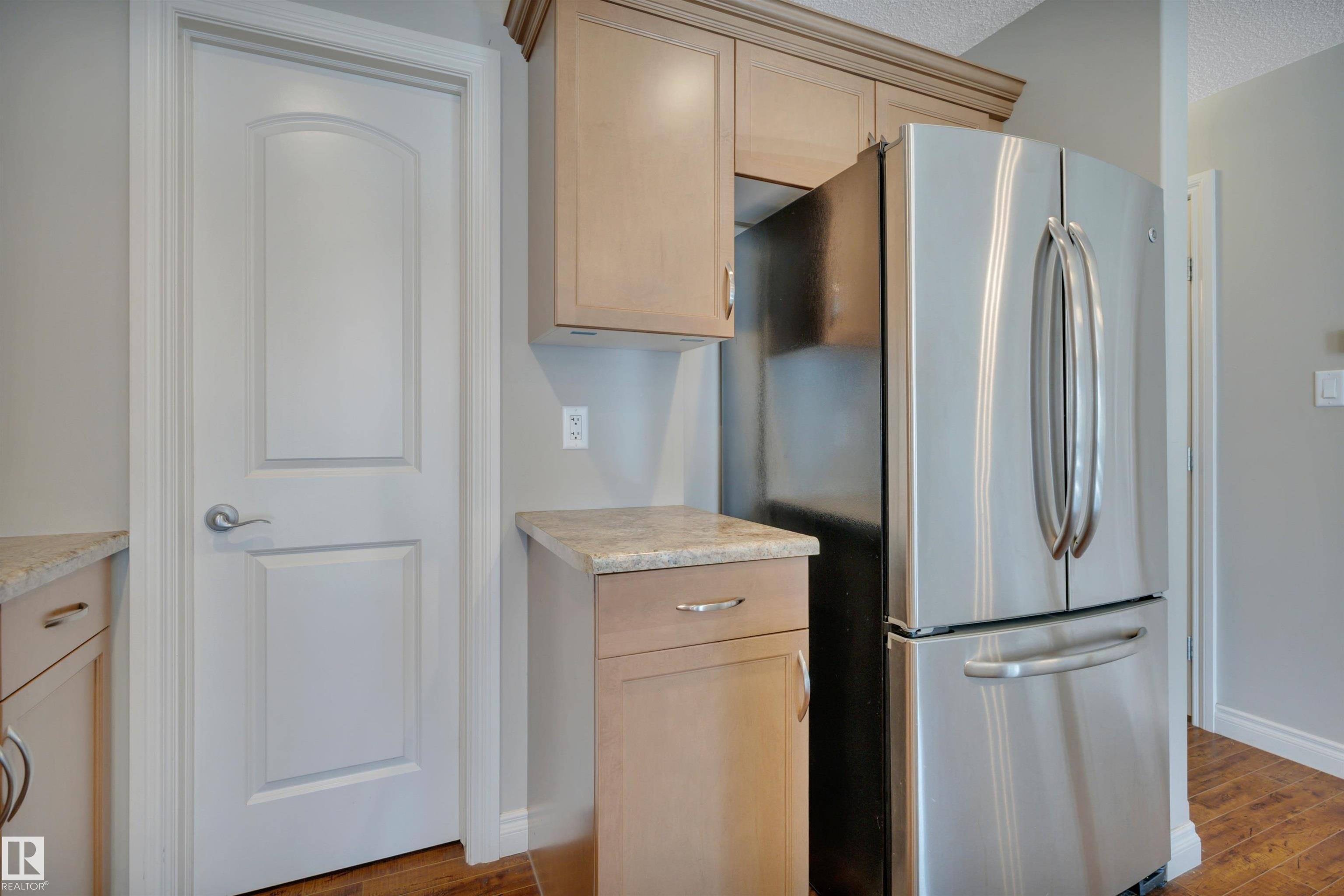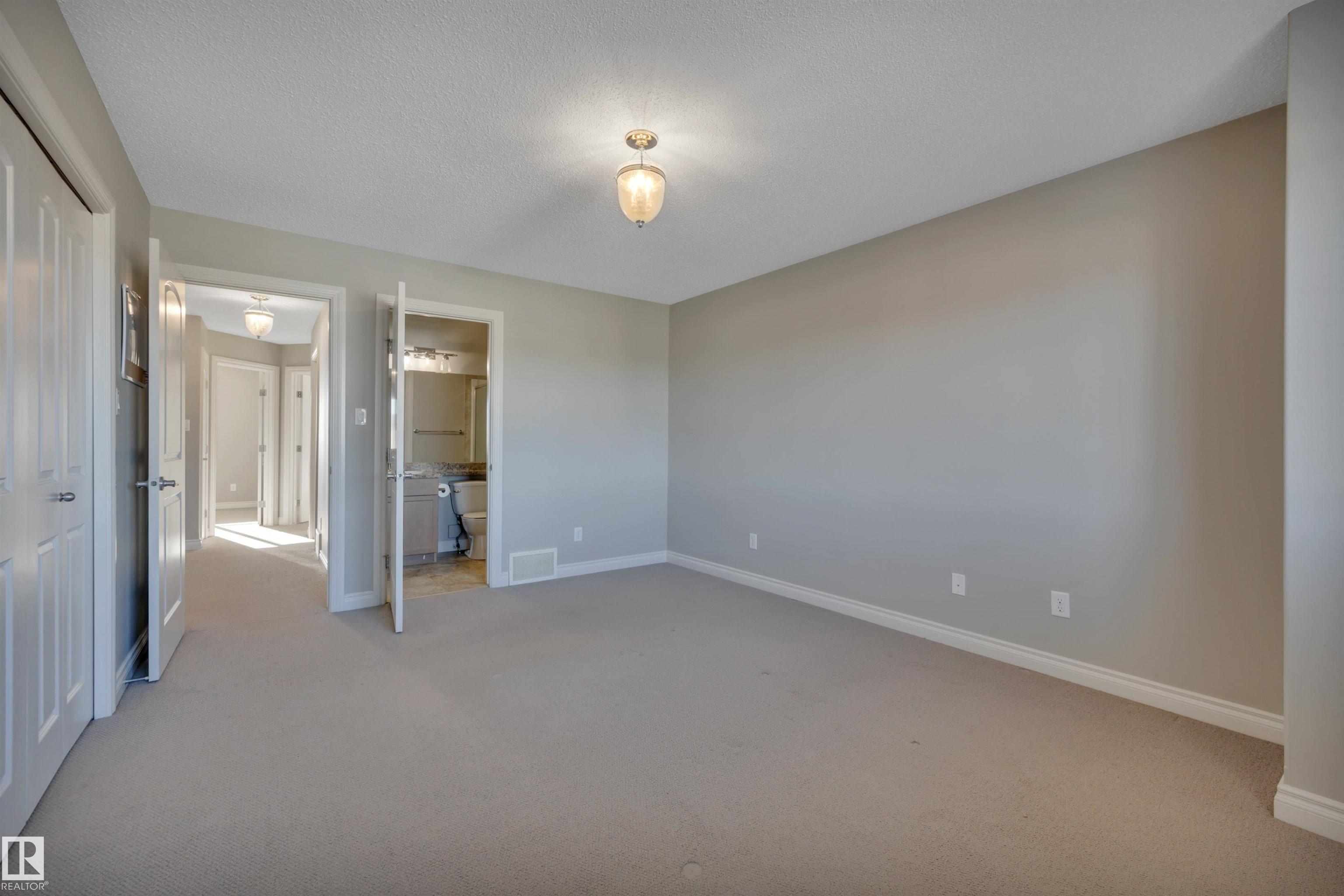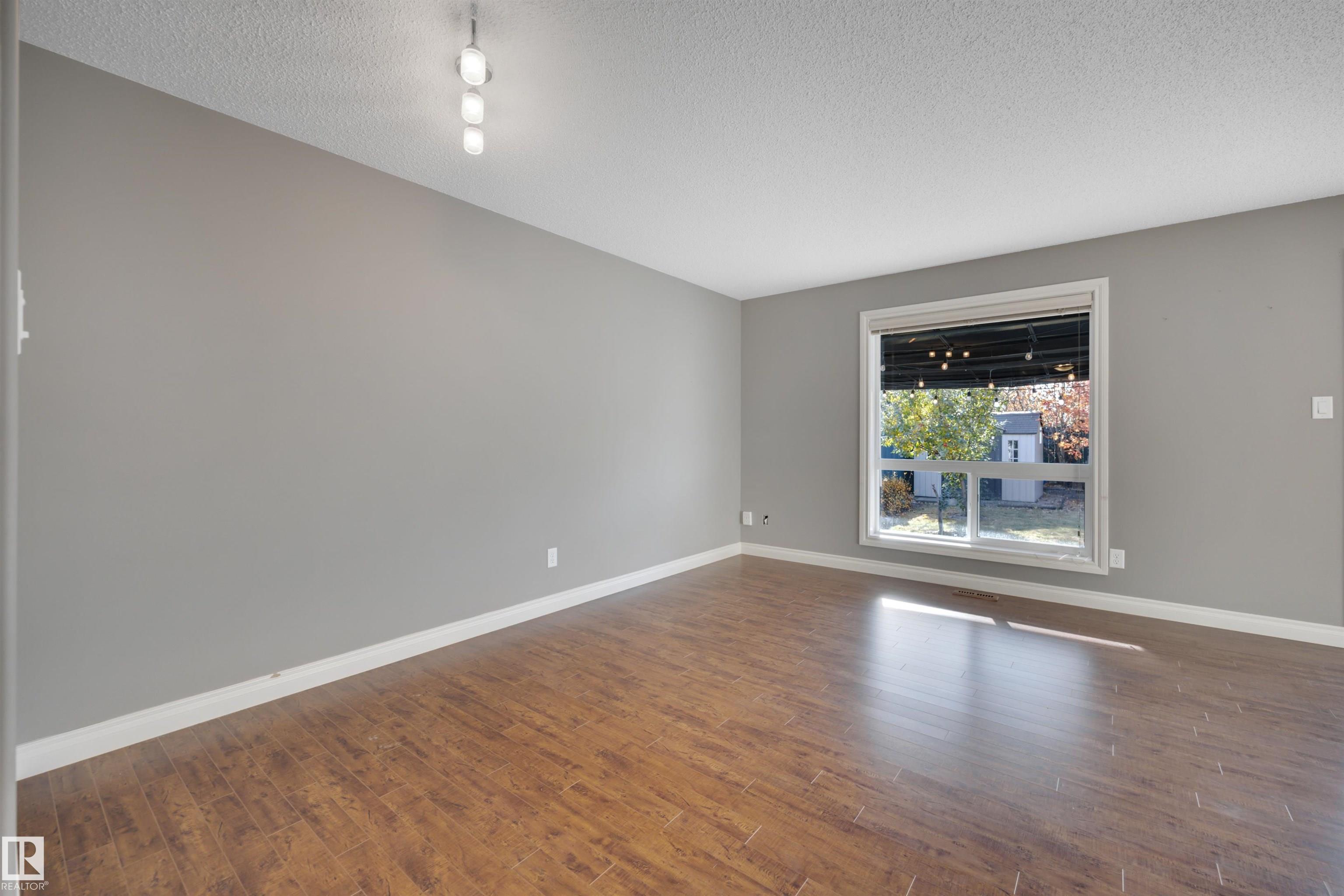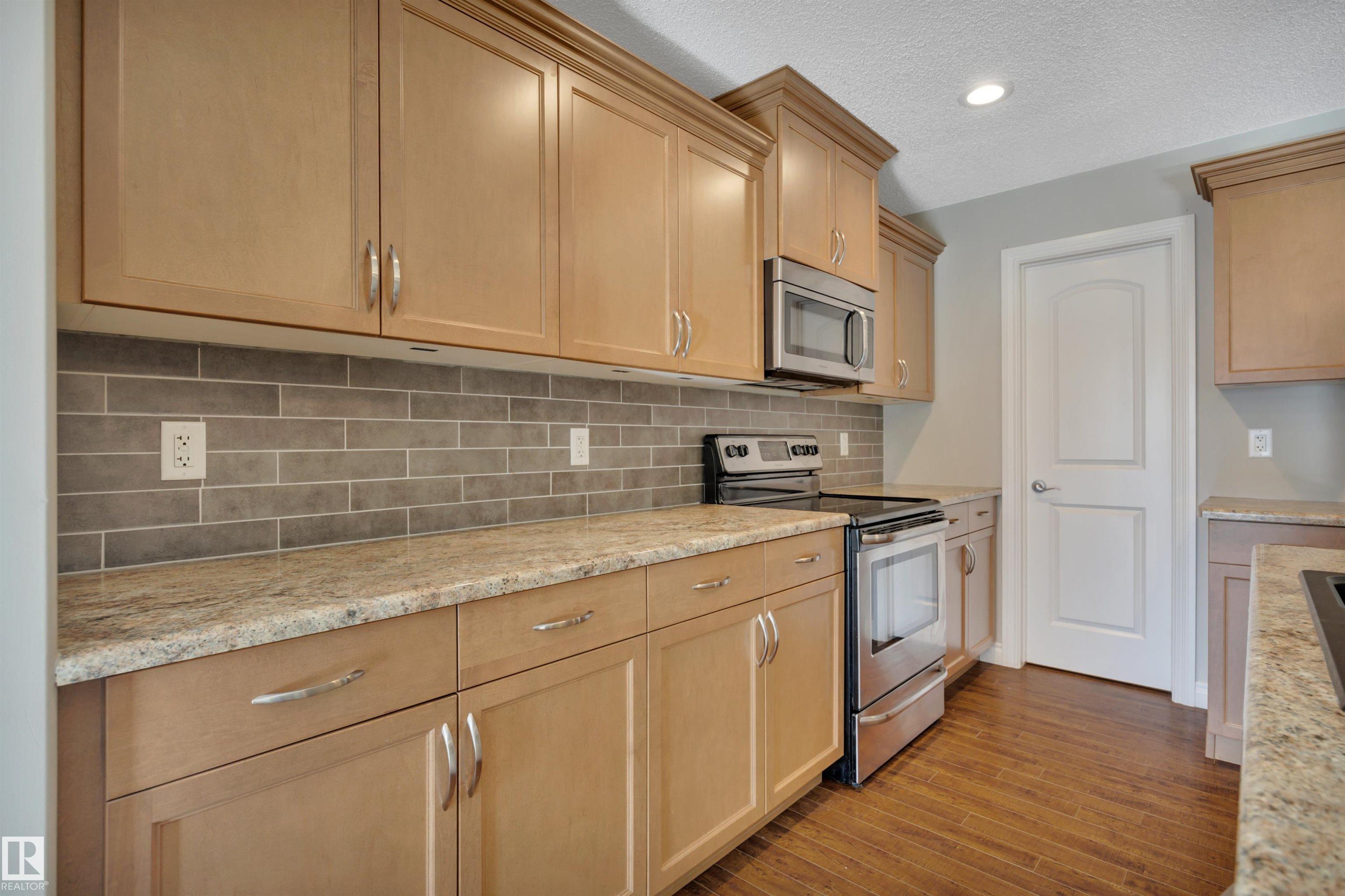 Located in Edmonton?s desirable west end, this lovely duplex is just steps from groceries, shops, dining, and Michael Phair Junior High, with Lewis Estates Golf Course only minutes away. You?ll love the spacious neighbourhood streets, ample visitor parking, and the warm, family-friendly community. From the moment you walk in, you?ll notice what makes this home special...the beautiful backyard, with the composite deck, hardtop gazebo, thoughtful landscaping, trees and a handy storage shed, it creates a private, welcoming outdoor retreat. Inside, enjoy the open-concept main floor with hardwood floors, light wood cabinetry, a convenient pantry, and a generous 2-piece powder room. The oversized single garage offers excellent space for both ground and overhead storage, while the front staircase fills the home with natural light. Upstairs, you?ll find a cozy bonus area perfect for an office, reading nook or hobby space. This home offers the perfect blend of location , lifestyle and potential. Welcome home