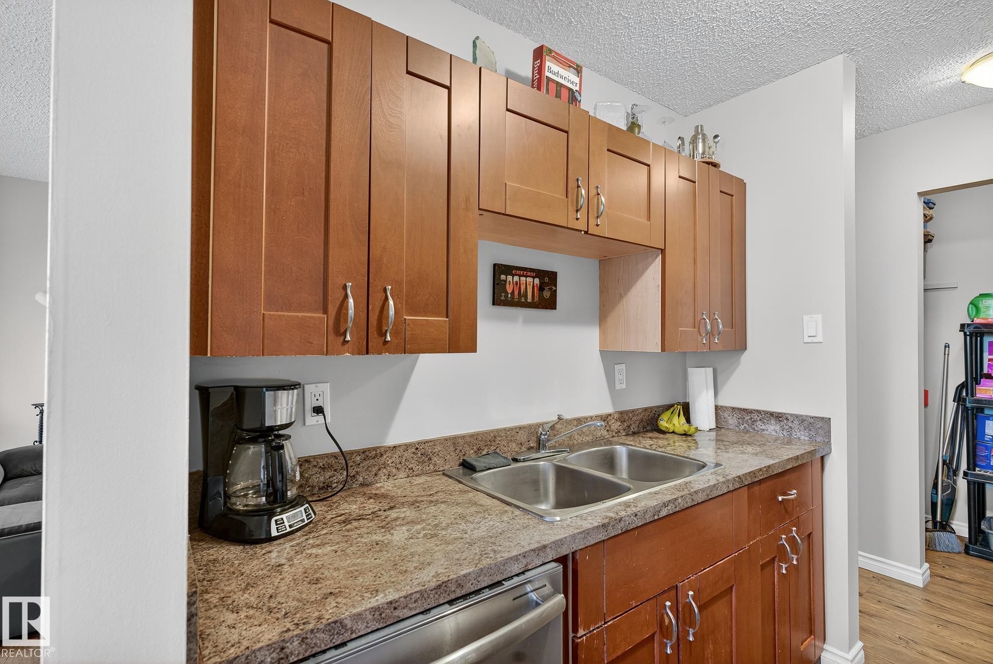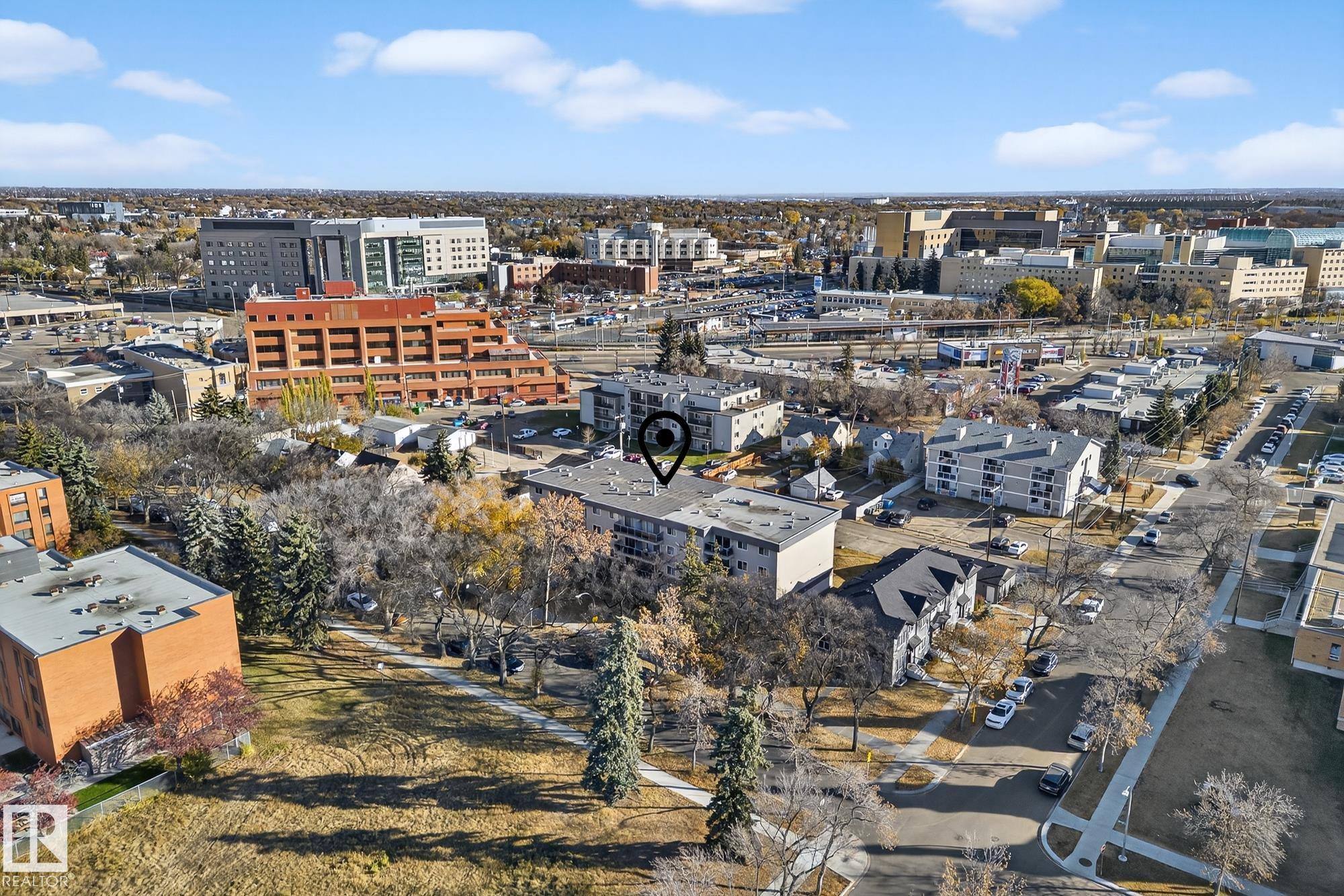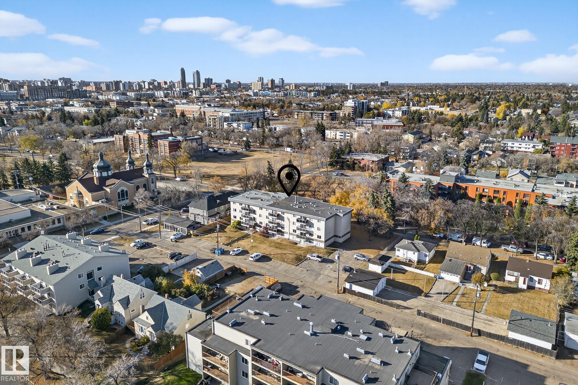 Welcome to McLeod One! This top-floor 1-bedroom condo offers 708 sq. ft. of bright, comfortable living in a central location. The unit features a spacious open layout with living and dining areas, a modern kitchen with plenty of cabinet and counter space, and a bedroom filled with natural light. Enjoy a large, sunny balcony perfect for relaxing. The well-maintained building has seen updates including a new roof, refreshed exterior, and contemporary glass balconies. Located just steps from Kingsway Mall, the Royal Alex Hospital, schools, parks, and transit, this home is ideal for first-time buyers, students, or investors.