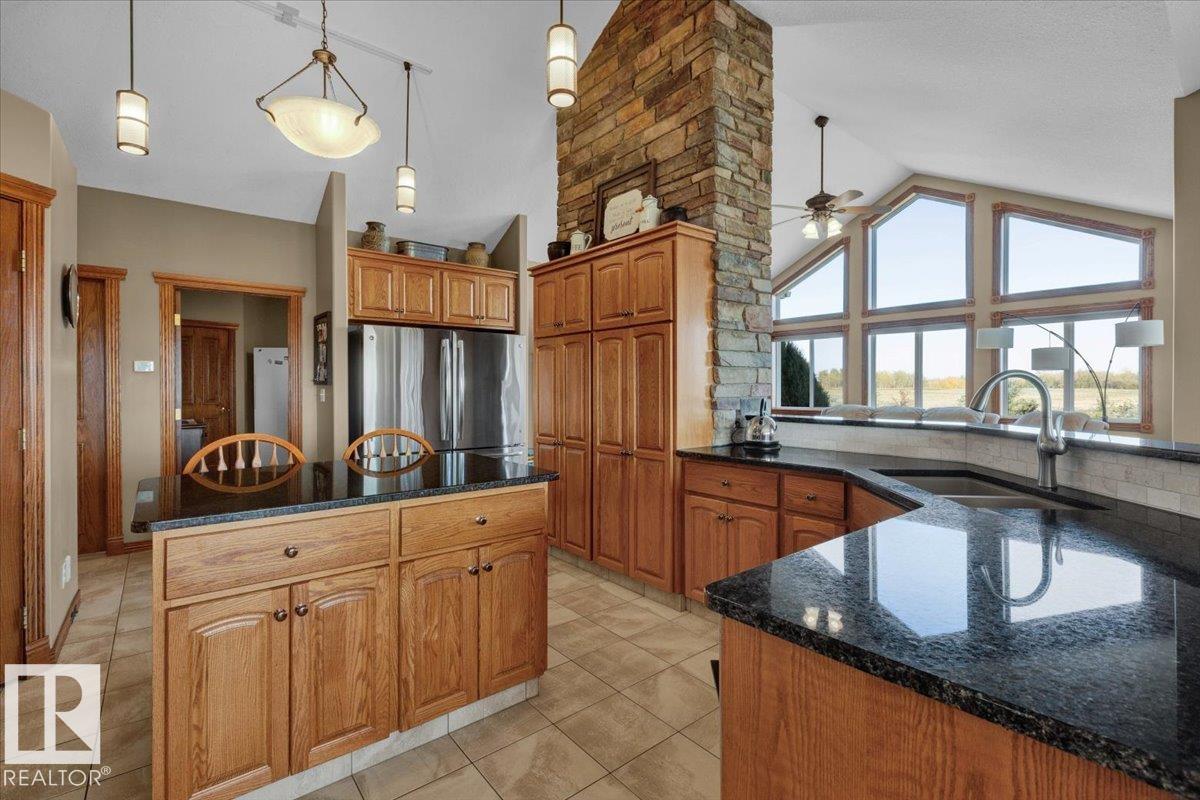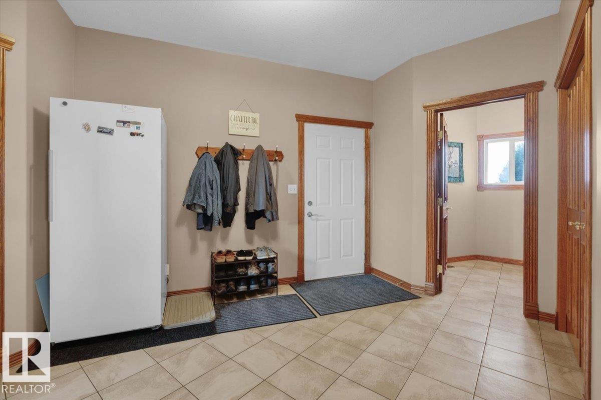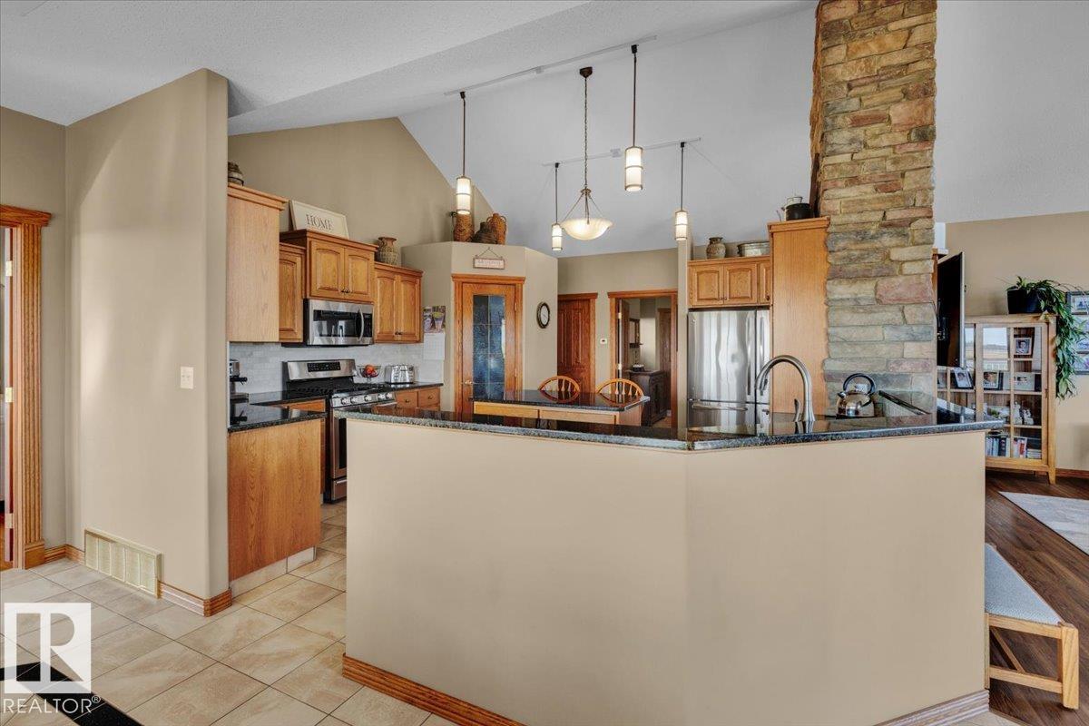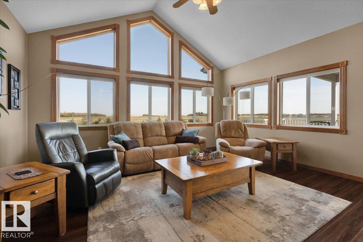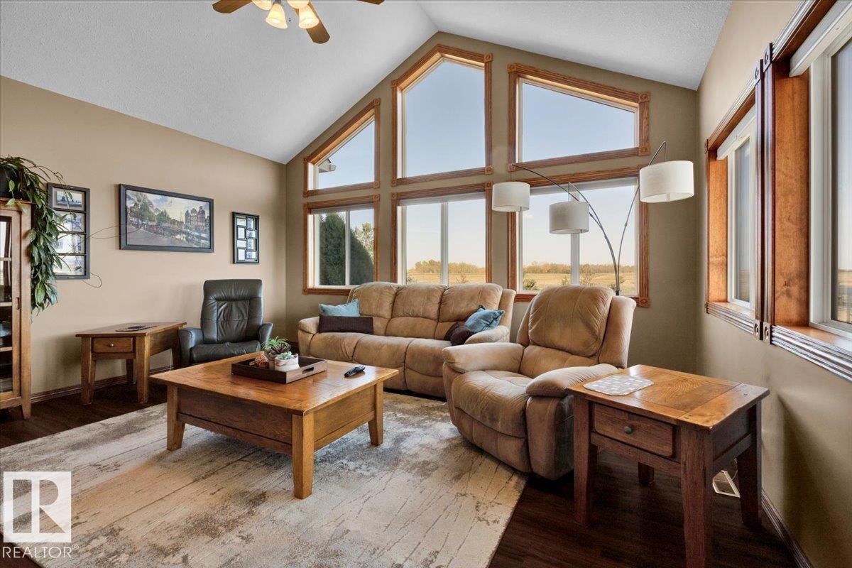 80 Acres Within City Limits! This exceptional property offers the perfect blend of country tranquility and city convenience. The 2,481 sq. ft. fully finished bungalow features an oversized double attached garage with in-floor heating and an impressive 5,186 sq. ft. shop, ideal for a home-based business or extra storage. Inside, you?ll find 4 bedrooms, 5 bathrooms, and 3 fireplaces, creating a warm and inviting atmosphere throughout. The main floor showcases vaulted ceilings, gleaming hardwood floors, a spacious dining area, and a den perfect for a home office. The primary suite includes a luxurious 5-piece ensuite and his & hers closets. The walkout basement offers a large family recreation room and access to a patio area with stunning scenic views. Enjoy peaceful surroundings from the covered upper deck while overlooking your 80-acre property. A rare opportunity to own this one-of-a-kind estate within city limits?space, comfort, and endless potential await!
