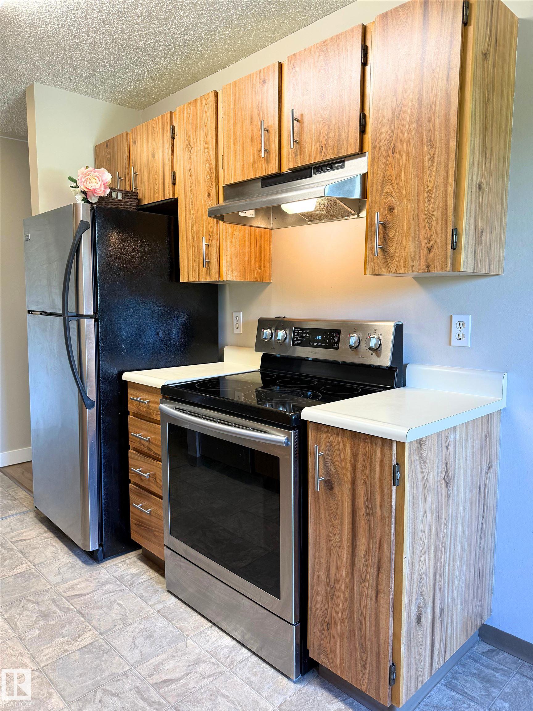 TOP-FLOOR END UNIT! No noisy neighbors above and extra privacy! This bright incredibly well maintained condo in Crestmark Place is move-in ready with newer stainless steel appliances and new vinyl plank flooring throughout the living room and bedroom. Enjoy a functional kitchen, dining area, and plenty of in-suite storage. The laundry room is conveniently located down the hall for easy access. Relax on your private balcony with a top-floor view! Located in a well-maintained and managed building with many long term residents. Just steps from John A. McDougall School, Central McDougall Park, and minutes to Kingsway Mall, Downtown, Oliver Square, Grant MacEwan and Nait.