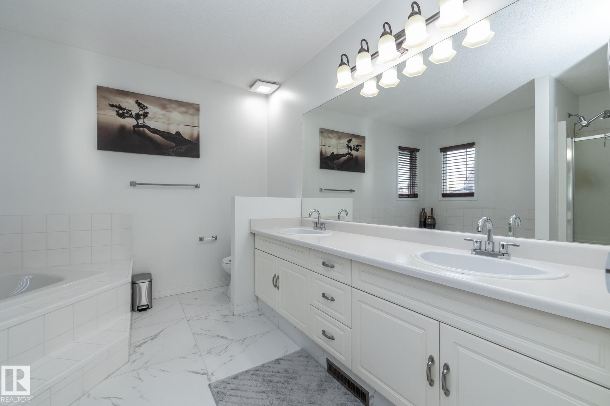Looking for space to grow without giving up peace & privacy? Welcome to Elsinore, where big lots, quiet streets & family living come together. This 5 bed, 4-bath beauty offers over 2,200 sqft above grade + a finished basement, giving everyone room to breathe, play, work & relax. The foyer opens to a welcoming living & dining area for holidays & family dinners. The kitchen offers quartz counters, s/s appliances, a large island & a breakfast nook that overlooks your backyard, perfect for keeping an eye on little ones or enjoying morning coffee. The cozy family room w/wood burning fireplace invites winter snuggles. Upstairs you?ll find 3 generous beds, including a primary suite w/bay window, W/I closet & spa ensuite w/soaker tub, stand alone shower & dual sinks. The basement adds 2 more beds, full bath & huge rec room-ideal for teens, guests or movie nights.Outside, enjoy a fenced yard & patio offering tons of room for kids, pets & backyard BBQs. Close to parks, schools, shopping, CFB Edmonton & the Henday.