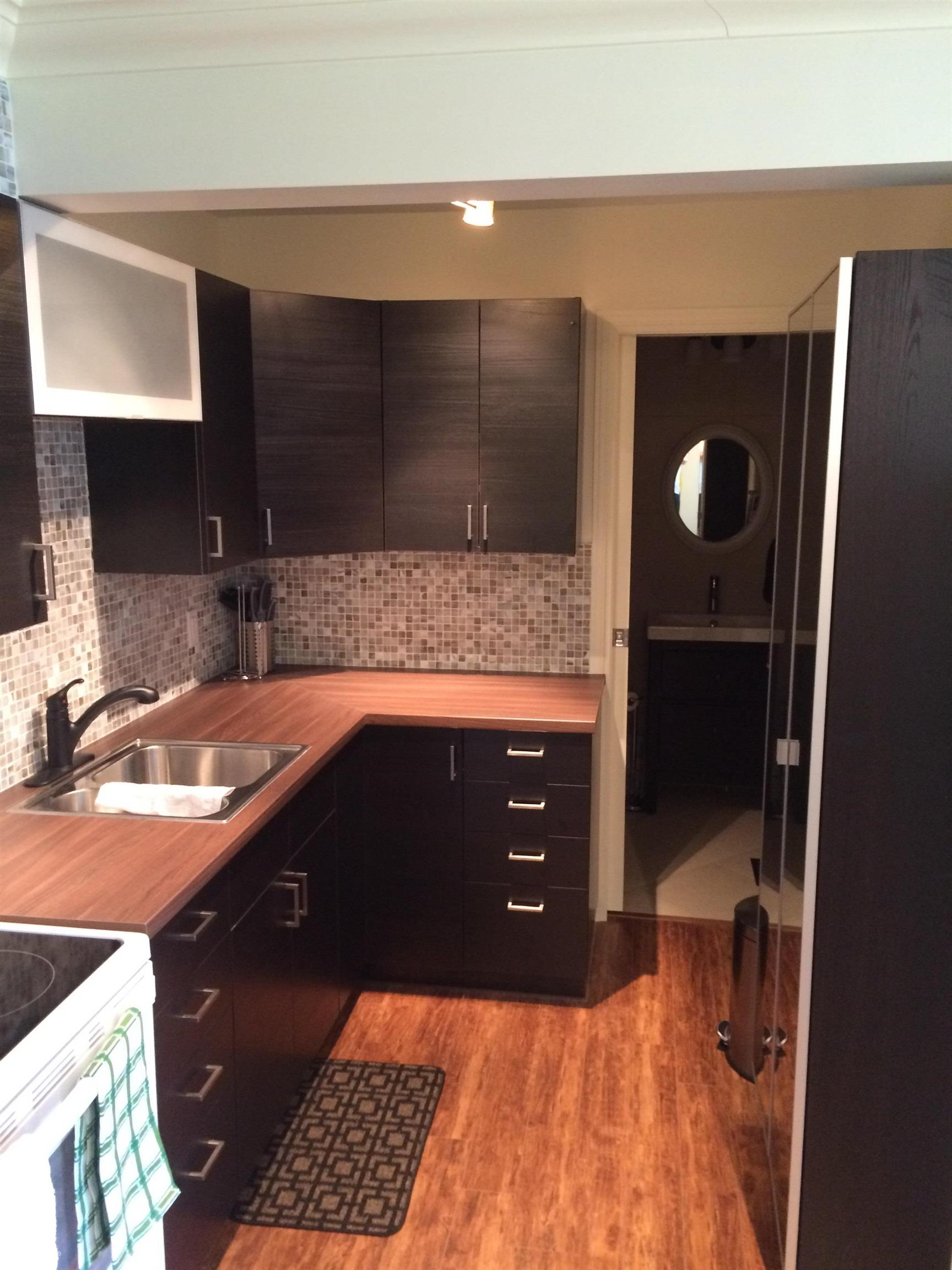 Rent in style: all utilities including internet, masssage shower, bedding, linens, cook- and dinnerware, in-suite clothes washer and dryer, hot water-on-demand, blinds, drapes, plenty of storage space and tasteful artwork and decor round out the amenities of this quaint, European-style suite in our almost-historic building. Located 150m from the nearest LRT station in Central Edmonton, it also features a patio with plants, fountain, furniture, and a bbq. Banks, restaurants, grocers, butchers, chemists and medical clinics within two-minutes' walk. Deposit of one month's rent required.