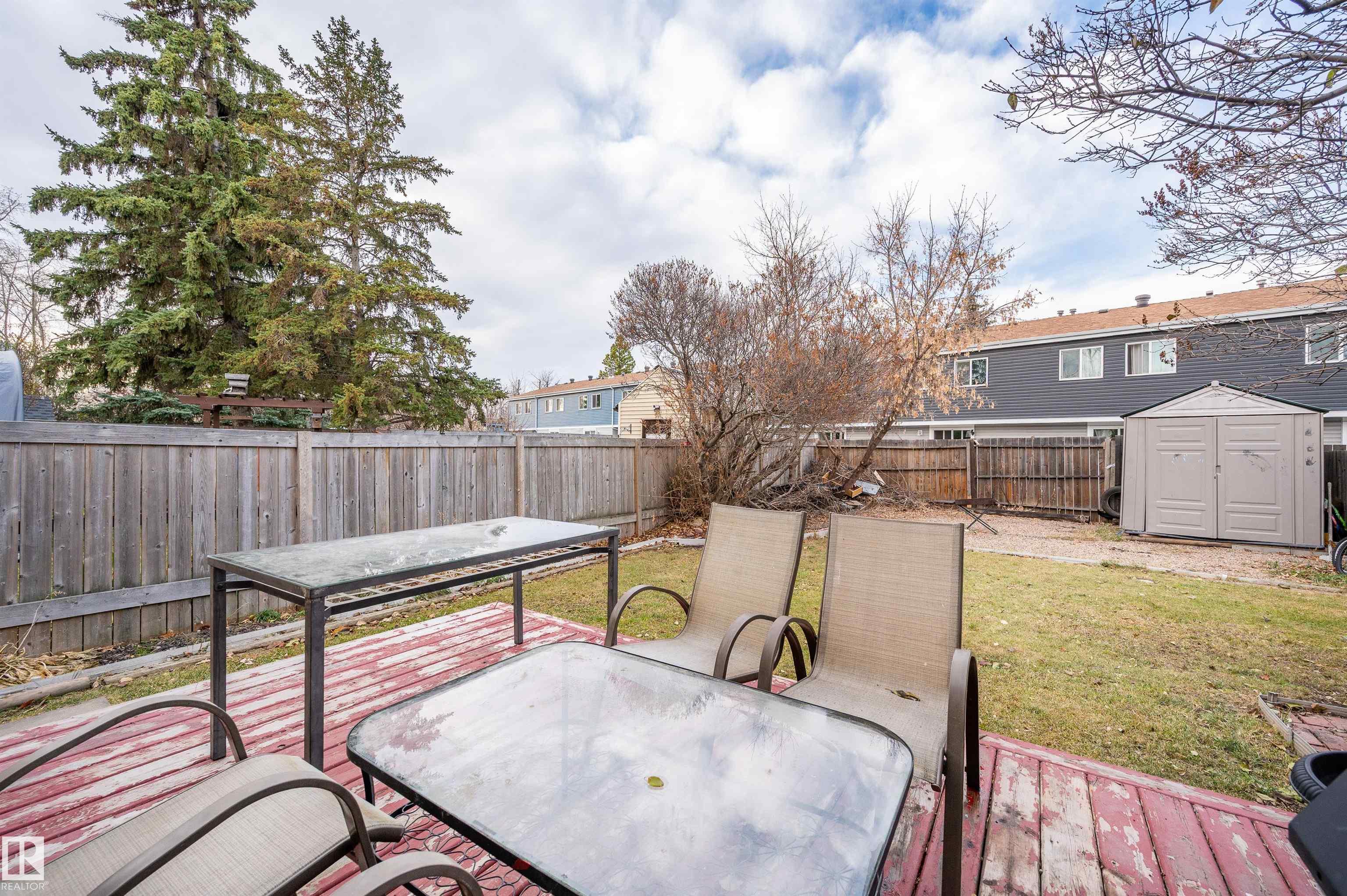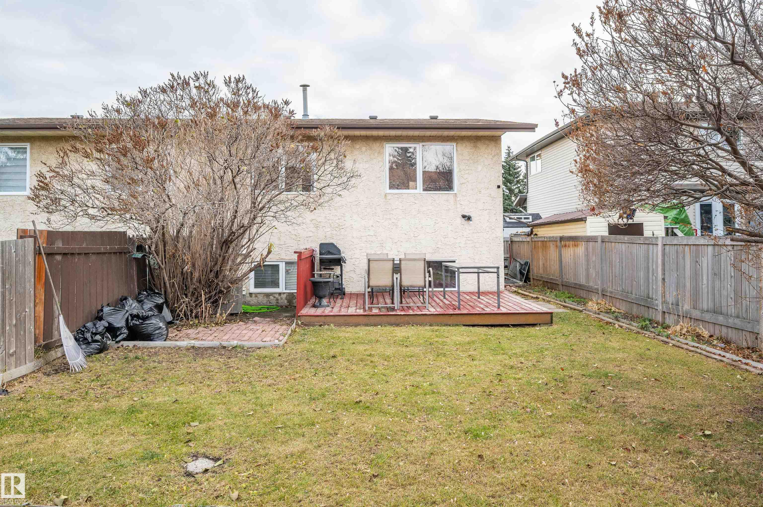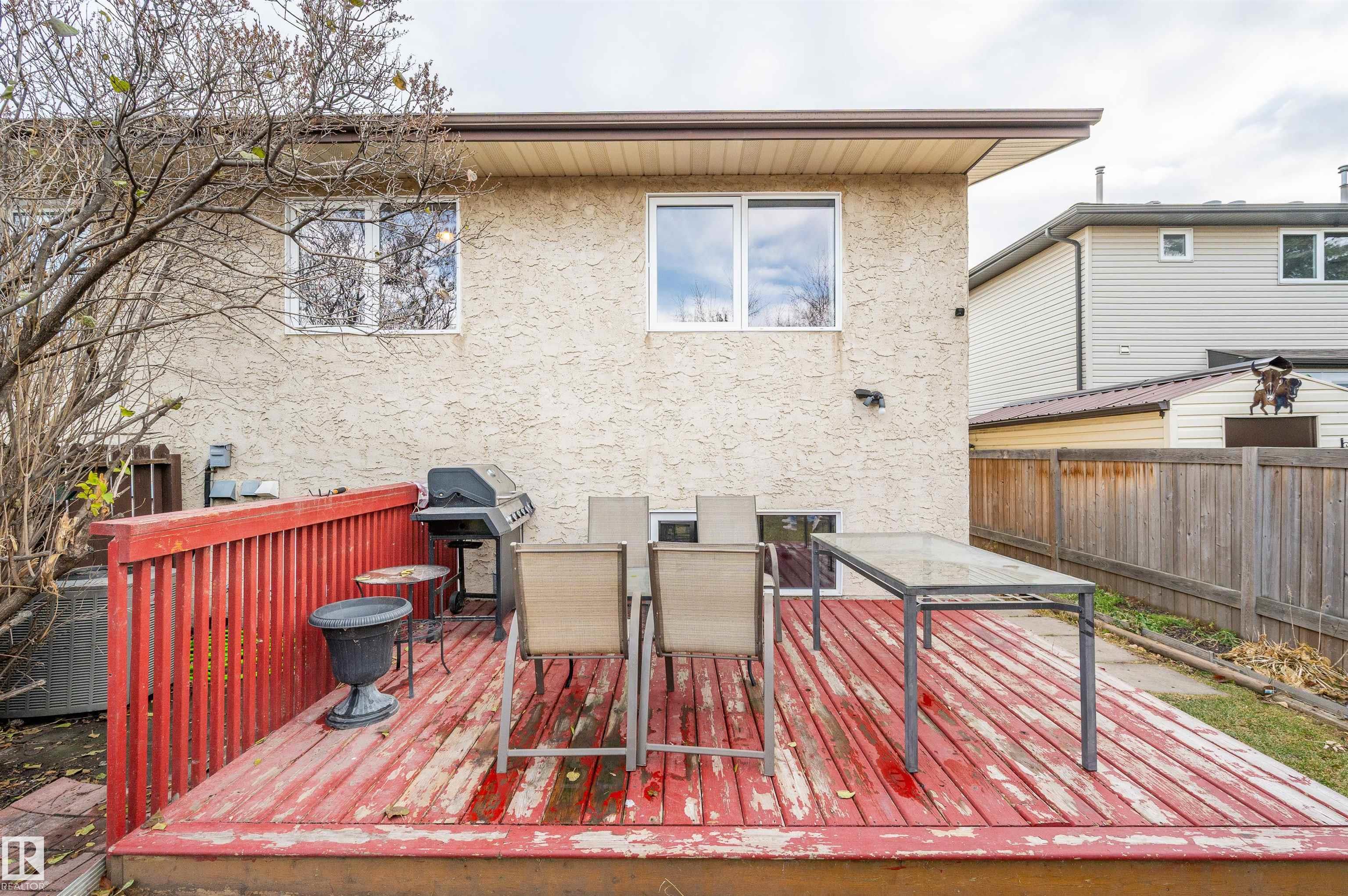Welcome to Crawford Plains ? a quiet, family-friendly community in Southeast Edmonton. This well-kept bi-level half duplex offers practical living with plenty of natural light and functional space throughout. The main floor features a bright living room with large windows, a spacious kitchen with good cabinet storage, and an adjacent dining area. Two bedrooms and a full bathroom complete the upper level, while the finished basement adds a large family room, third bedroom, second full bathroom, and a laundry area with extra storage. Enjoy added comfort with central A/C, newer shingles, and a fully fenced backyard complete with a freshly painted deck and storage shed. Located just steps from Crawford Plains School and park, with quick access to shopping, public transit, and the Anthony Henday, this move-in-ready home delivers value, flexibility, and convenience at an affordable price point ? perfect for first-time buyers or investors alike.