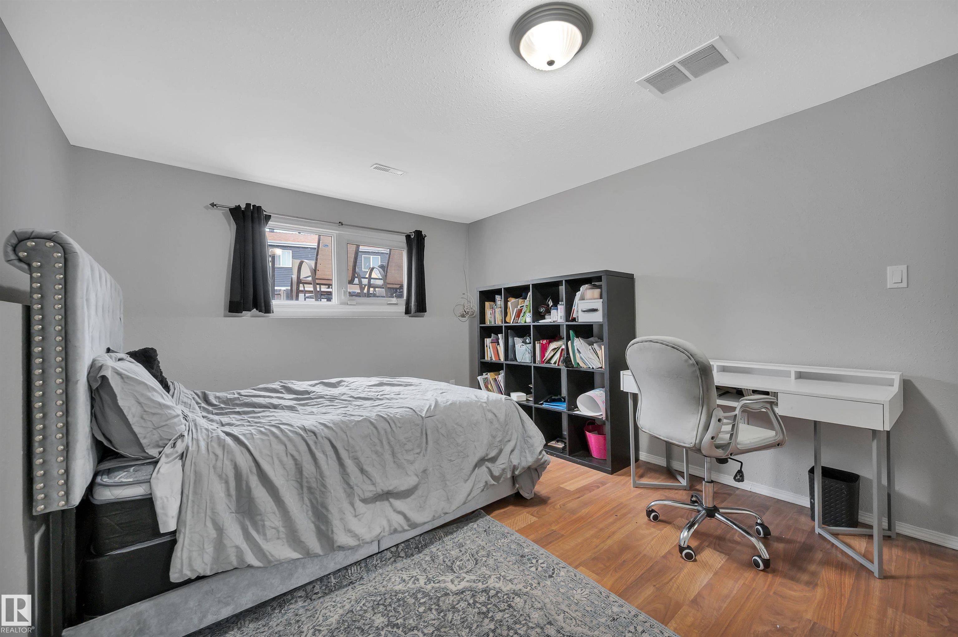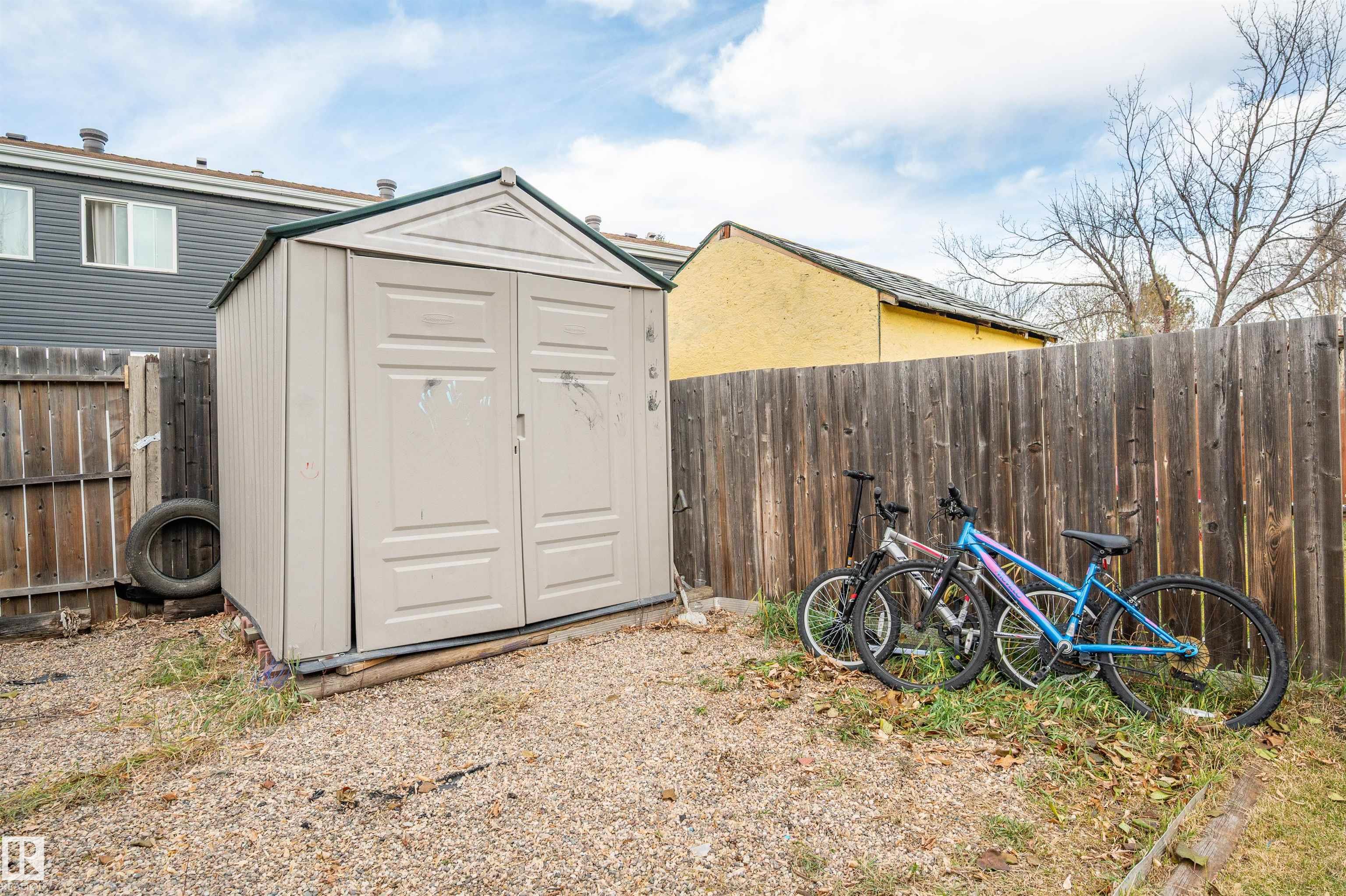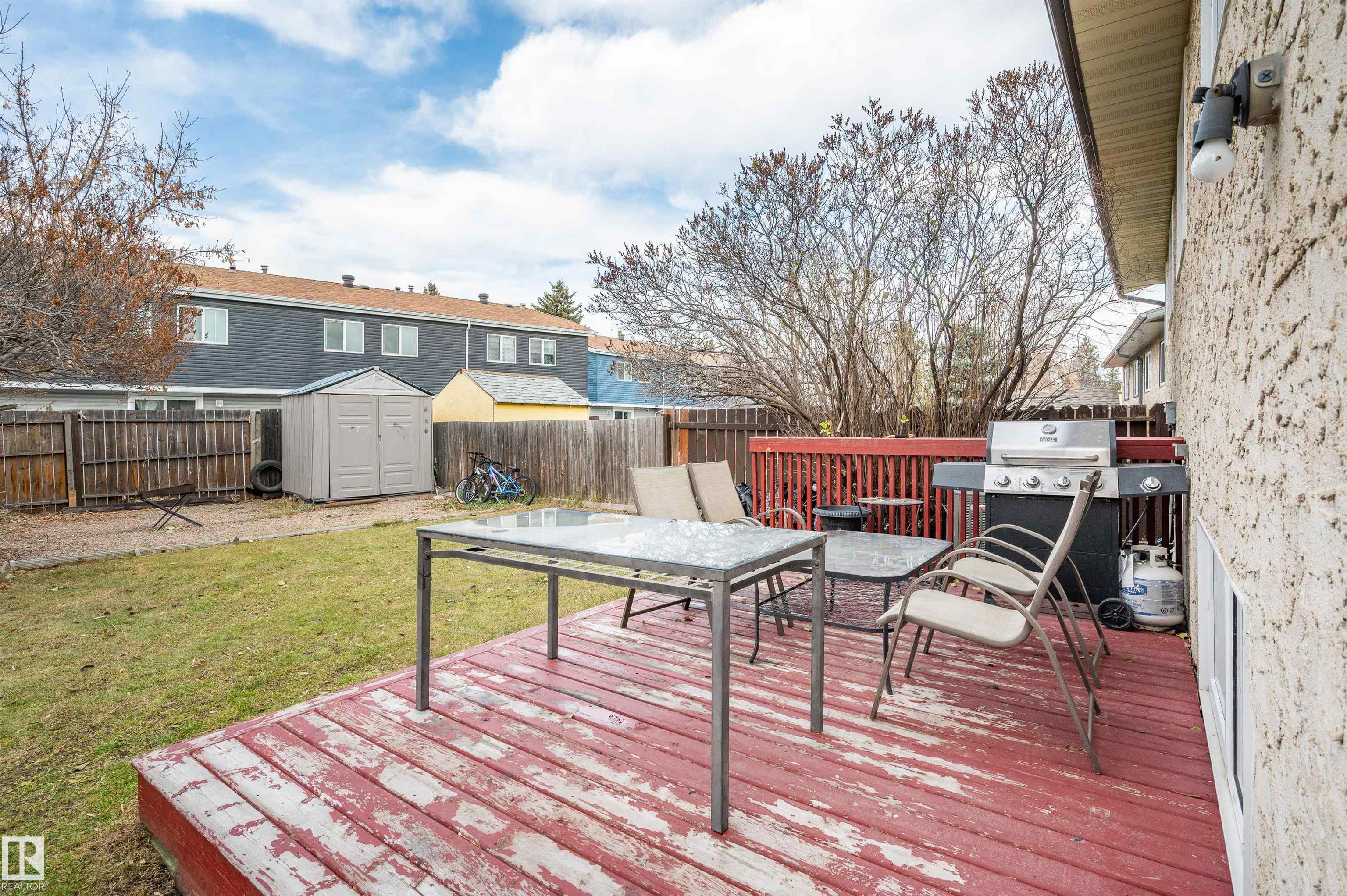 Welcome to Crawford Plains ? a quiet, family-friendly community in Southeast Edmonton. This well-kept bi-level half duplex offers practical living with plenty of natural light and functional space throughout. The main floor features a bright living room with large windows, a spacious kitchen with good cabinet storage, and an adjacent dining area. Two bedrooms and a full bathroom complete the upper level, while the finished basement adds a large family room, third bedroom, second full bathroom, and a laundry area with extra storage. Enjoy added comfort with central A/C, newer shingles, and a fully fenced backyard complete with a freshly painted deck and storage shed. Located just steps from Crawford Plains School and park, with quick access to shopping, public transit, and the Anthony Henday, this move-in-ready home delivers value, flexibility, and convenience at an affordable price point ? perfect for first-time buyers or investors alike.