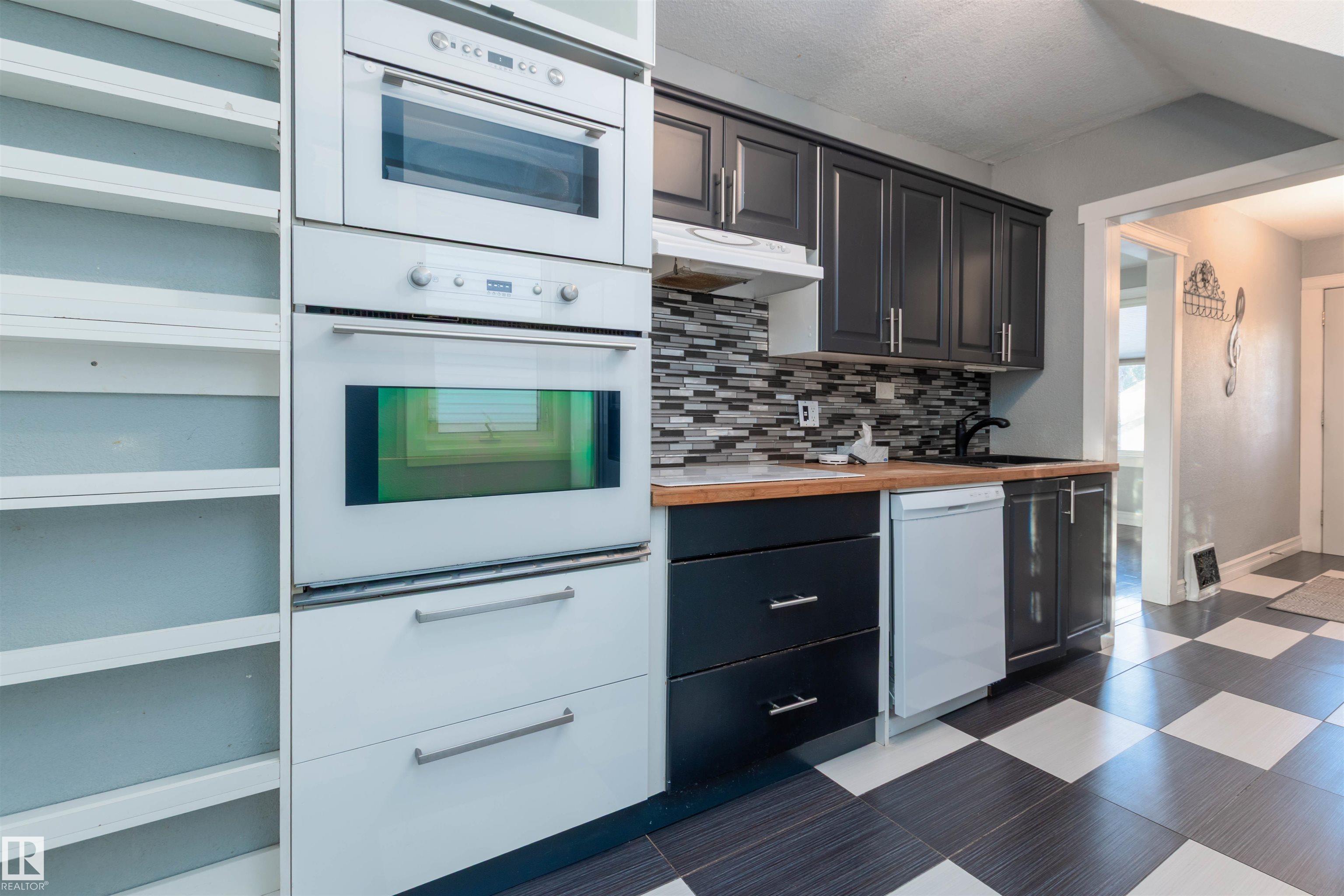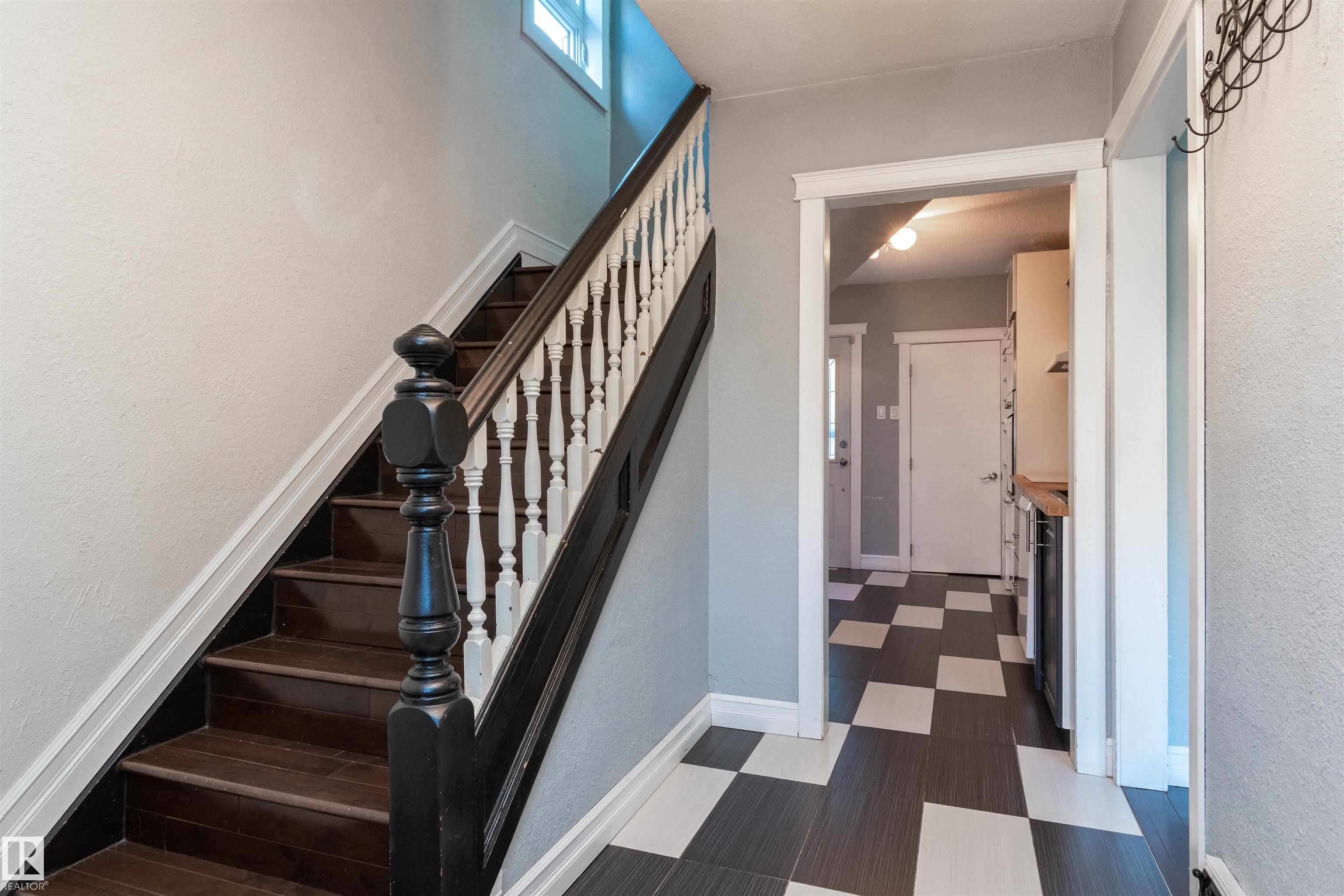 Charming character home in Riverdale with a white picket fence, beautifully landscaped yard, and brick patio off the back deck surrounded by gardens. This renovated early 1900s two-bedroom, three-bathroom home blends historic charm with modern upgrades. The upgraded kitchen features butcher block countertops, double wall ovens, and ample cabinetry. The main floor offers a spacious living room and dining area accented by tile and hardwood, along with a convenient two-piece bath. Upstairs, enjoy hardwood floors throughout both bedrooms and a stunning clawfoot tub in the three-piece bath. The finished basement adds a large family room with vinyl plank flooring, a four-piece bathroom, laundry area, and extra storage under the stairs, perfect for modern living in one of Edmonton?s most sought-after communities.