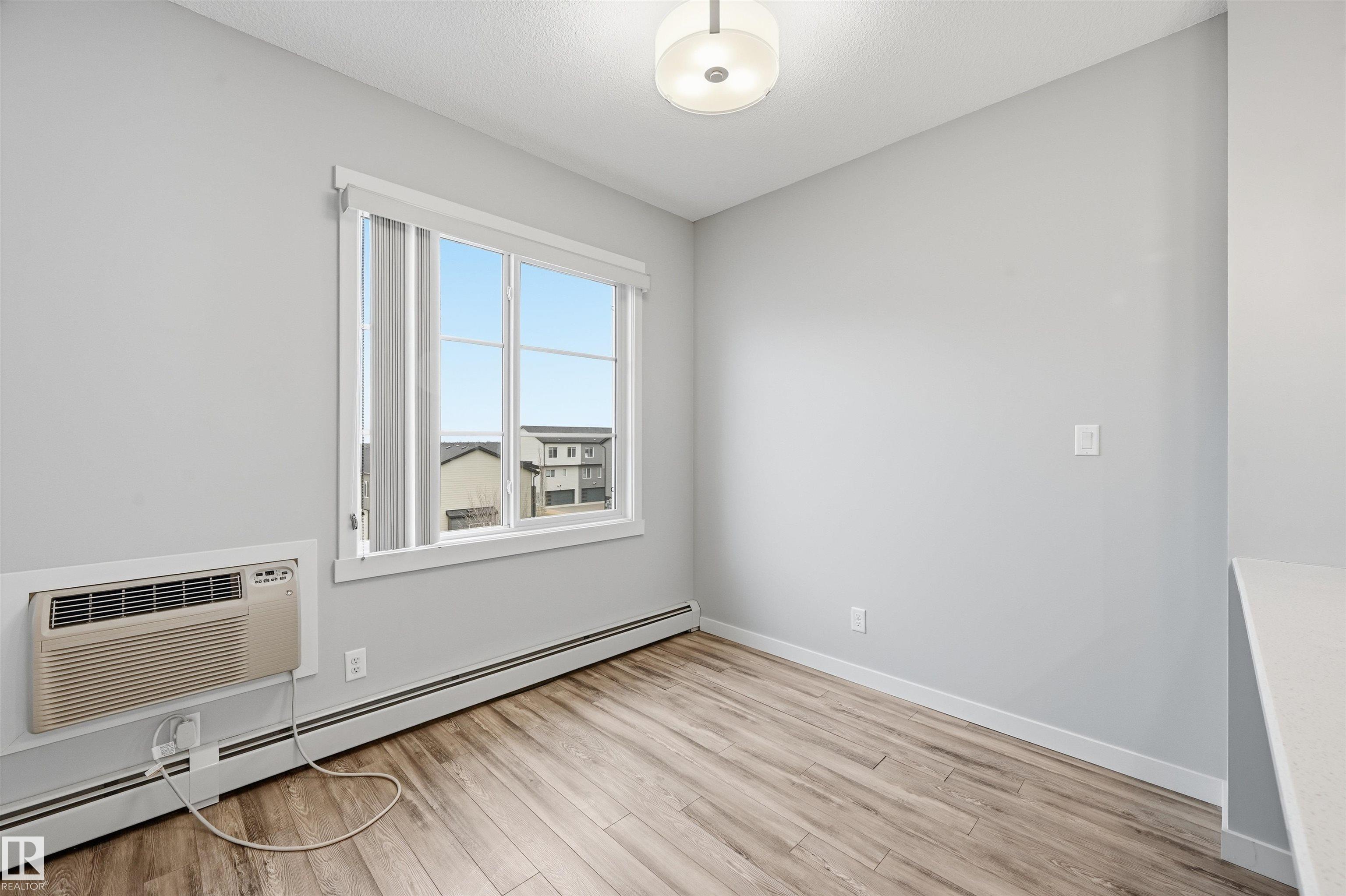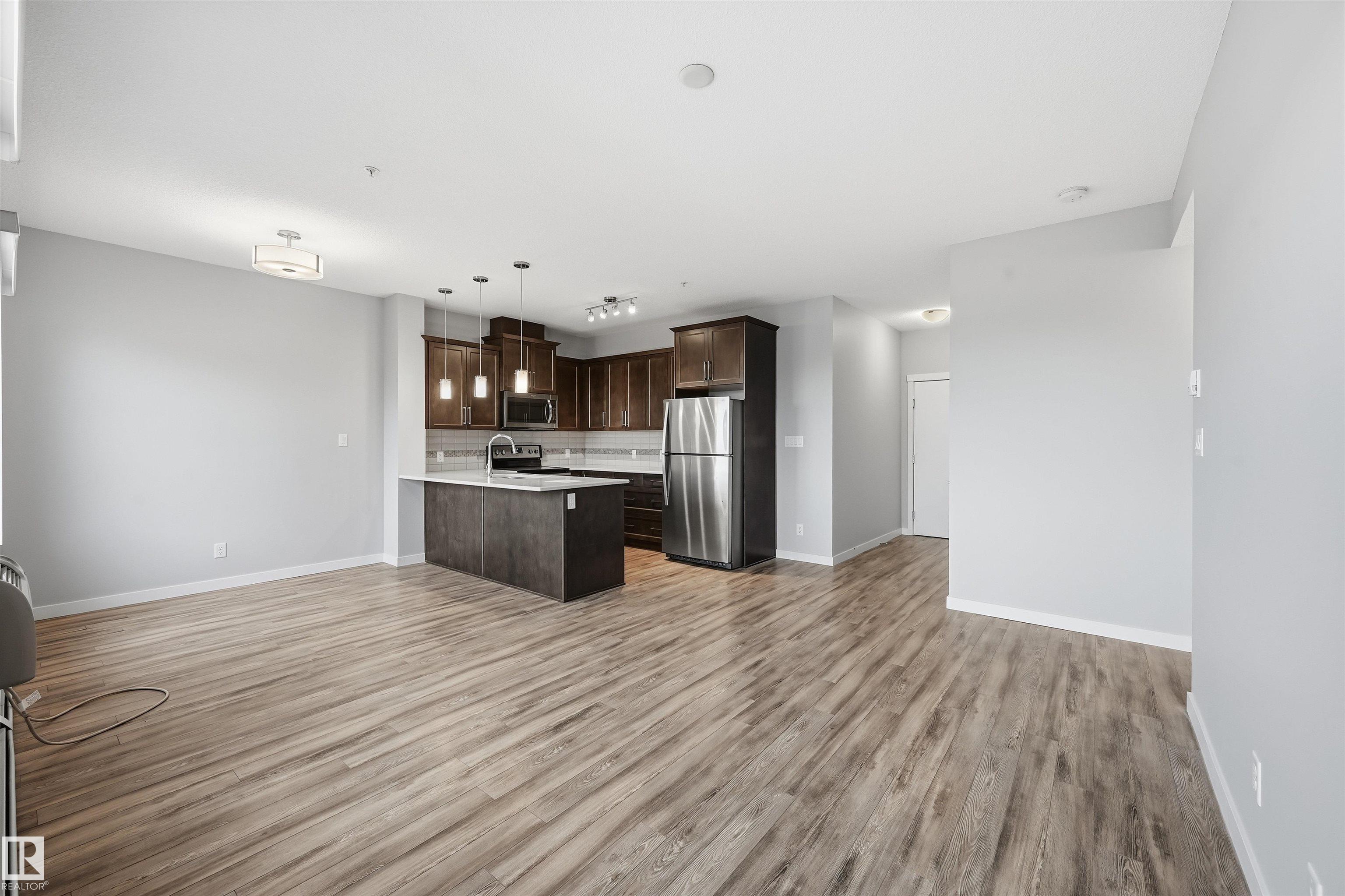 Well maintained and spacious TOP FLOOR 1 bed+den condo w/ AIR CONDITIONING! ALL UTILITIES INCL IN CONDO FEE - perfect for first time home buyers or investors. Prime location in South East Edmonton at Village at Walker Lake, close to everything! Unit features 9' ceilings, quartz countertops, laminate flooring, stainless steel kitchen appliances & a large island with eating bar. Open concept floor plan seamlessly connects the dining nook and roomy living room/patio. Primary bedroom has a unique layout and well-sized closet. The den is perfect for a home office space or a cozy second bedroom. Comes with a HEATED UNDERGROUND parking stall. Visitor parking available. Conveniently located close to schools, public transportation, grocery stores, shopping & dining at South Edmonton Common, walking trails & ponds. Easy access to major commuter routes including Ellerslie Rd and Anthony Henday for effortless city wide commuting.