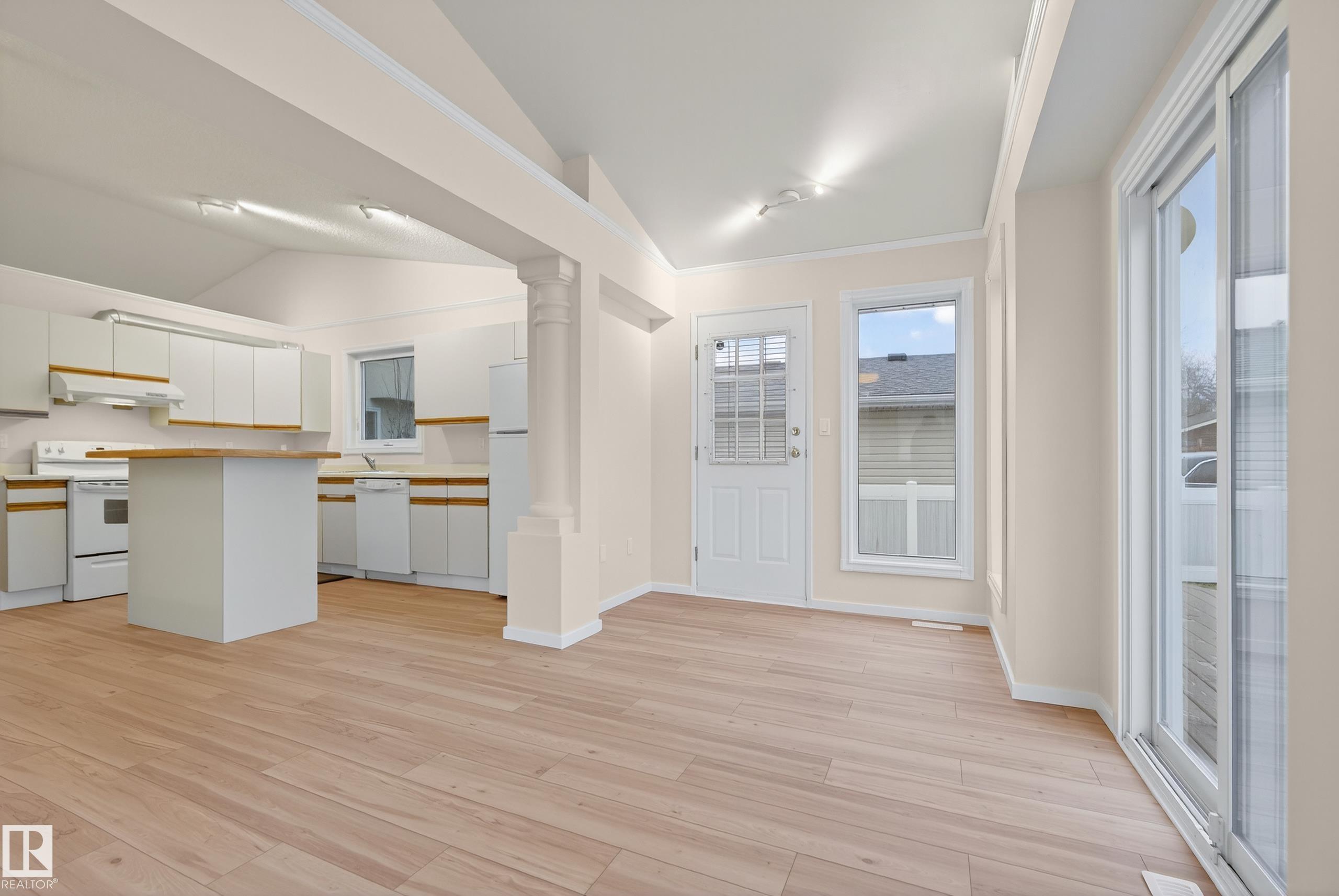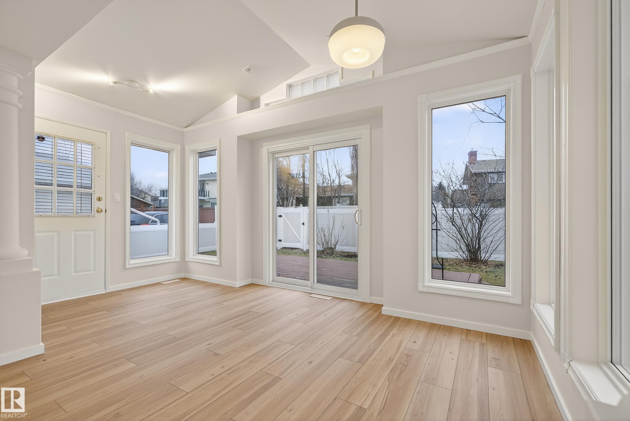 Beautifully updated 4-level split in the sought-after community of Blue Quill! This bright and welcoming home features fresh new paint, new triple-pane windows and new luxury vinyl plank flooring, giving the main living spaces a fresh, modern feel. Enjoy an airy front living room with a large bay window, an open kitchen with great storage, and a stunning sun-filled dining area with patio doors leading to the deck and fully fenced yard. Upstairs offers three spacious bedrooms and a full bath. The lower level includes a huge family/rec room flooded with natural light?perfect for movie nights, a play zone, or a home office. Additional updates include a newer hot water tank, dishwasher, roof (2009), and a new vinyl fence for added privacy. Set on a quiet street close to schools, parks, transit, and amenities, this is an exceptional opportunity to own a well-maintained home in a prime location.