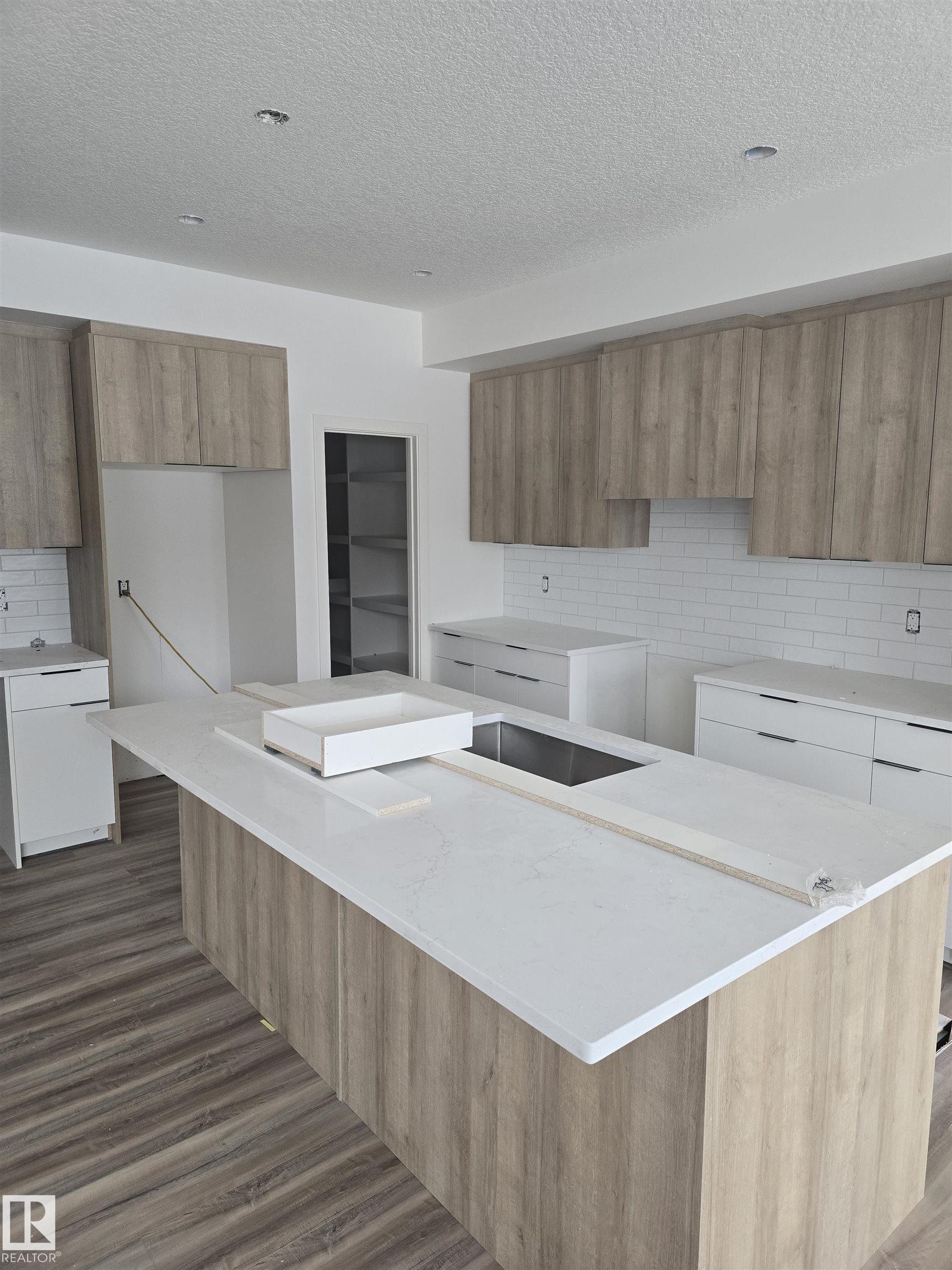 Click more photos for video of similar unit. Discover this stunning 1770 sq ft half duplex in sought-after Crystallina Nera West?the perfect family home offering comfort, style, and privacy. With walking paths on both sides, enjoy a peaceful setting and added space. Inside, a boot room with built-in bench leads to an extended pantry, opening into a modern kitchen with a large quartz island and stylish cabinetry. The living area features a 60-inch electric fireplace under a spacious mantle for a warm, inviting feel. Upstairs includes convenient linen and laundry rooms, a flexible bonus space, and a bright primary suite with a double vanity and tiled shower. Additional highlights include nine-foot ceilings on both the main floor and basement, a side entrance offering suite potential, and a double attached garage. Save thousands while gaining every feature your family wants?this home truly has it all. Built by Welcome Homes. A family building for yours since 1977.