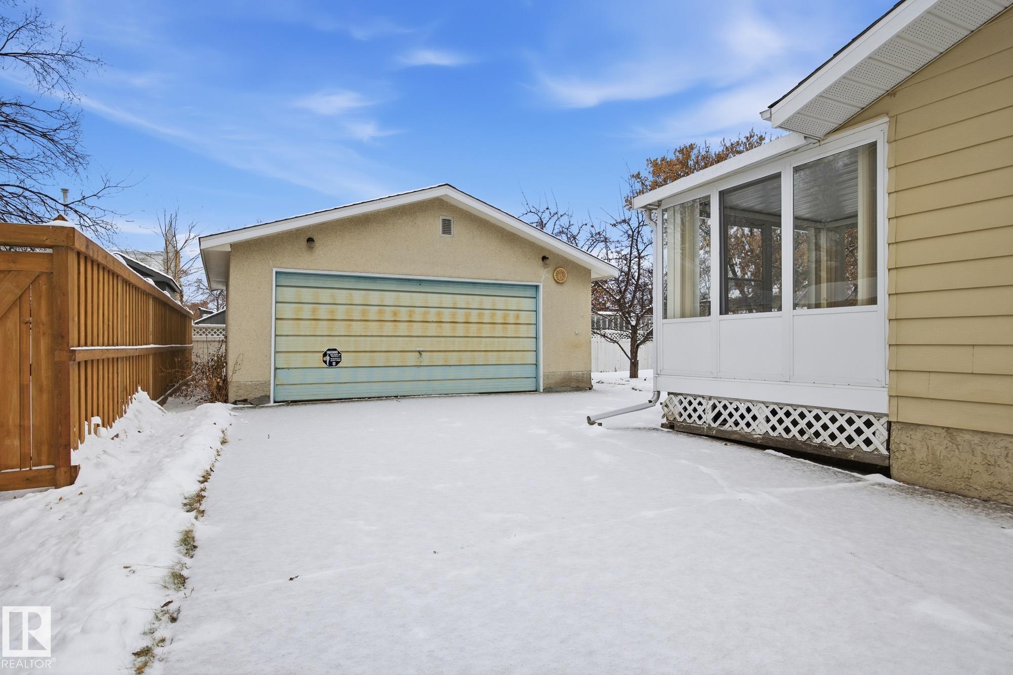 ATTENTION FIRST TIME HOME BUYERS AND INVESTORS. This cute bungalow is situated on a large lot and features 3 bedrooms. Bright open kitchen and adjacent dining and living room. Sunroom on deck ('90). Large SOUTH FACING fenced yard with double detached garage w. 30 yr. shingles('20) . Basement is unfinished awaiting your personal touch. Living room front windows ('85), gas hot water tank ('07), Bryant furnace ('96), main toiler ('25), ensuite toilet, sink, faucet ('25), windows and doors painted ('25), carpets cleaned ('25). Close to Anthony Henday, Servus Place, and schools. Rare opportunity to get into St. Albert in this price range.