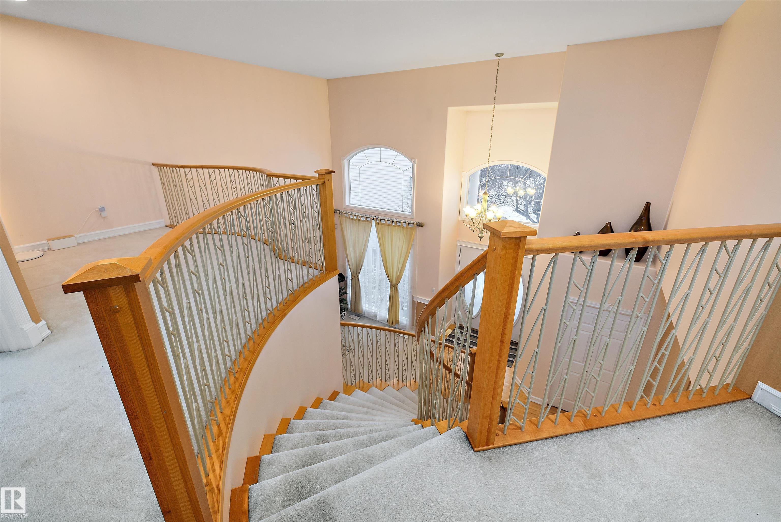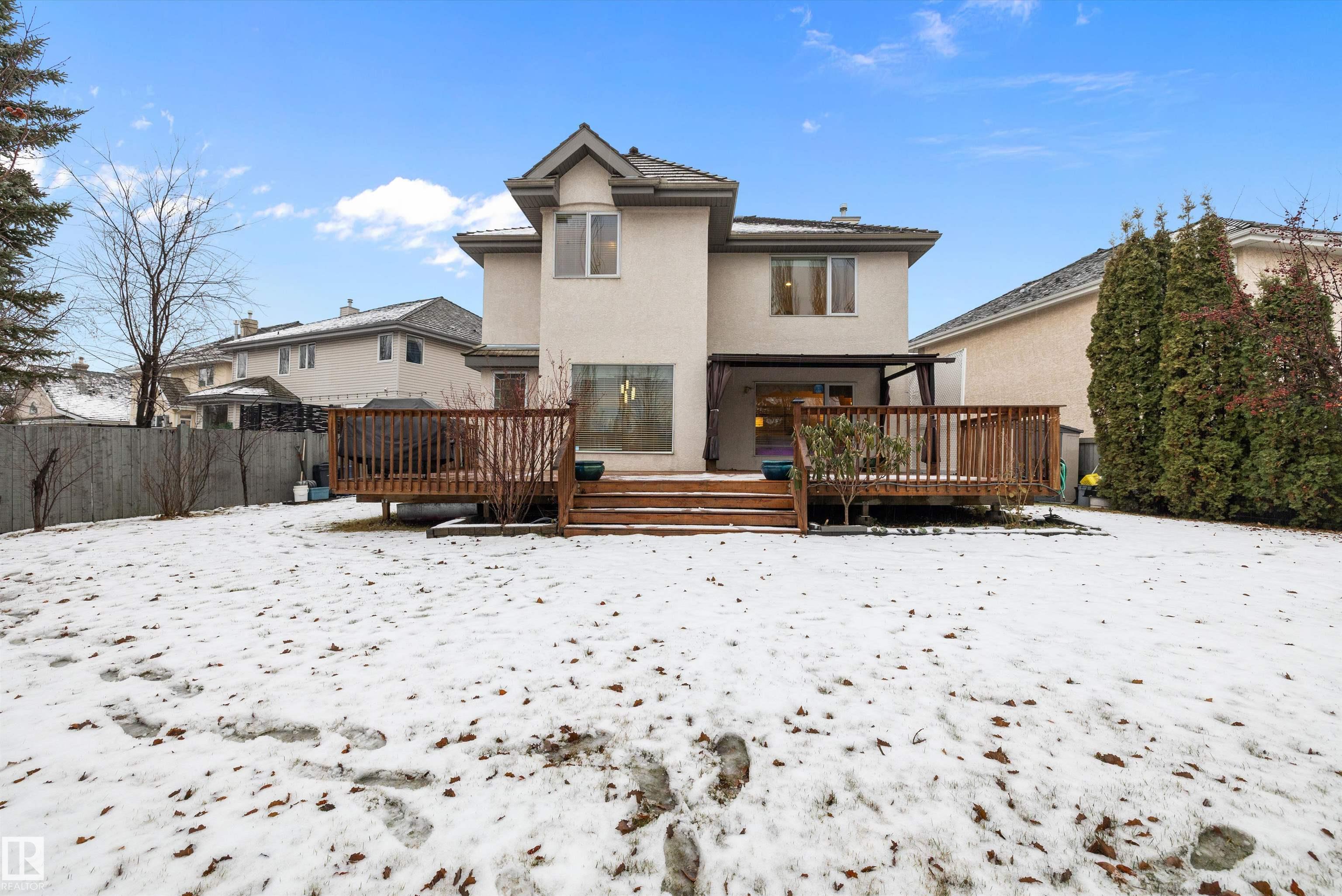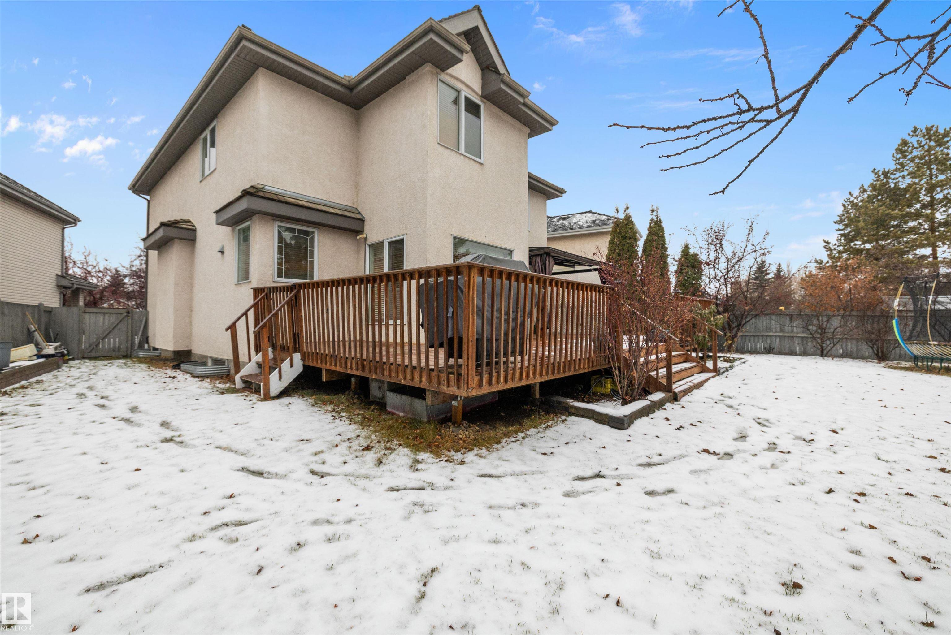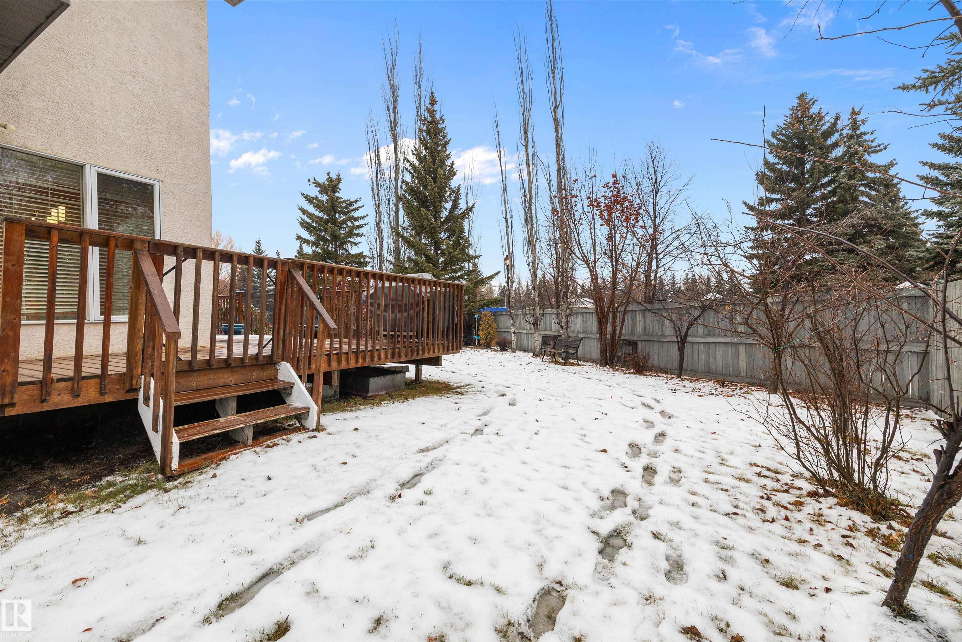 EXECUTIVE HOME IN PRESTIGIOUS DONSDALE ON A RARE MASSIVE PIE LOT STEPS FROM THE RIVER VALLEY TRAILS. A soaring 2-storey foyer with a curved staircase leads to a bright formal living room, an elegant dining room & a spacious family room with views of the expansive yard. The kitchen offers ample cabinetry, an island & a sunny breakfast nook with access to a large multi zone deck ideal for outdoor living & entertaining. The upper level features 3 generous bedrooms including a spacious primary bedroom with a walk in closet & a well appointed bathroom. The finished lower level provides a large recreation area suited for theatre, games, fitness or play, plus a private flex room & a full bathroom. A versatile main floor den ideal for office or study completes this exceptional home in one of the most desirable West Edmonton communities, close to schools, shopping, transit, Anthony Henday, Whitemud Drive, West Edmonton Mall & neighbourhood parks. Opportunities of this calibre are rare. View with confidence. HURRY!