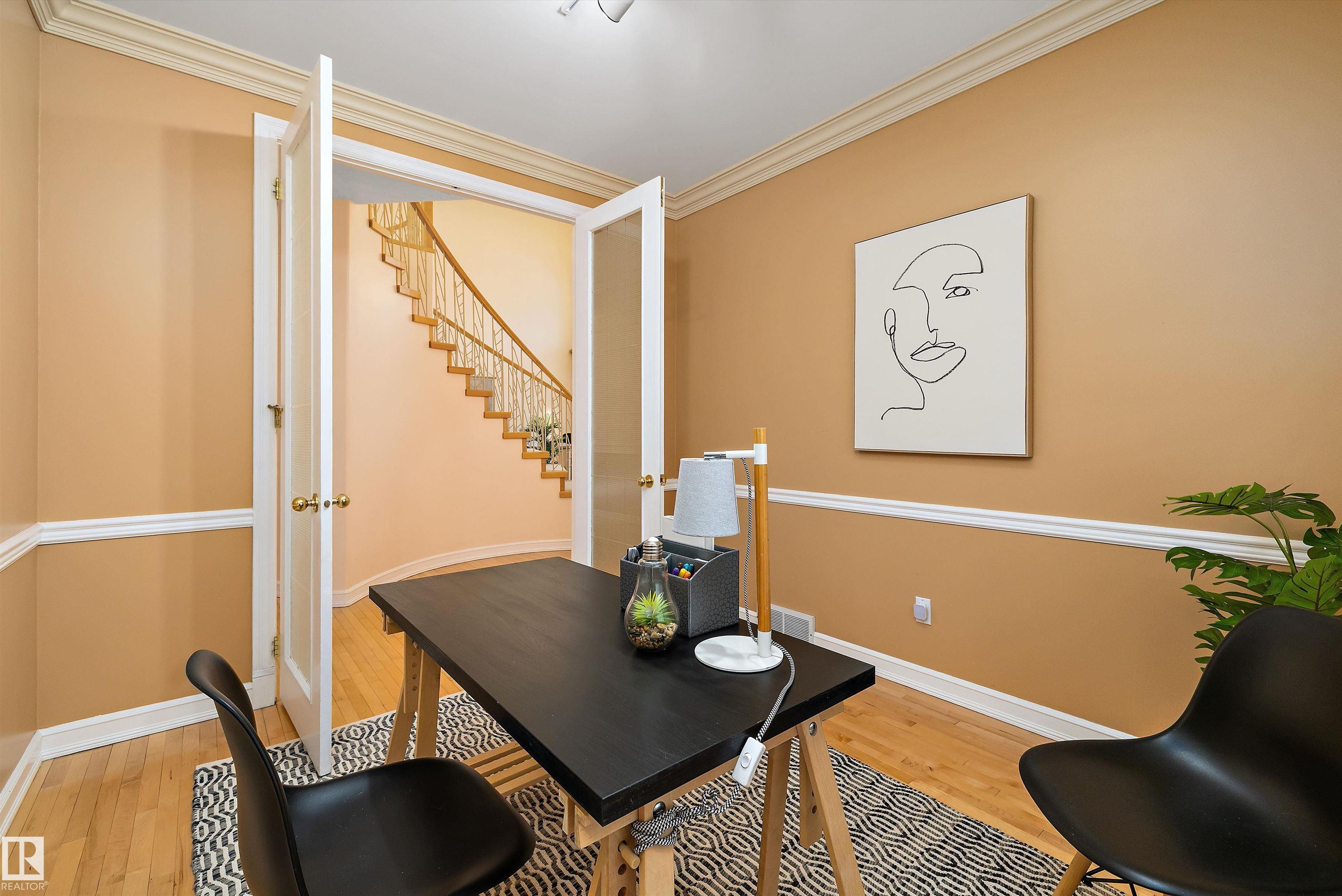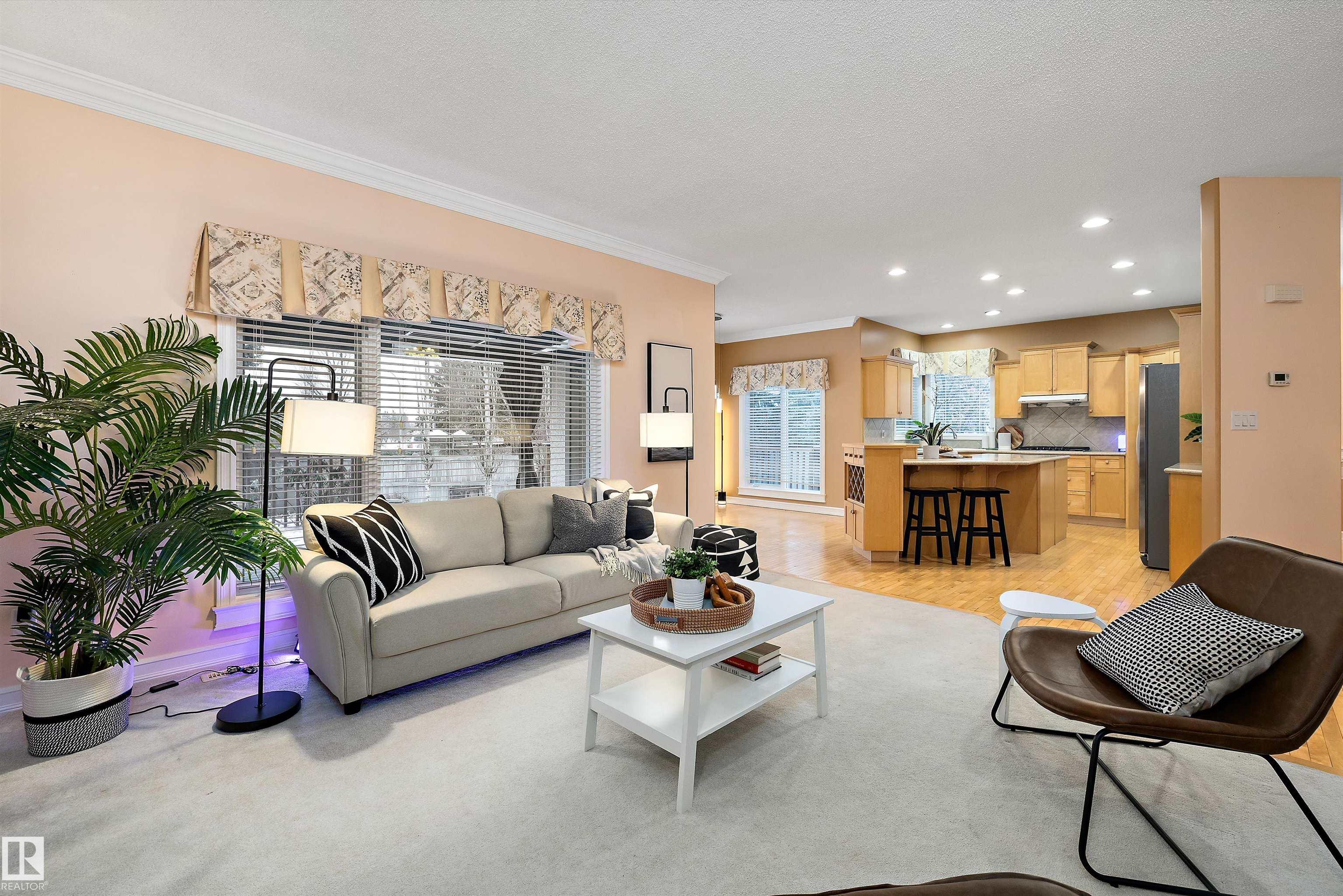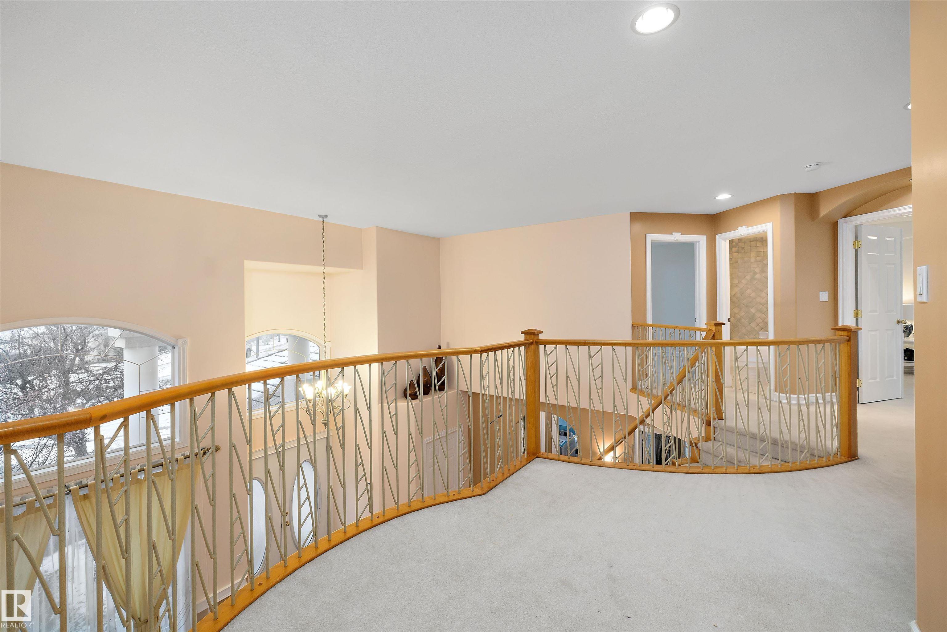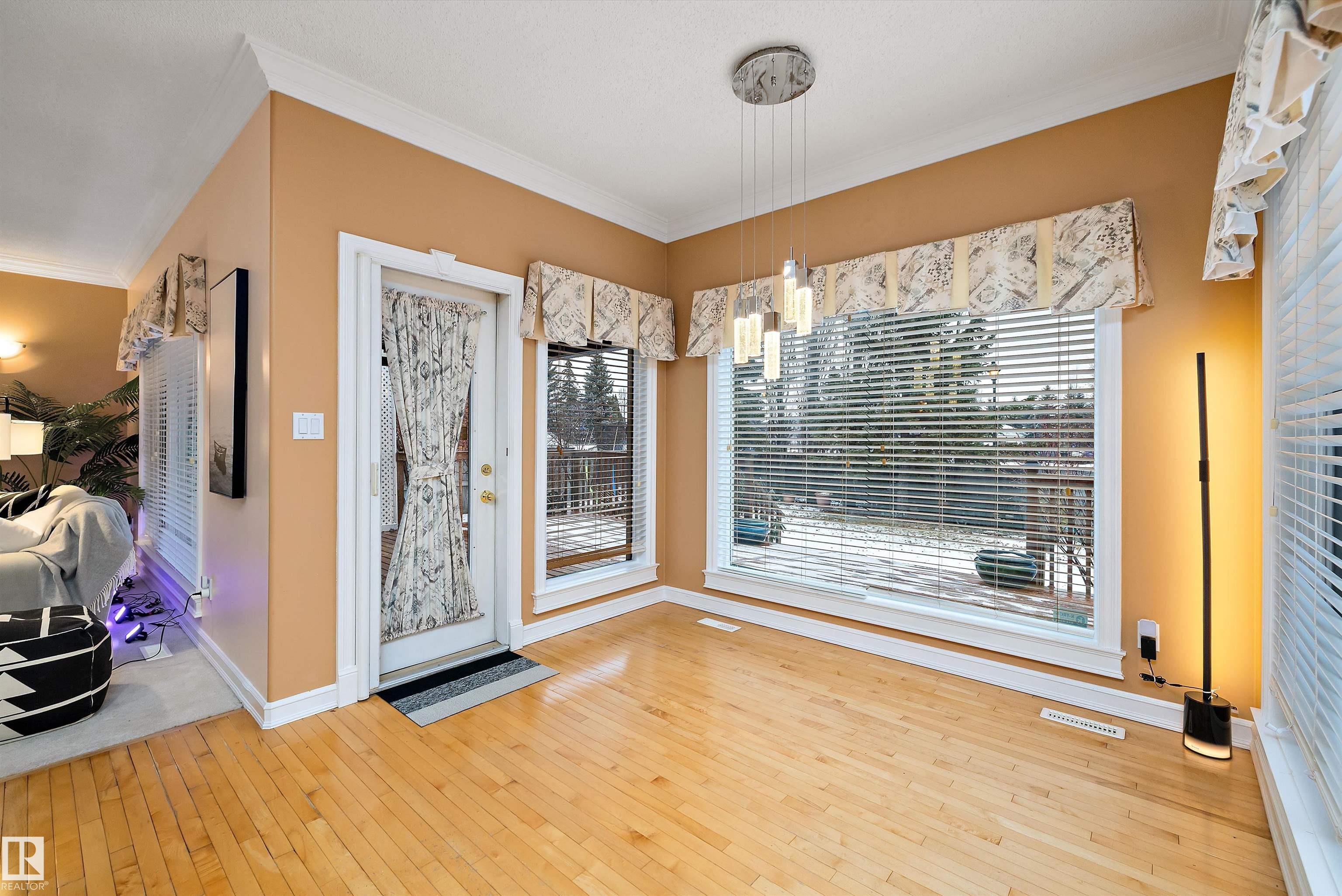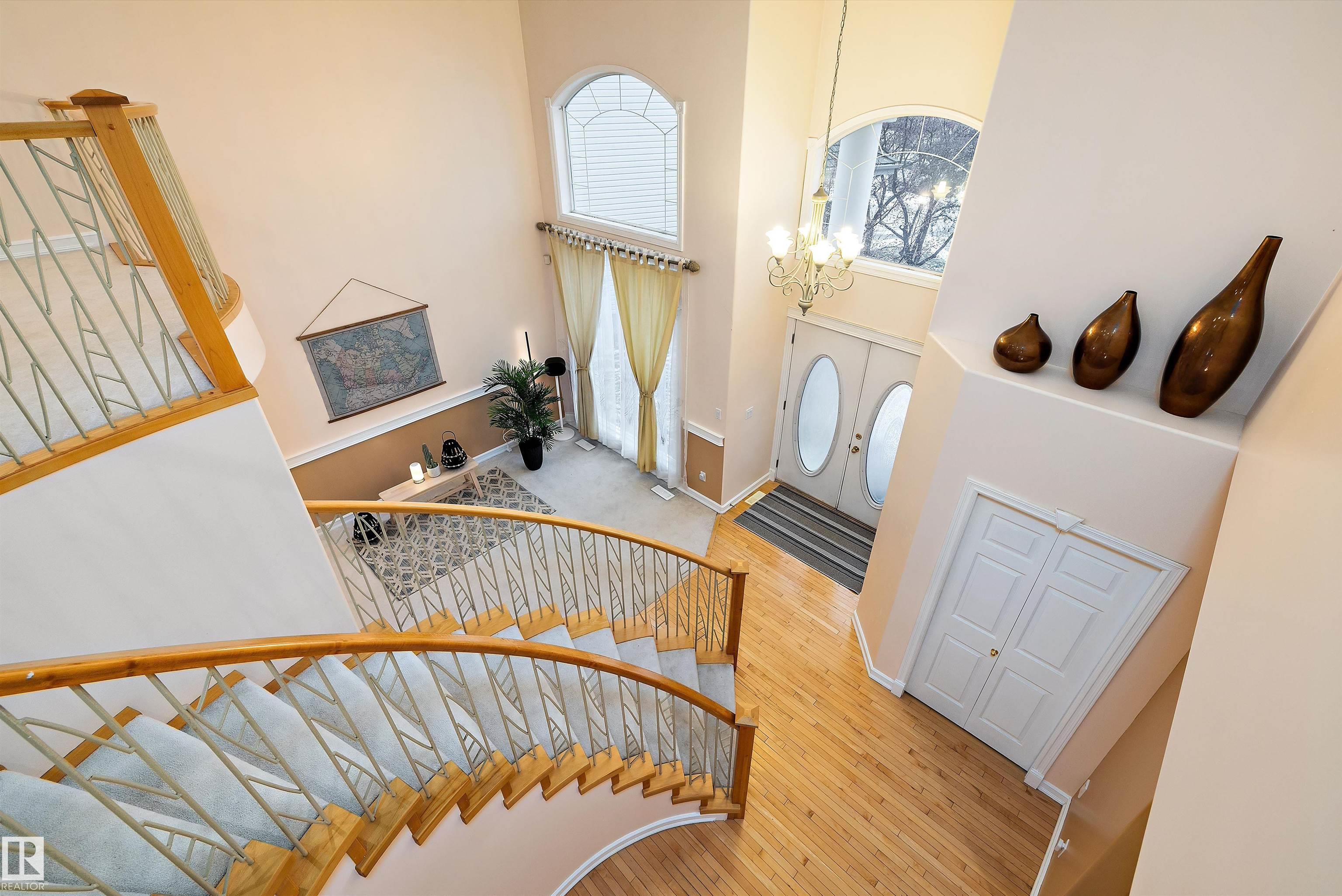 EXECUTIVE HOME IN PRESTIGIOUS DONSDALE ON A RARE MASSIVE PIE LOT STEPS FROM THE RIVER VALLEY TRAILS. A soaring 2-storey foyer with a curved staircase leads to a bright formal living room, an elegant dining room & a spacious family room with views of the expansive yard. The kitchen offers ample cabinetry, an island & a sunny breakfast nook with access to a large multi zone deck ideal for outdoor living & entertaining. The upper level features 3 generous bedrooms including a spacious primary bedroom with a walk in closet & a well appointed bathroom. The finished lower level provides a large recreation area suited for theatre, games, fitness or play, plus a private flex room & a full bathroom. A versatile main floor den ideal for office or study completes this exceptional home in one of the most desirable West Edmonton communities, close to schools, shopping, transit, Anthony Henday, Whitemud Drive, West Edmonton Mall & neighbourhood parks. Opportunities of this calibre are rare. View with confidence. HURRY!